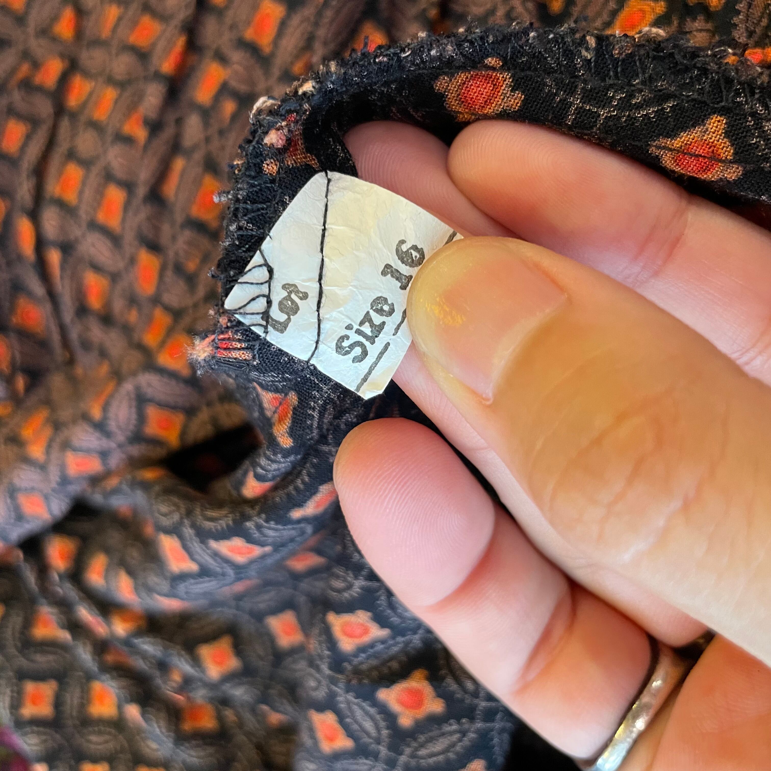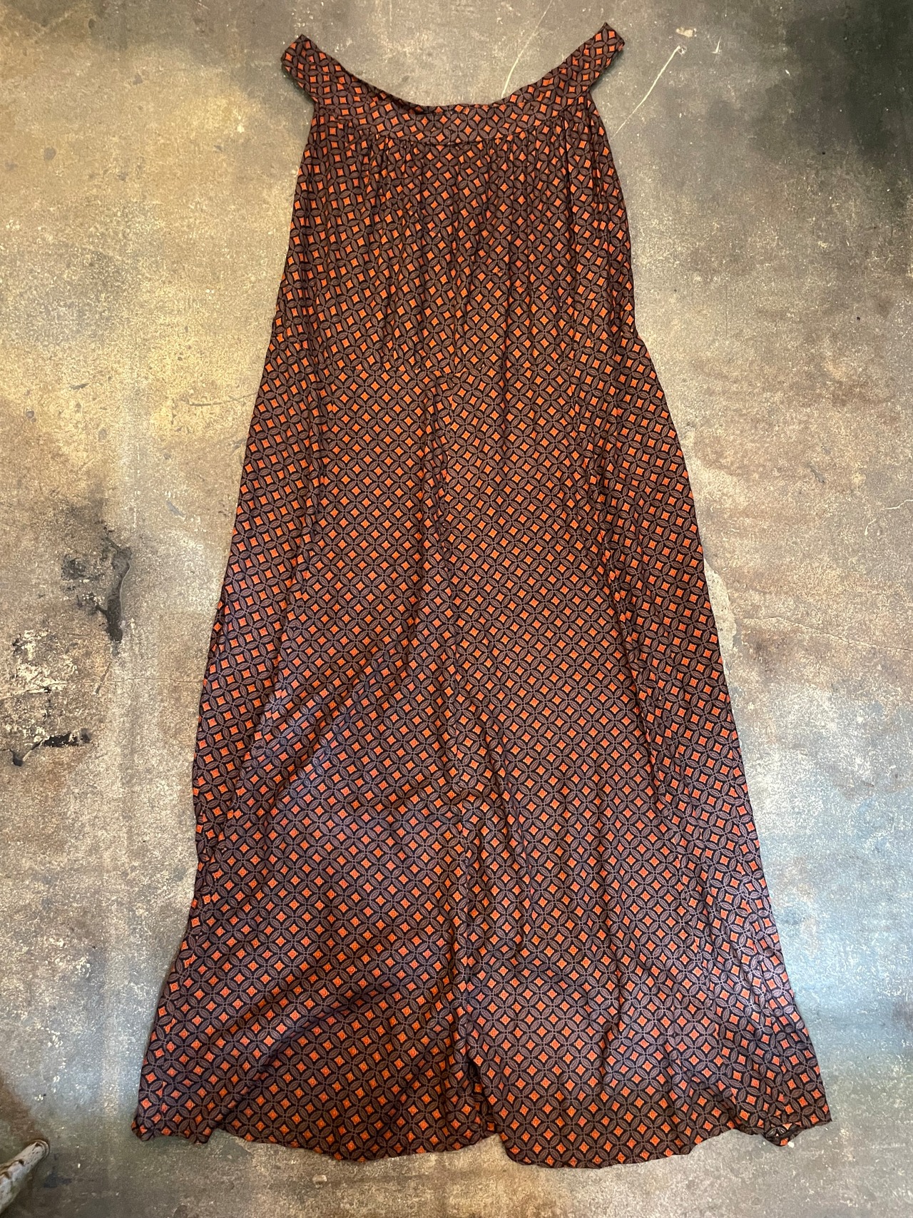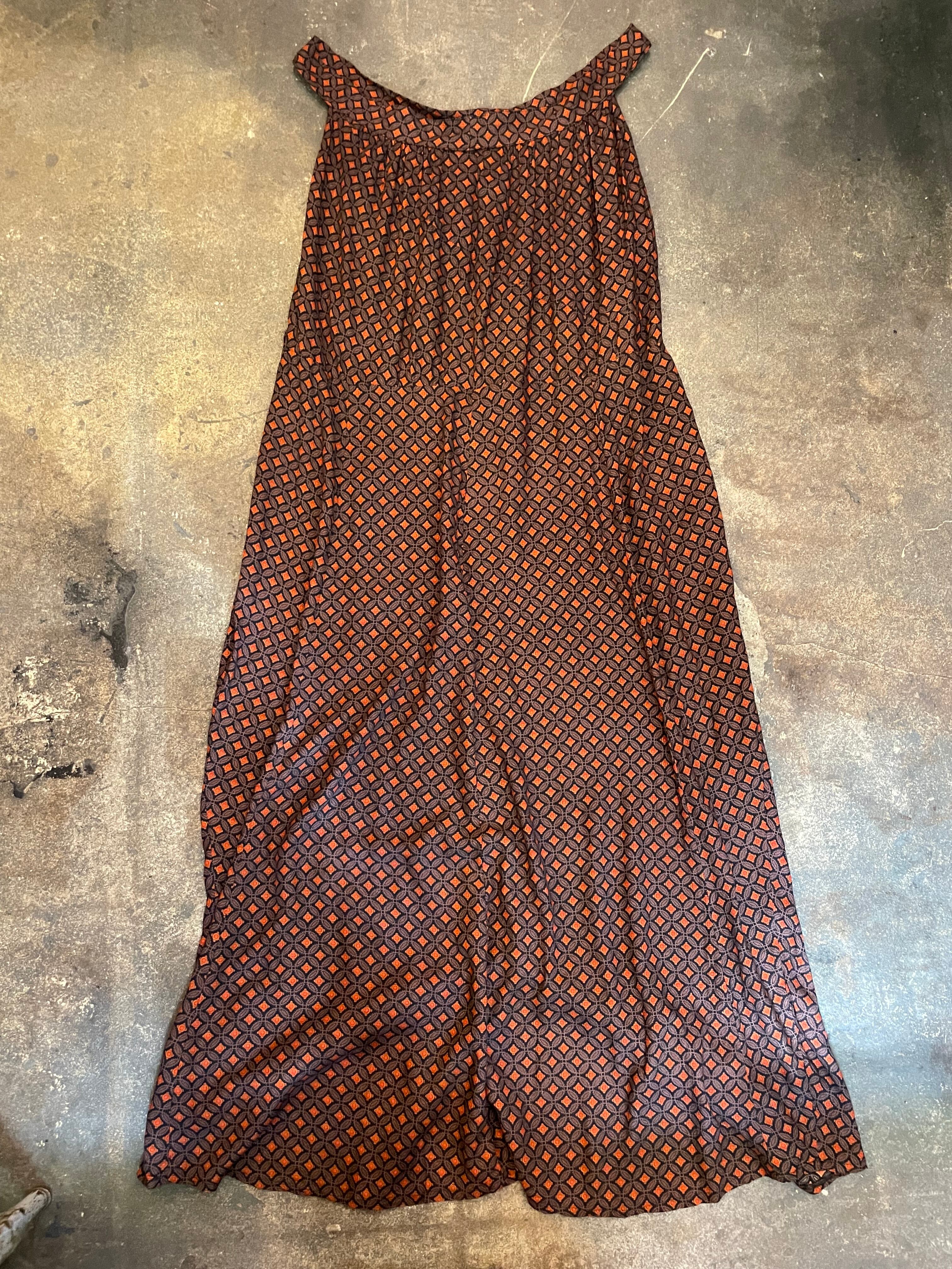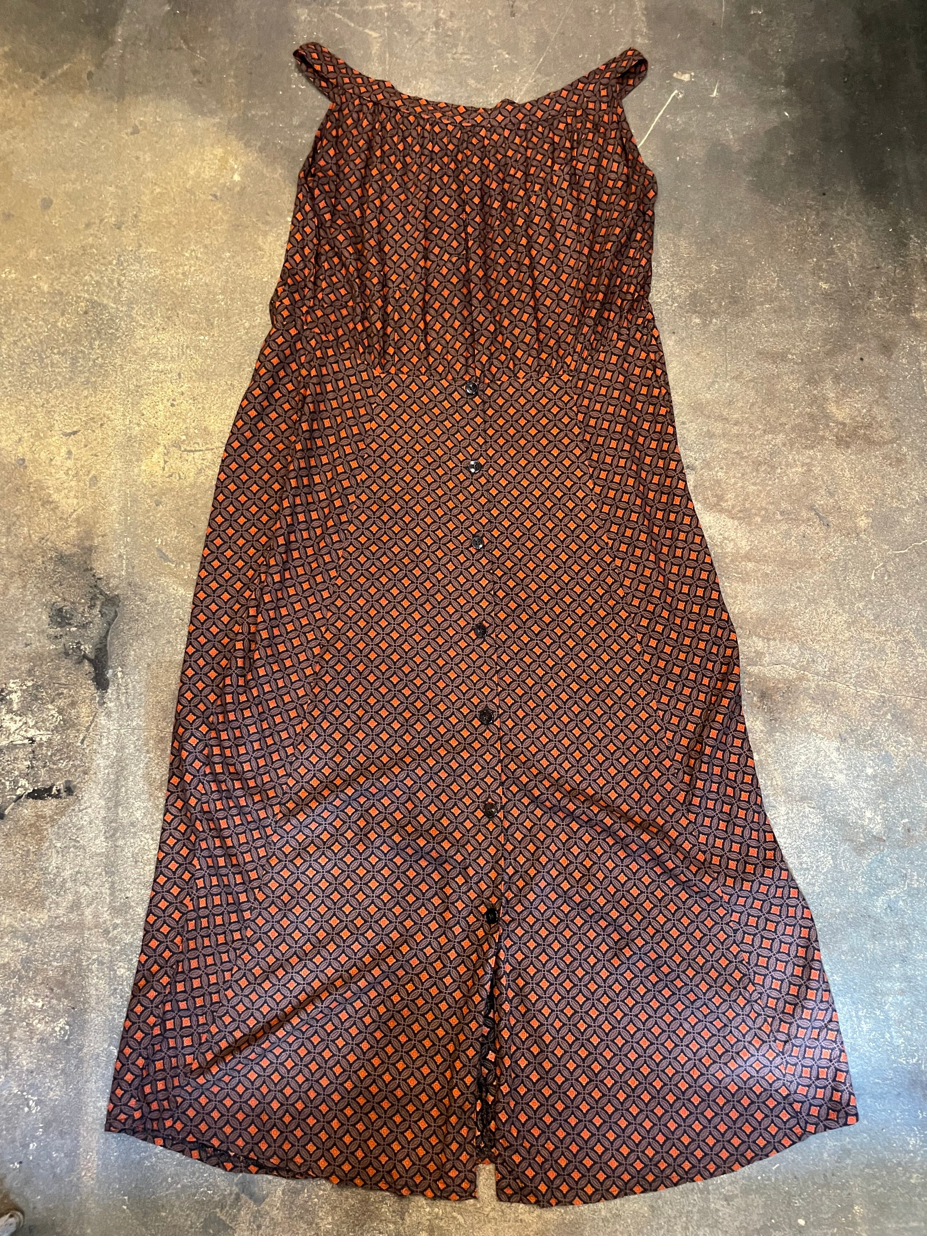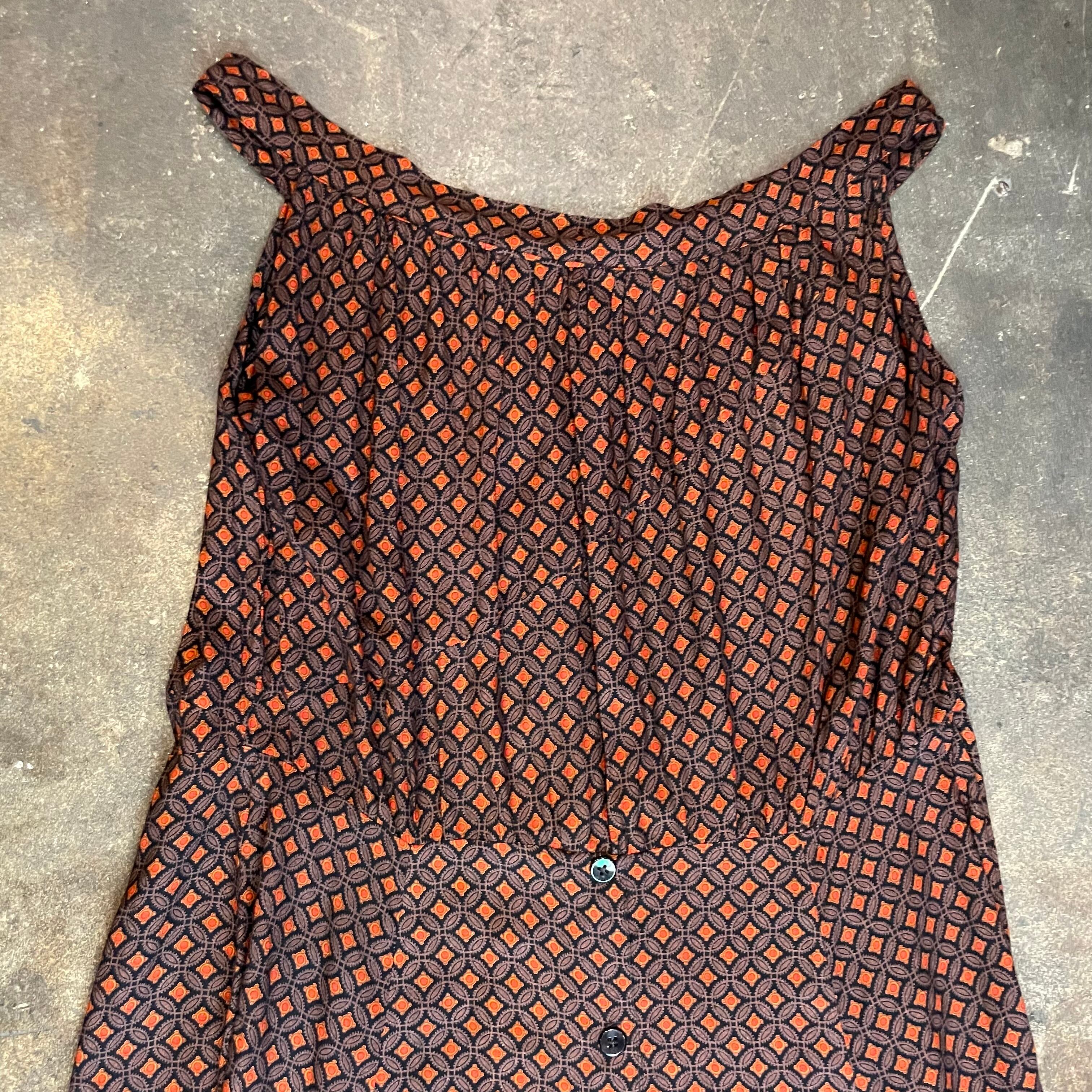 タイルのような、絨毯のような柄が素敵な70〜80年代頃のワンピースです。