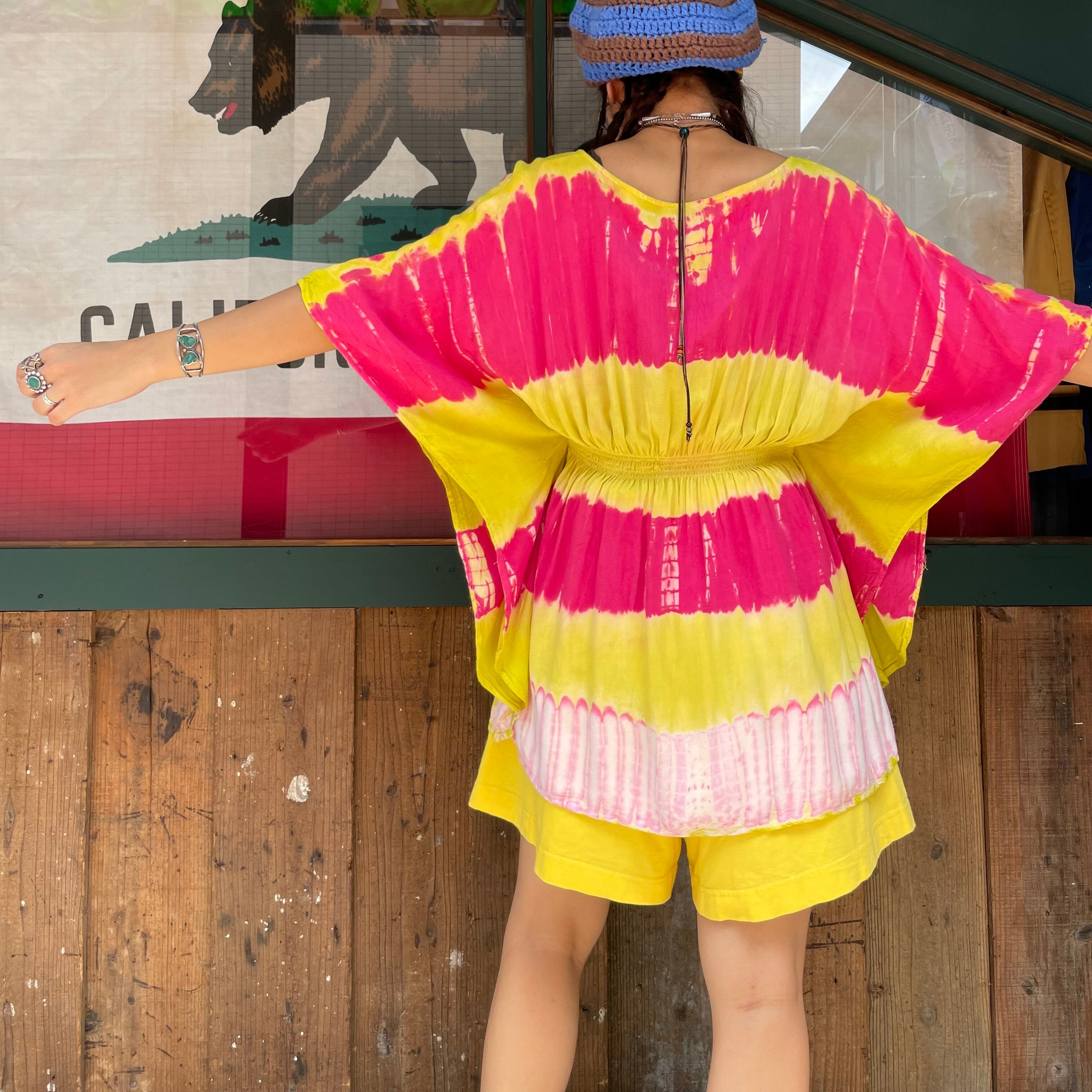 ハッピーカラーがかわいいタイダイ染めのポンチョのようなチュニックです。