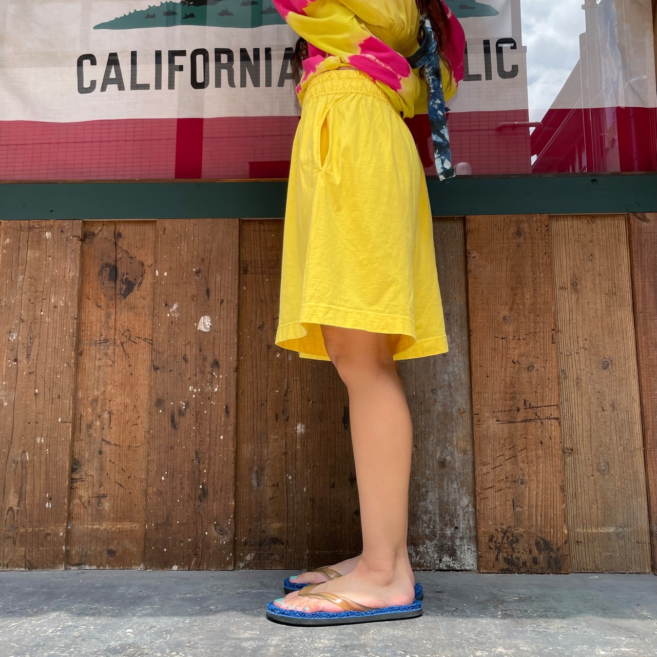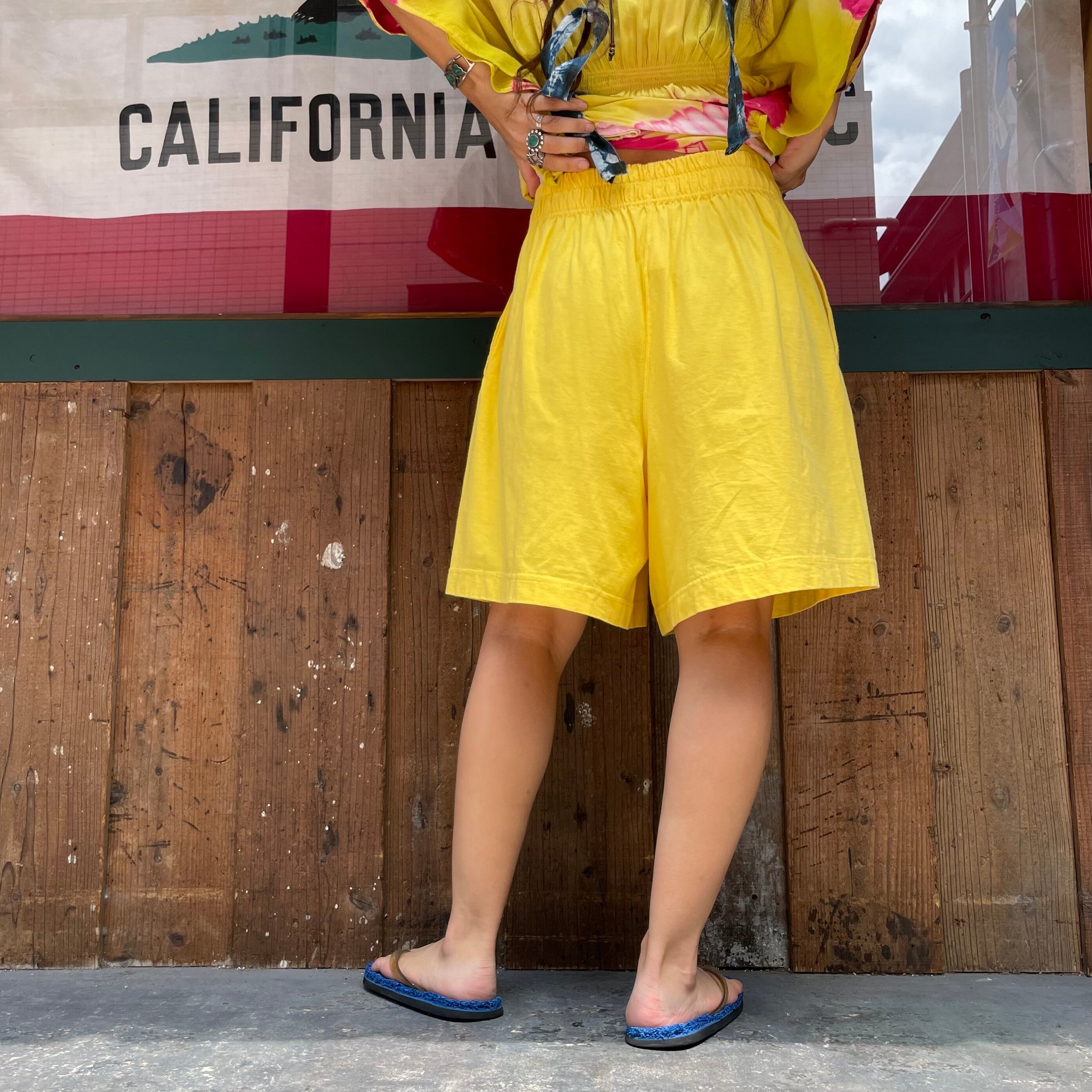 明るい黄色がかわいいコットン素材のショートパンツです。