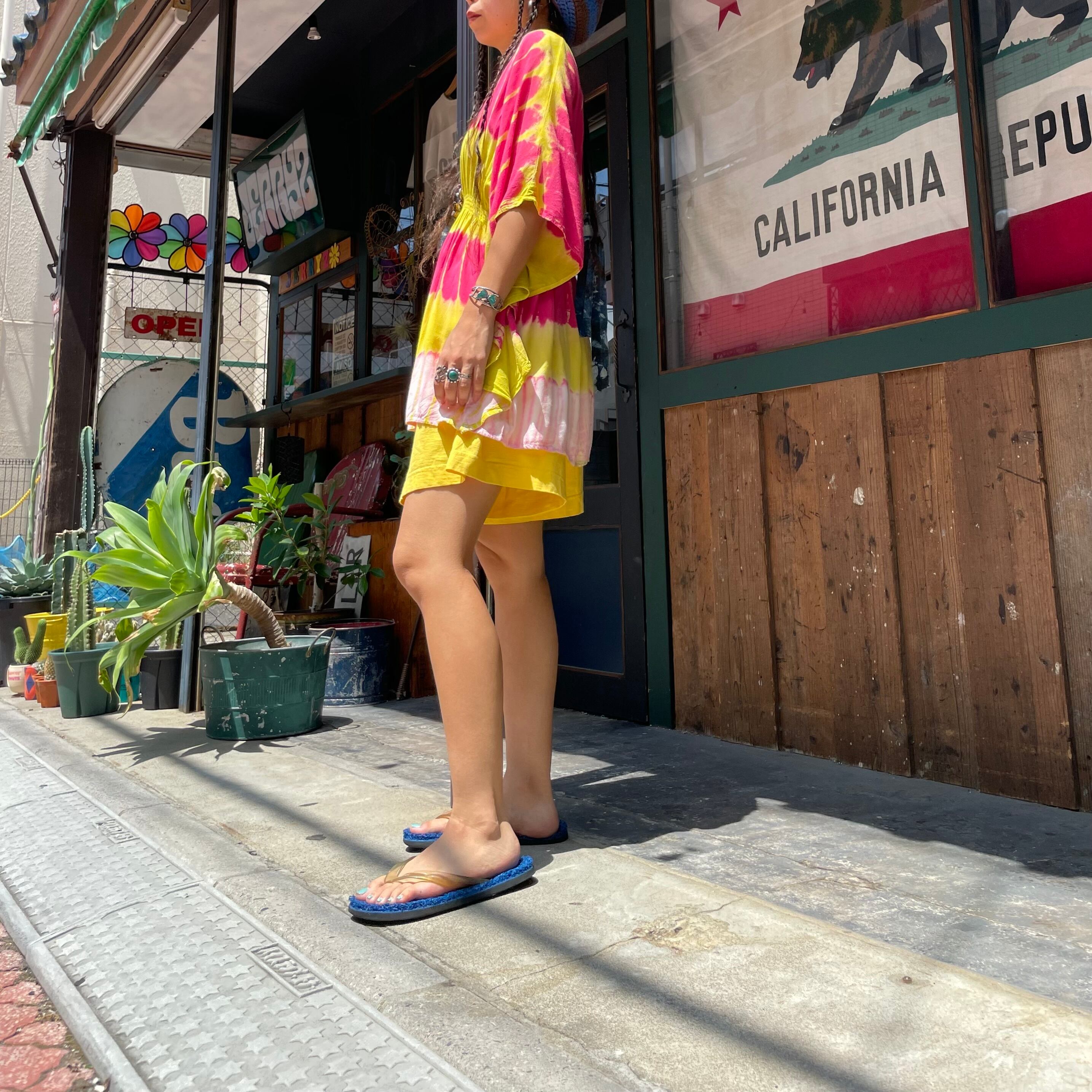 裾の広がりも丈の長さも結構あるので気軽に履ける一枚かと思います。Tシャツにビーサンでも、タンクトップにシャツを羽織ったりしてもかわいいと思います。