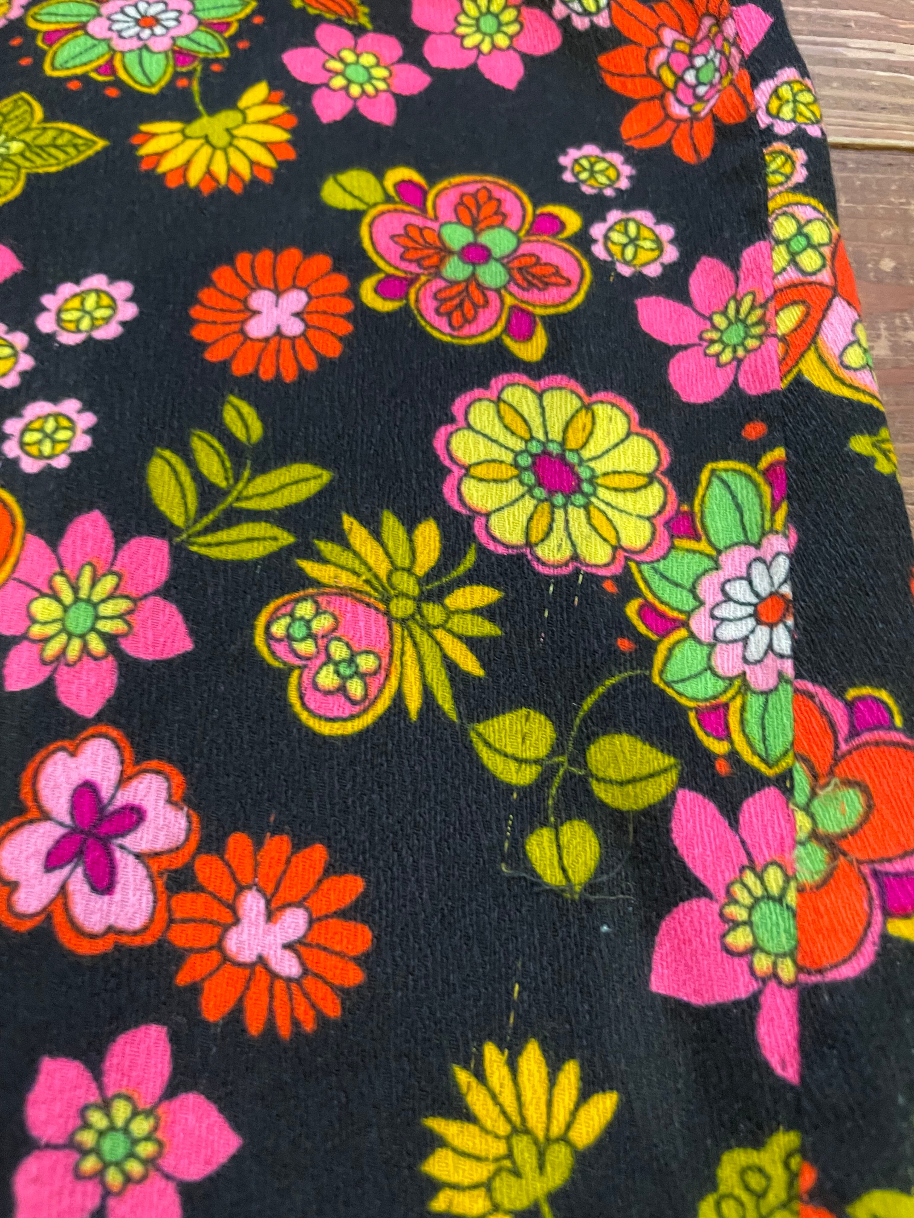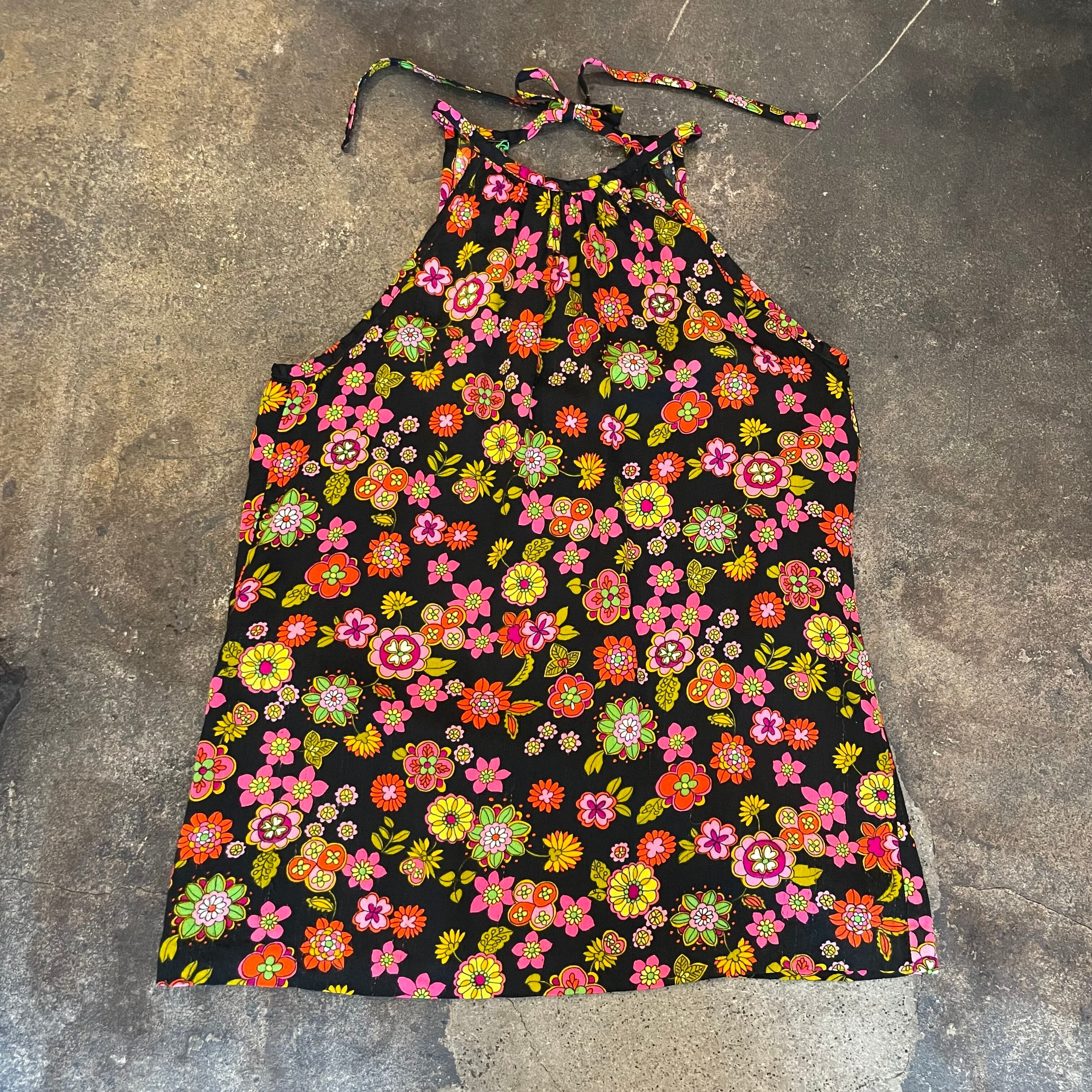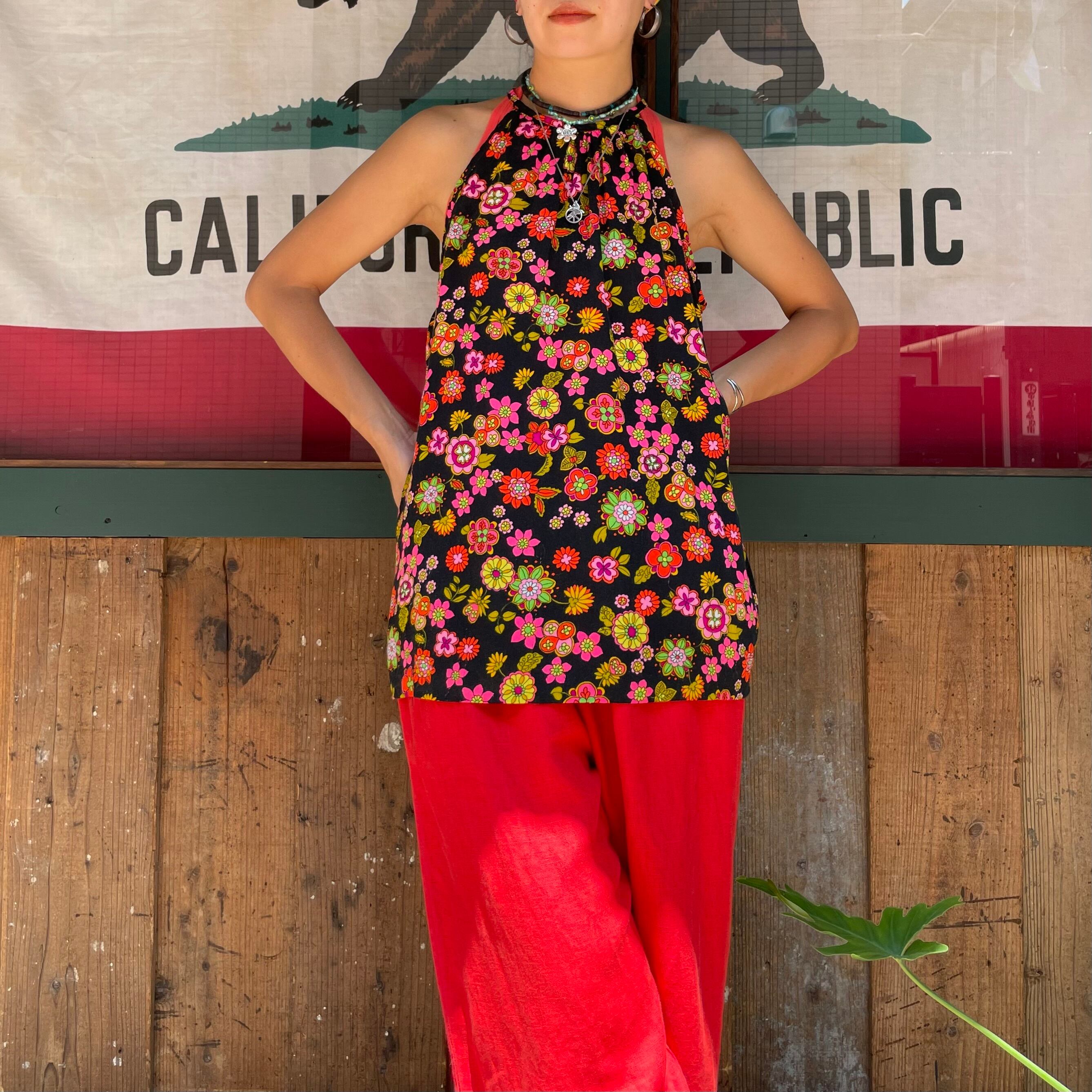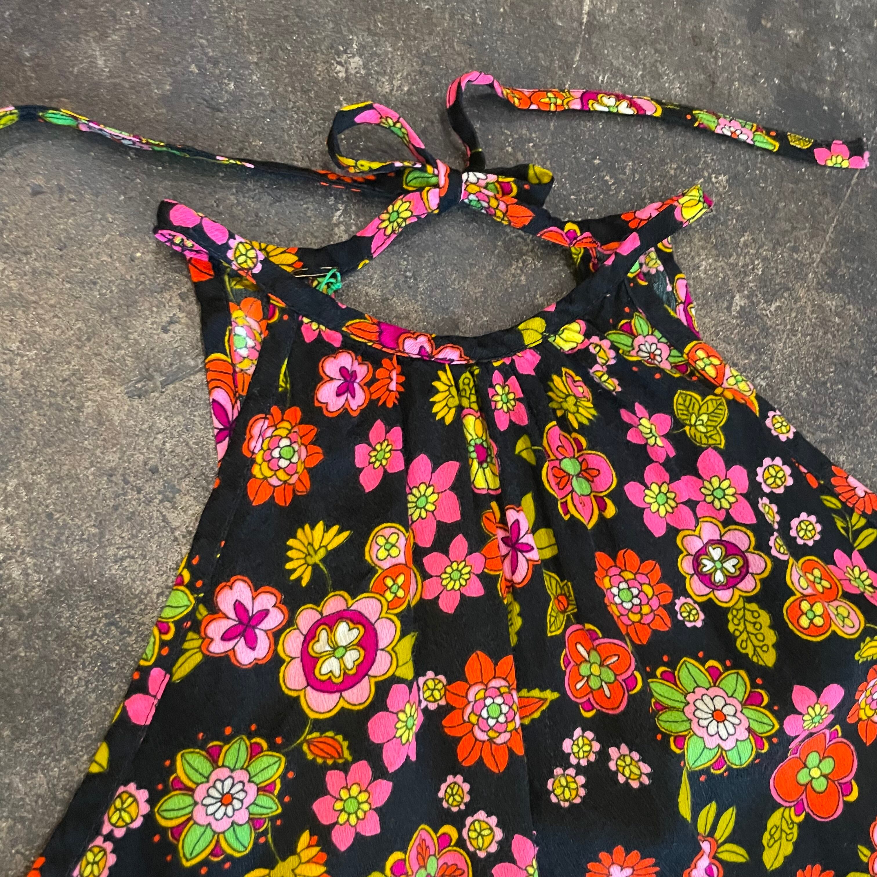 黒ベースにピンク系の花柄がかわいい60〜70年代頃のキャミソールです。