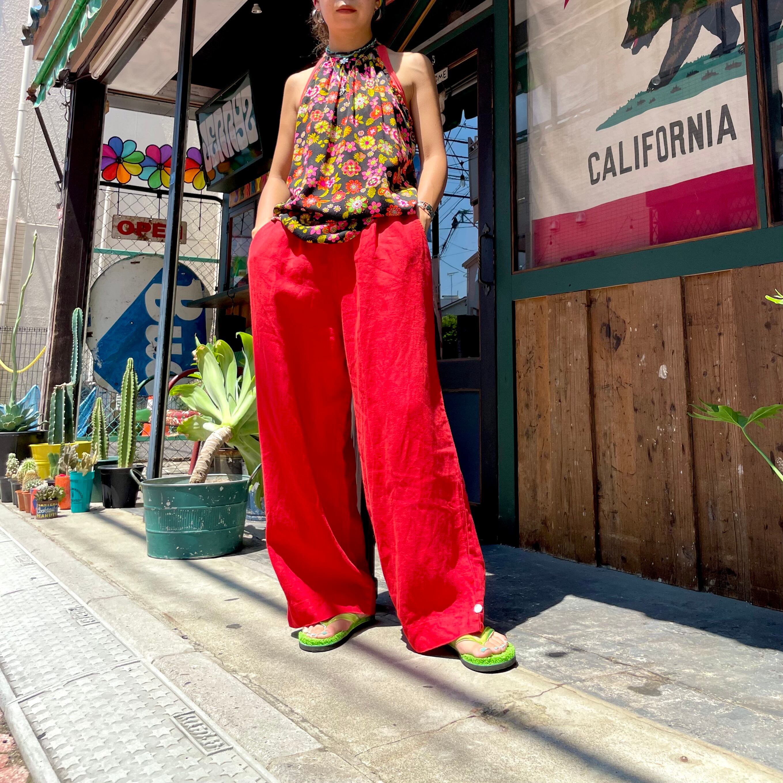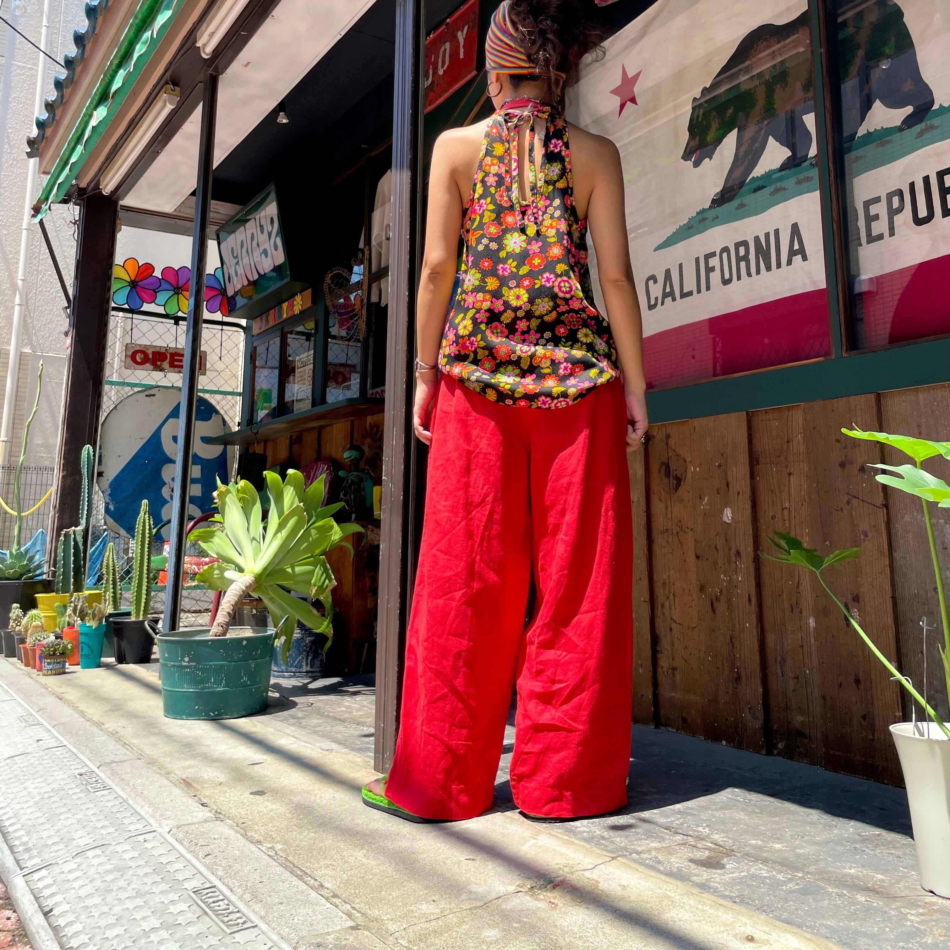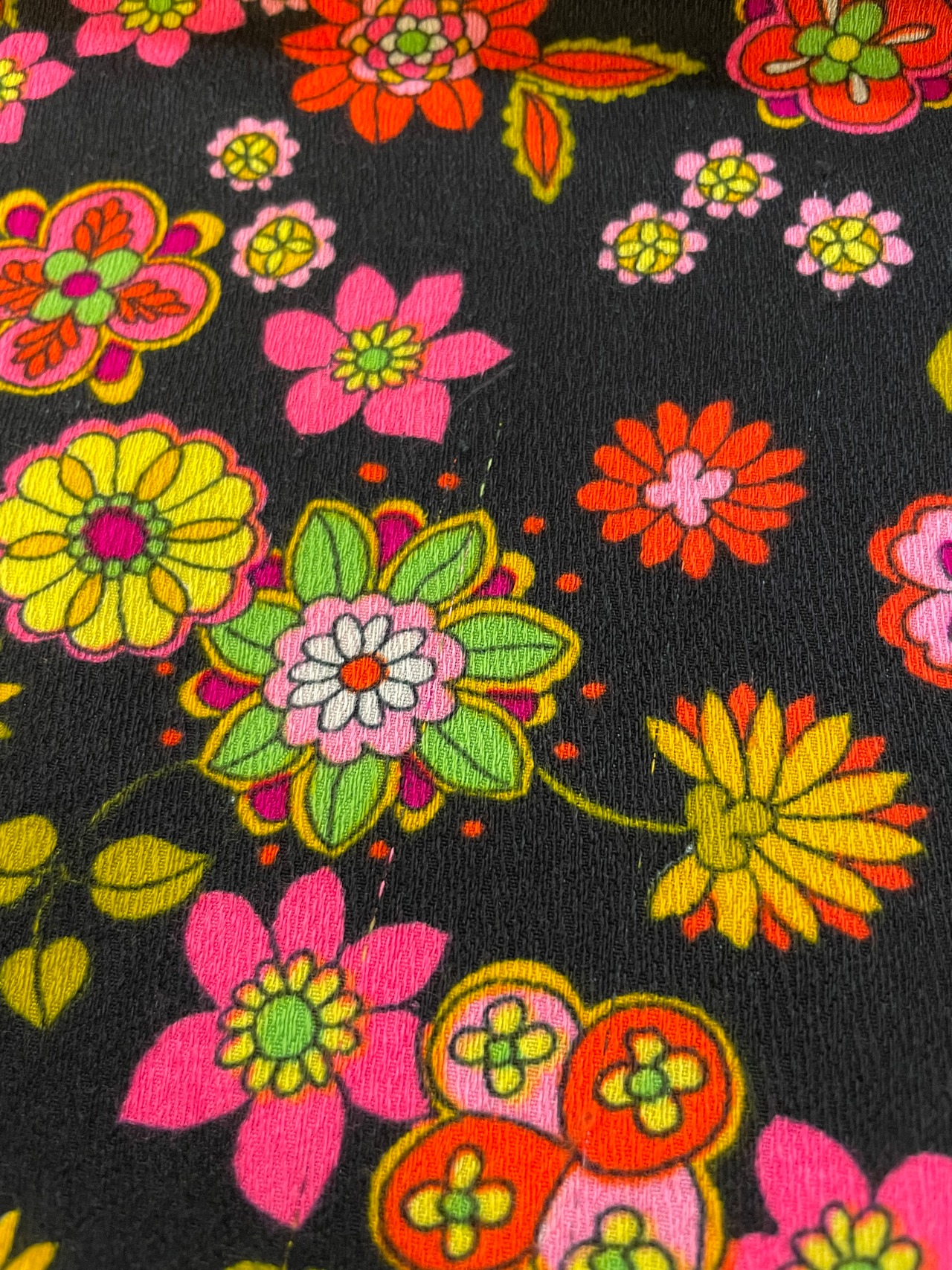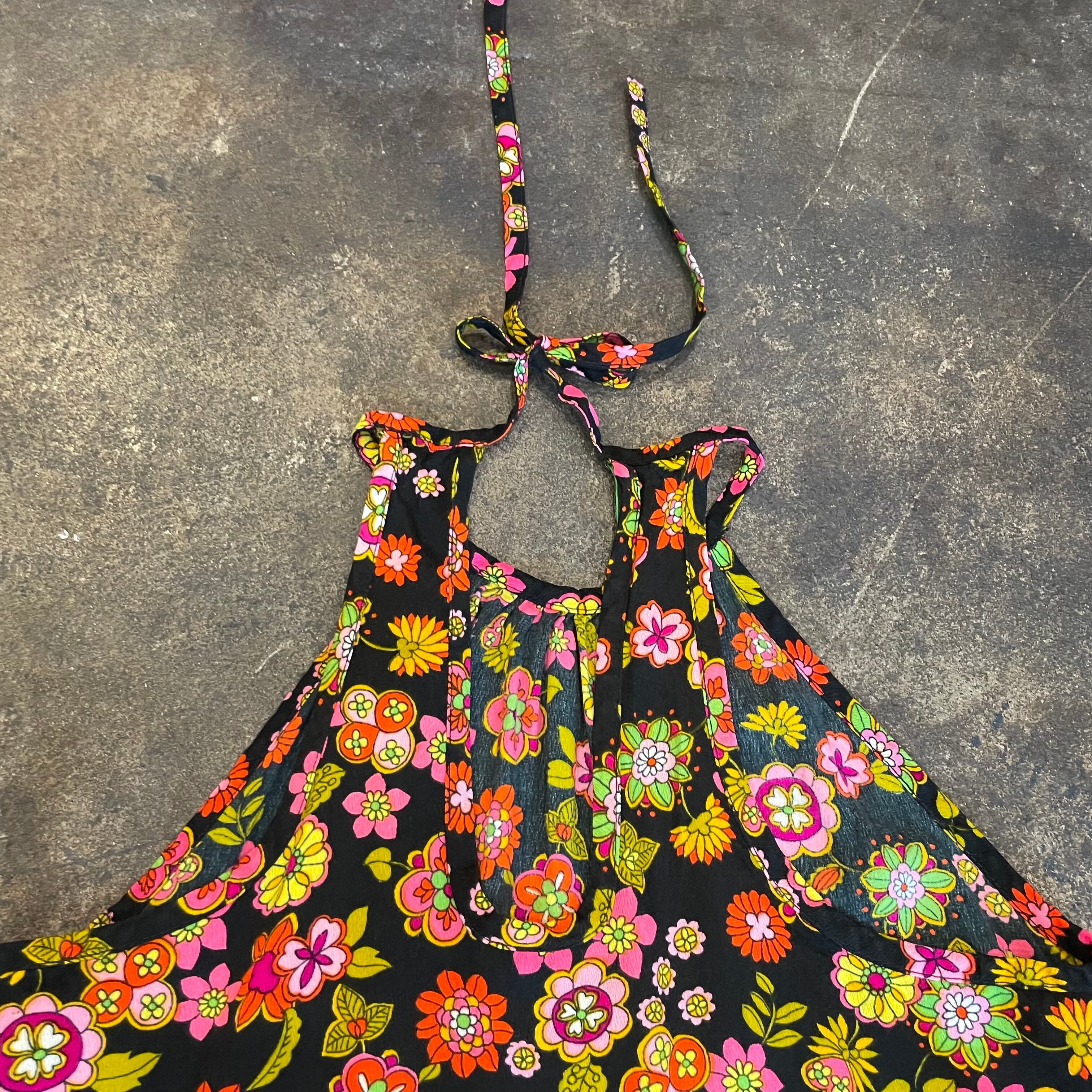 黒ベースにピンク系の花柄がかわいい60〜70年代頃のキャミソールです。