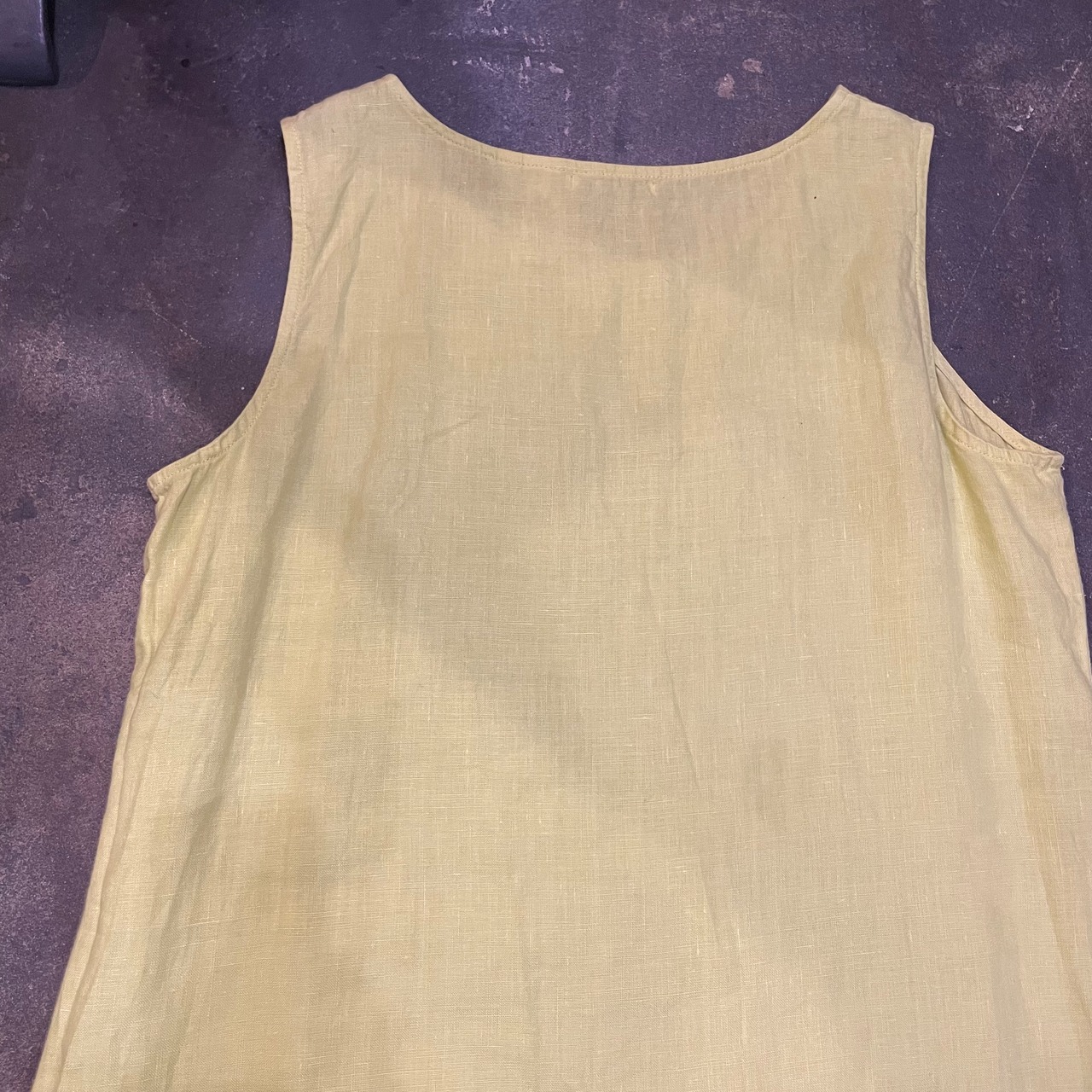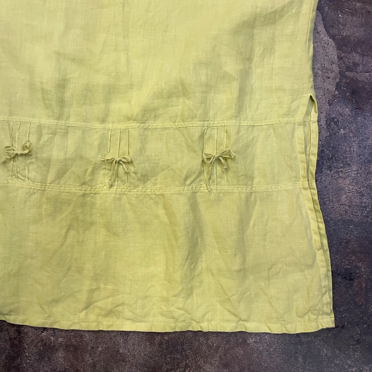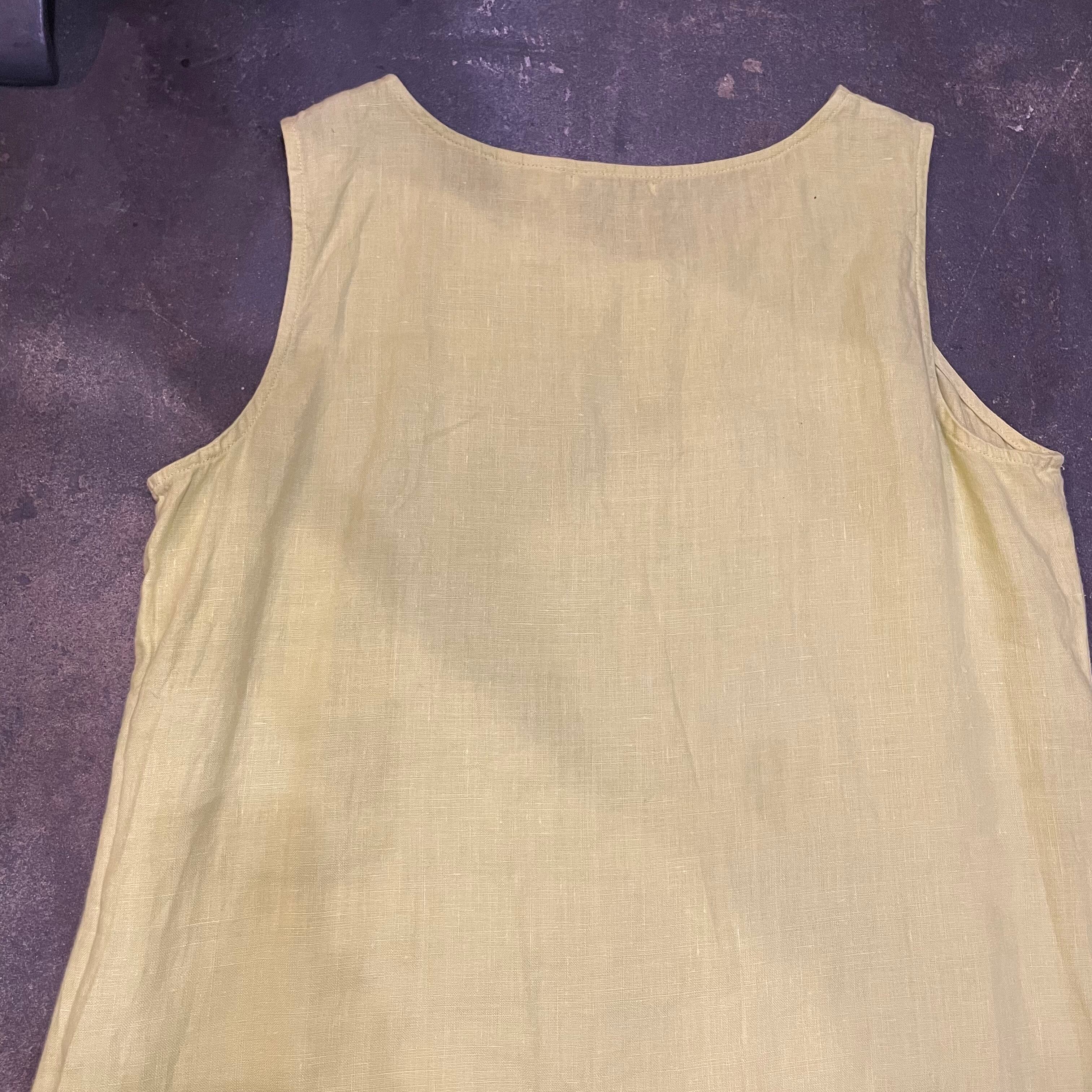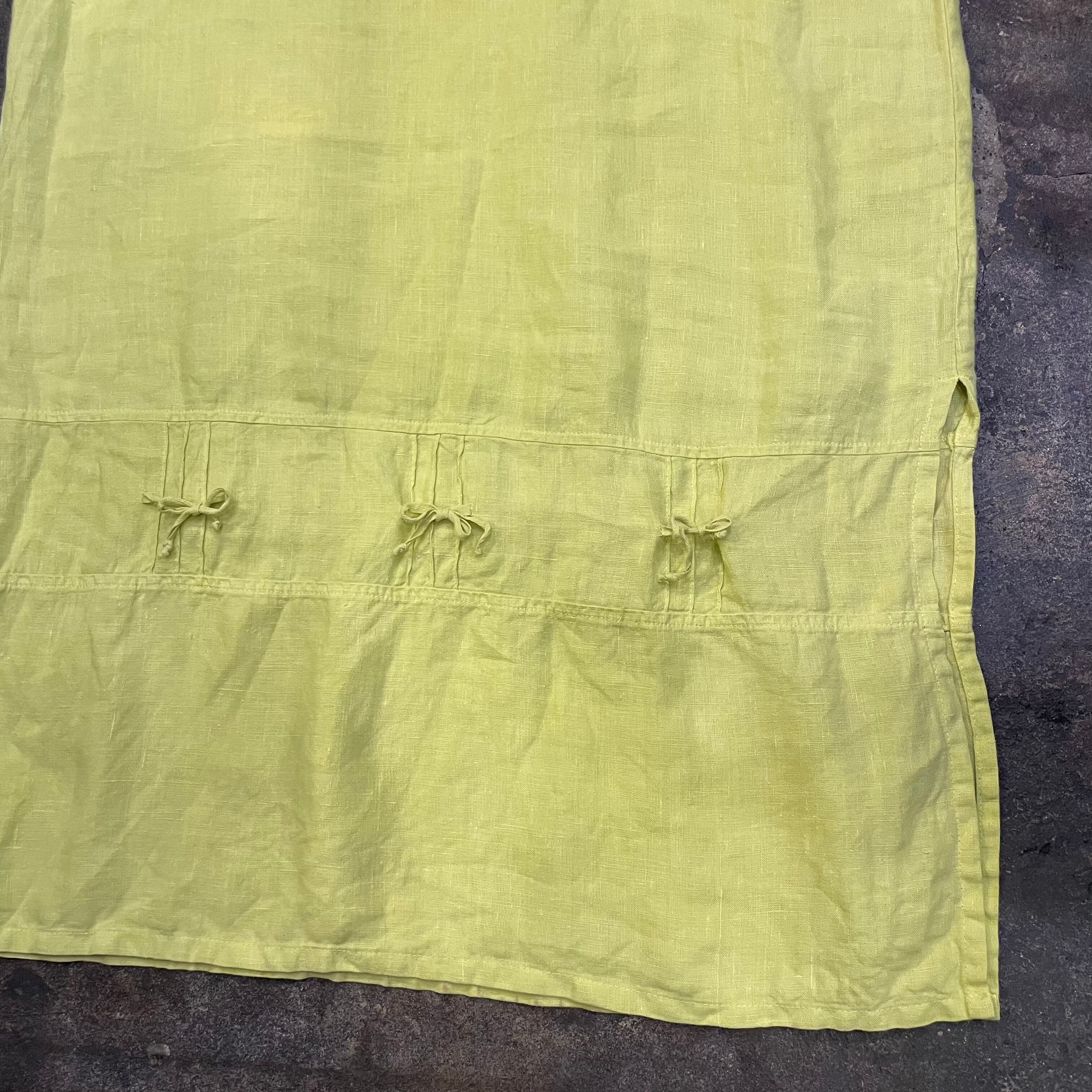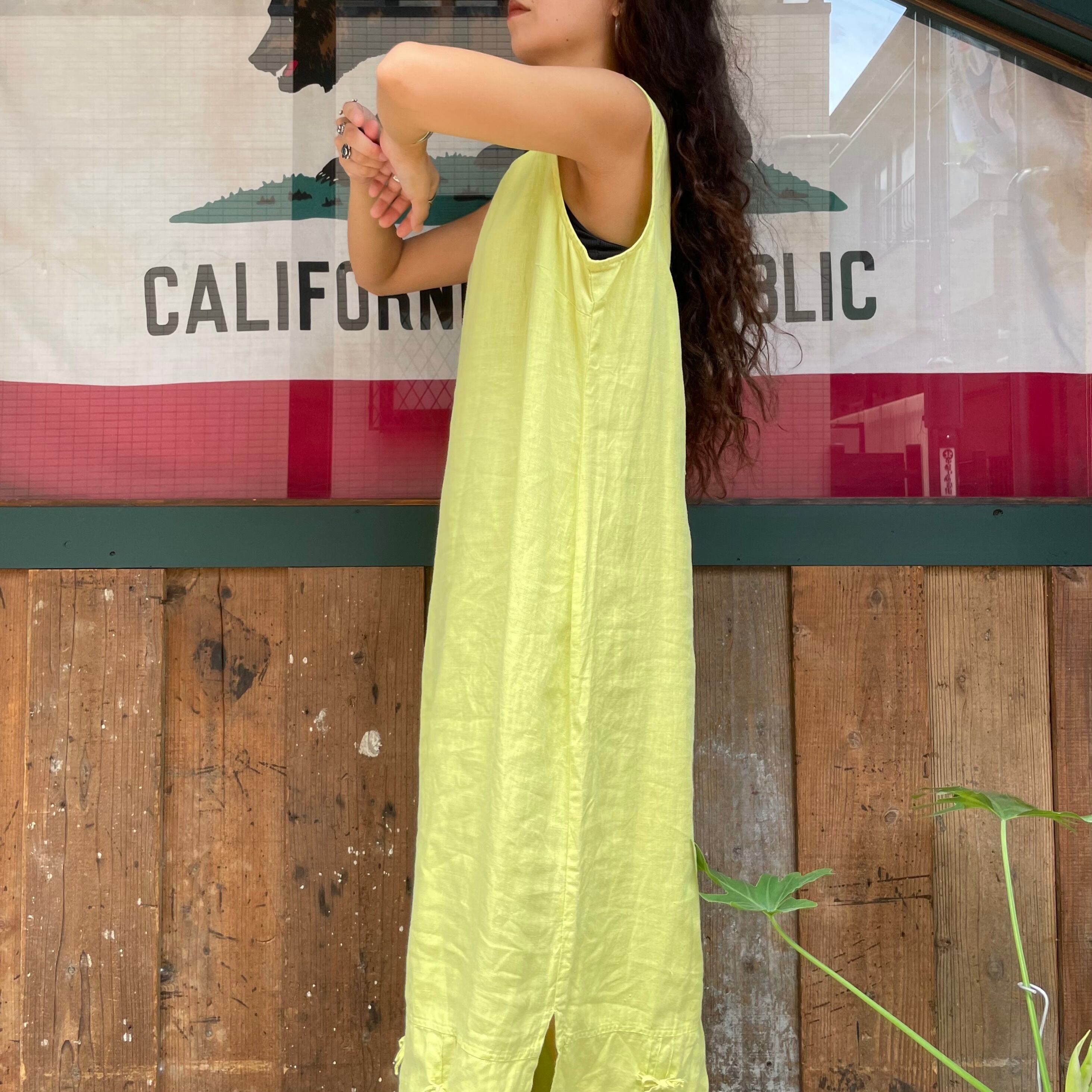 明るいライムグリーンが華やかでかわいいノースリーブのワンピースです。