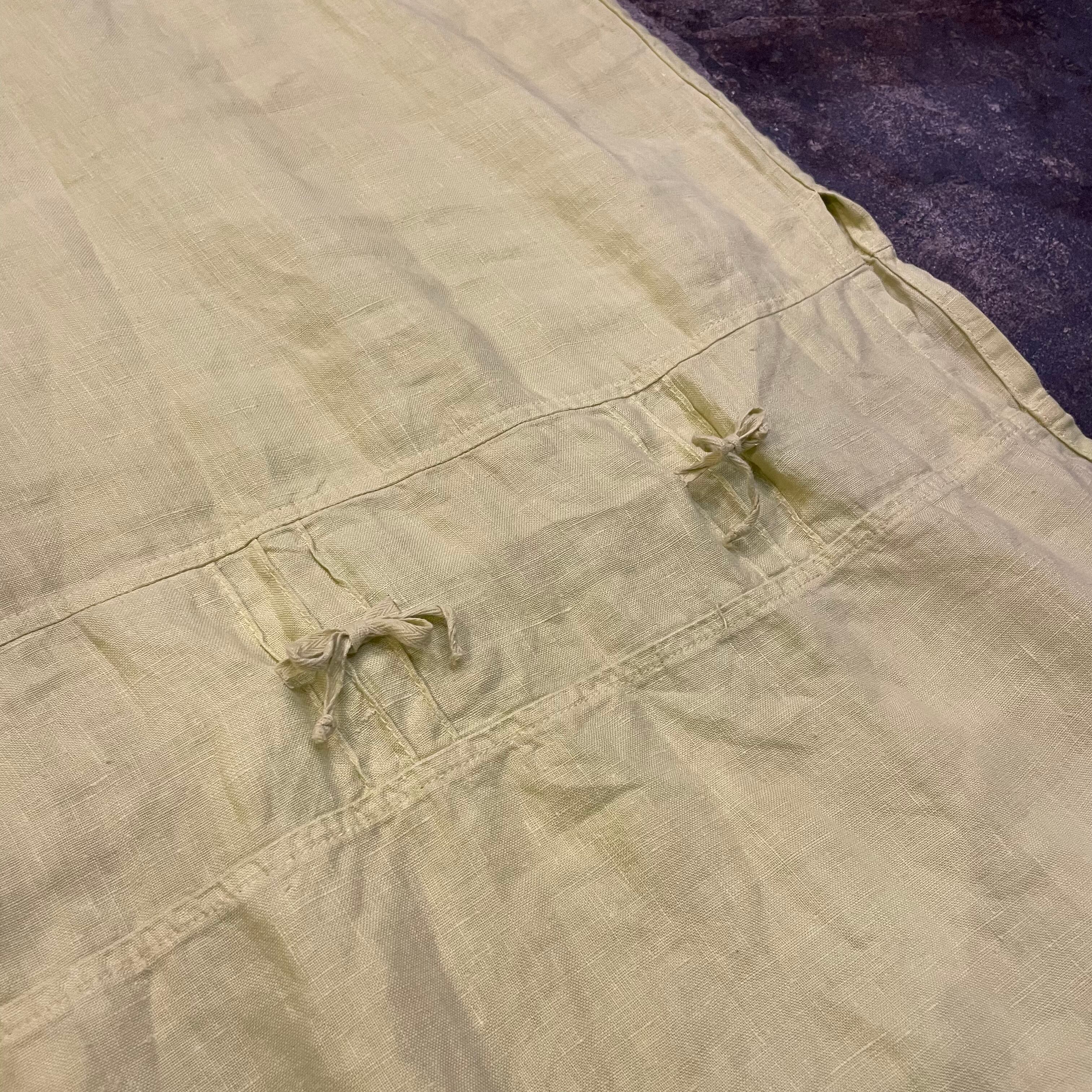リネン素材なので色が明るめですが大人っぽさもあり、裾にリボンのモチーフがありシンプルすぎずさりげなくポイントになっています。