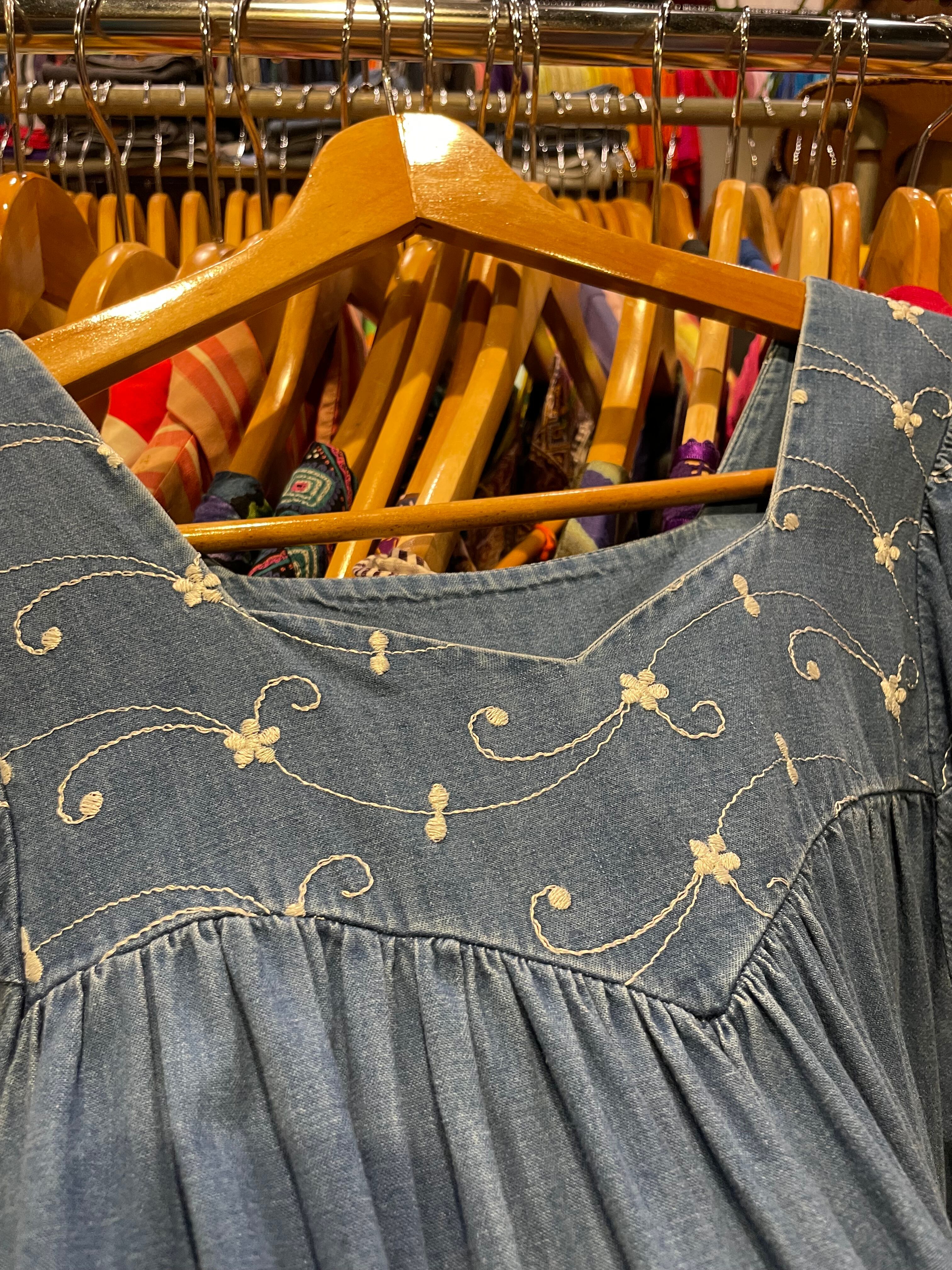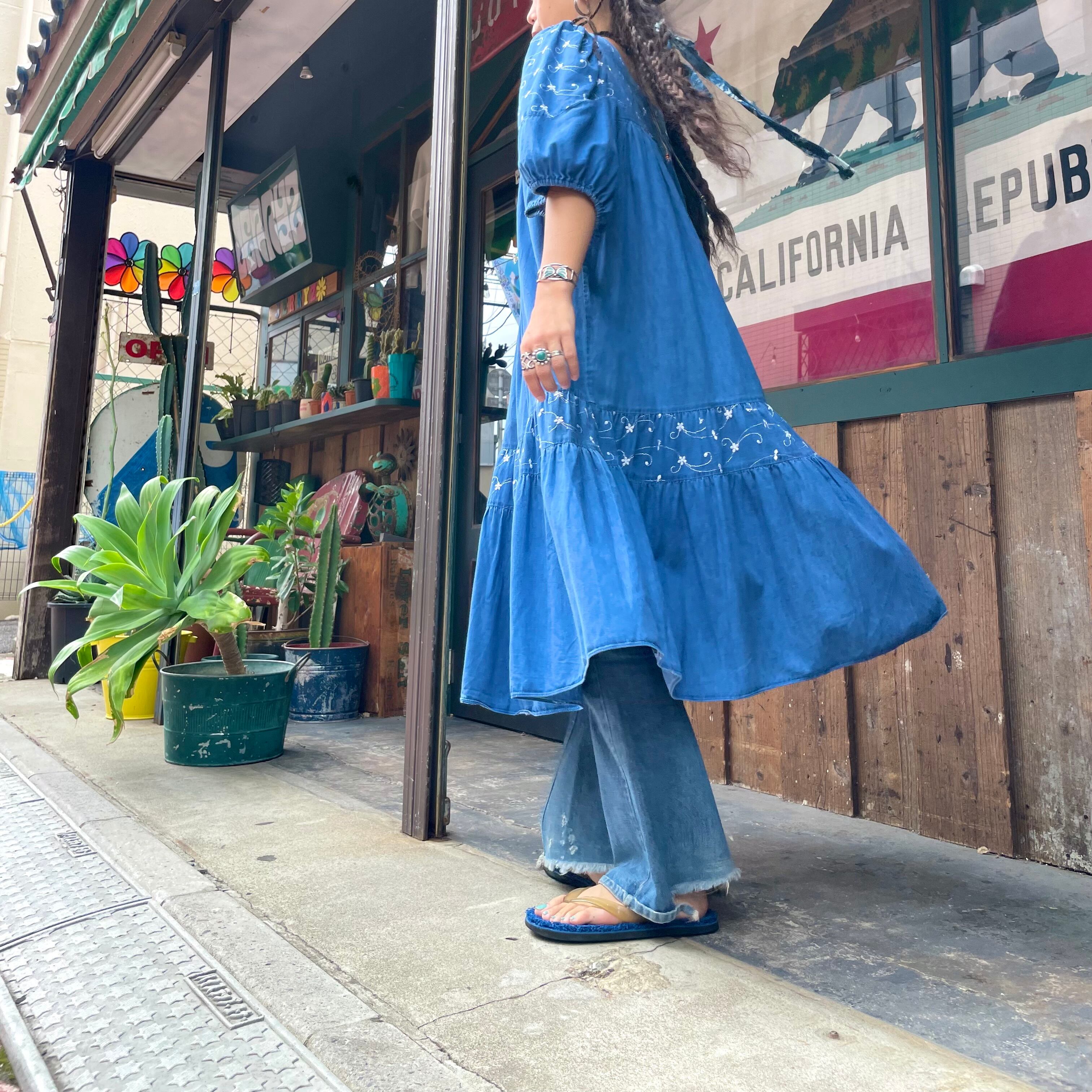 デニムパンツやデニムエプロンとデニムオンデニムなスタイルもかわいいですし、ベルトでウエストマークして着るのも良さそうです。