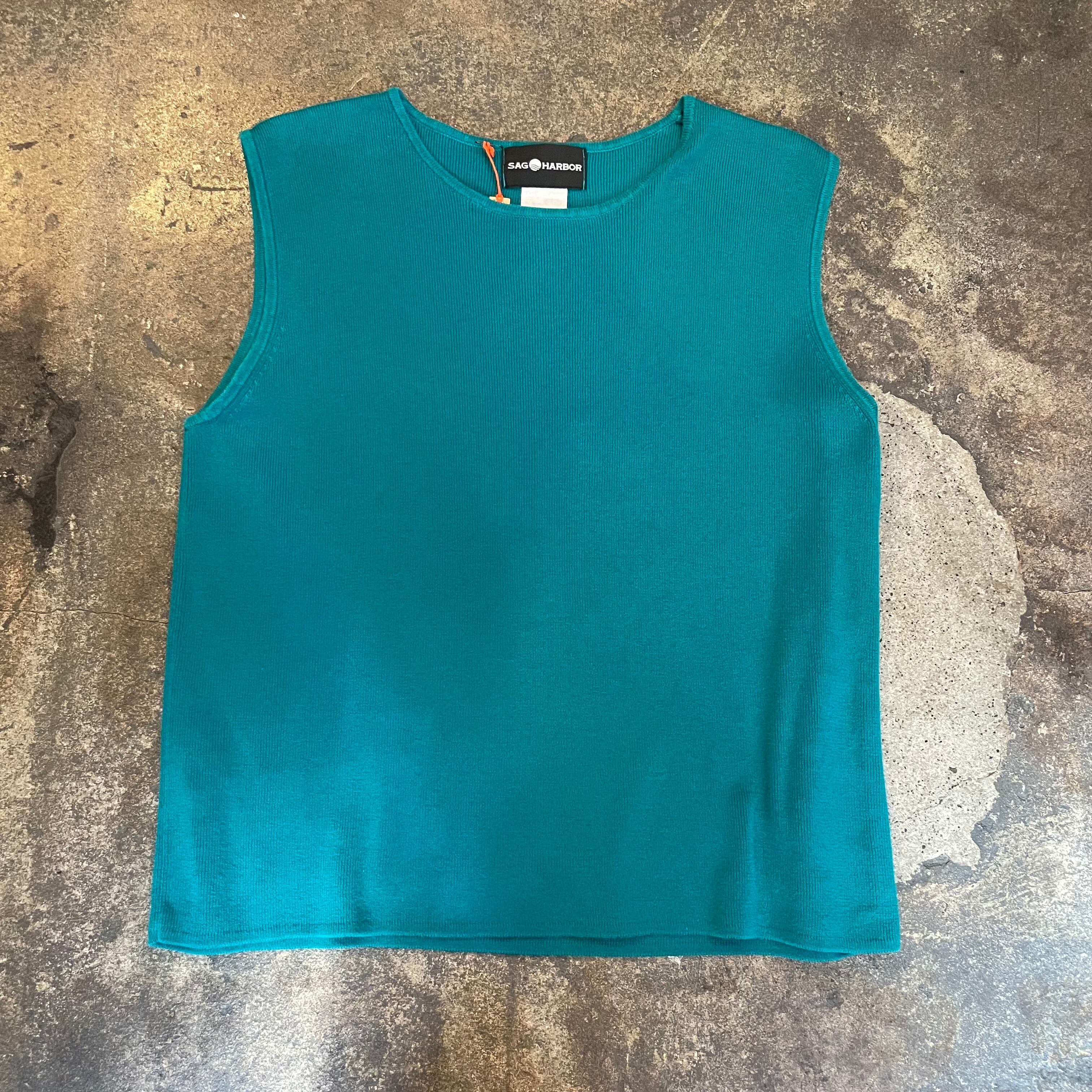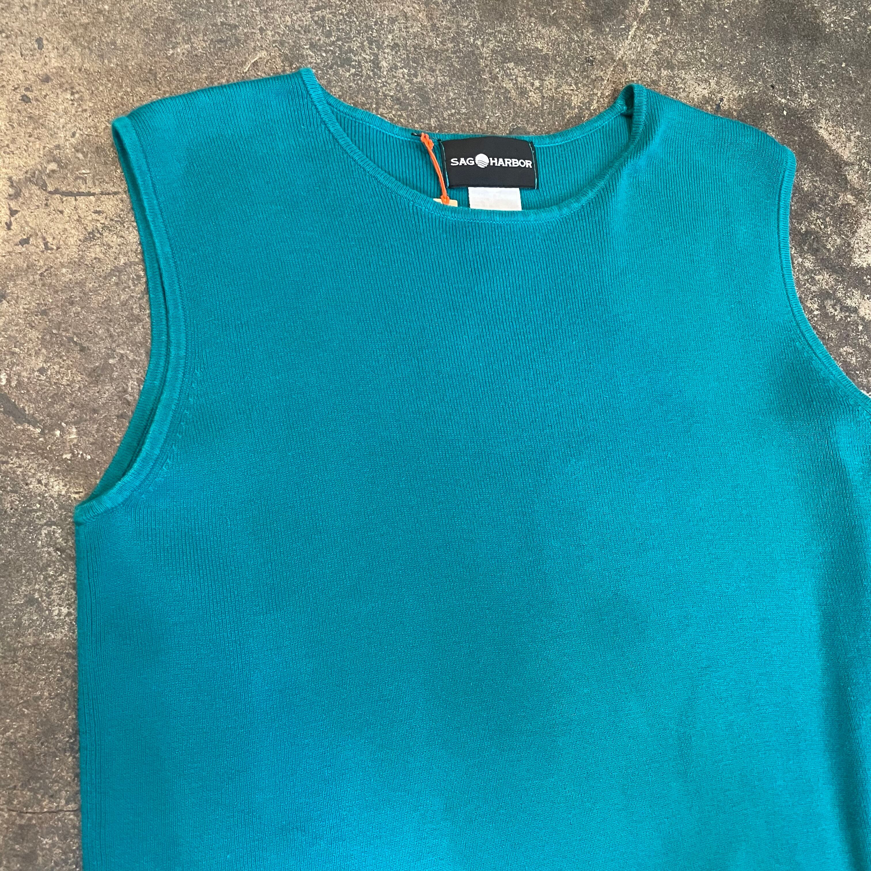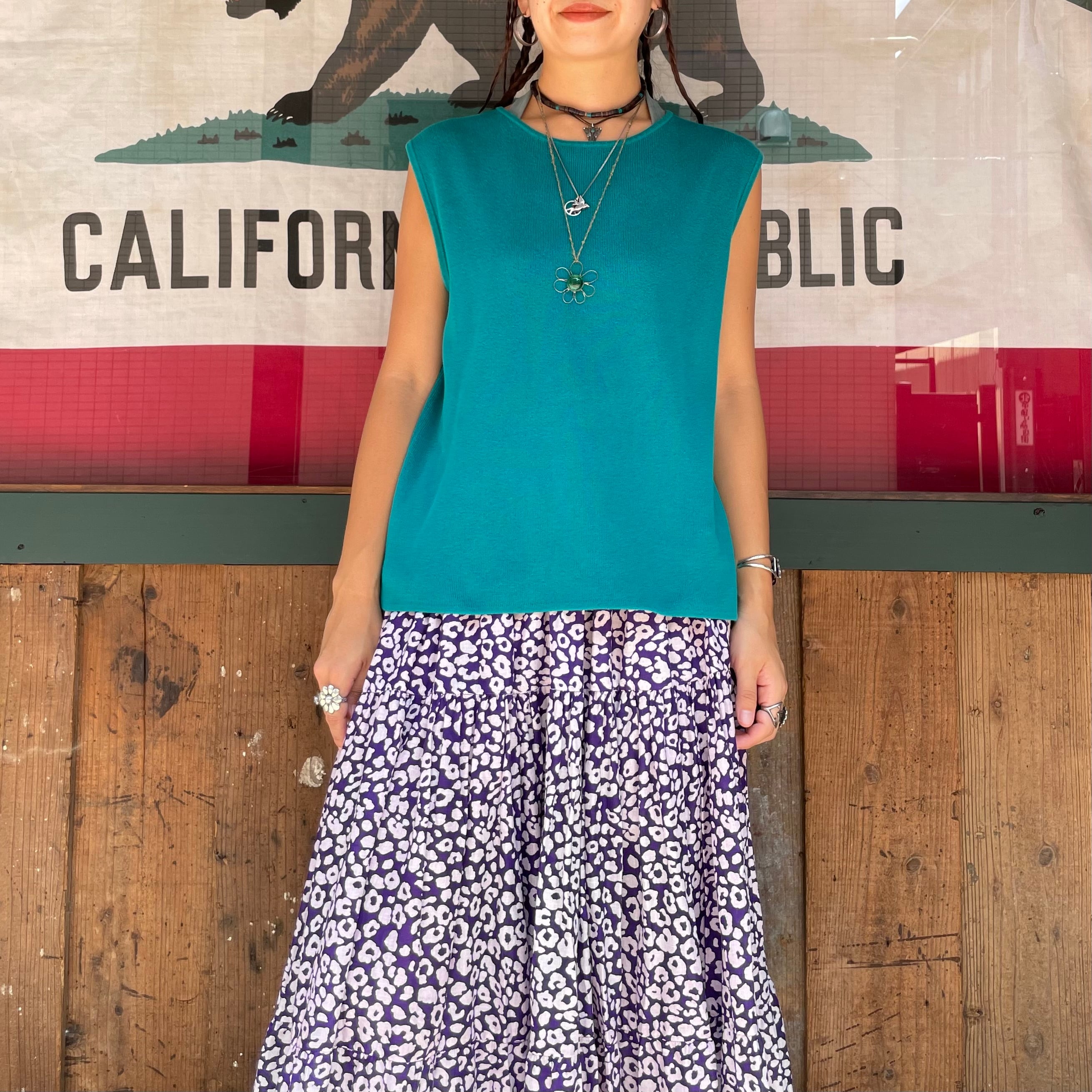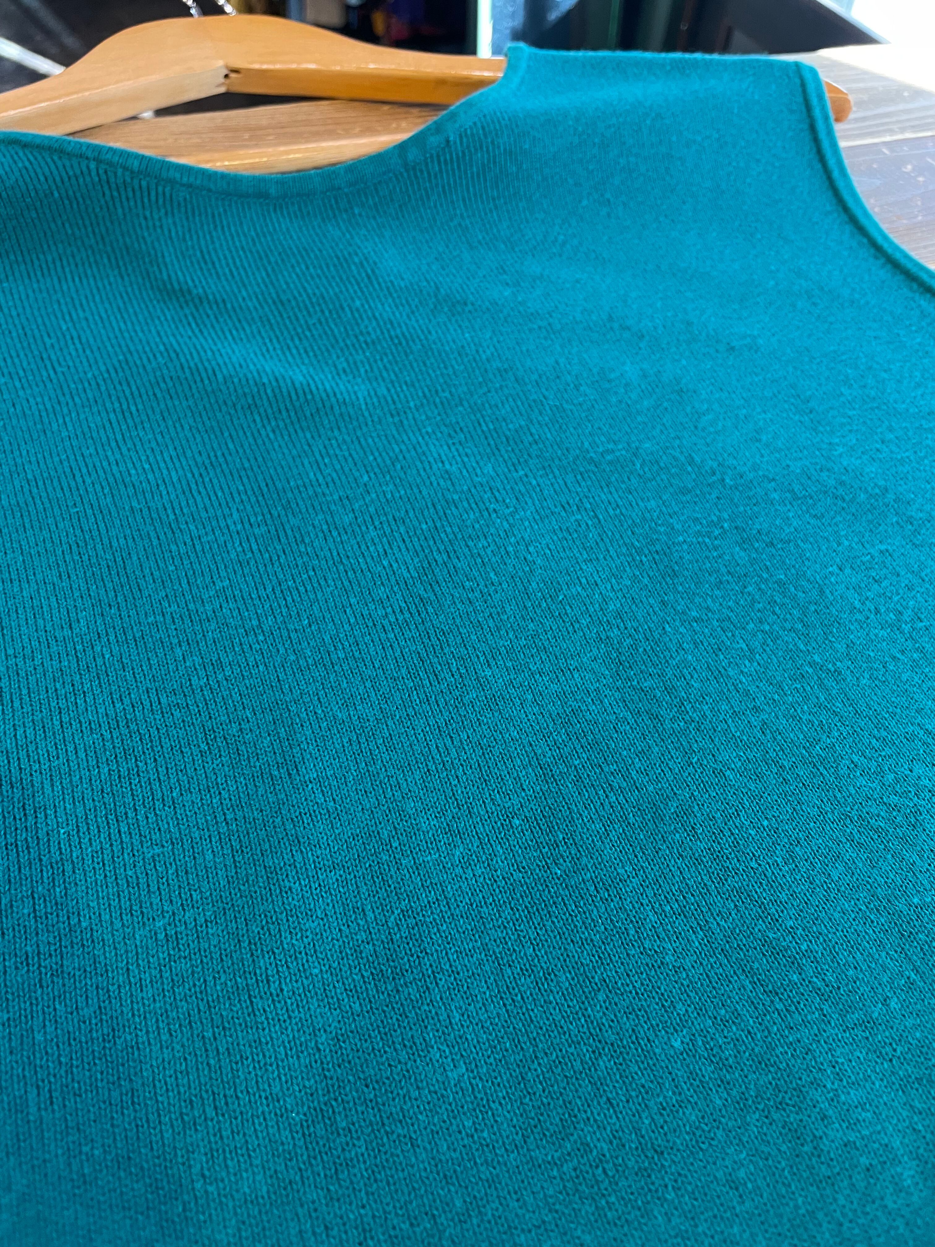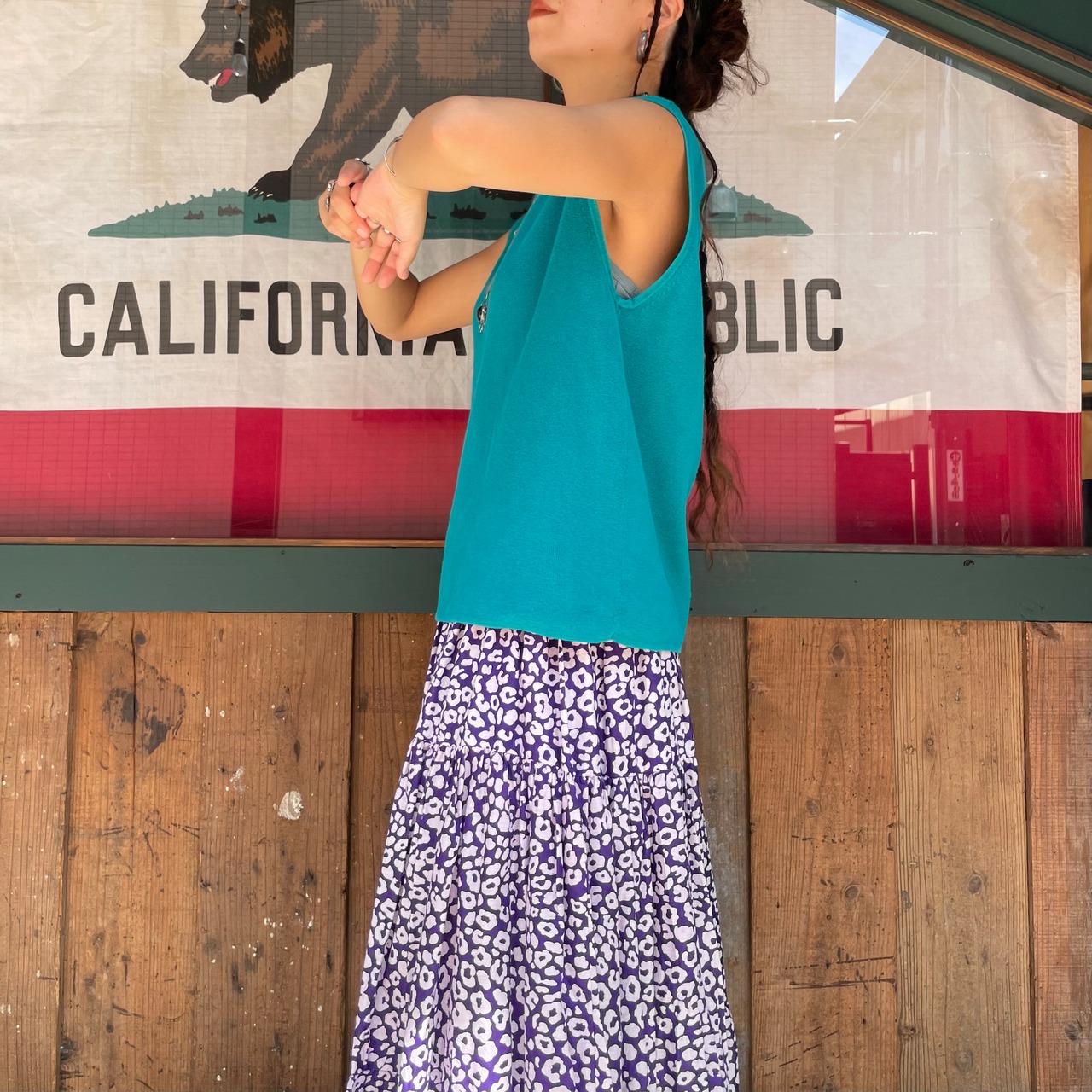 ターコイズカラーがきれいなコットンニットタンクトップです。