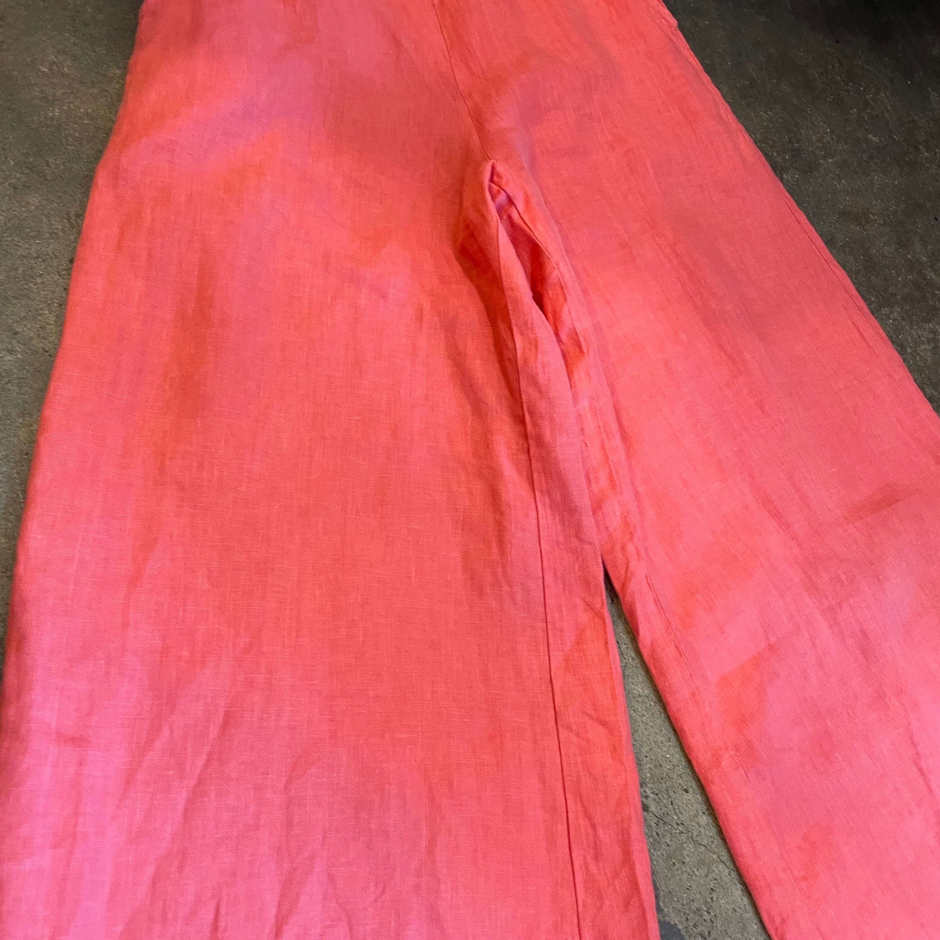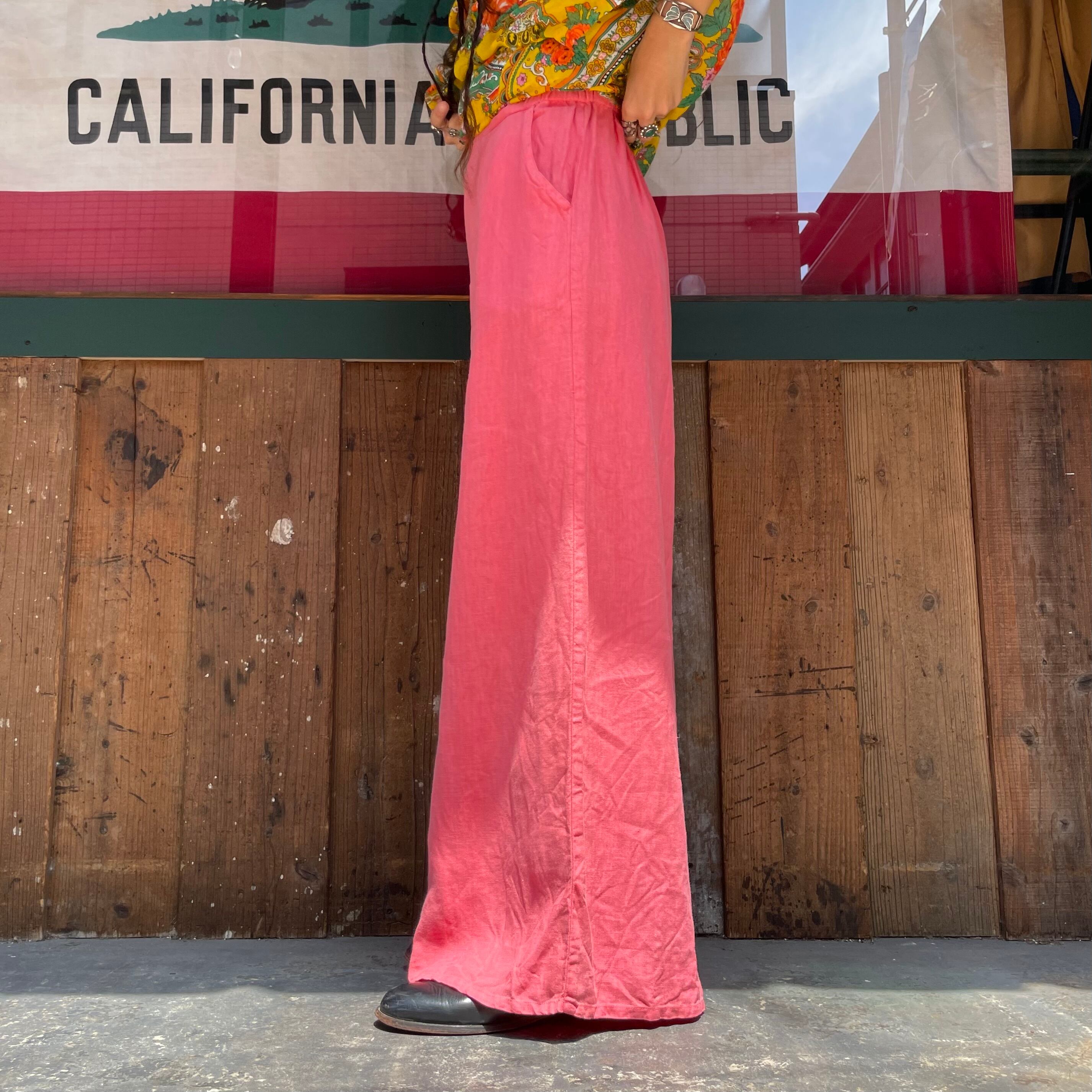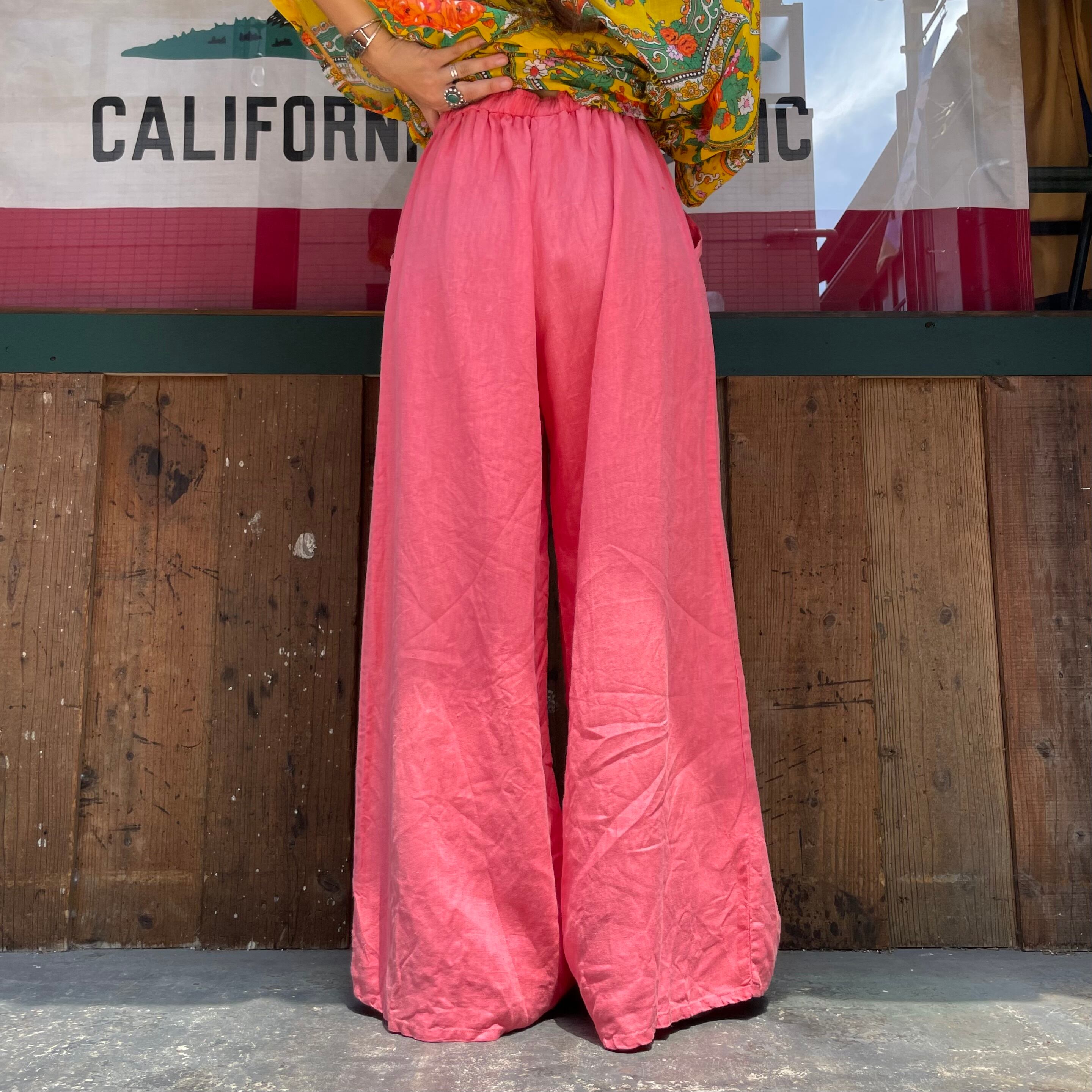 pink linen easy buggy flare pants
