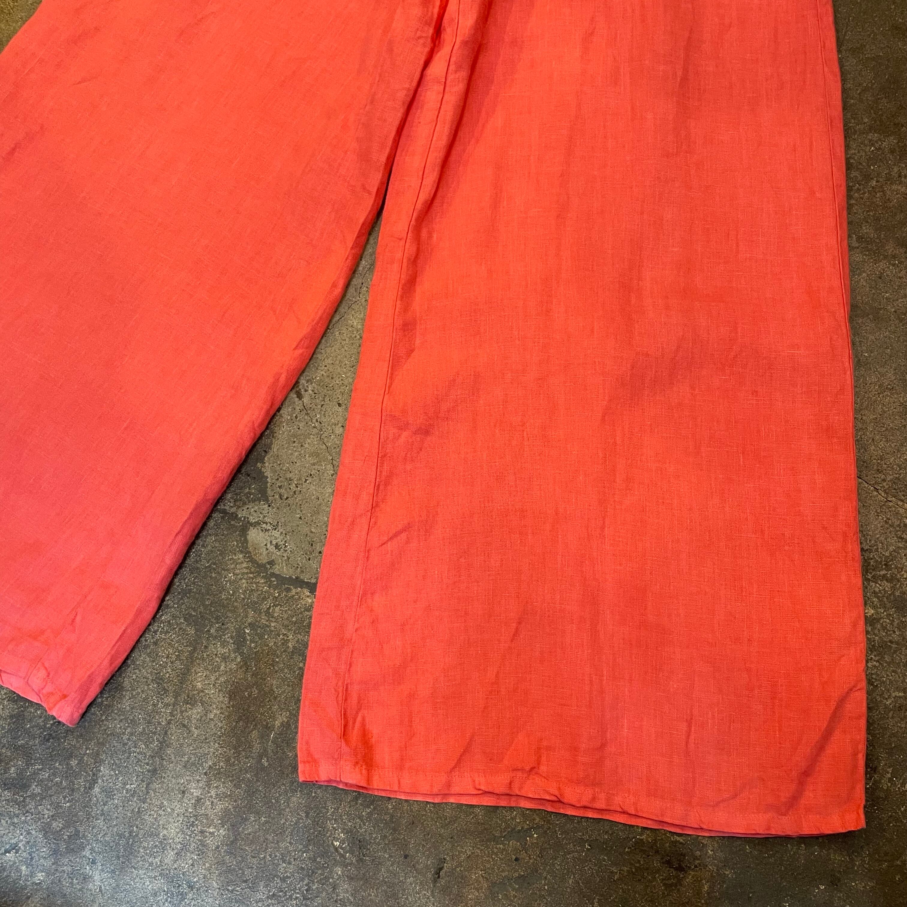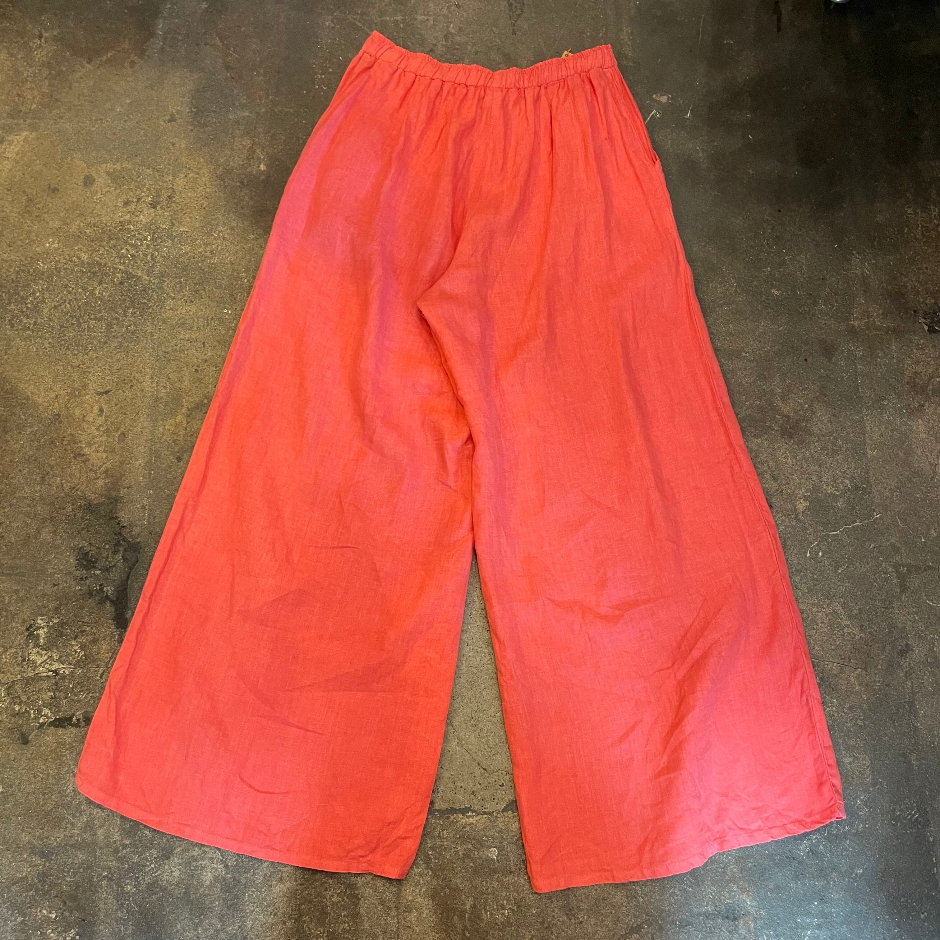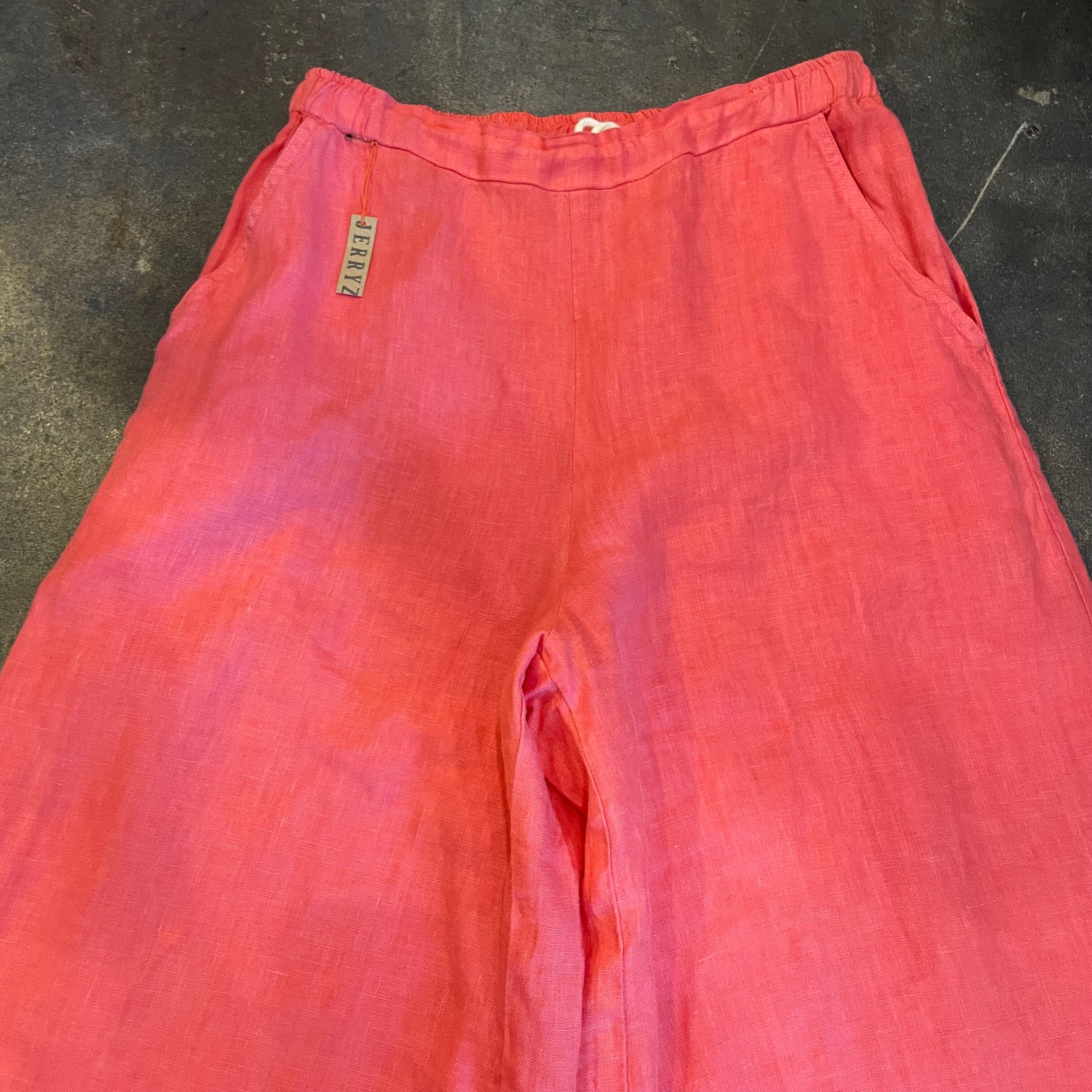 pink linen easy buggy flare pants