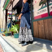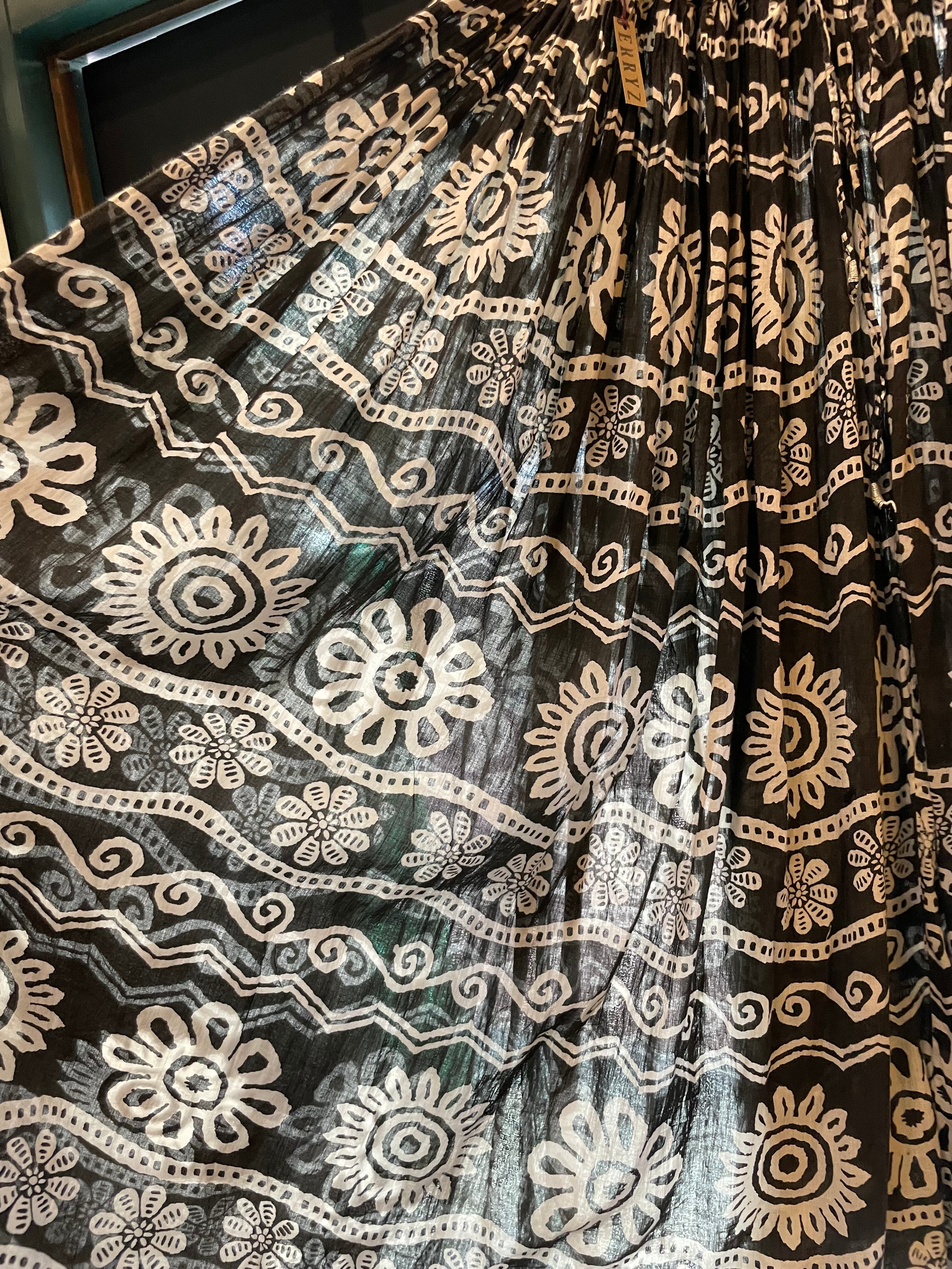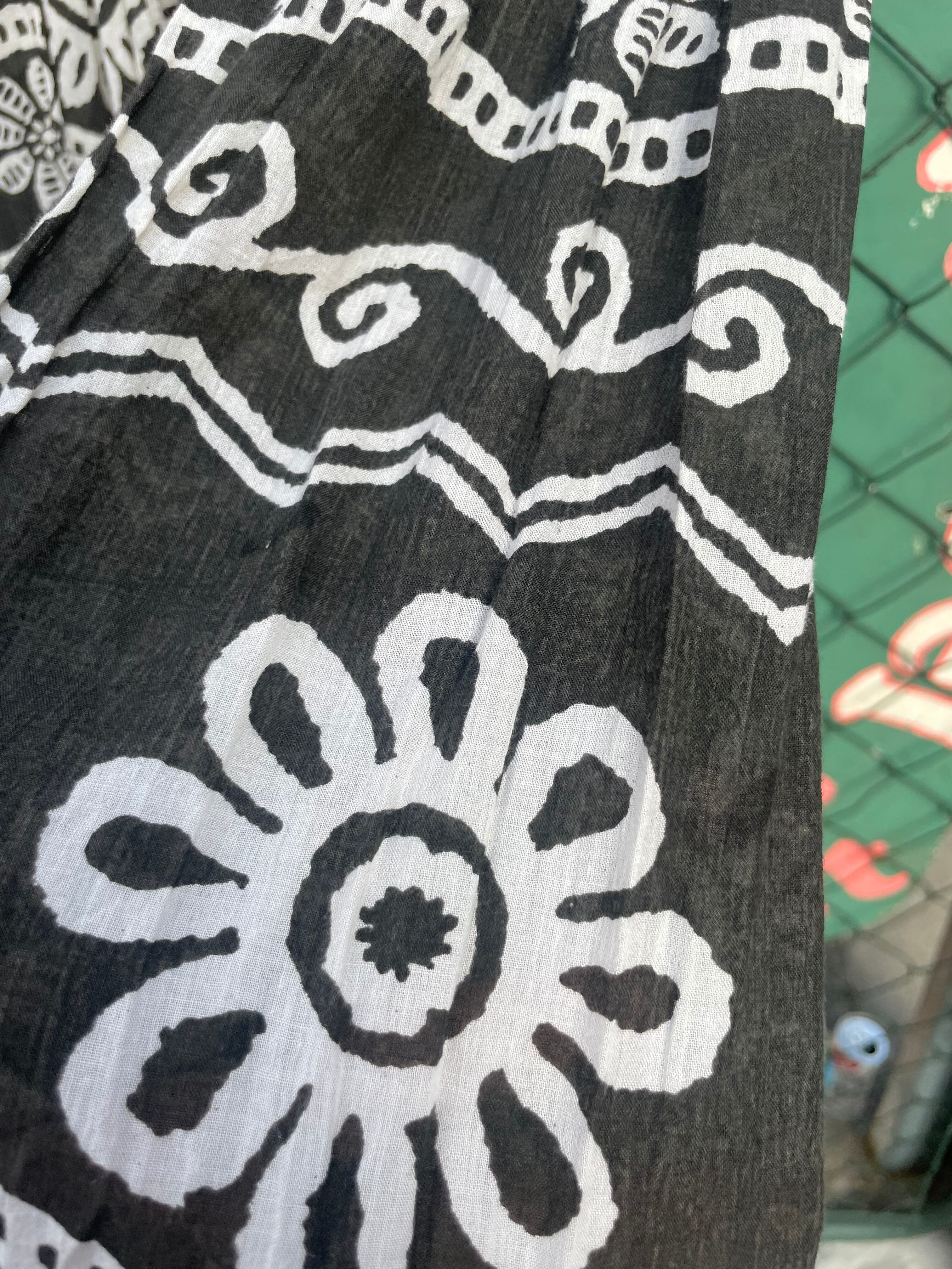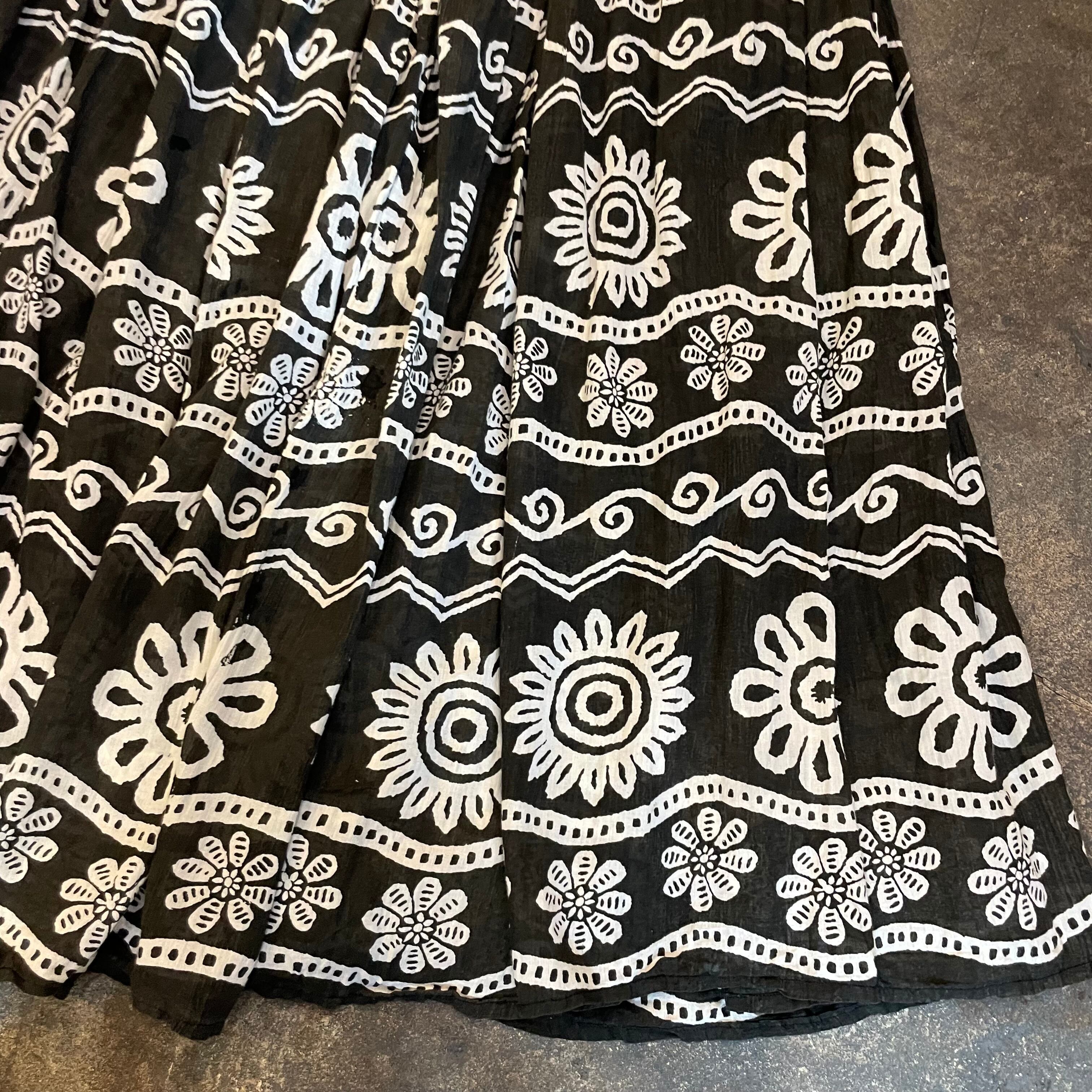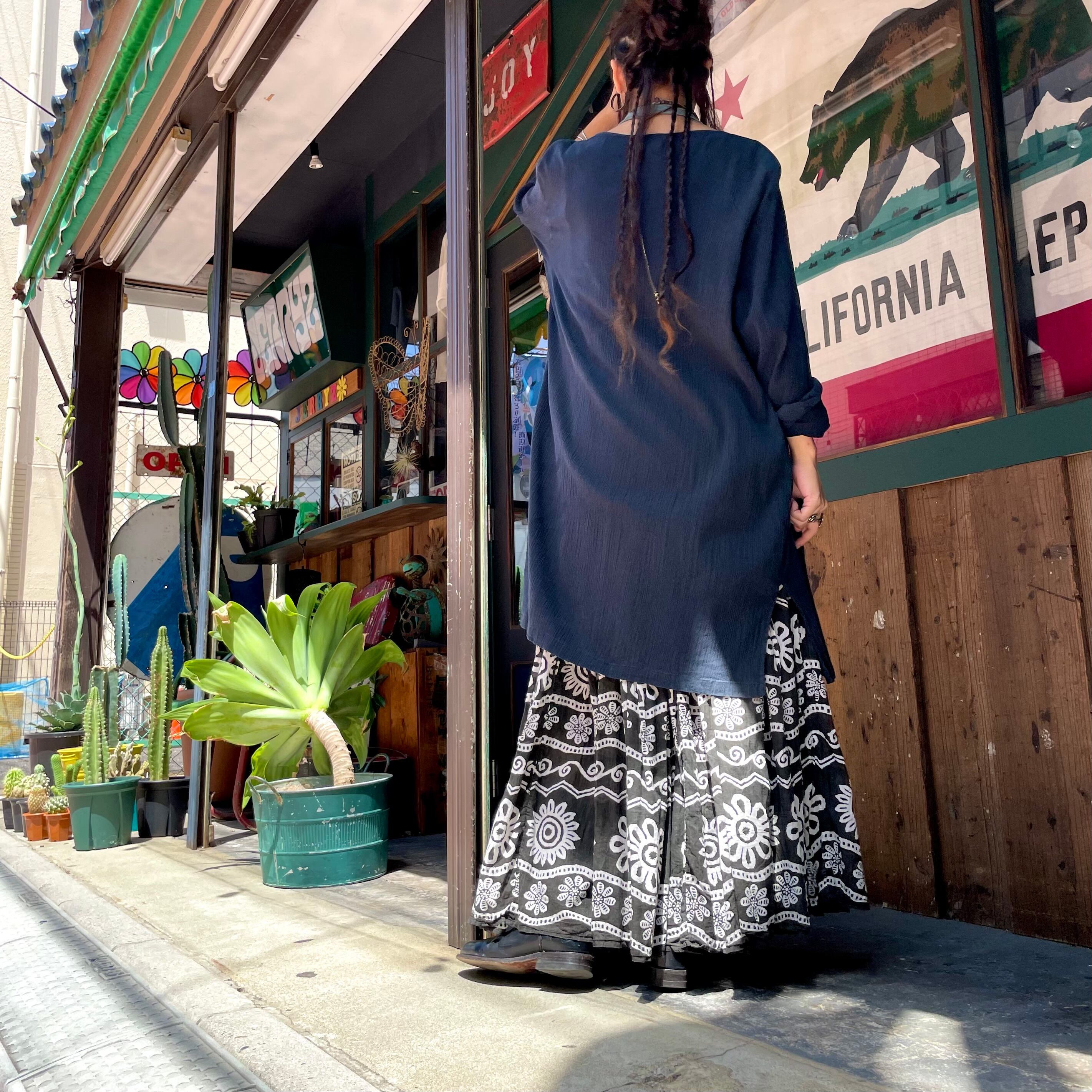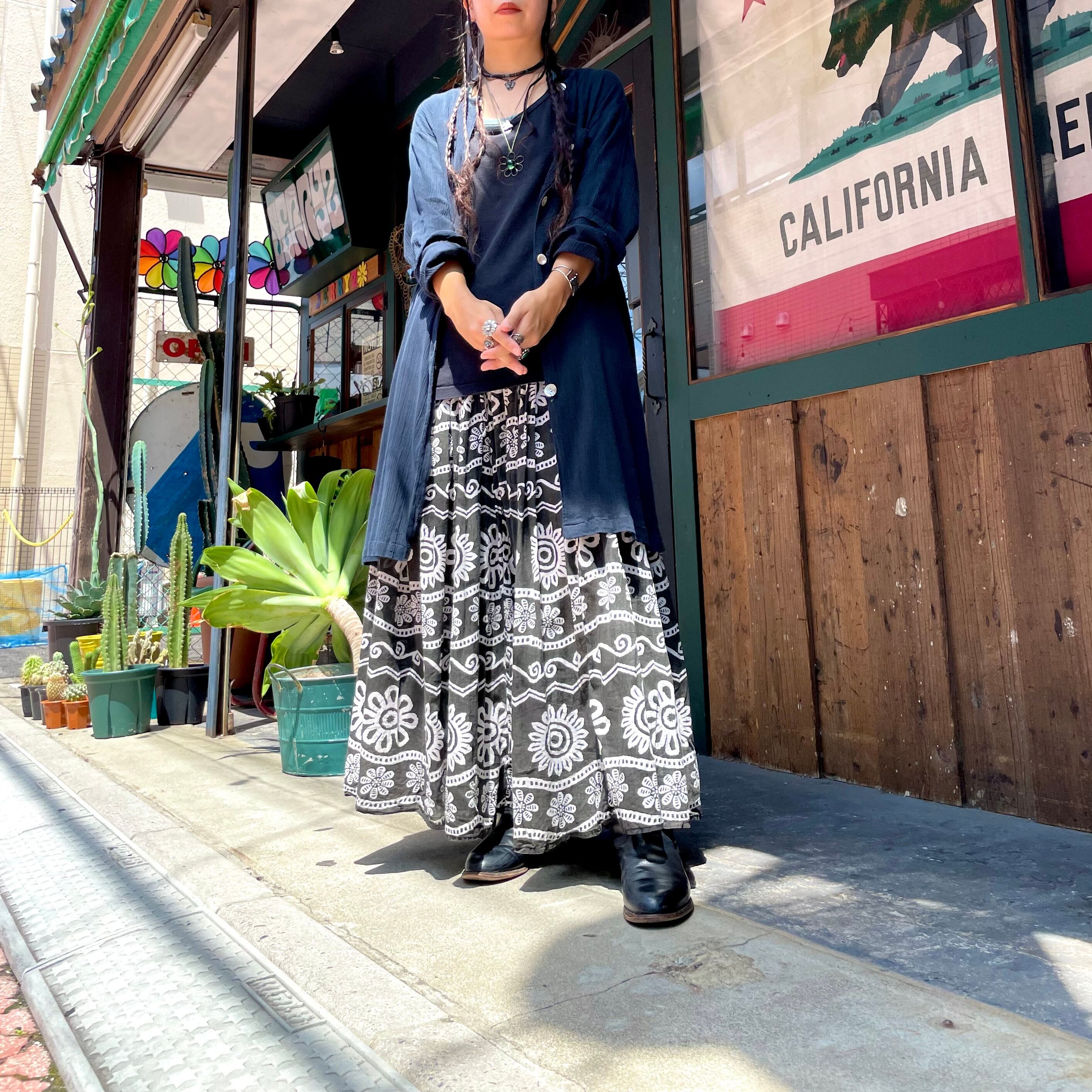 お花と太陽のポリネシアンな雰囲気の柄がかわいいインドコットンのスカートです。