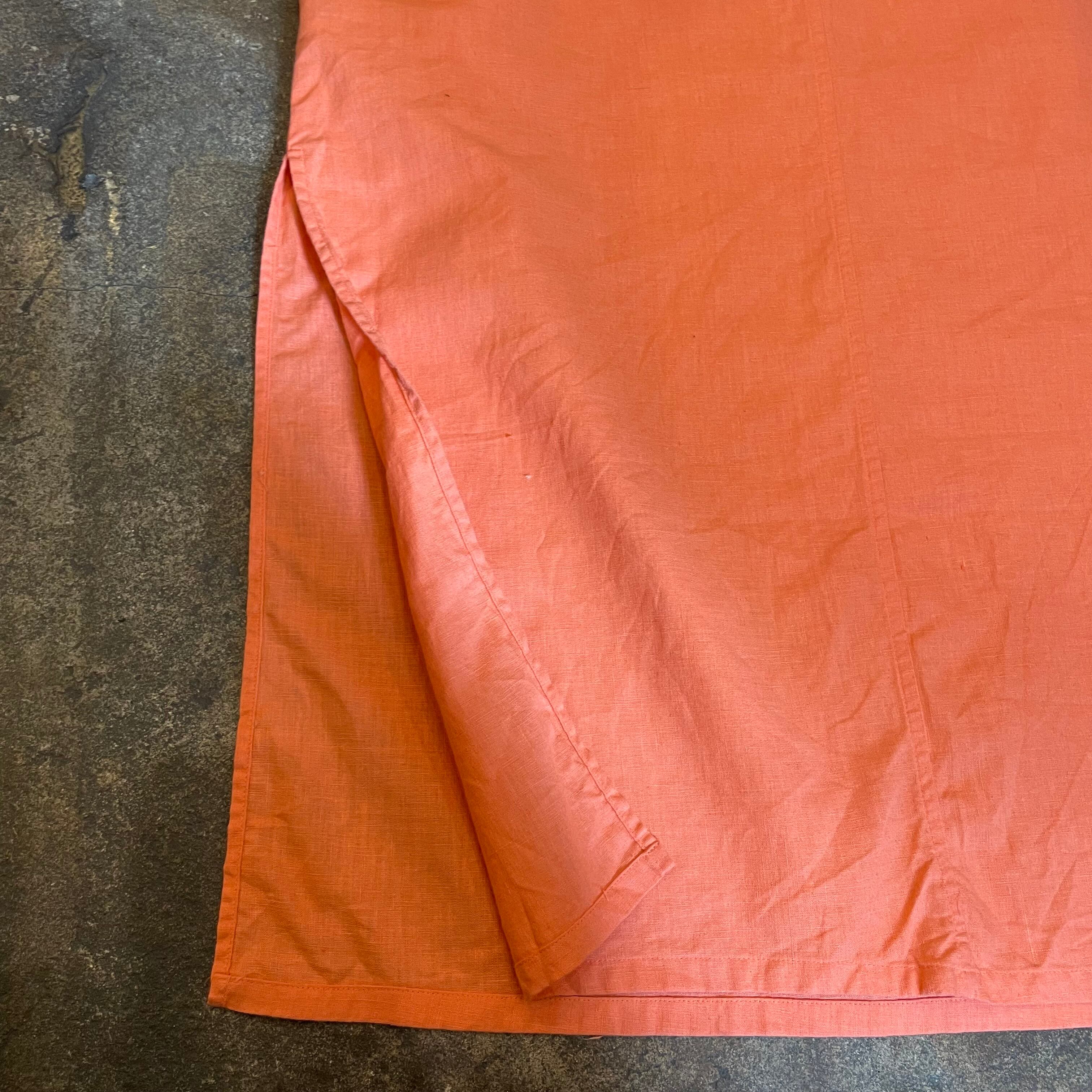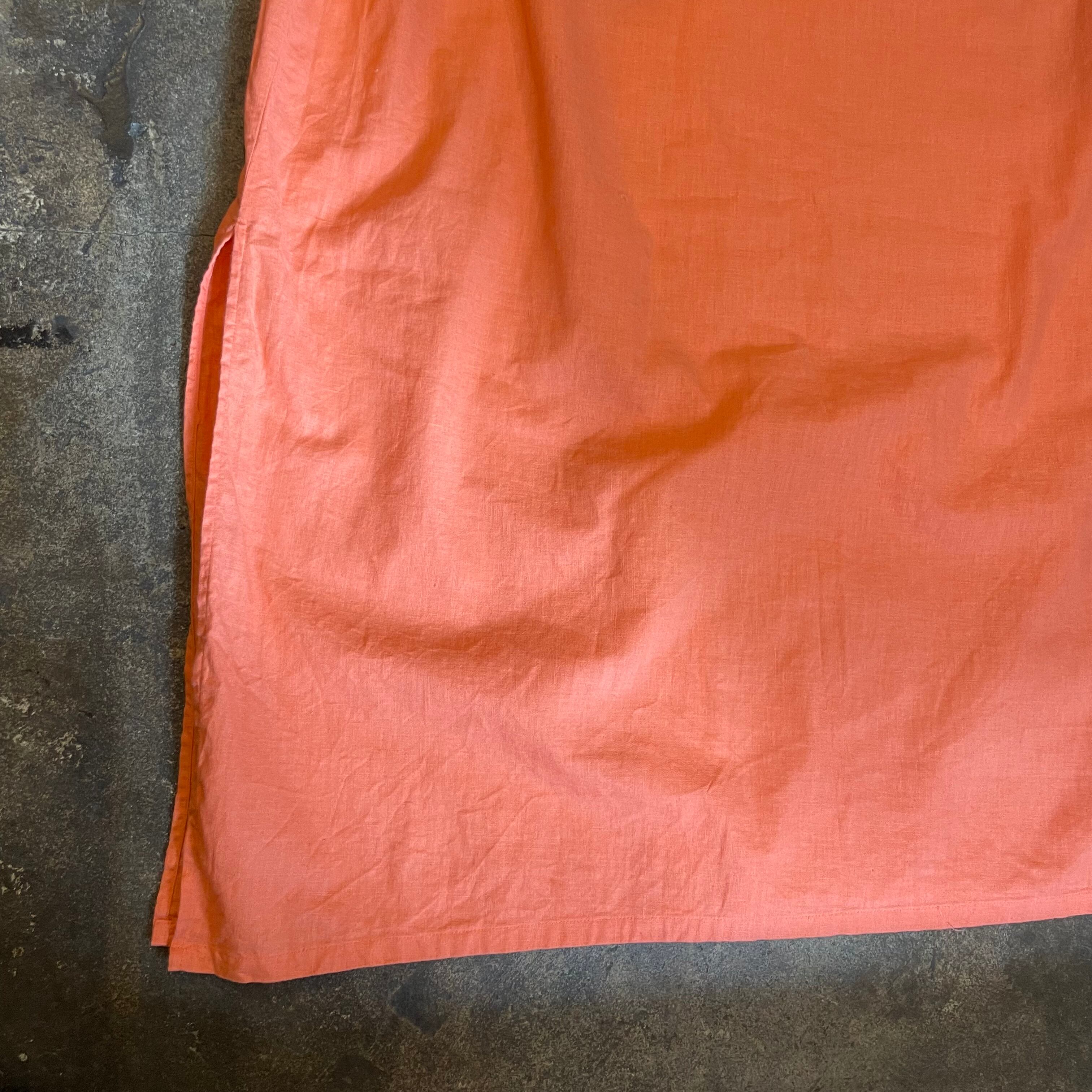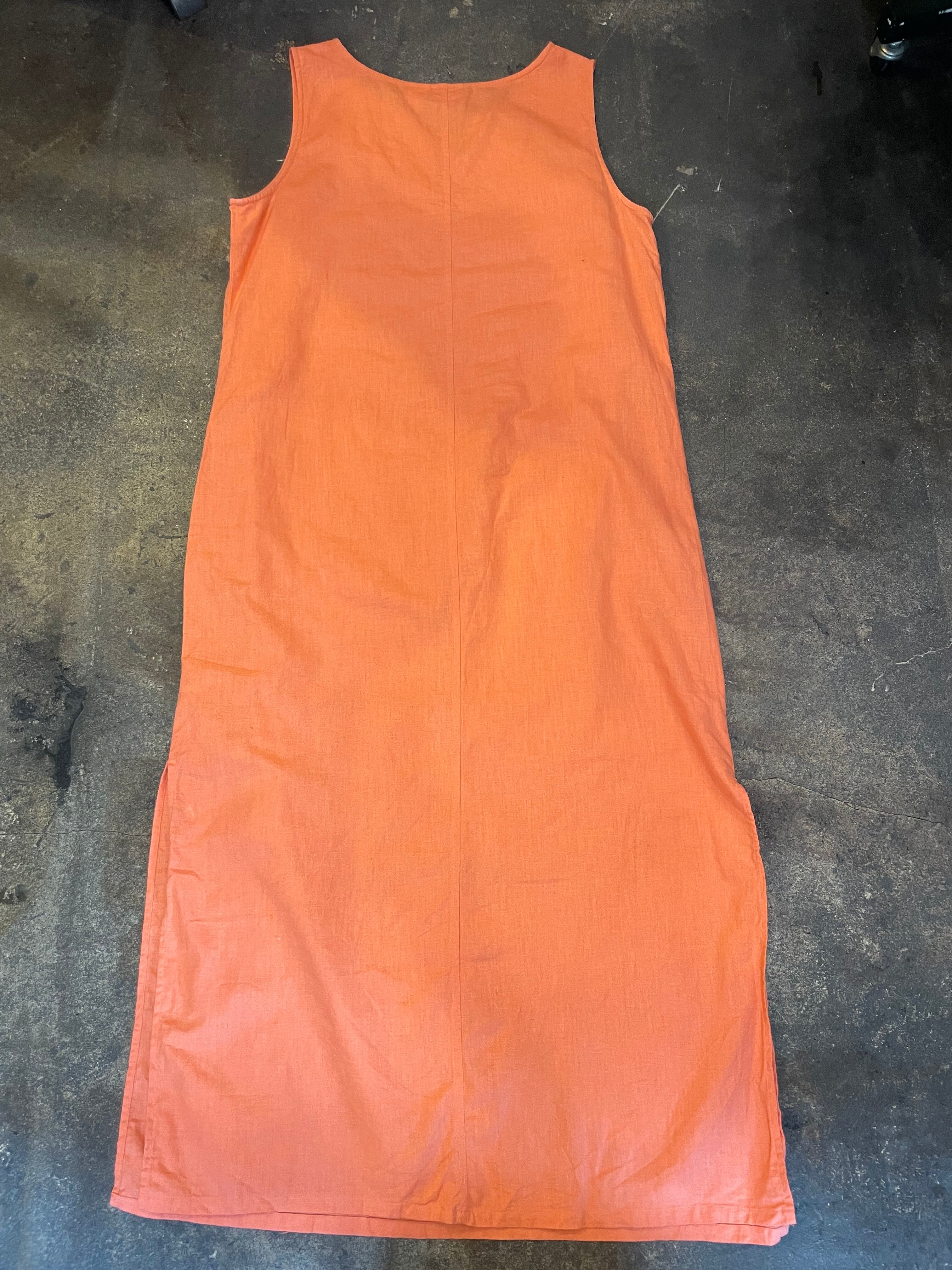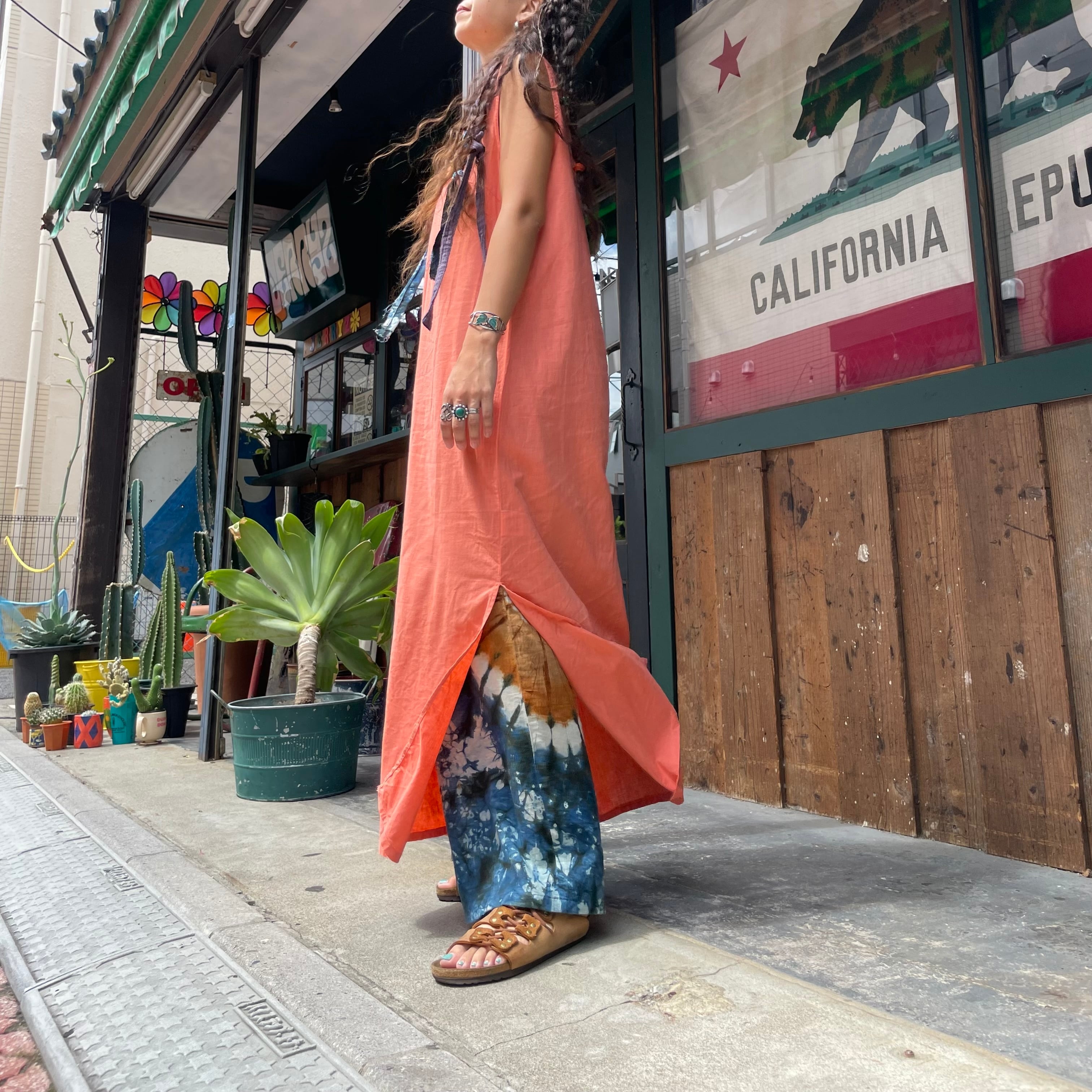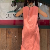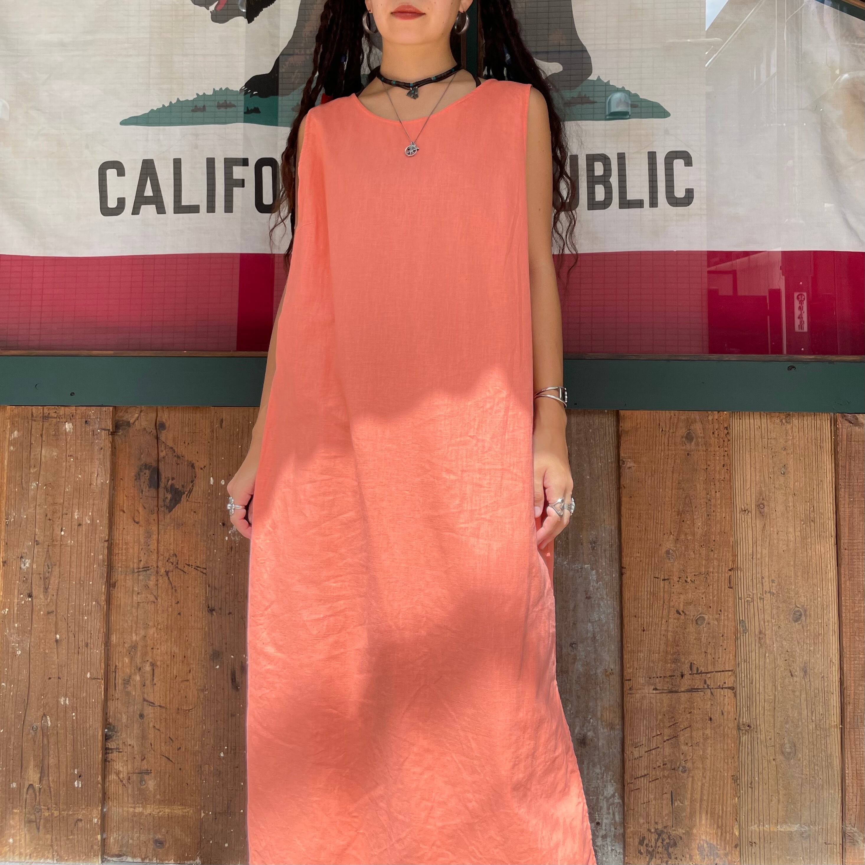 サーモンピンクっぽい優しい色味がかわいいノースリーブワンピースです。