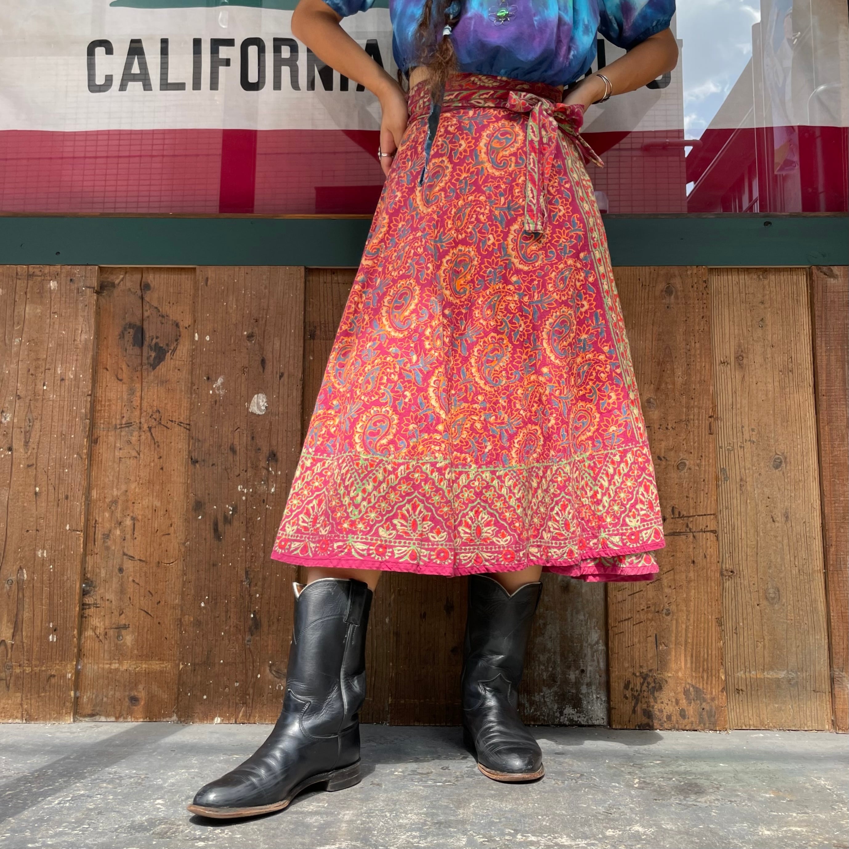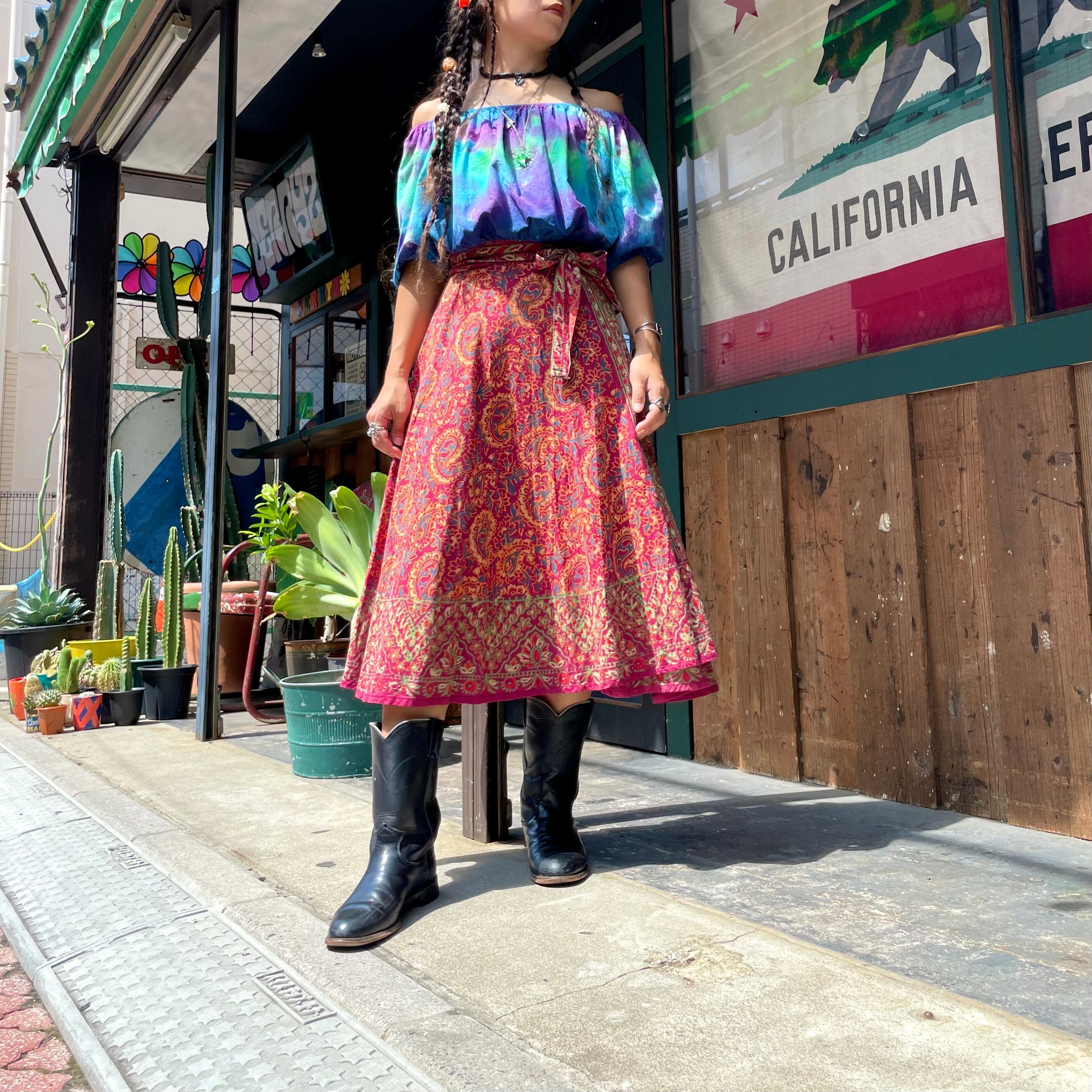 ブロックプリントがかわいい、インド製コットン素材の巻きスカートです。