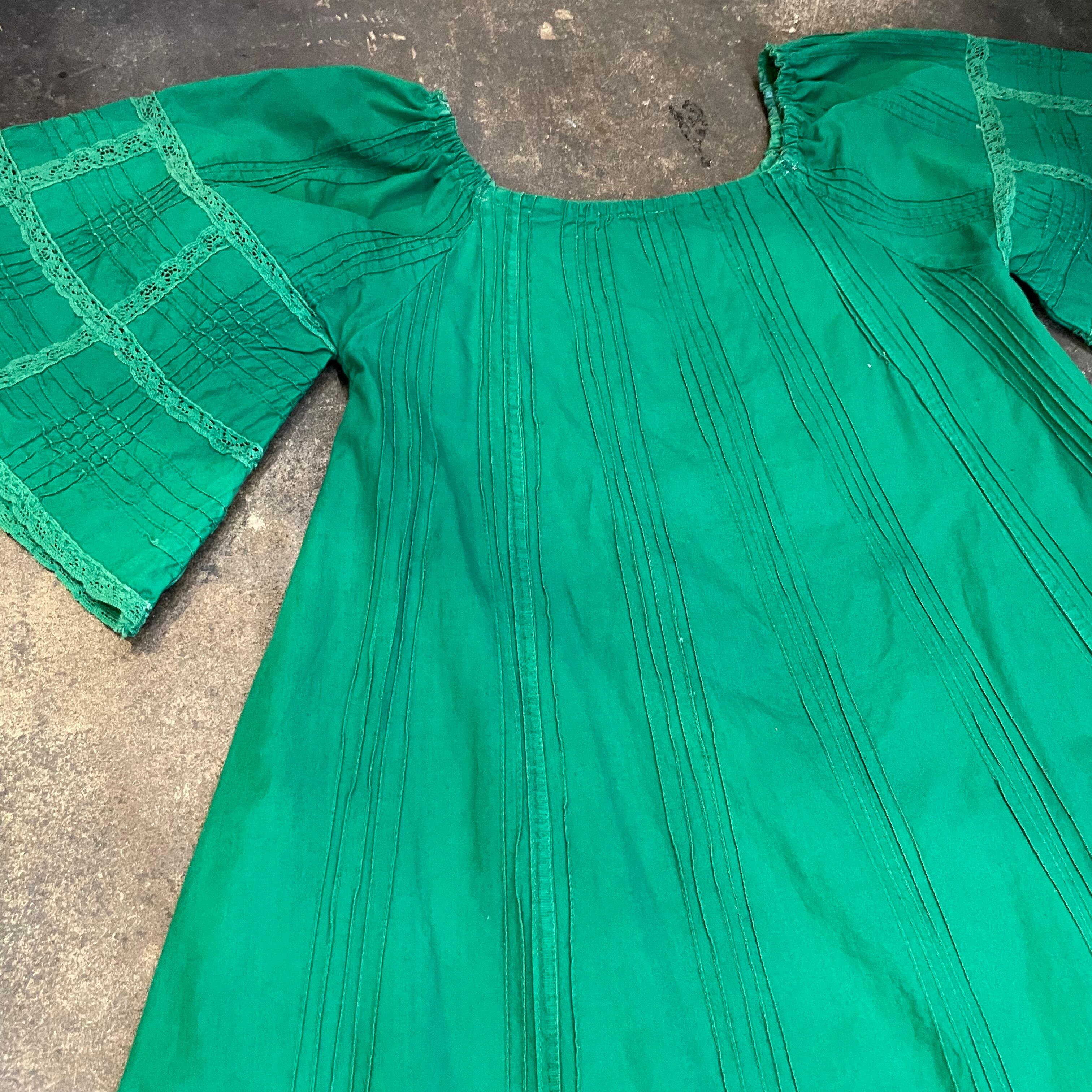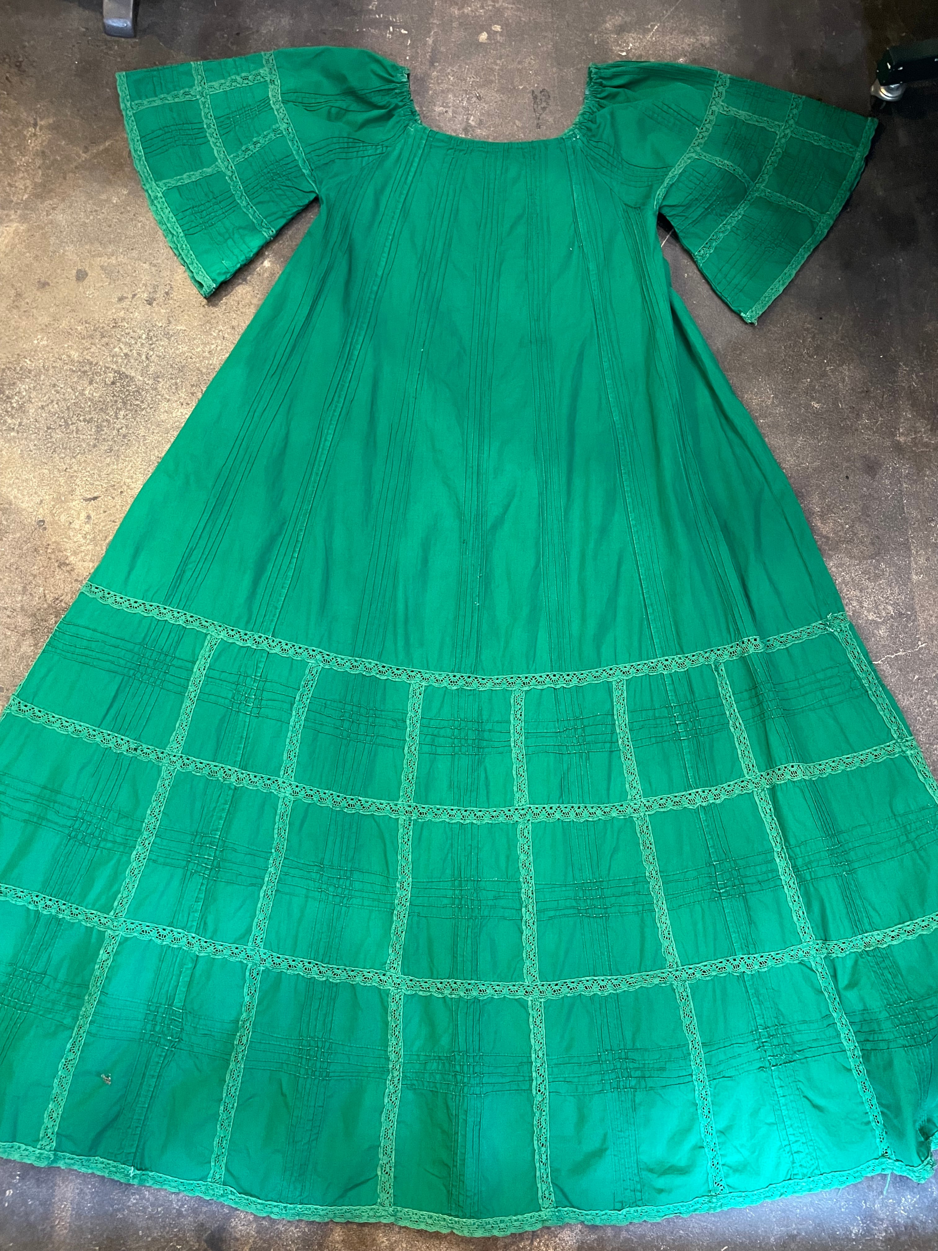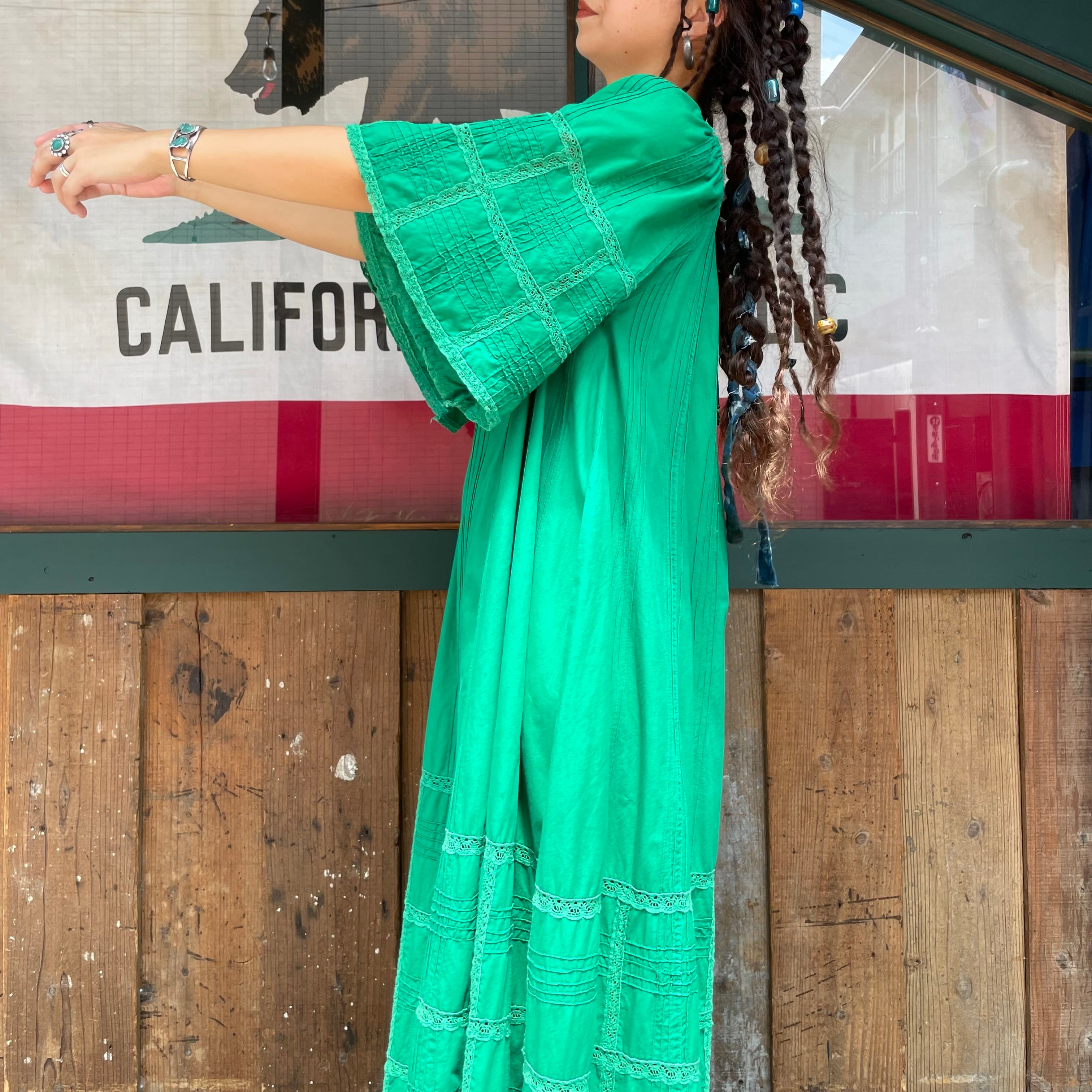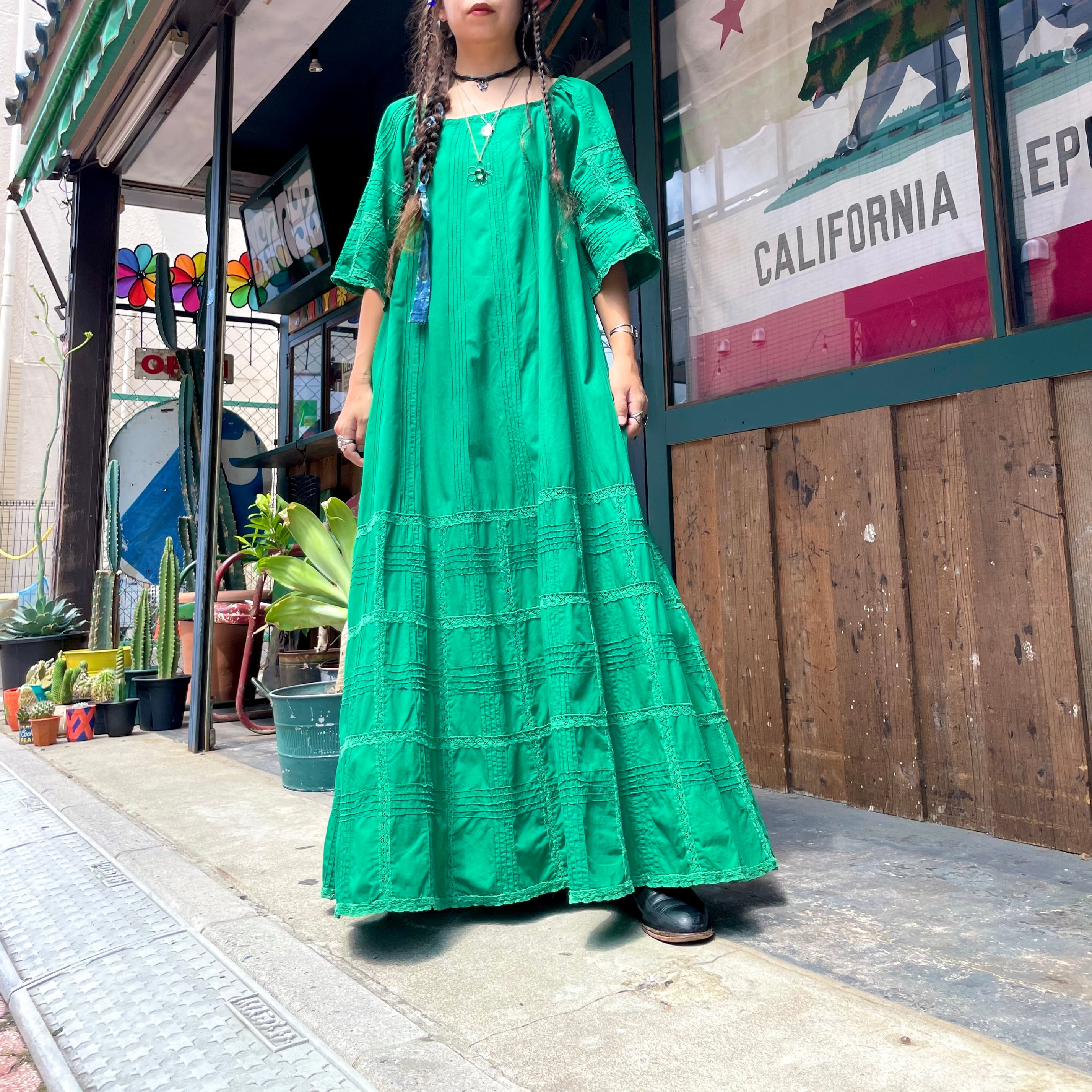 鮮やかできれいな色味のグリーンがとても素敵な70年代頃のメキシコのワンピースです。
