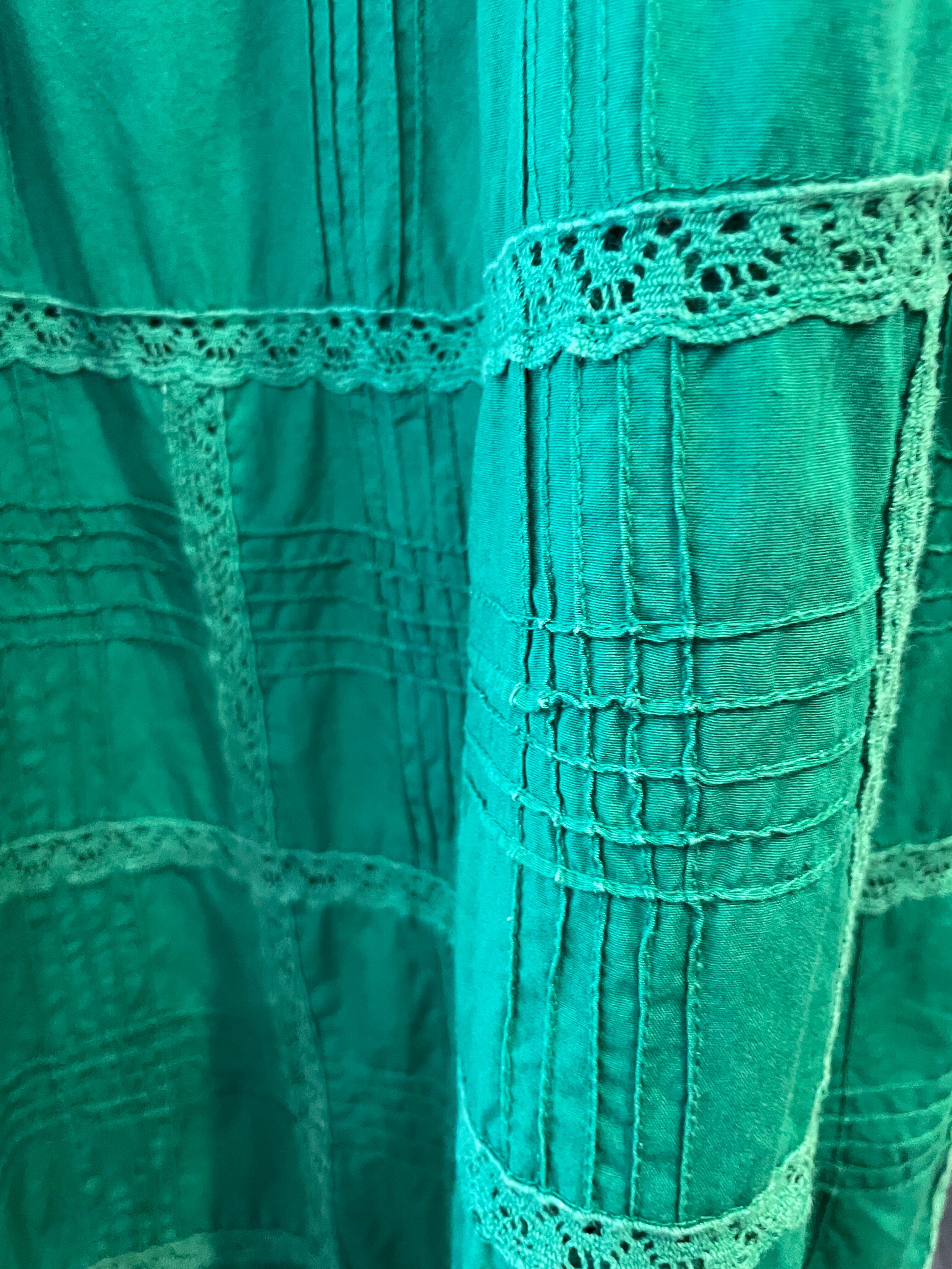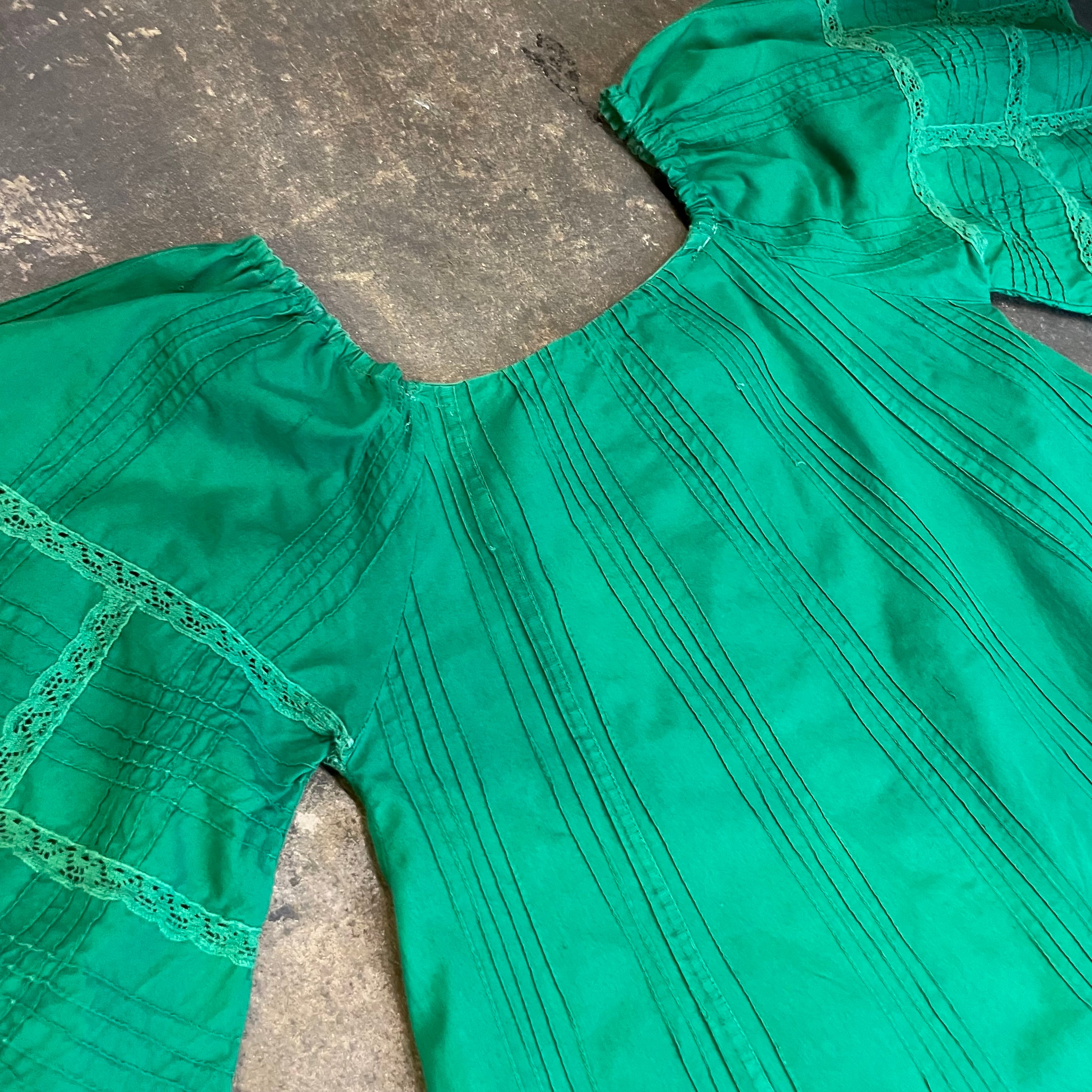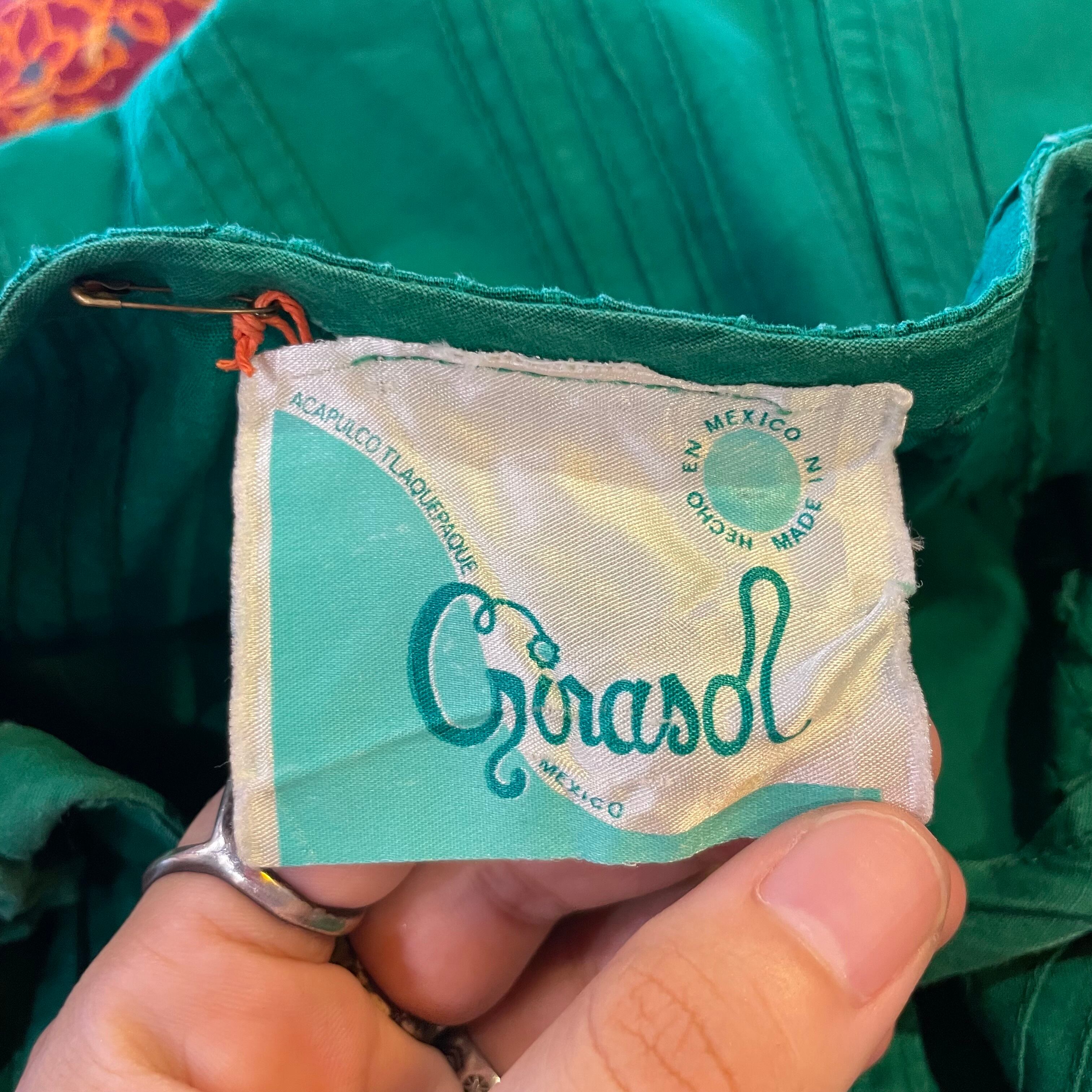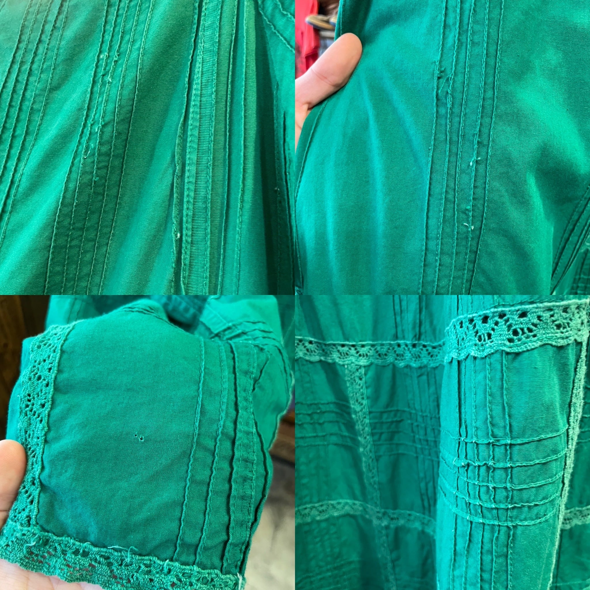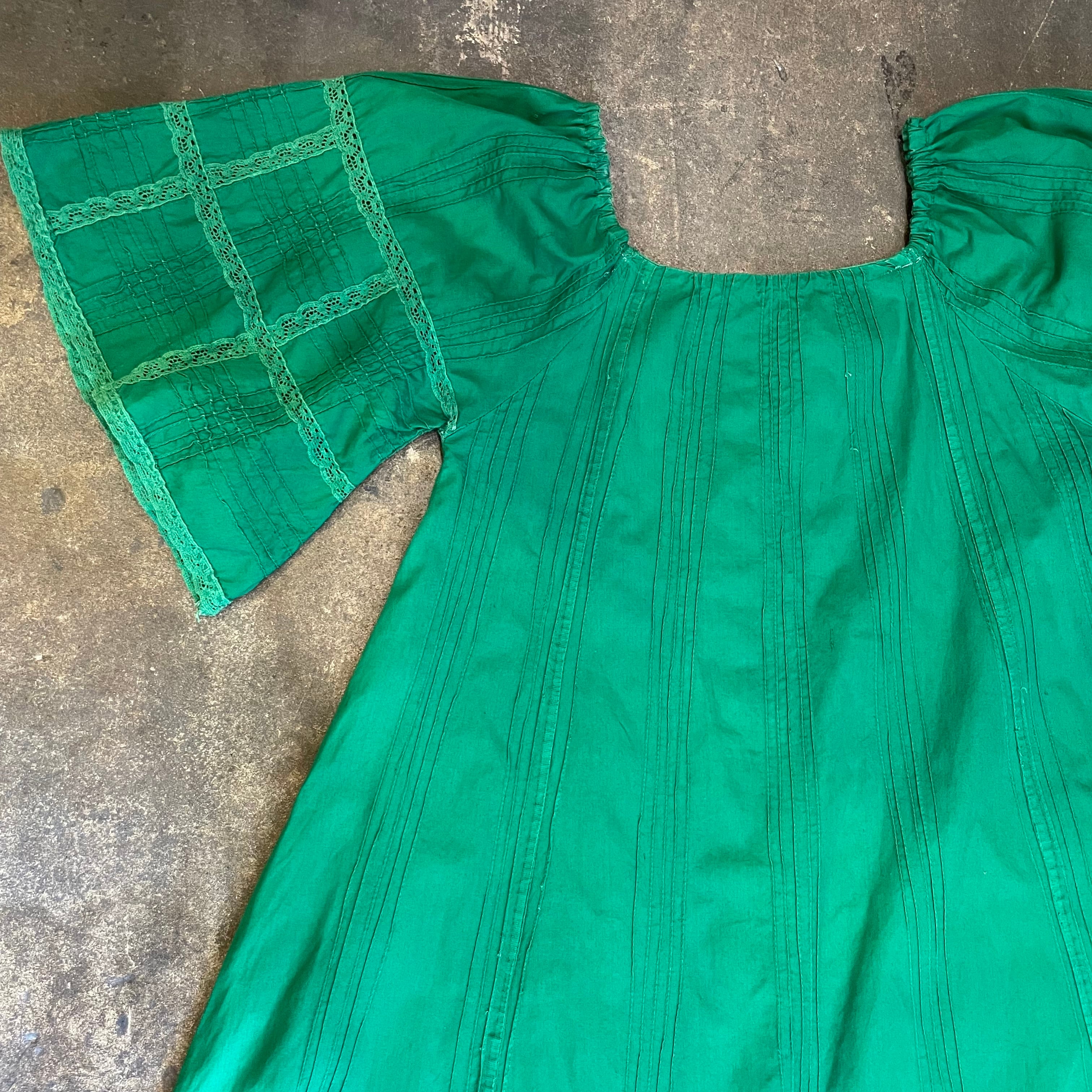 鮮やかできれいな色味のグリーンがとても素敵な70年代頃のメキシコのワンピースです。