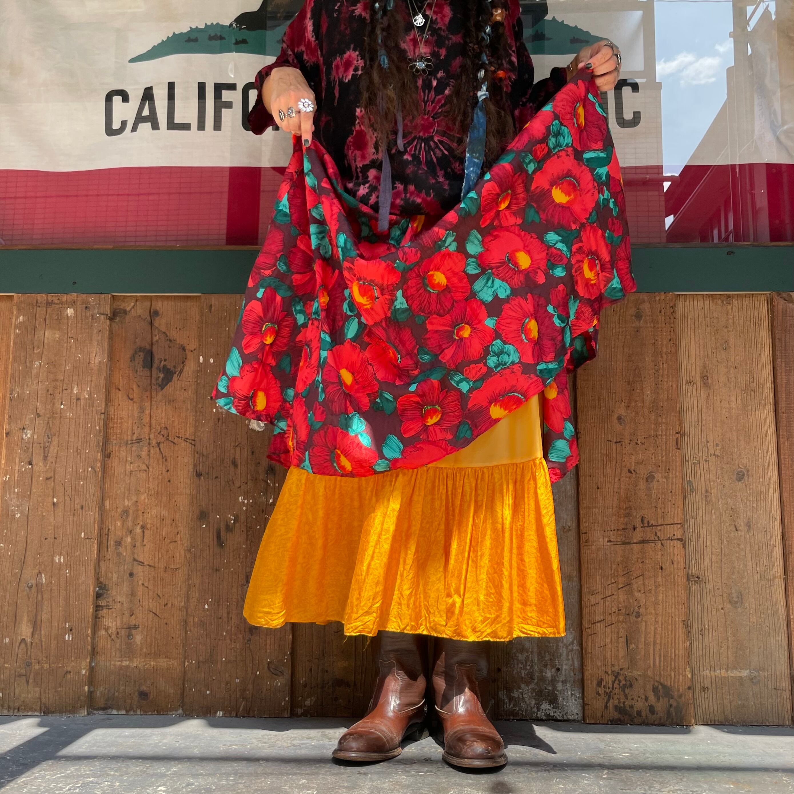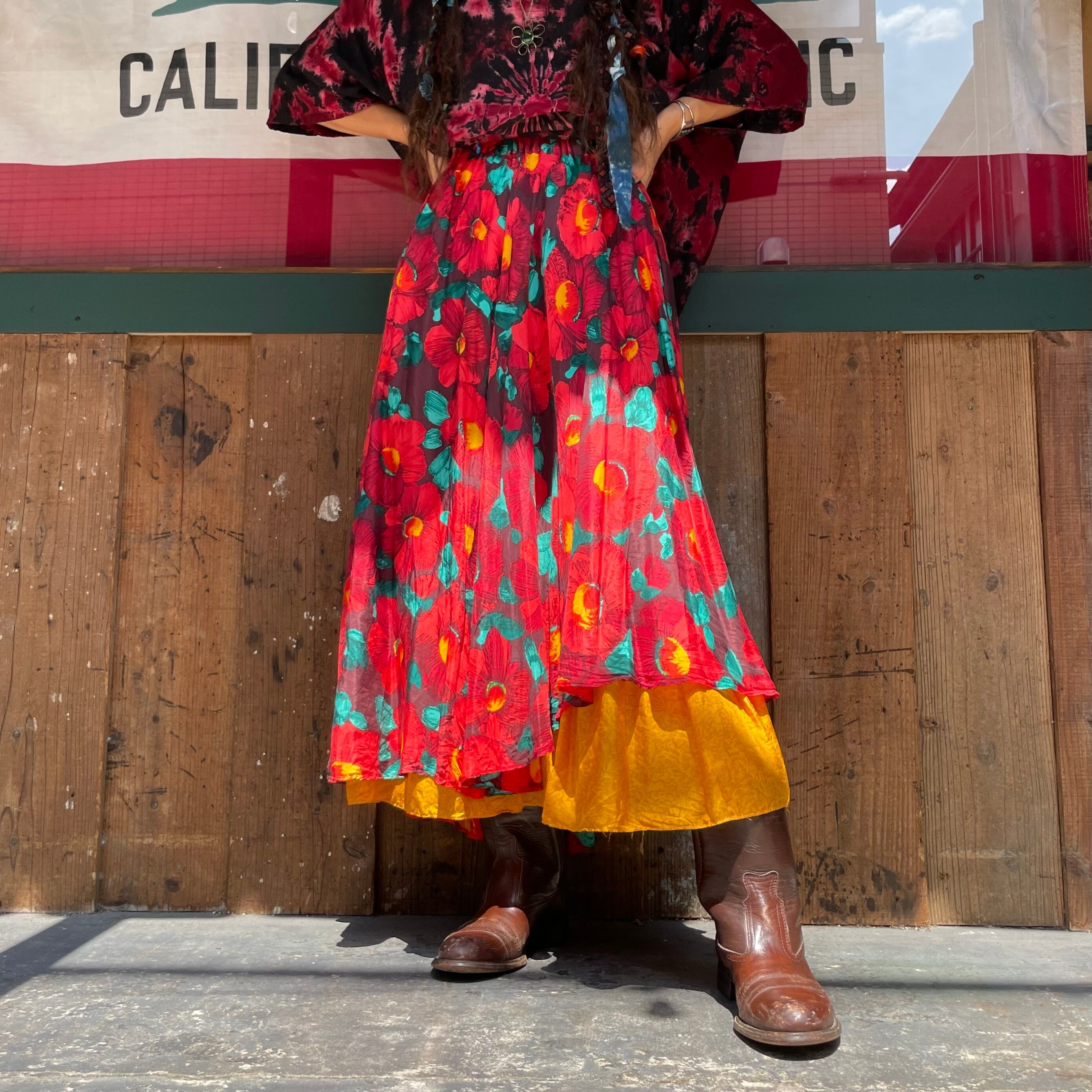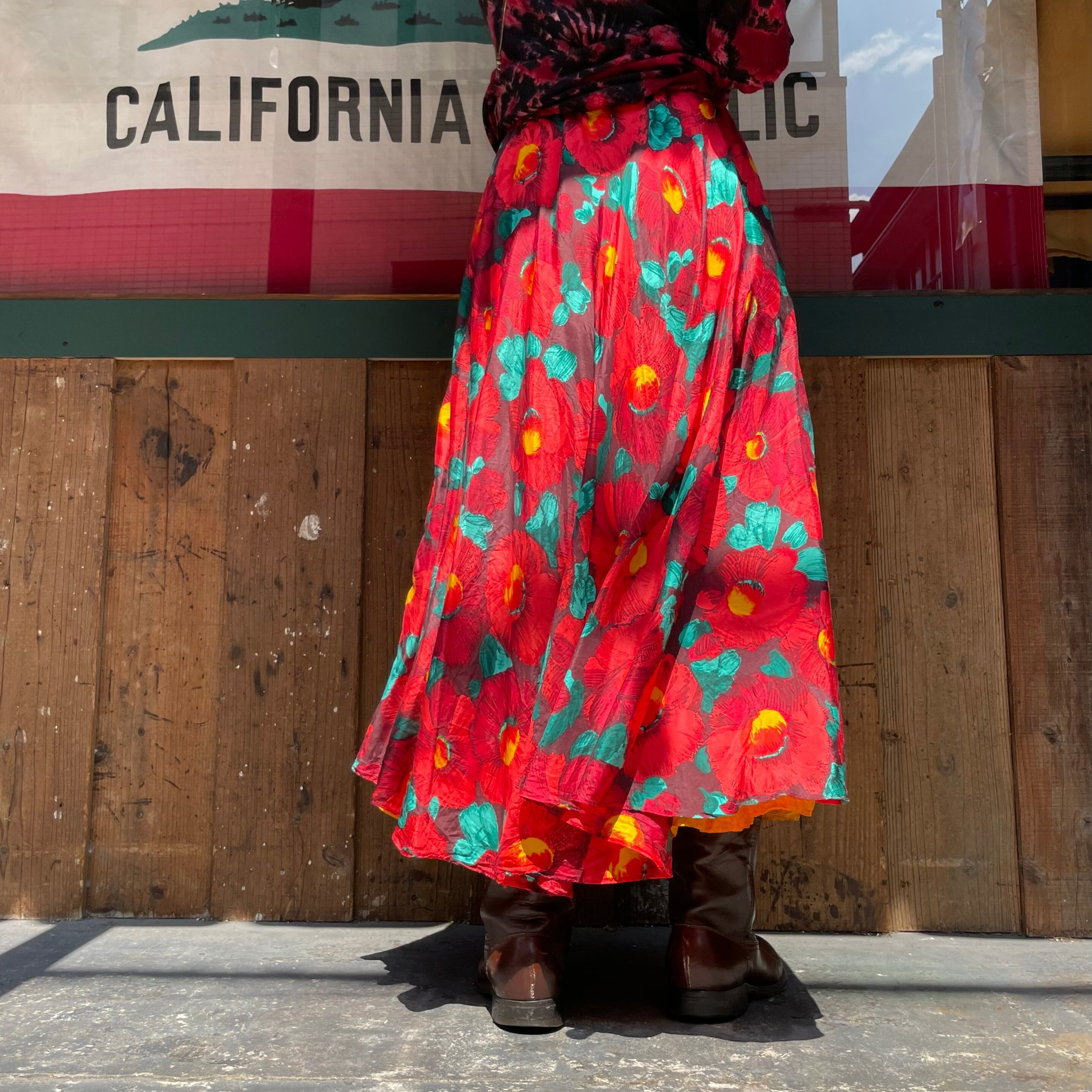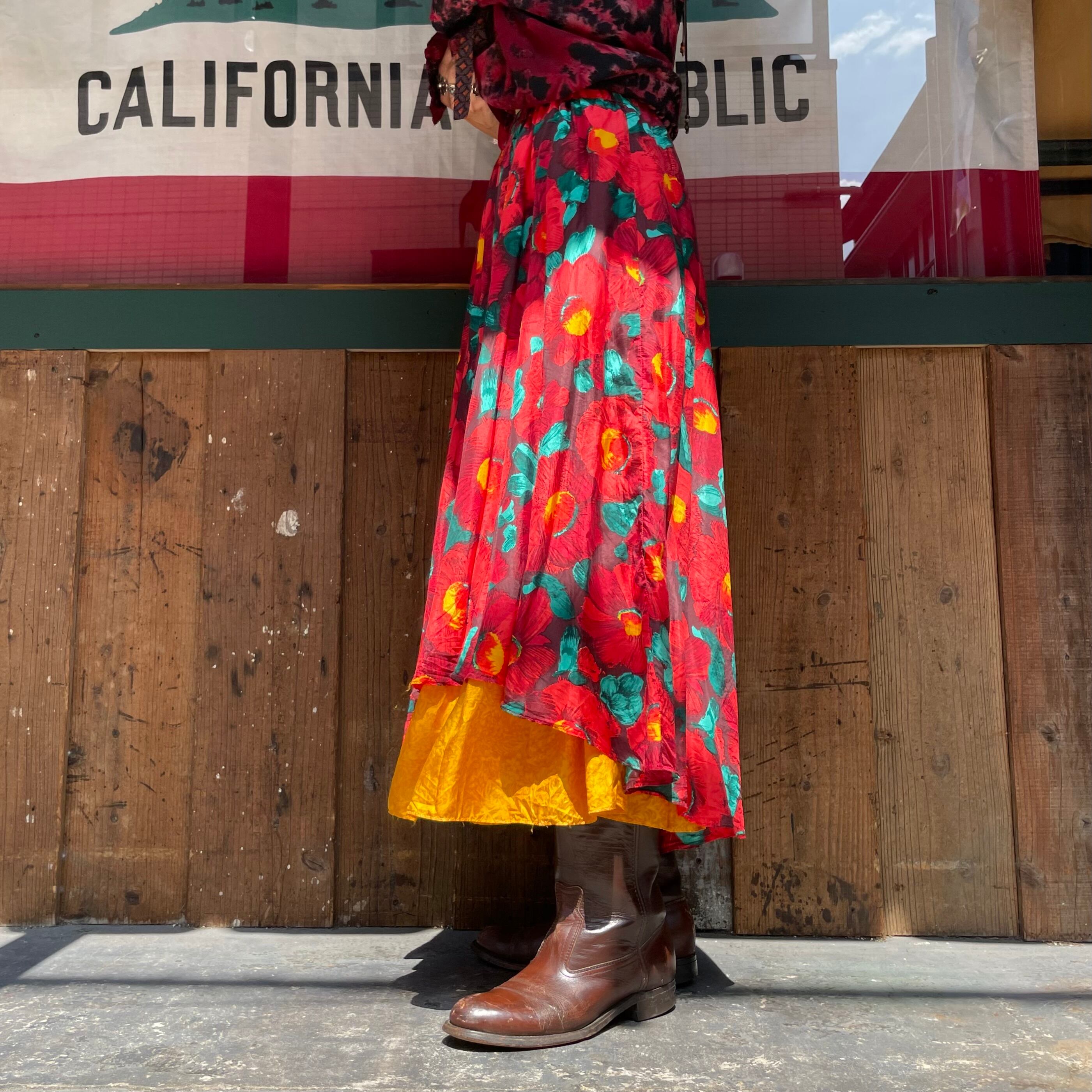 シルクの二枚重ねでサラリと軽やかでふわっと風になびく感じが素敵ですし、派手な柄ではありますが上品ですね。