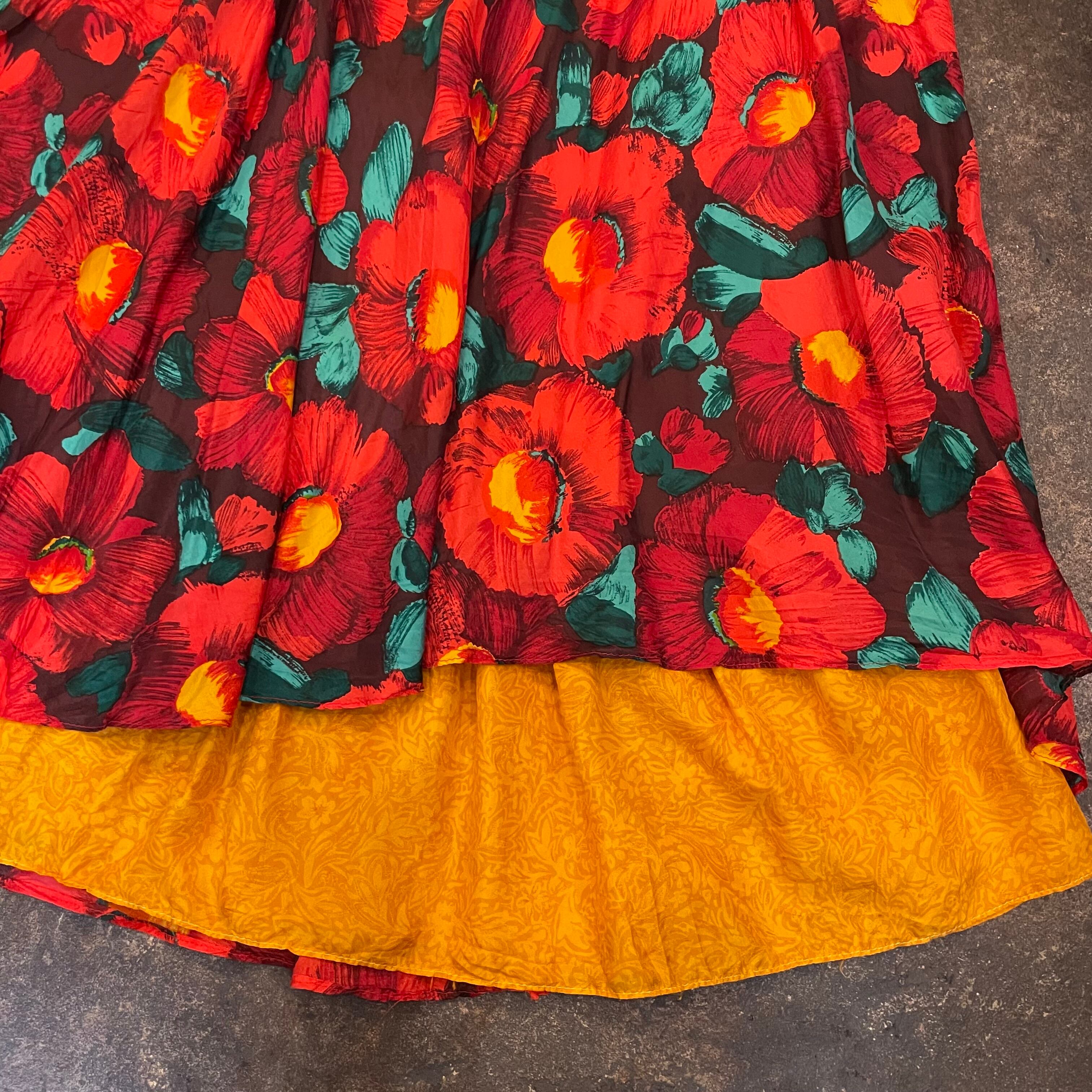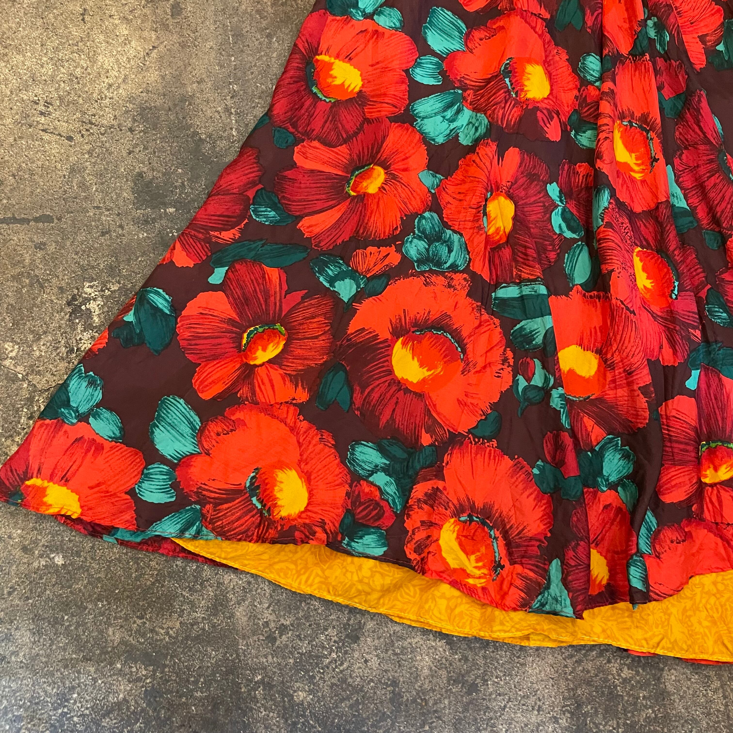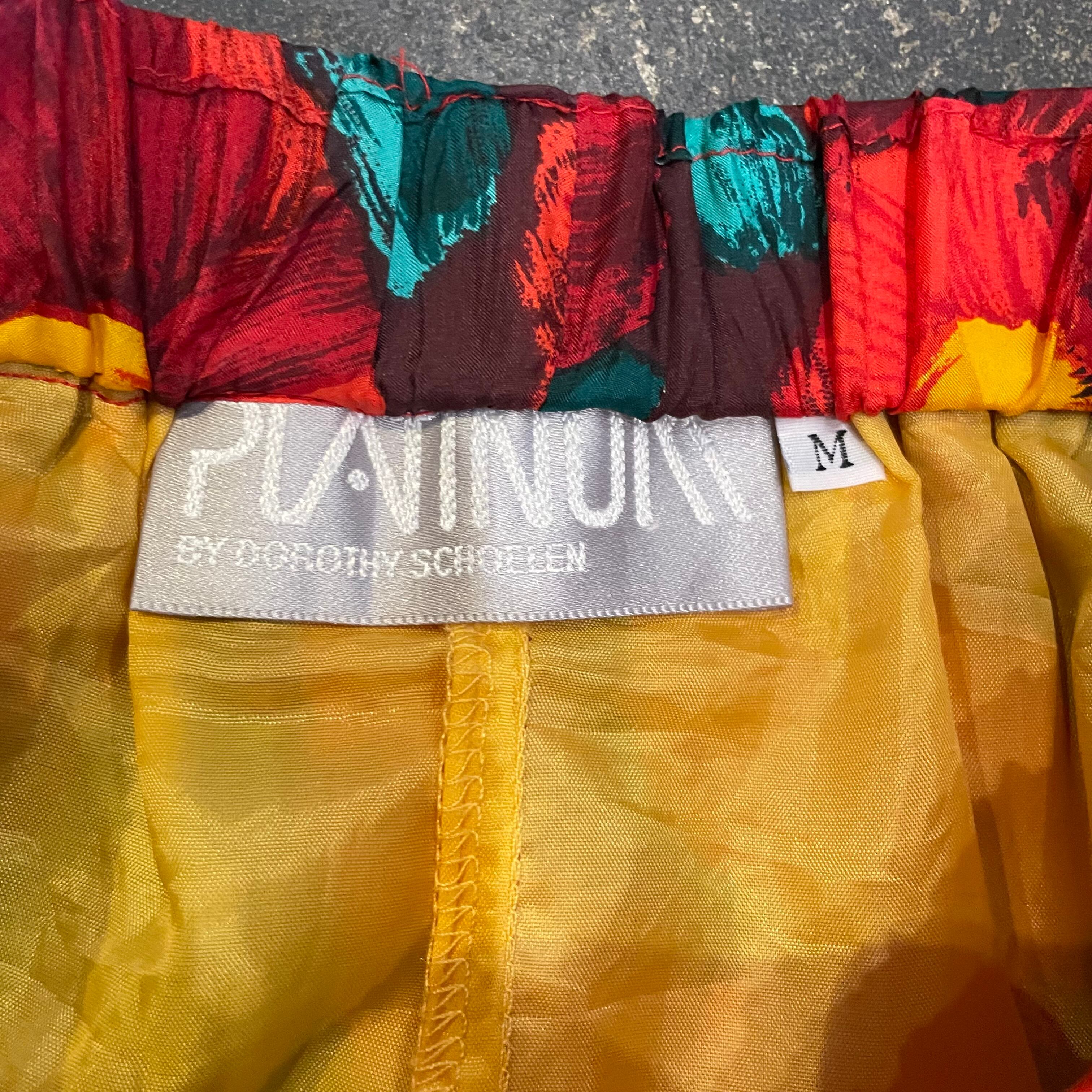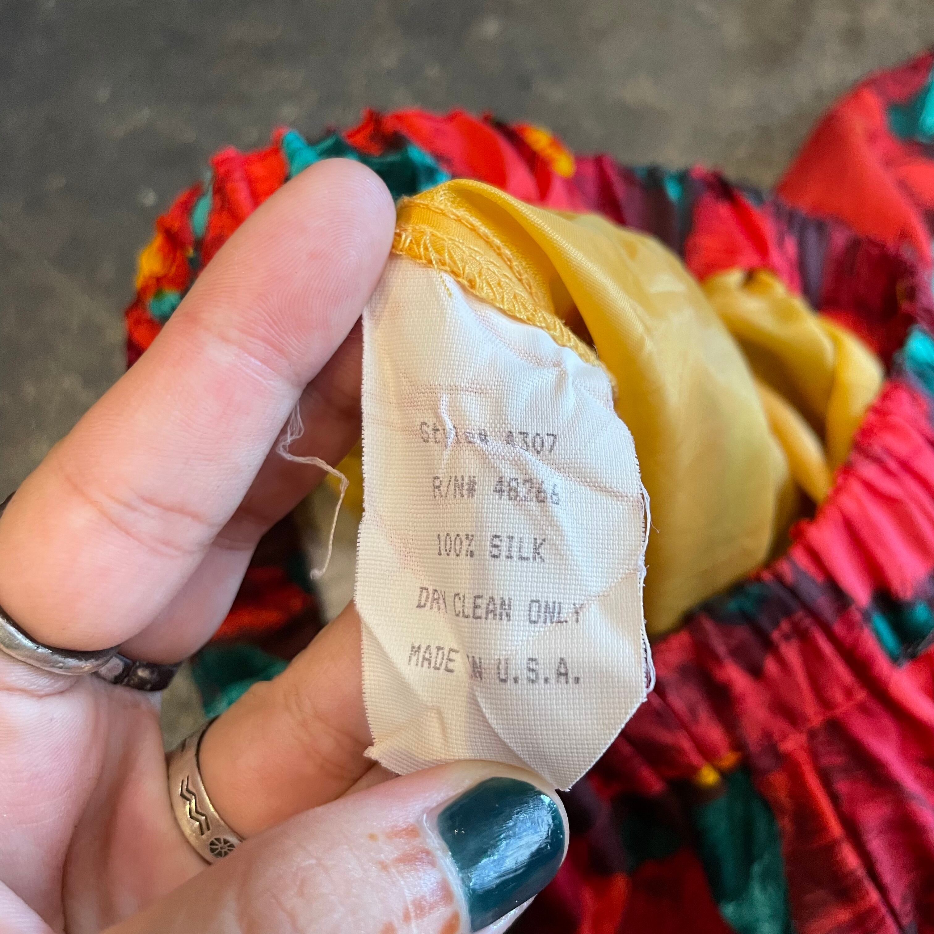 シルクの二枚重ねでサラリと軽やかでふわっと風になびく感じが素敵ですし、派手な柄ではありますが上品ですね。