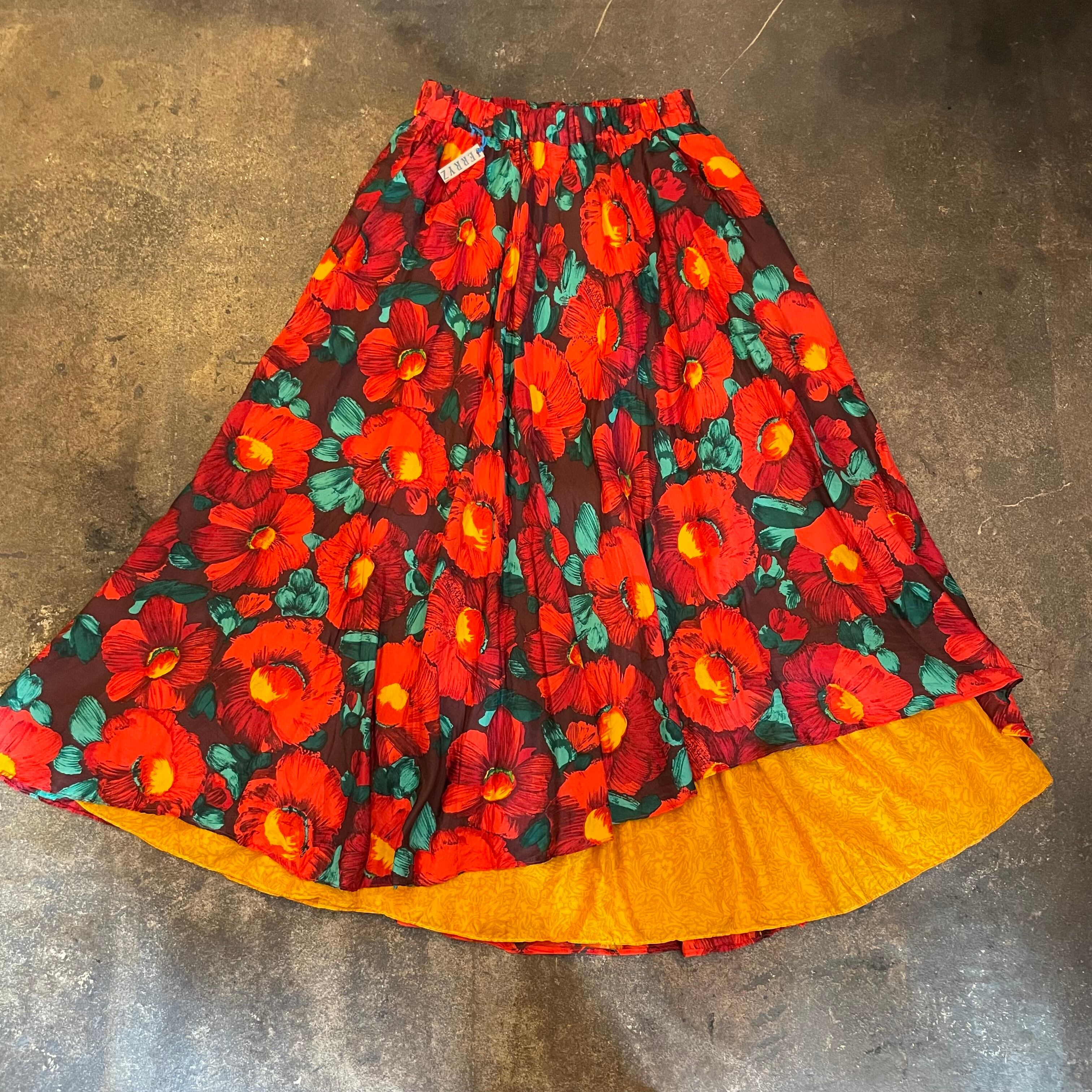 ウエストはゴムですし、黄色い裏地と二重の作りになっていてペチコート要らずで楽ちんですね。