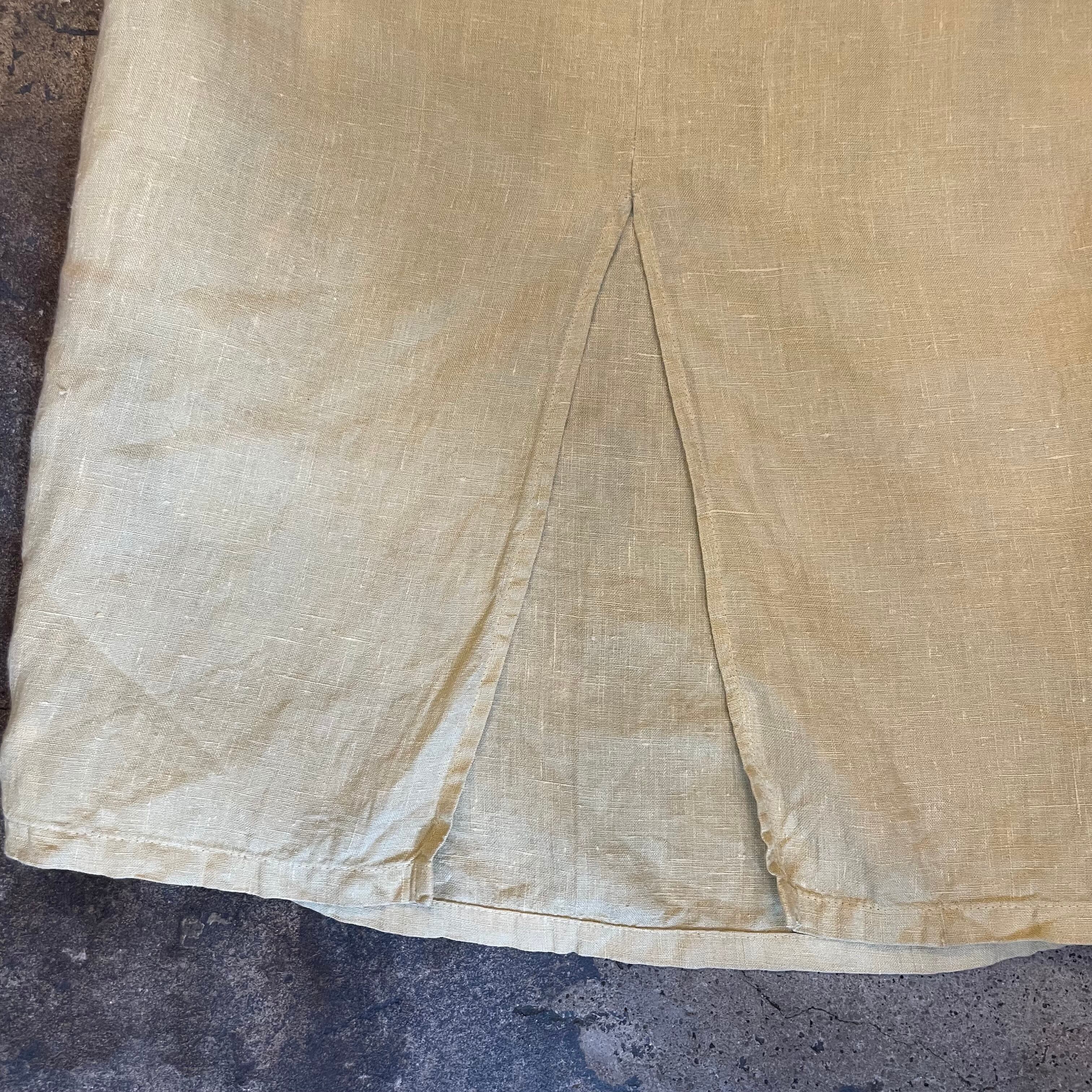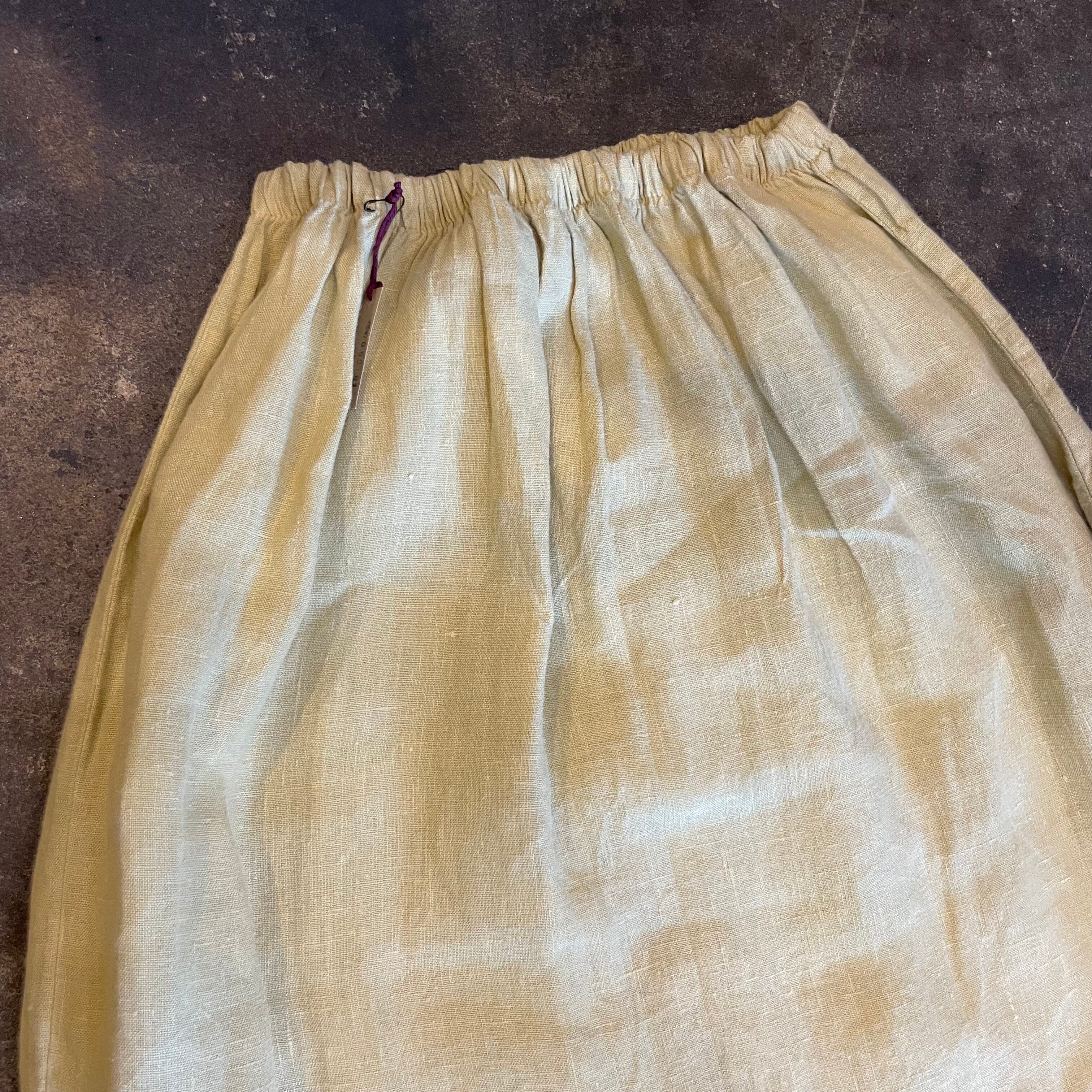 草木染めしたような、よもぎ色っぽい優しい色味が素敵なリネン素材のスカートです。
