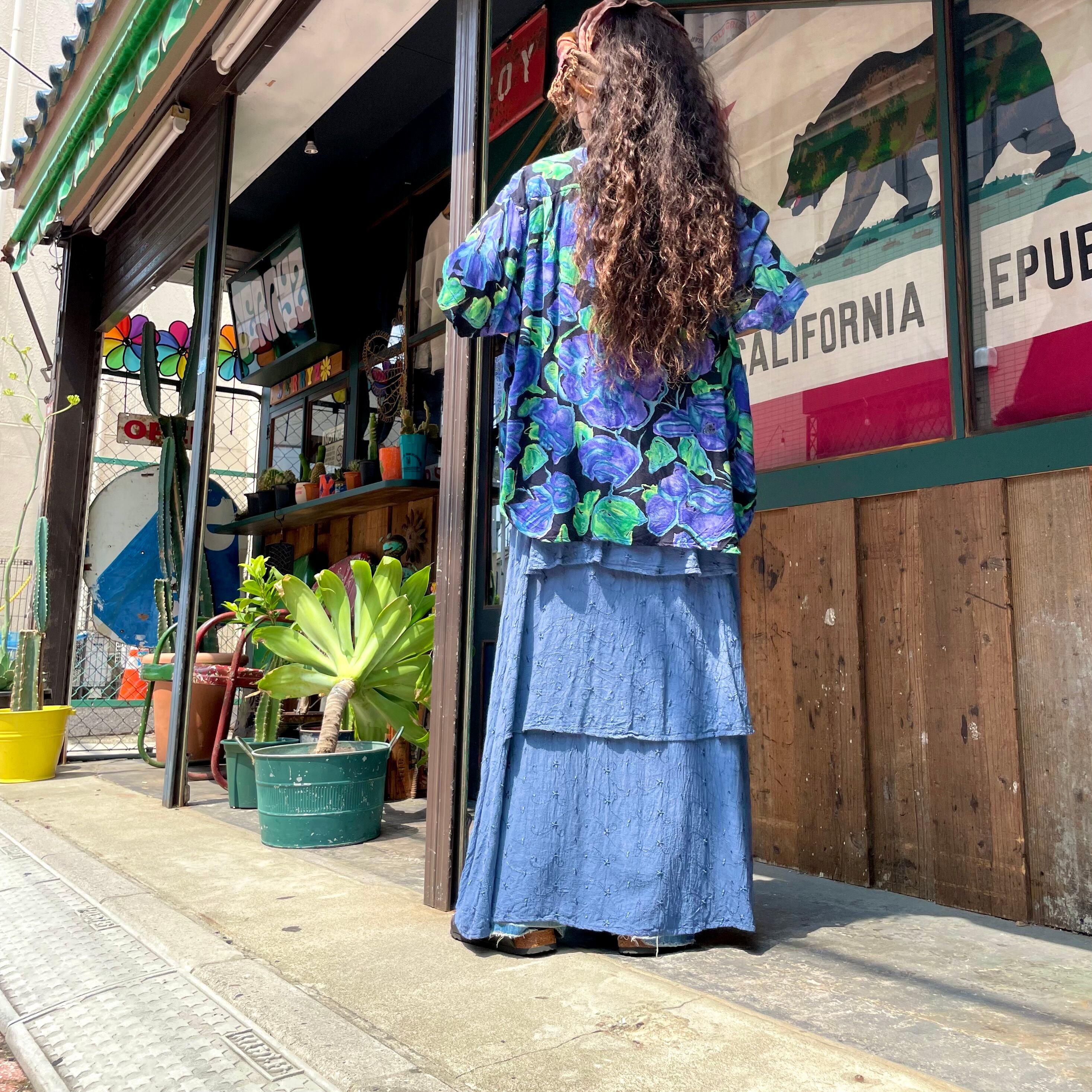 薄いレーヨン素材でつるっとてろんとしていて気持ち良いですし涼しい一枚です。ゆったりめなサイズ感ですので風通しが良く、ゆるく楽ちんに着ていただけると思います。