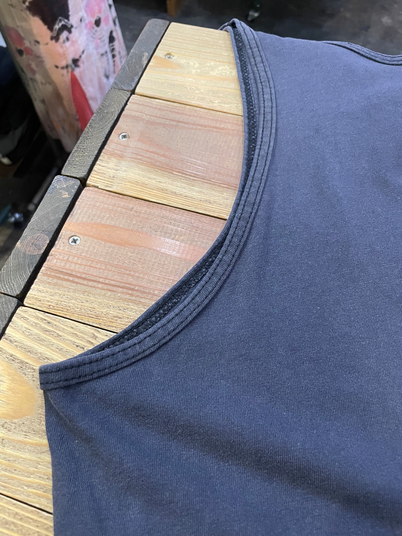ネイビーがかなり色褪せてやれた雰囲気がとても良い感じのタンクトップです。