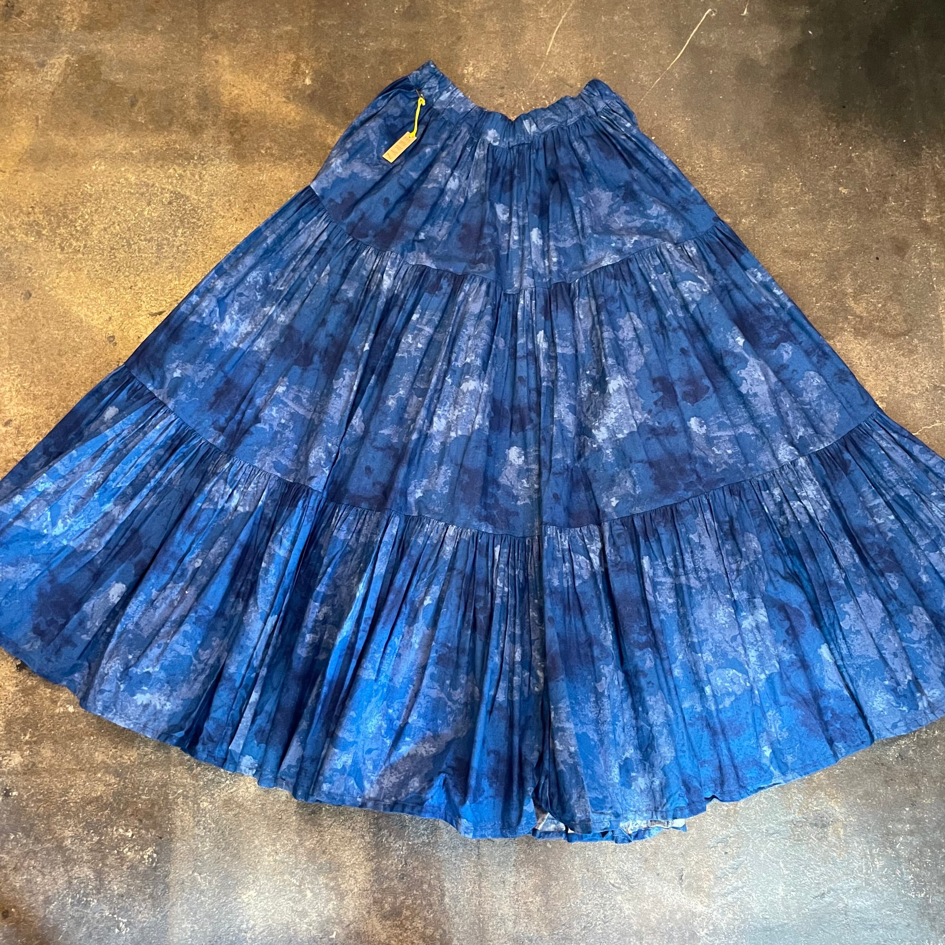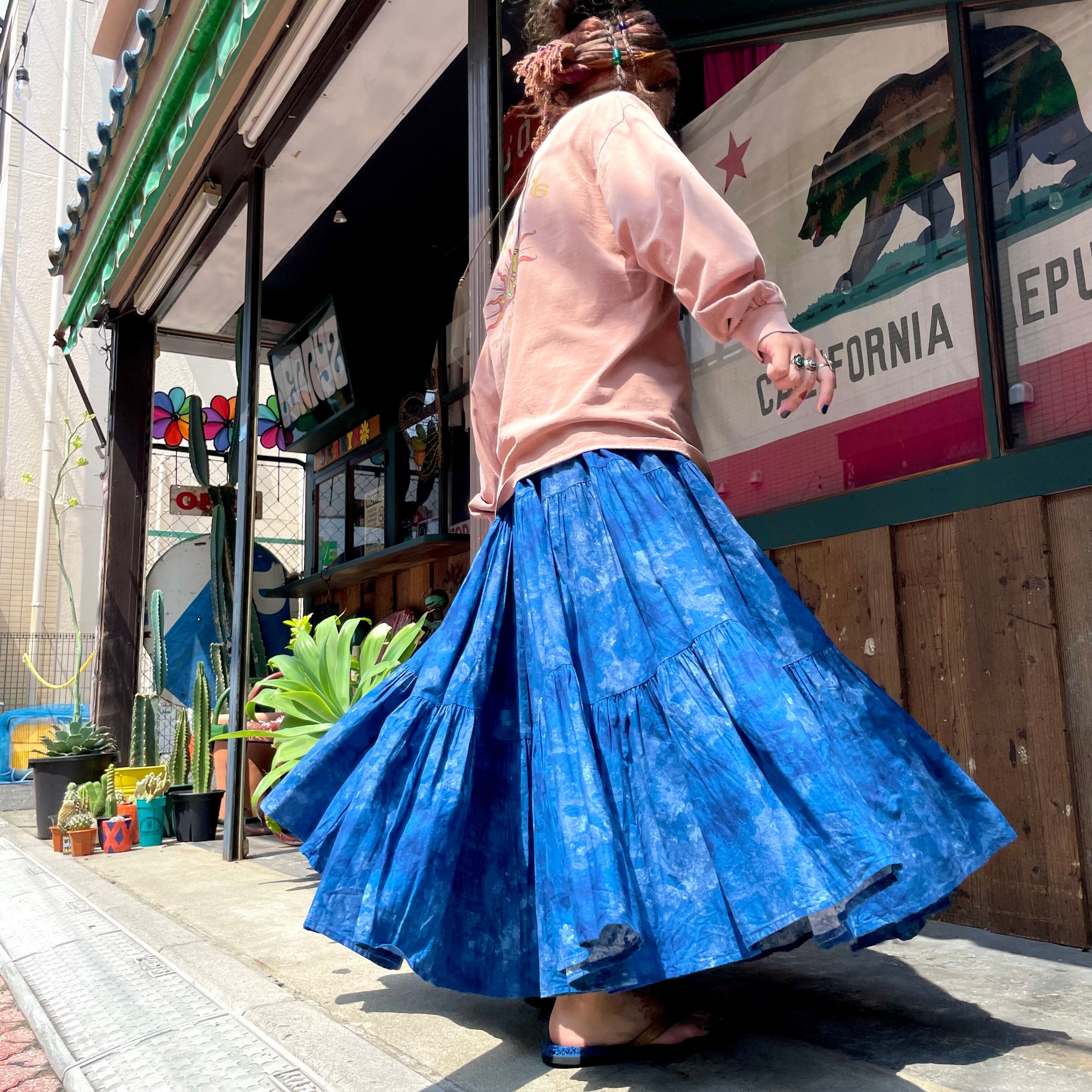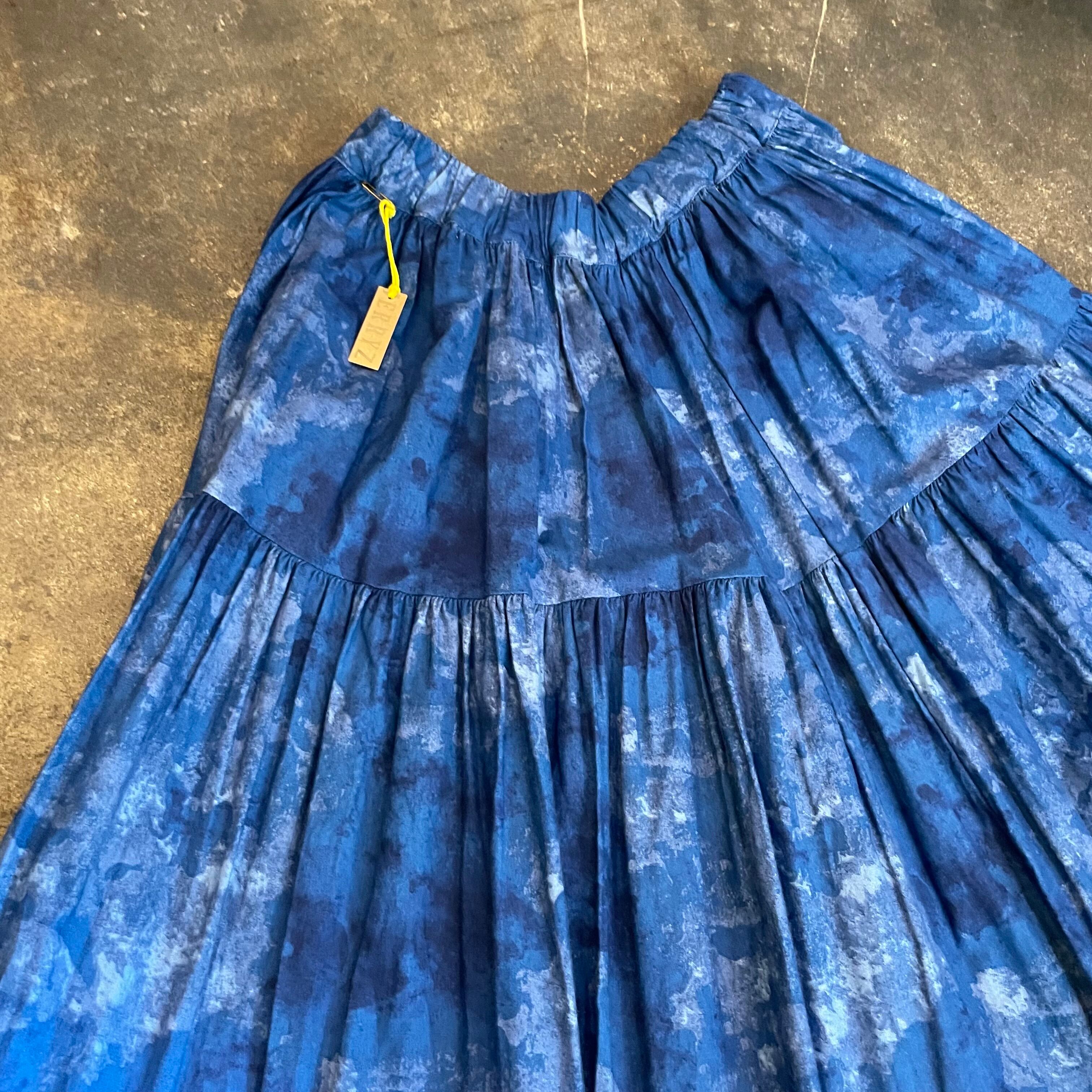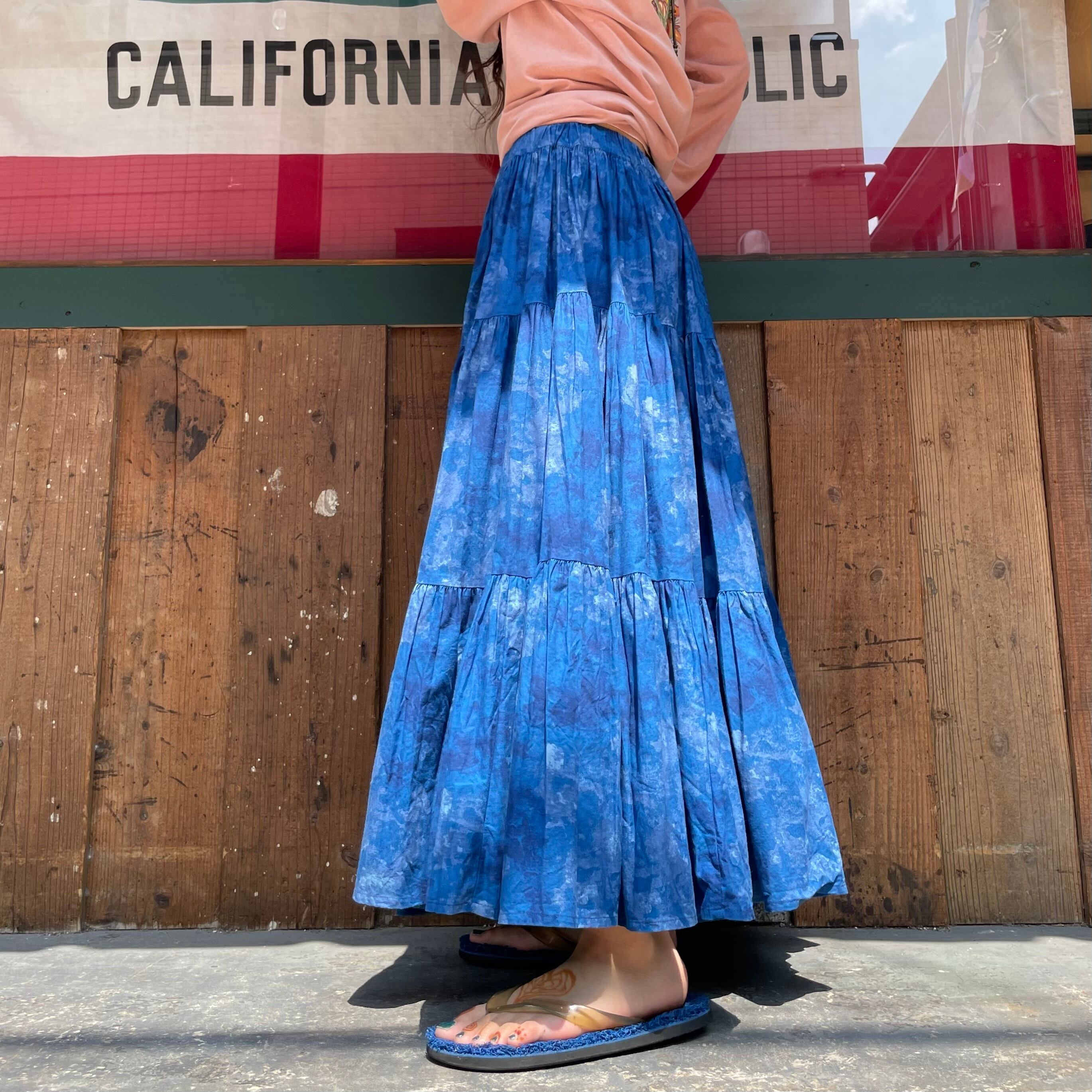 もやもやっとした濃淡のある模様が空のような、海のような感じで素敵なロングスカートです。