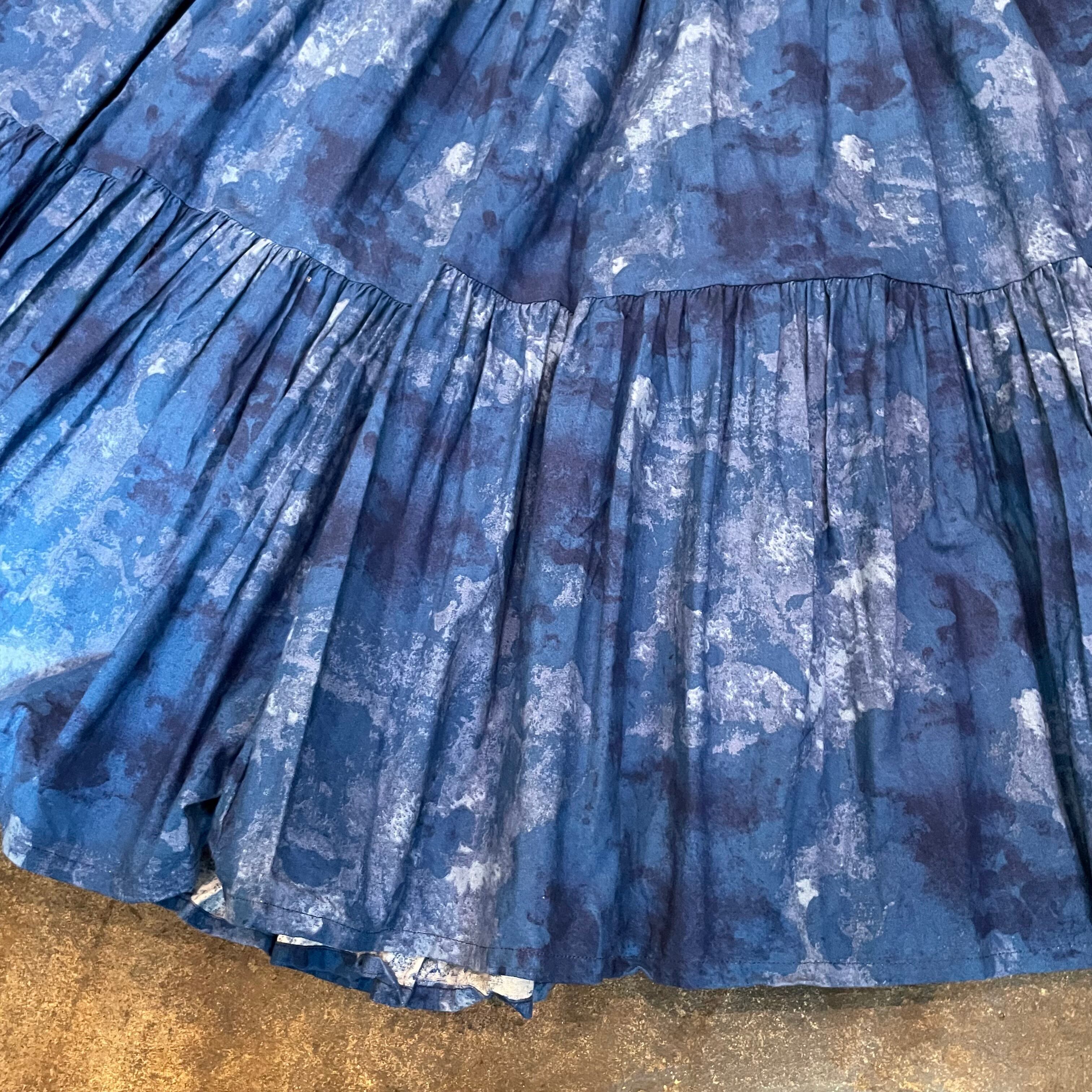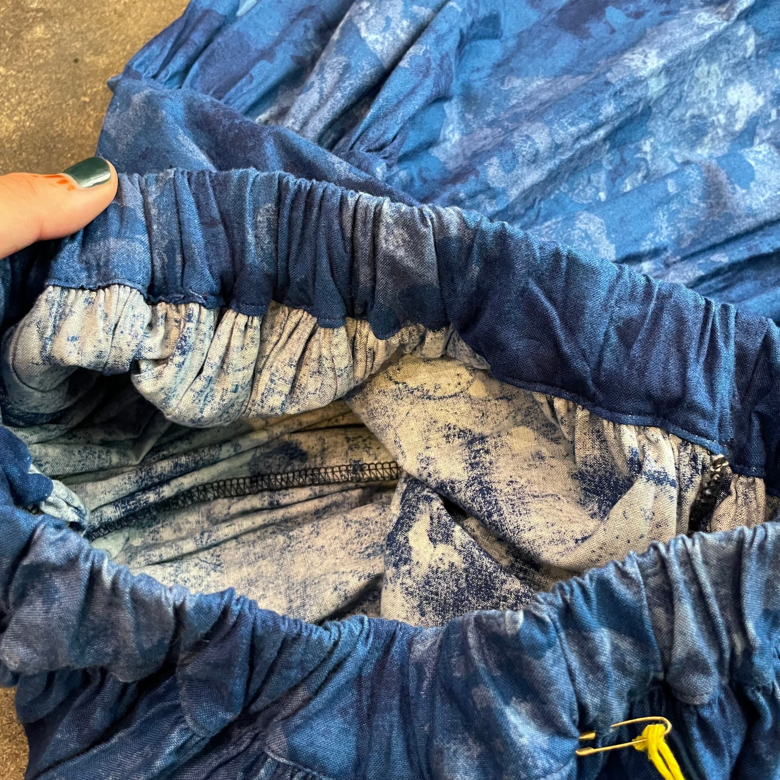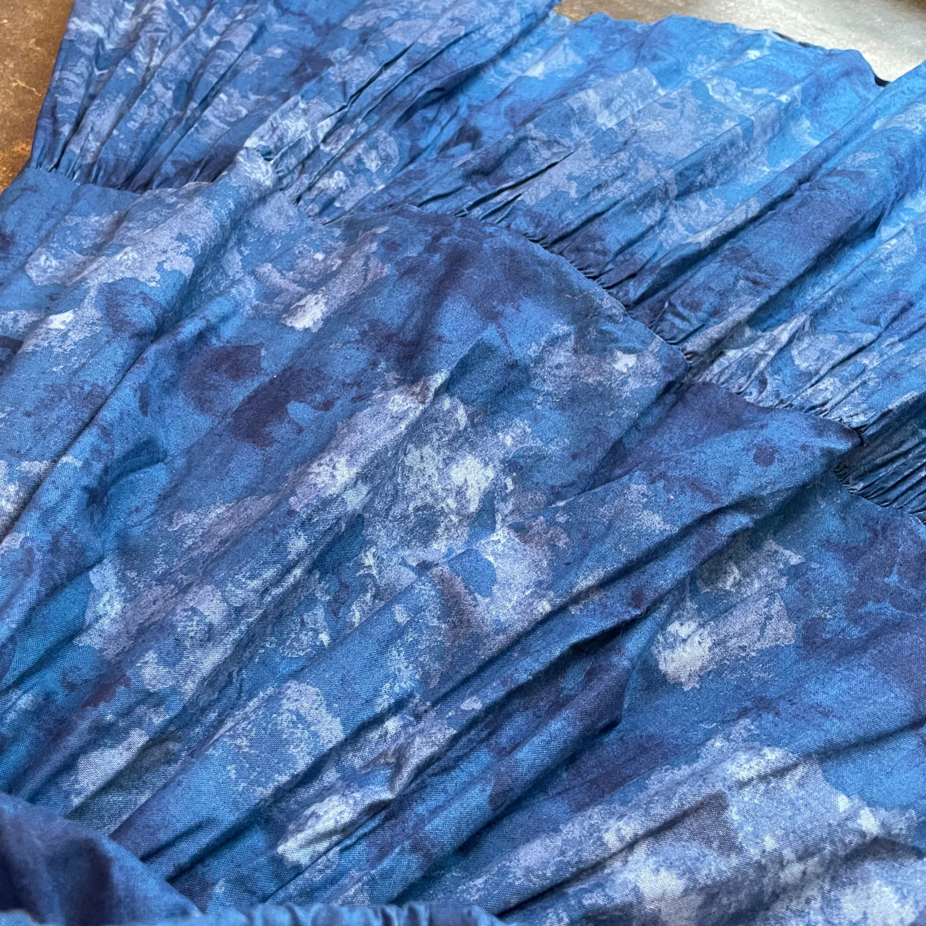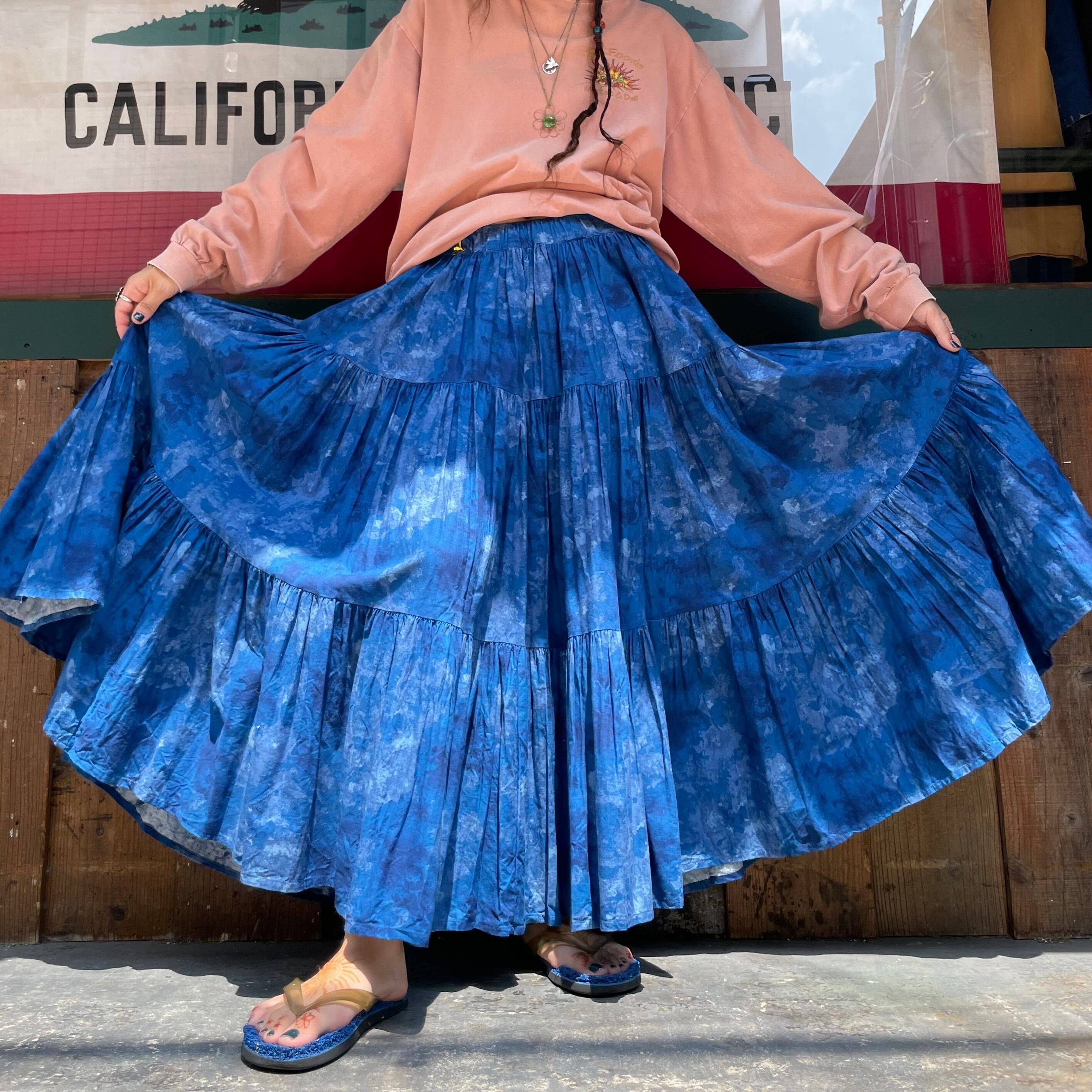 もやもやっとした濃淡のある模様が空のような、海のような感じで素敵なロングスカートです。