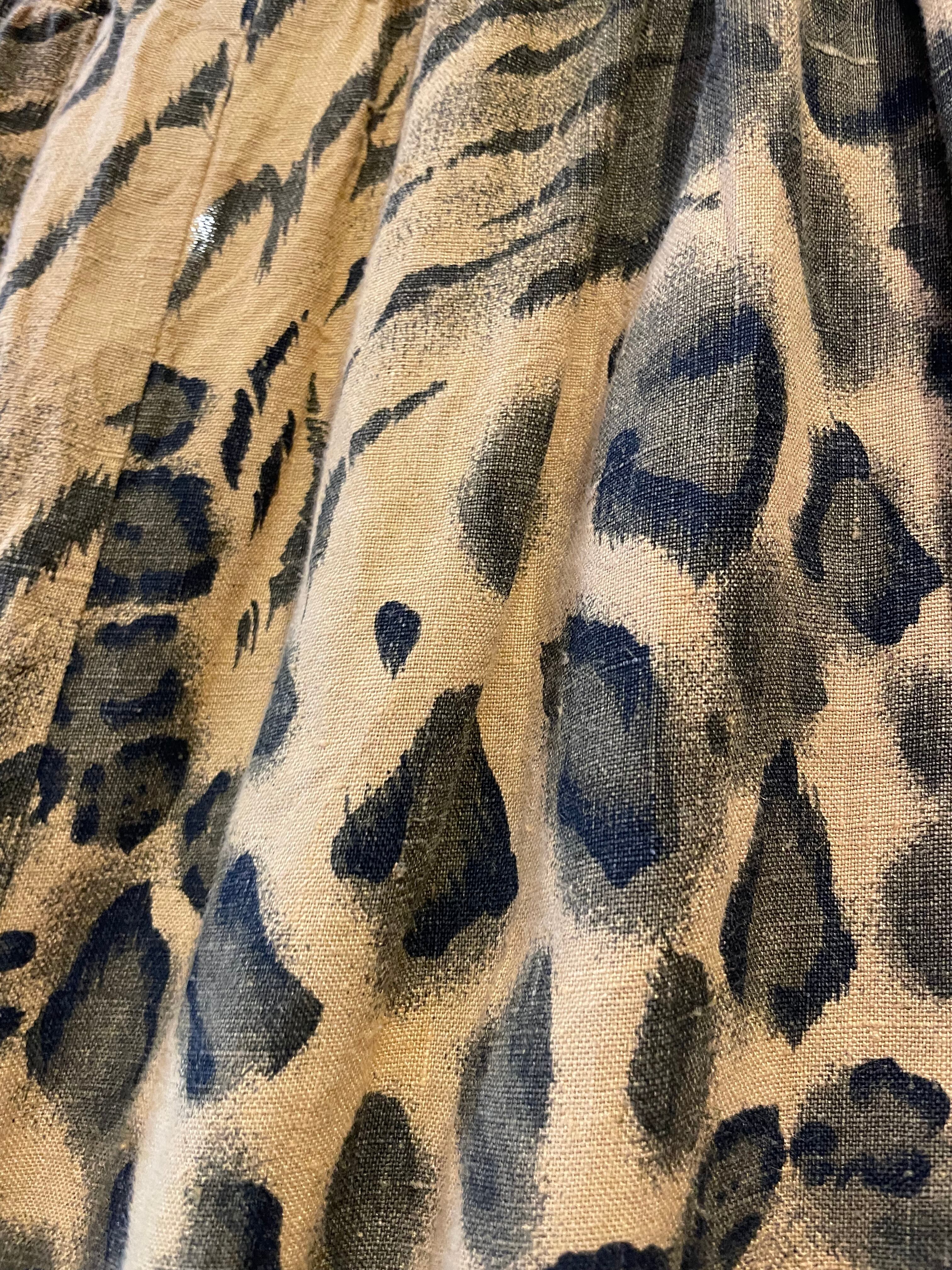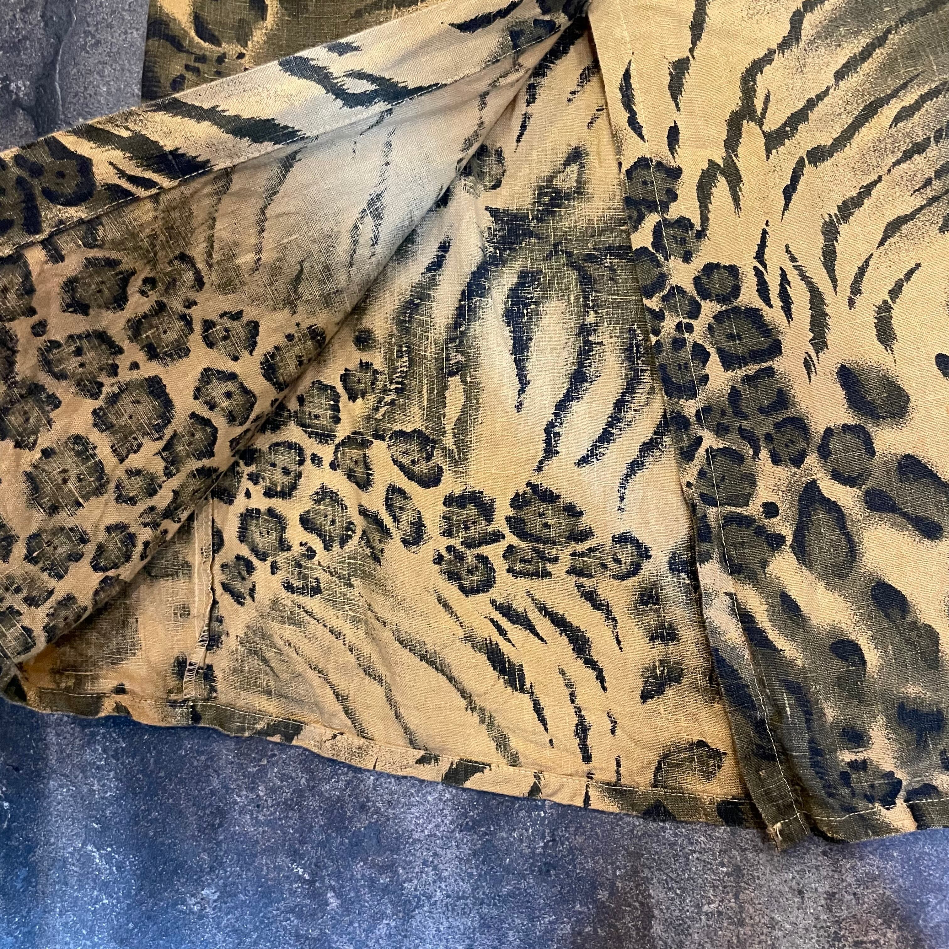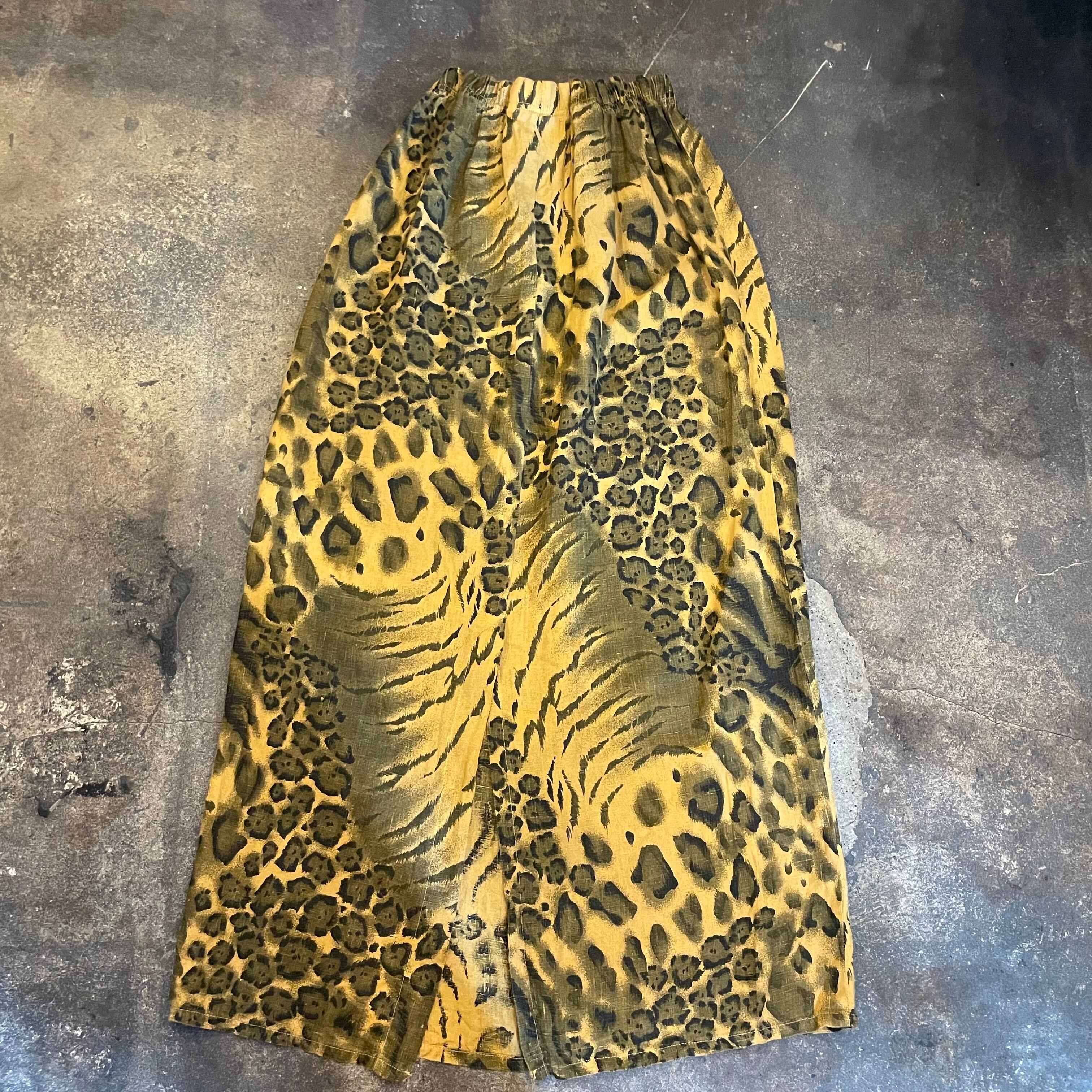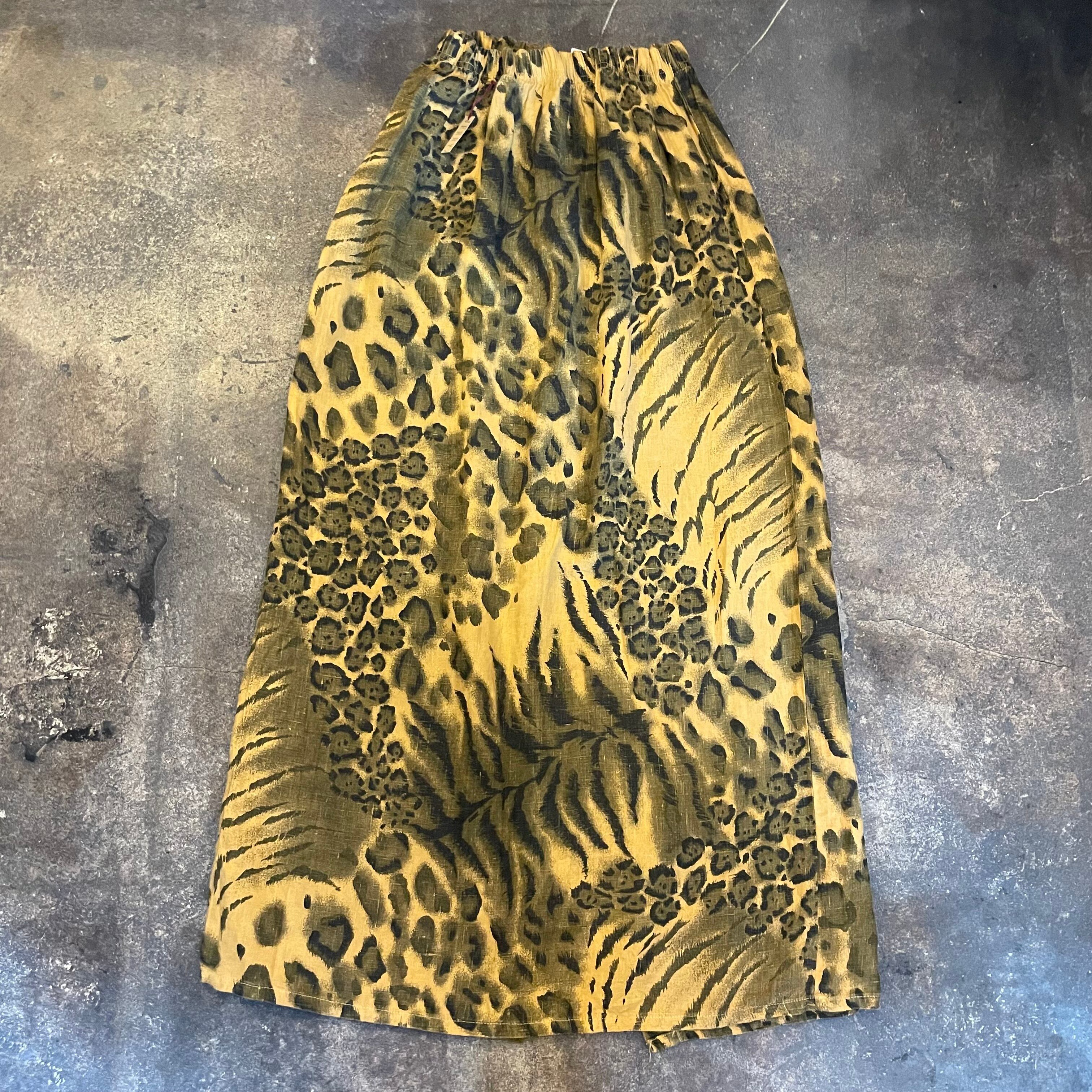 豹やトラ、チーターのような動物の模様がかっこいいリネン素材のスカートです。