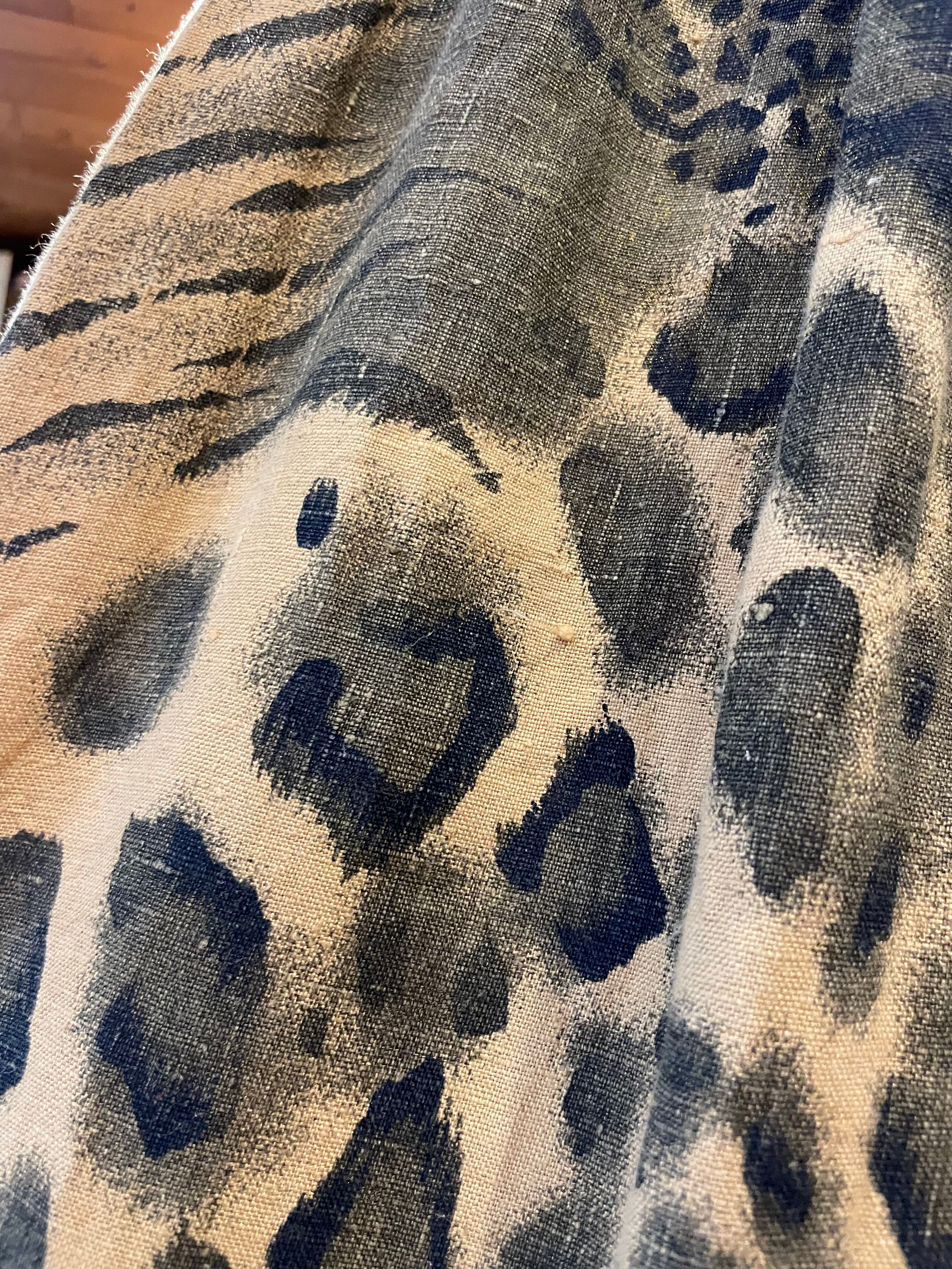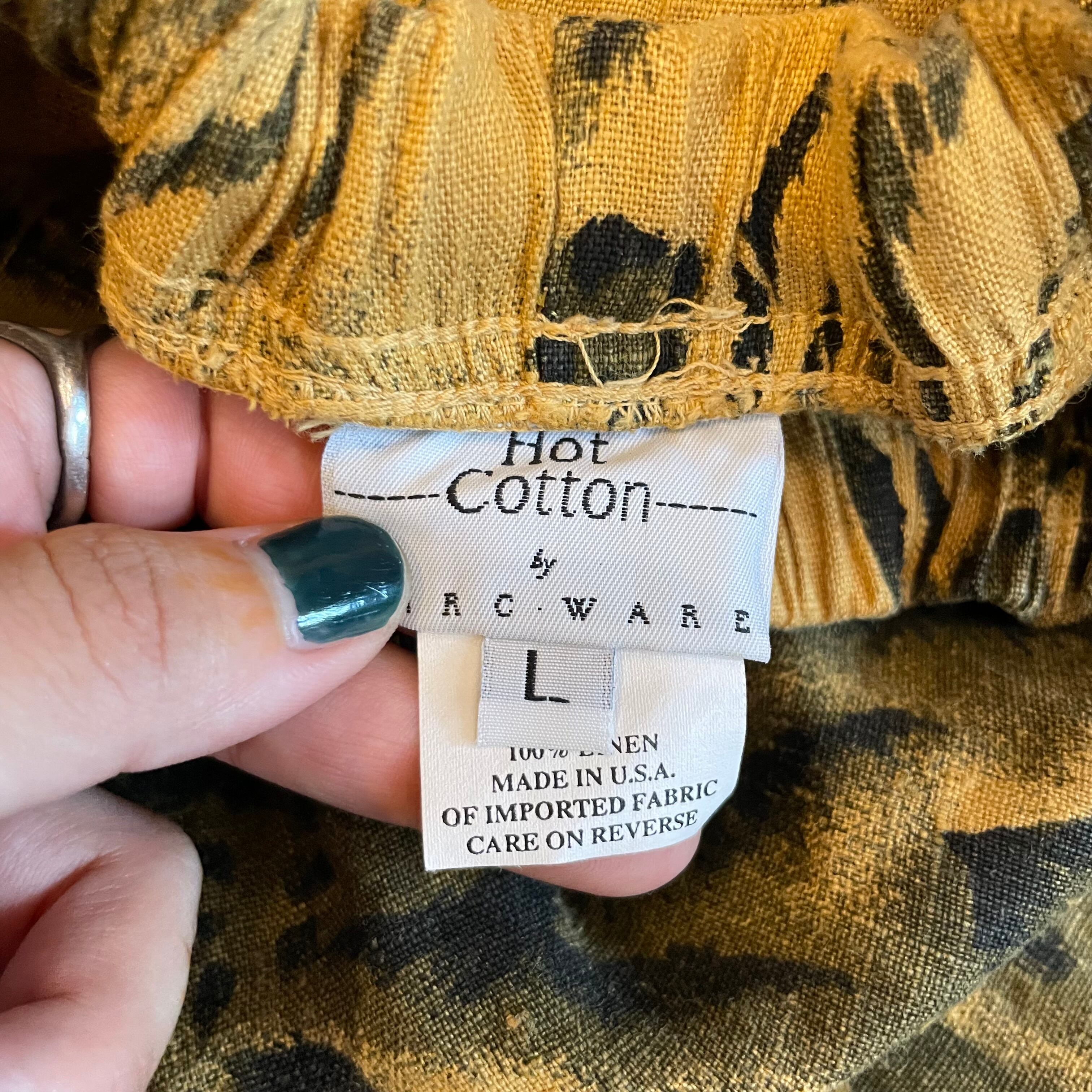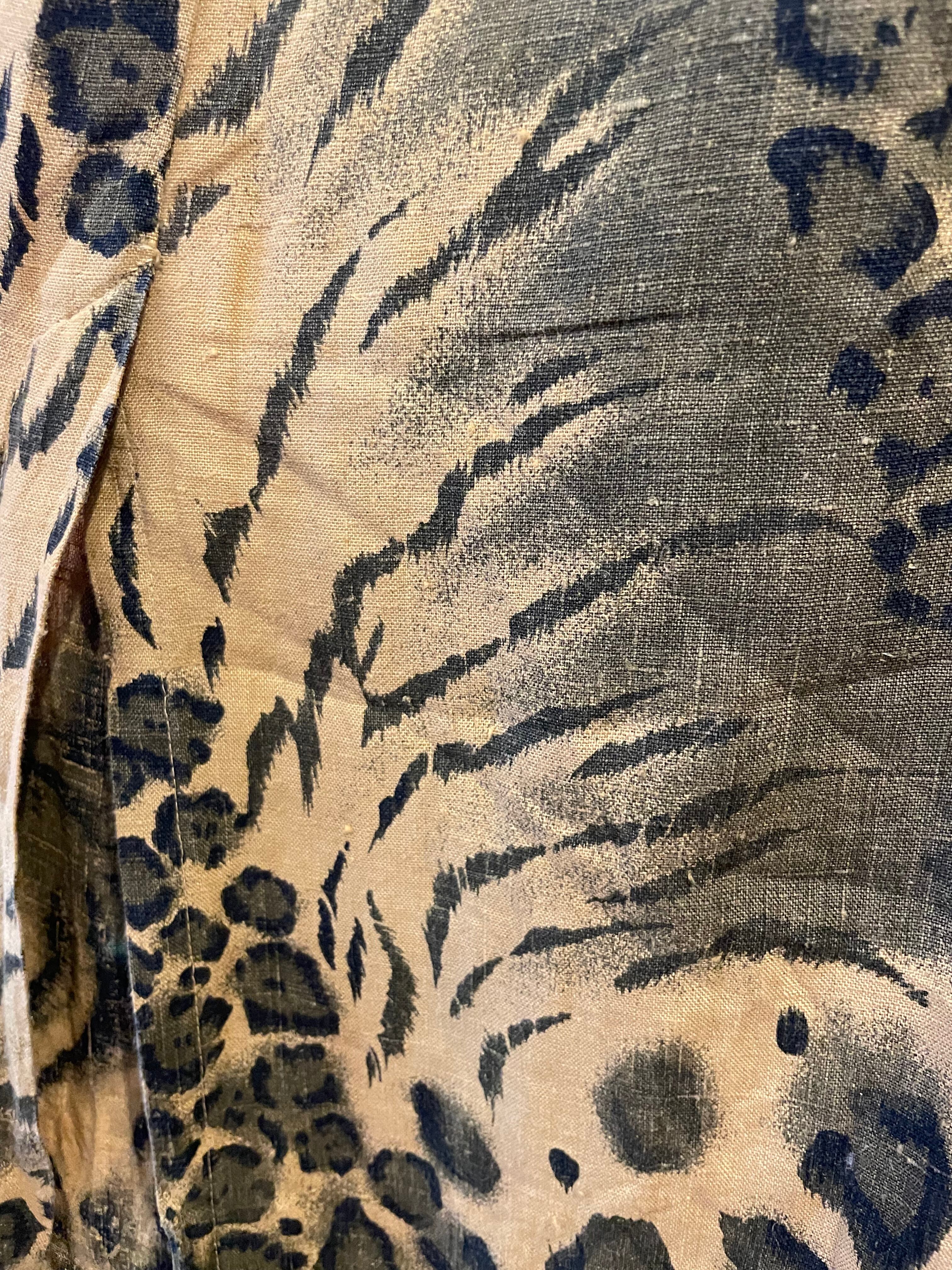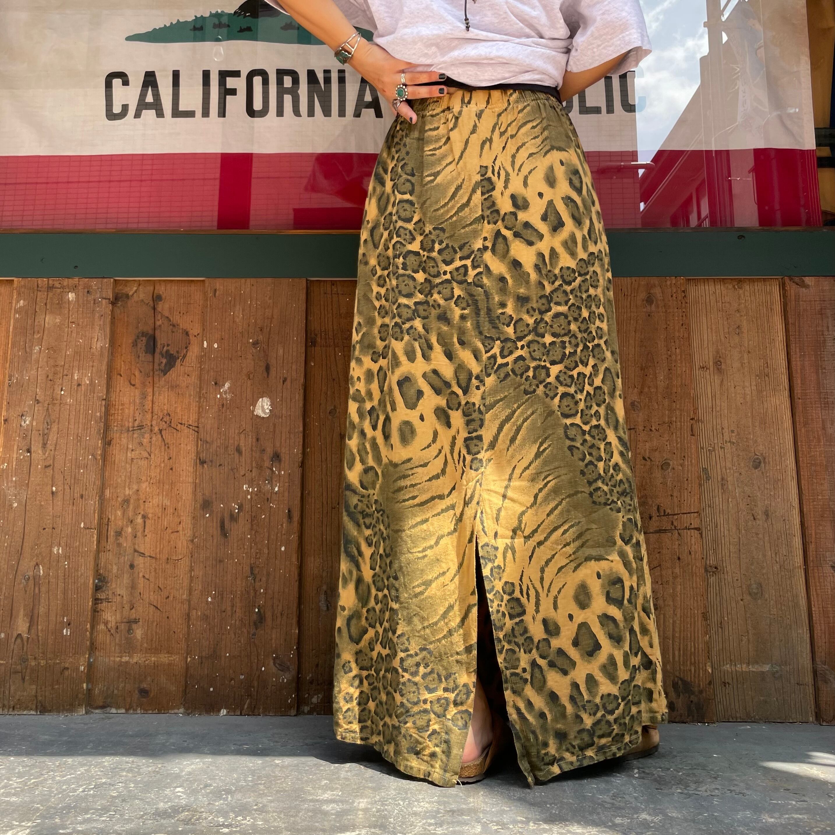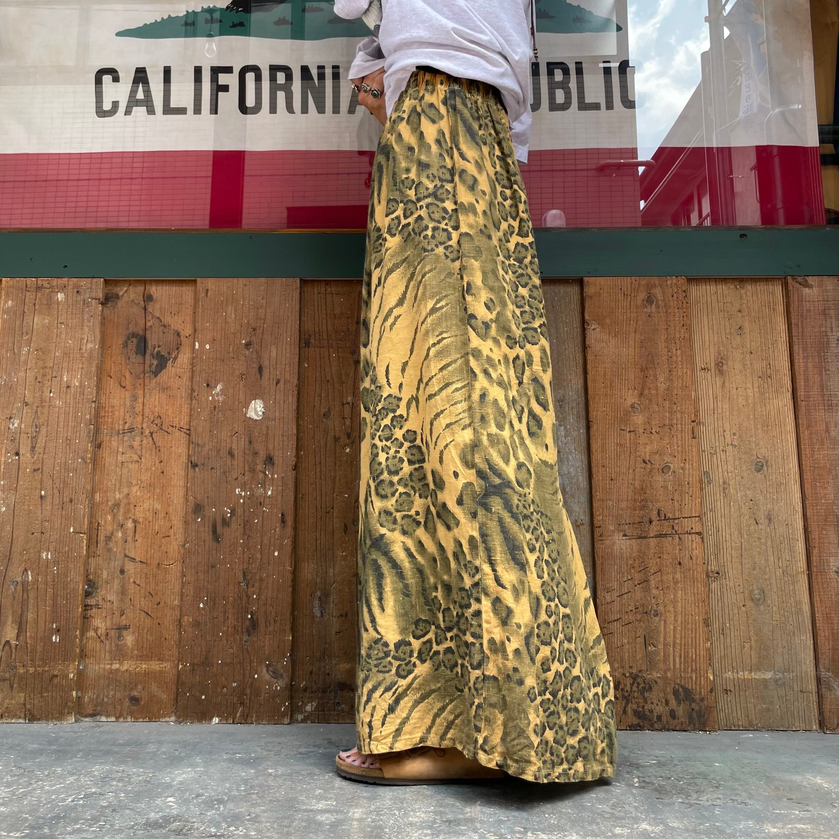 豹やトラ、チーターのような動物の模様がかっこいいリネン素材のスカートです。