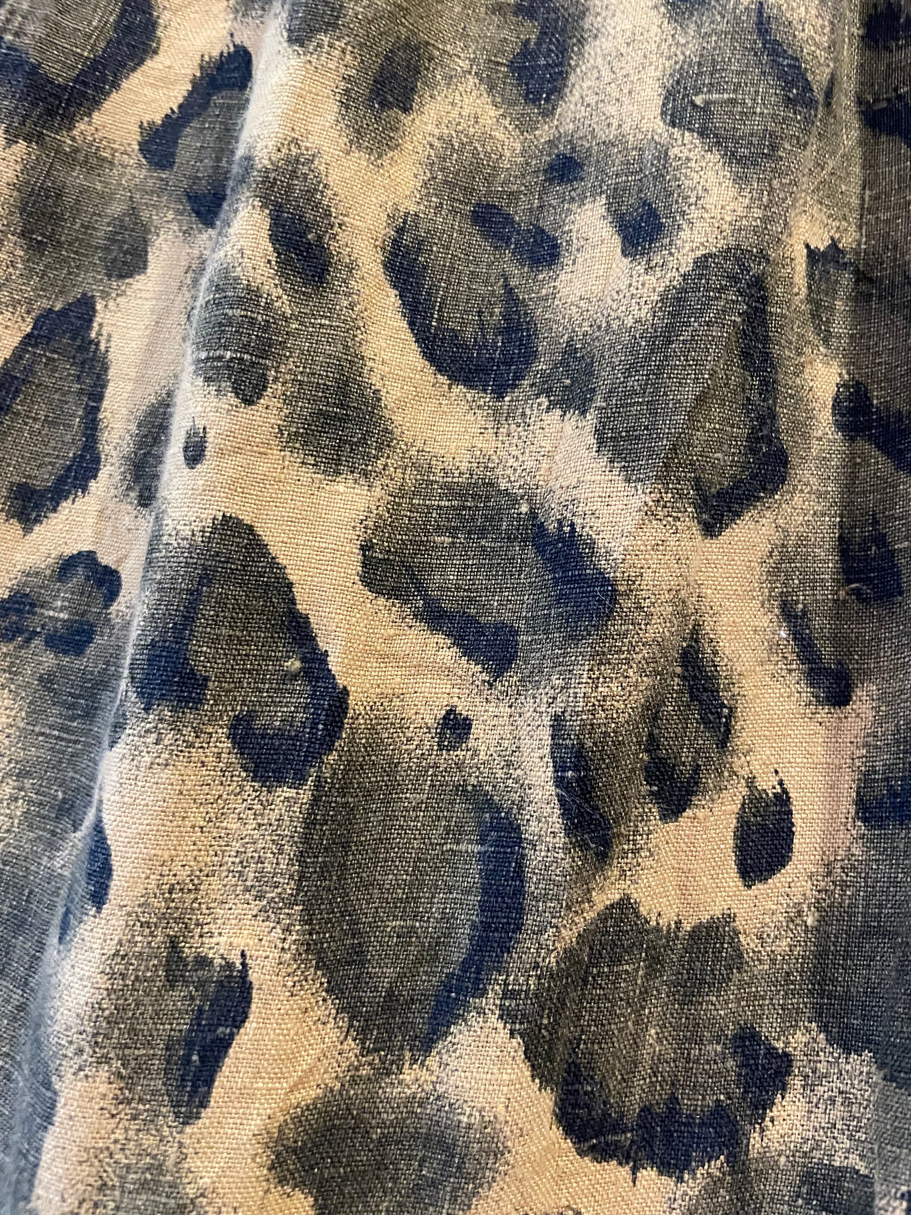 リネンのかすれた感じの生地感に墨汁で描いたような模様がとても良い雰囲気です。