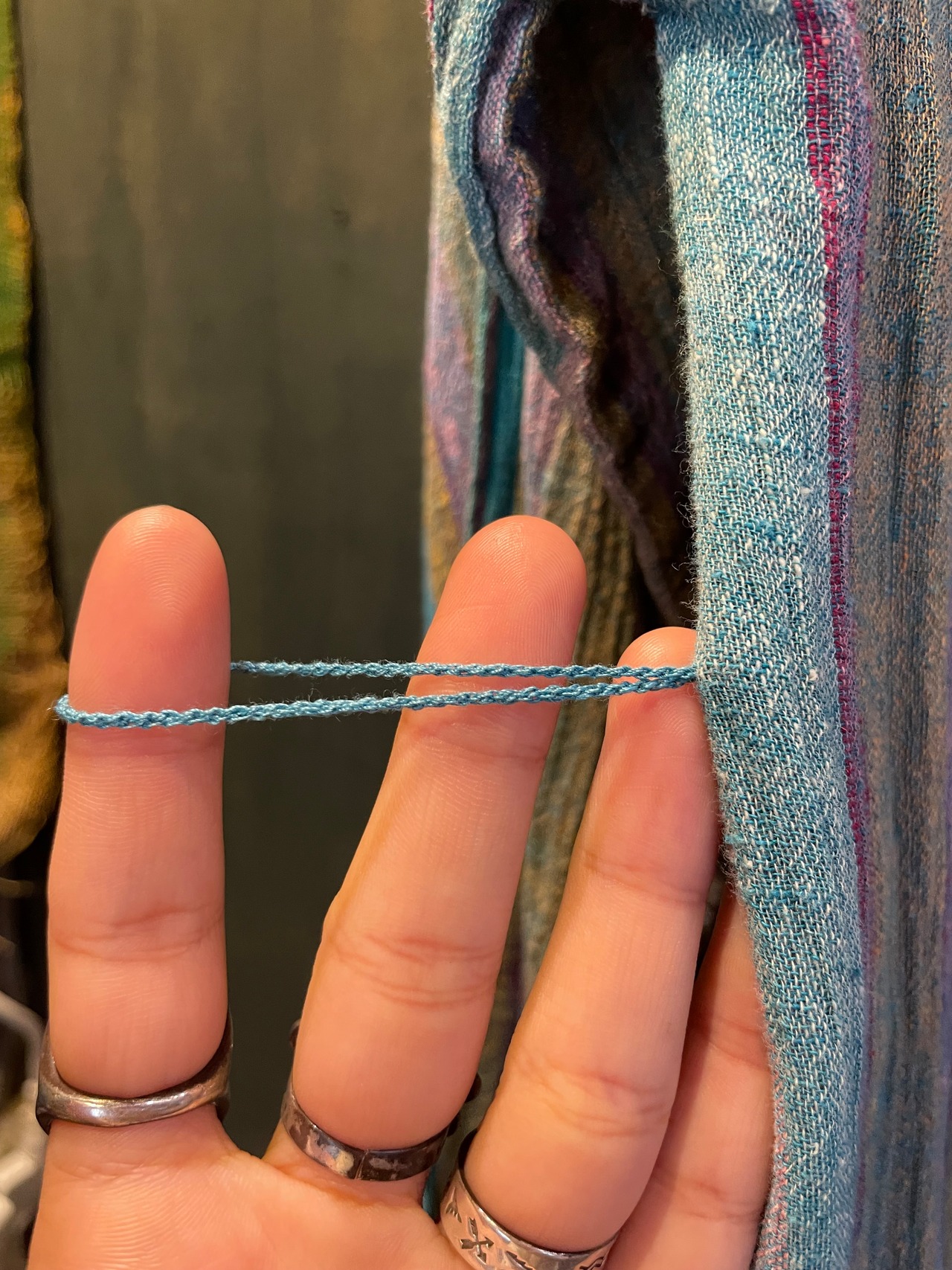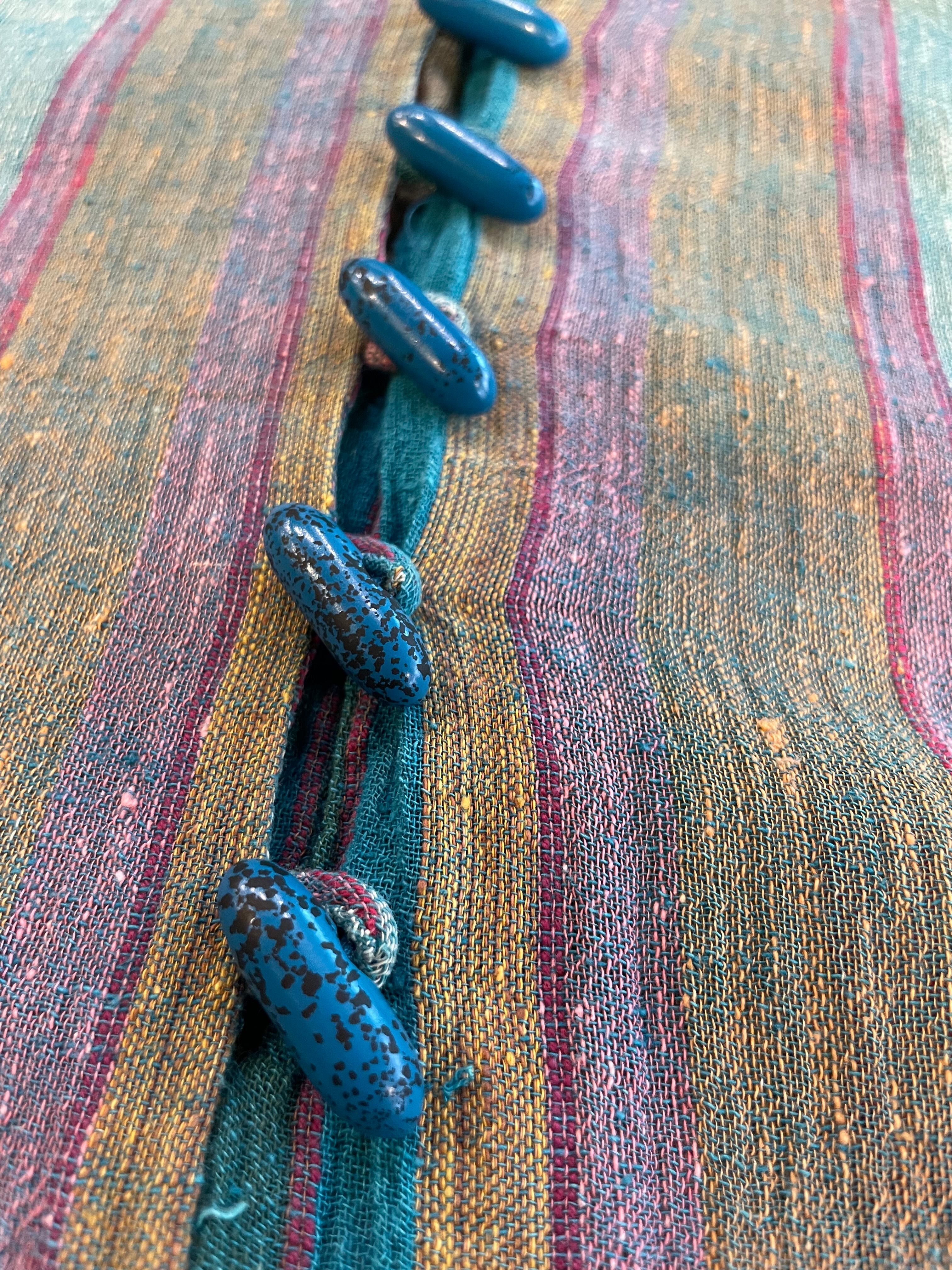 トカゲの尻尾のようなきれいな青の絶妙な色合わせ、全体的にヴィンテージなムード漂う雰囲気のある一枚です。
