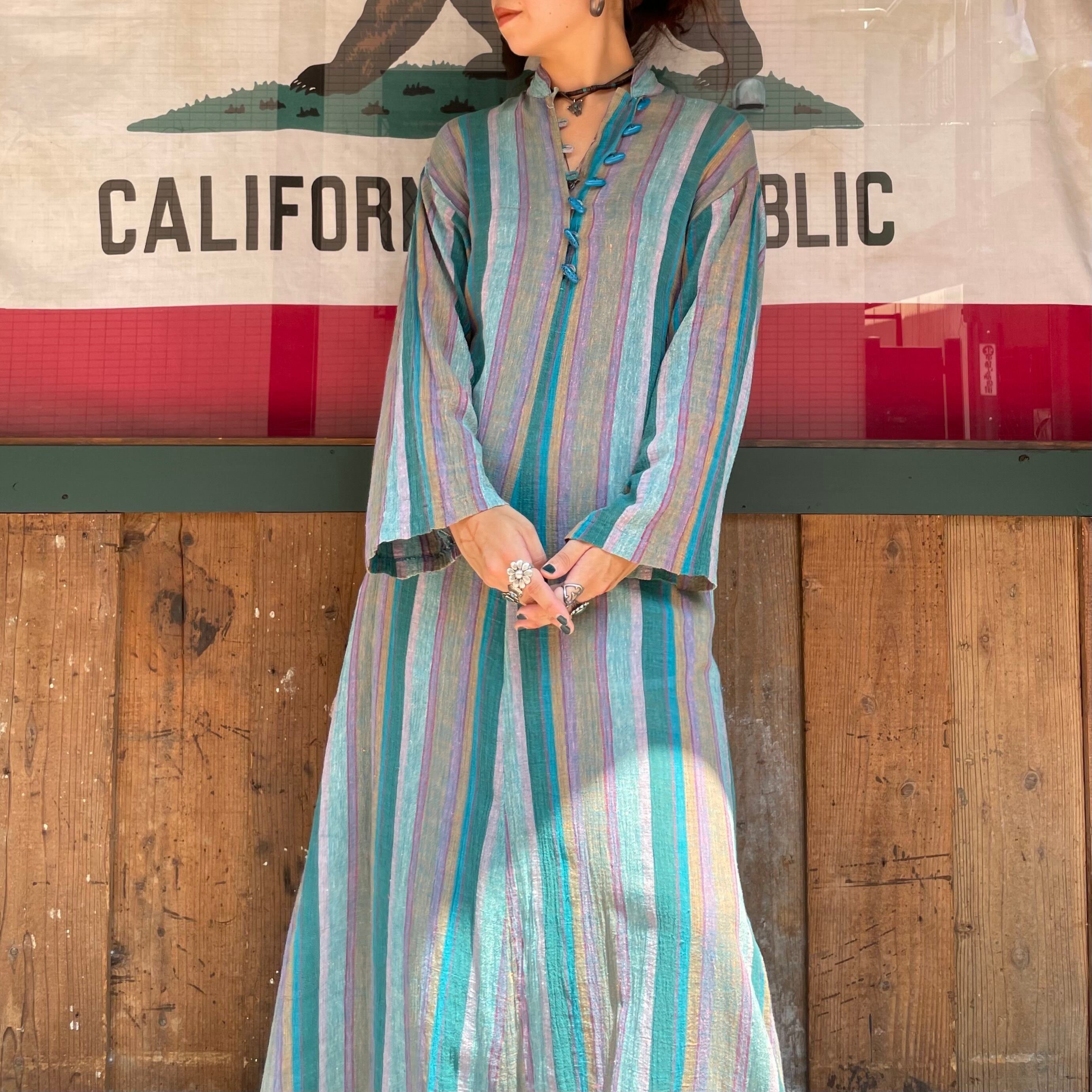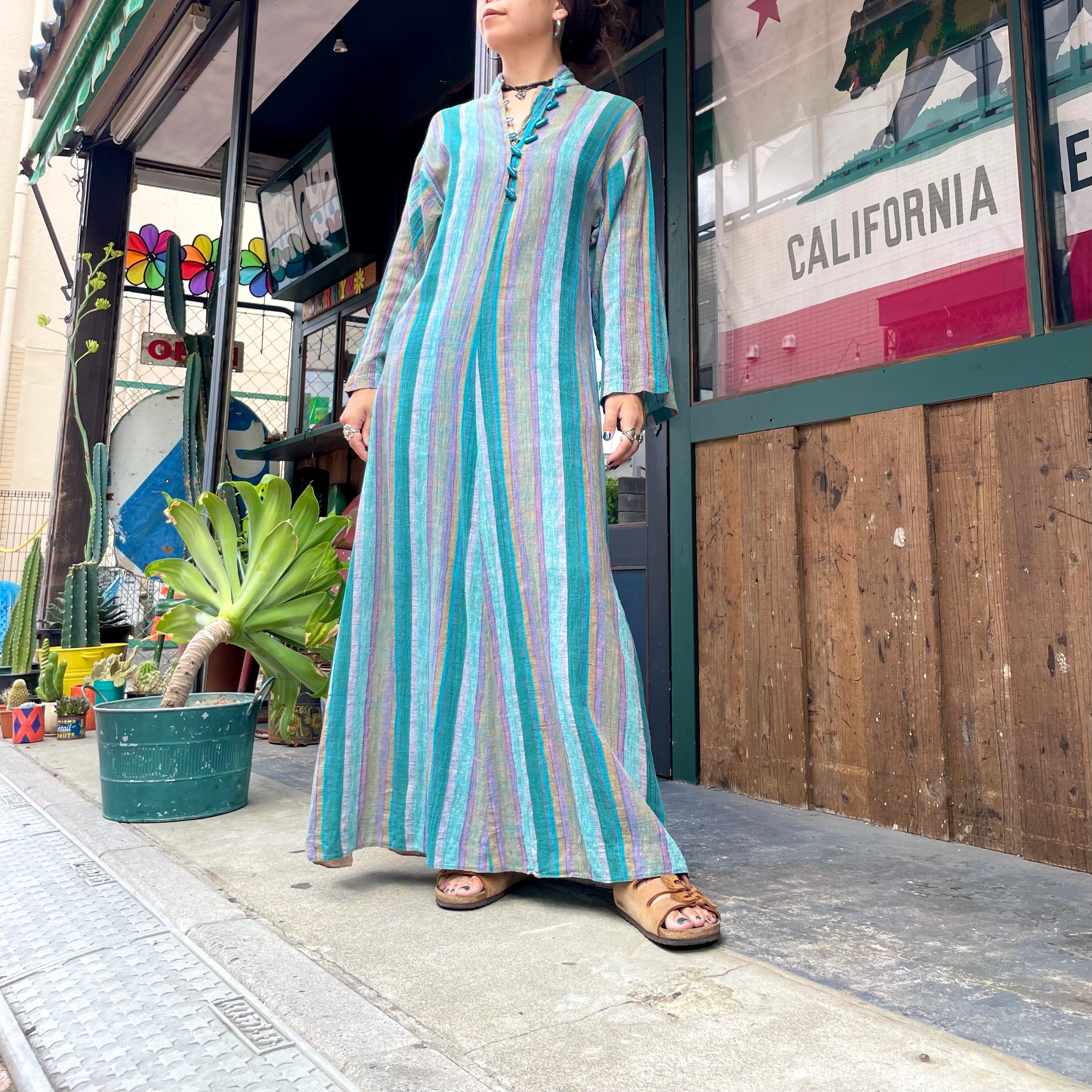 爽やかな色味のストライプがとても素敵な長袖のワンピースです。