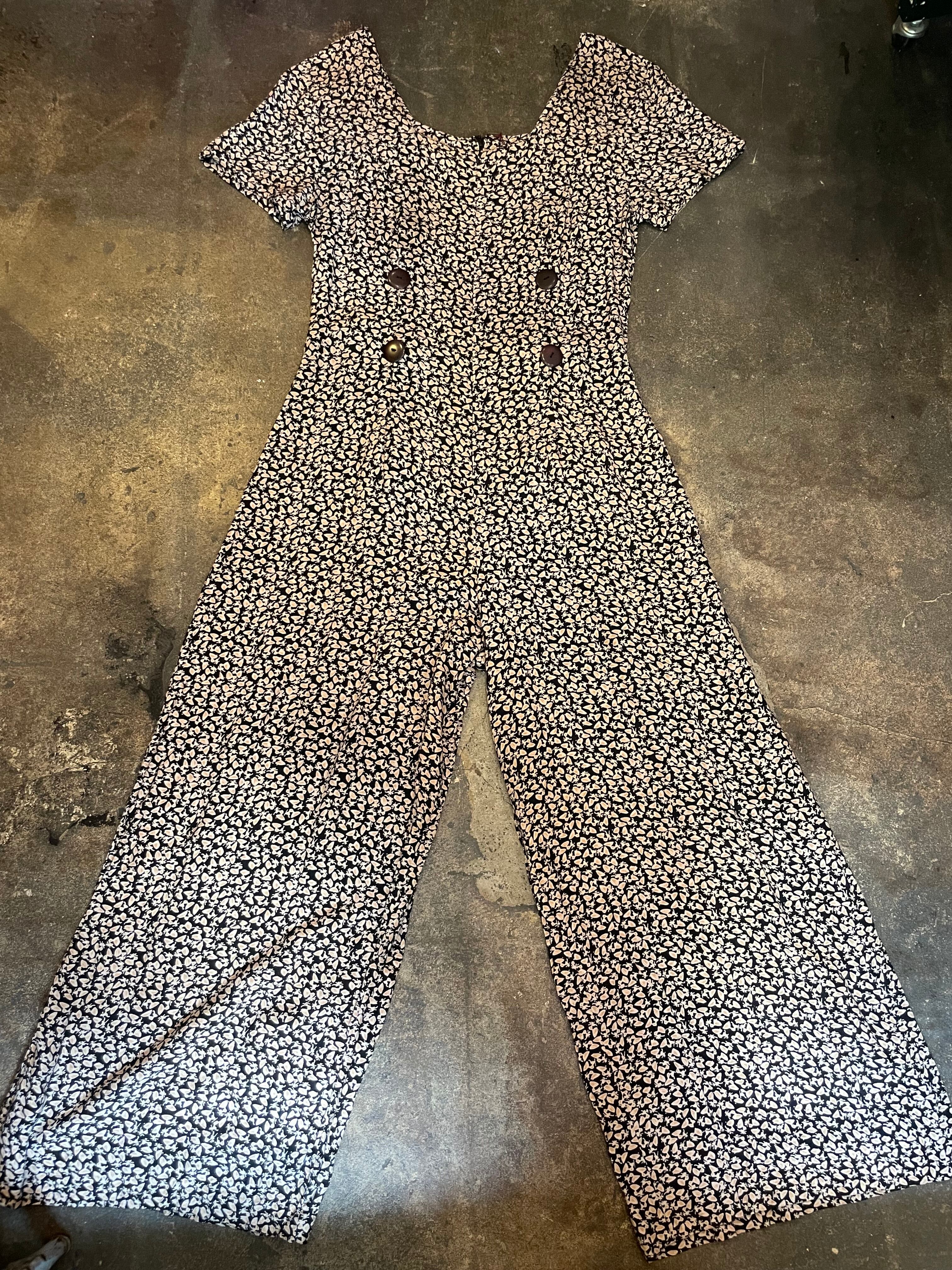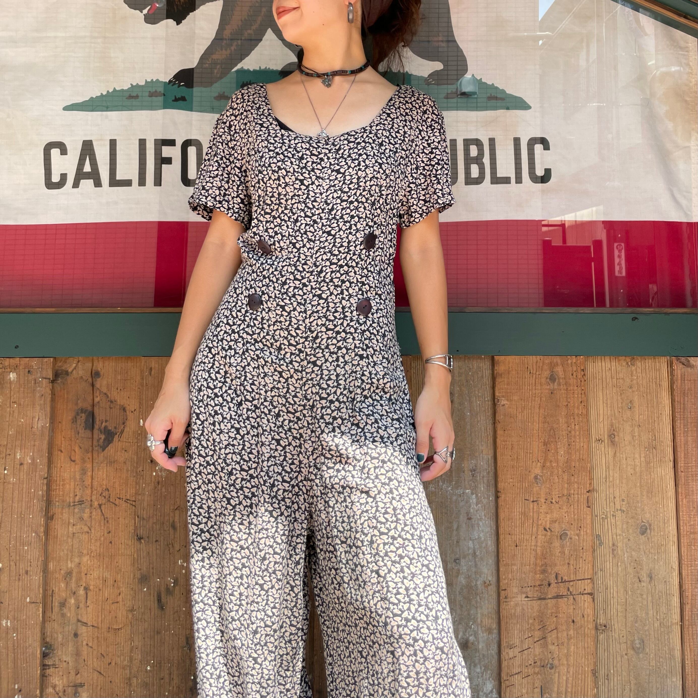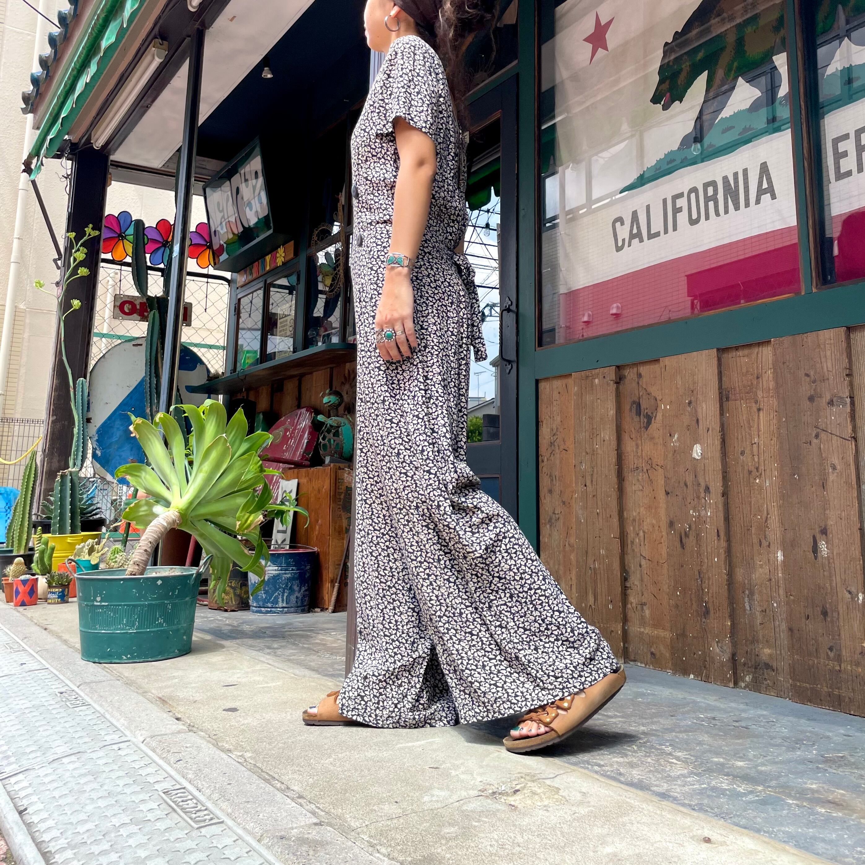 襟ぐりが前も後ろもきれいに開いていてかわいいオールインワンです。パンツのワイドなシルエットもかっこいいですし、涼しくて楽ちんな一枚です。
