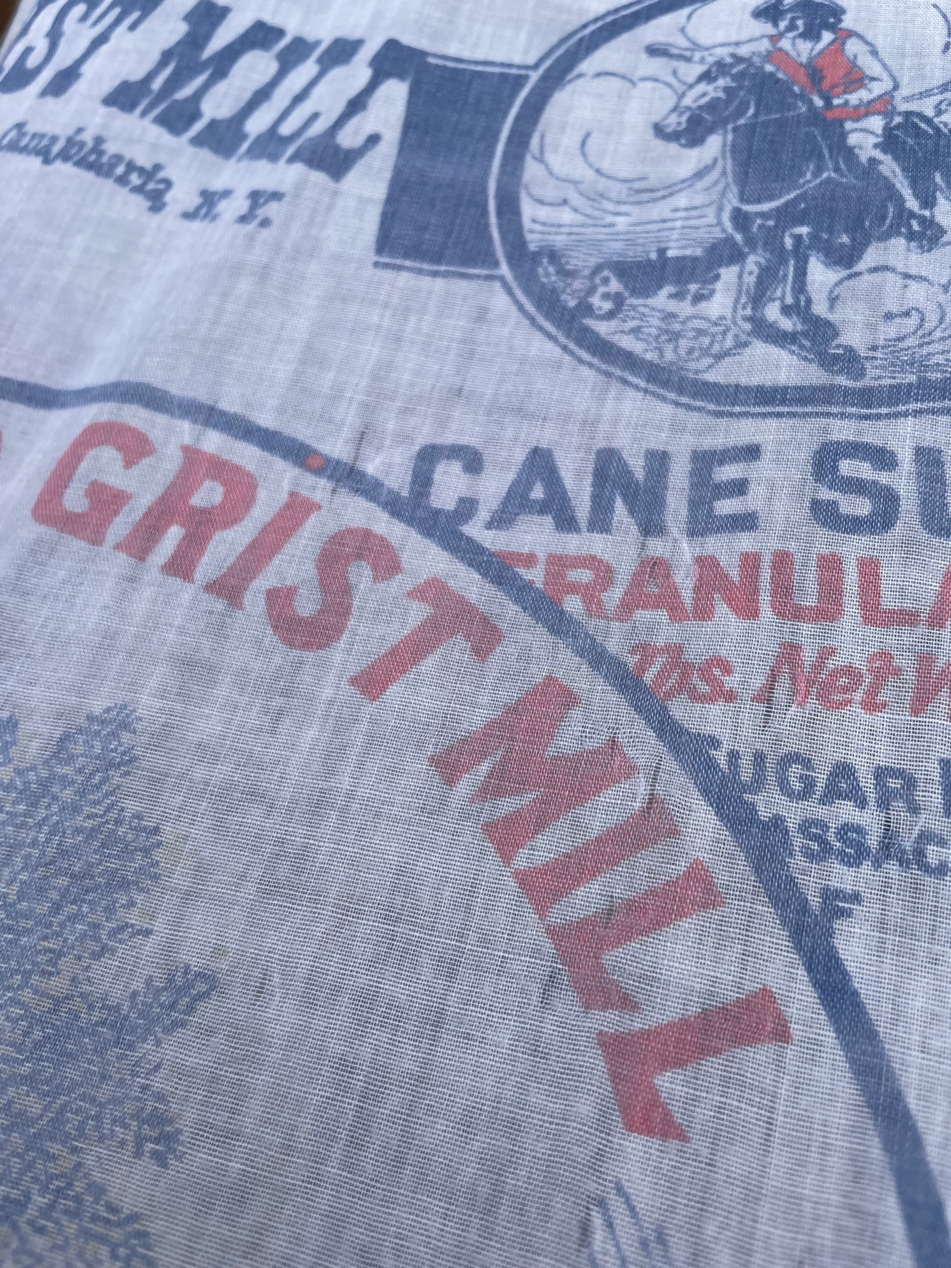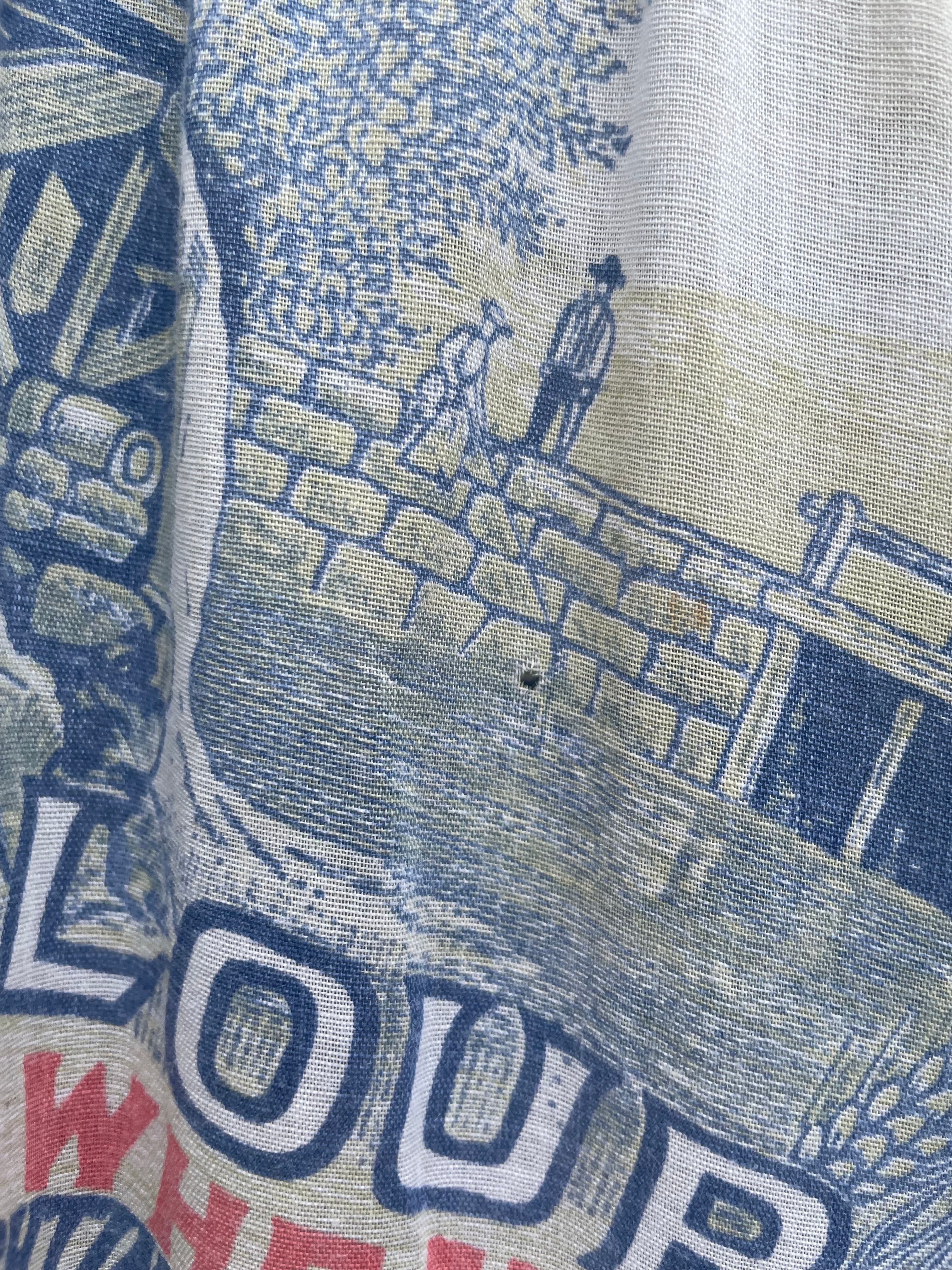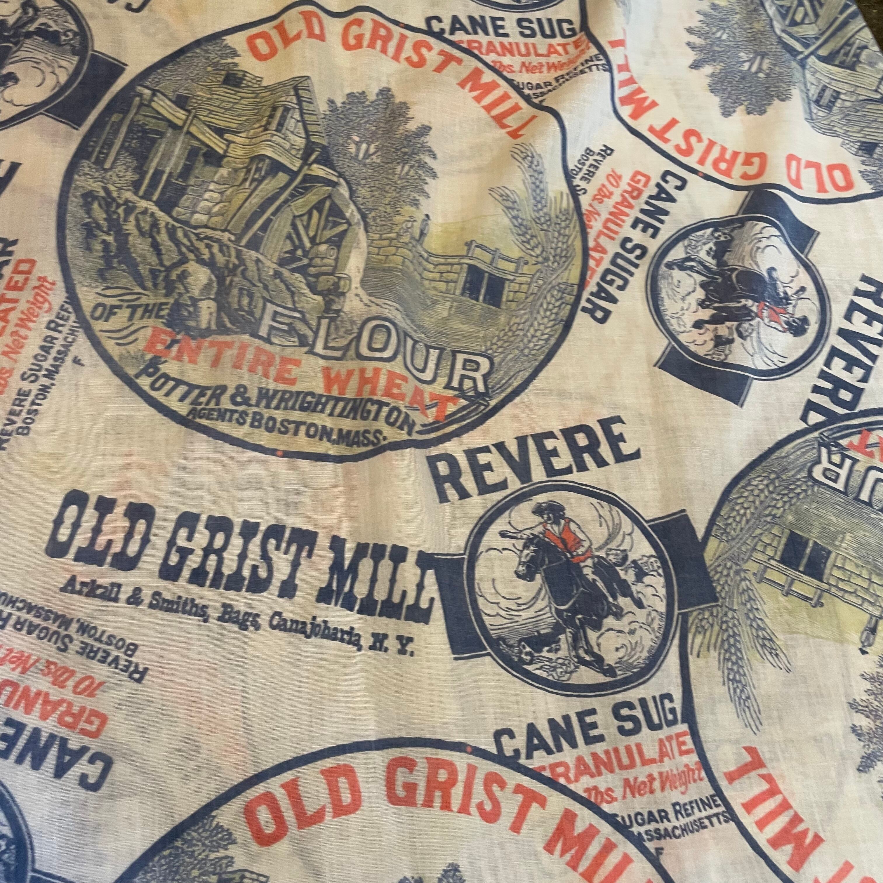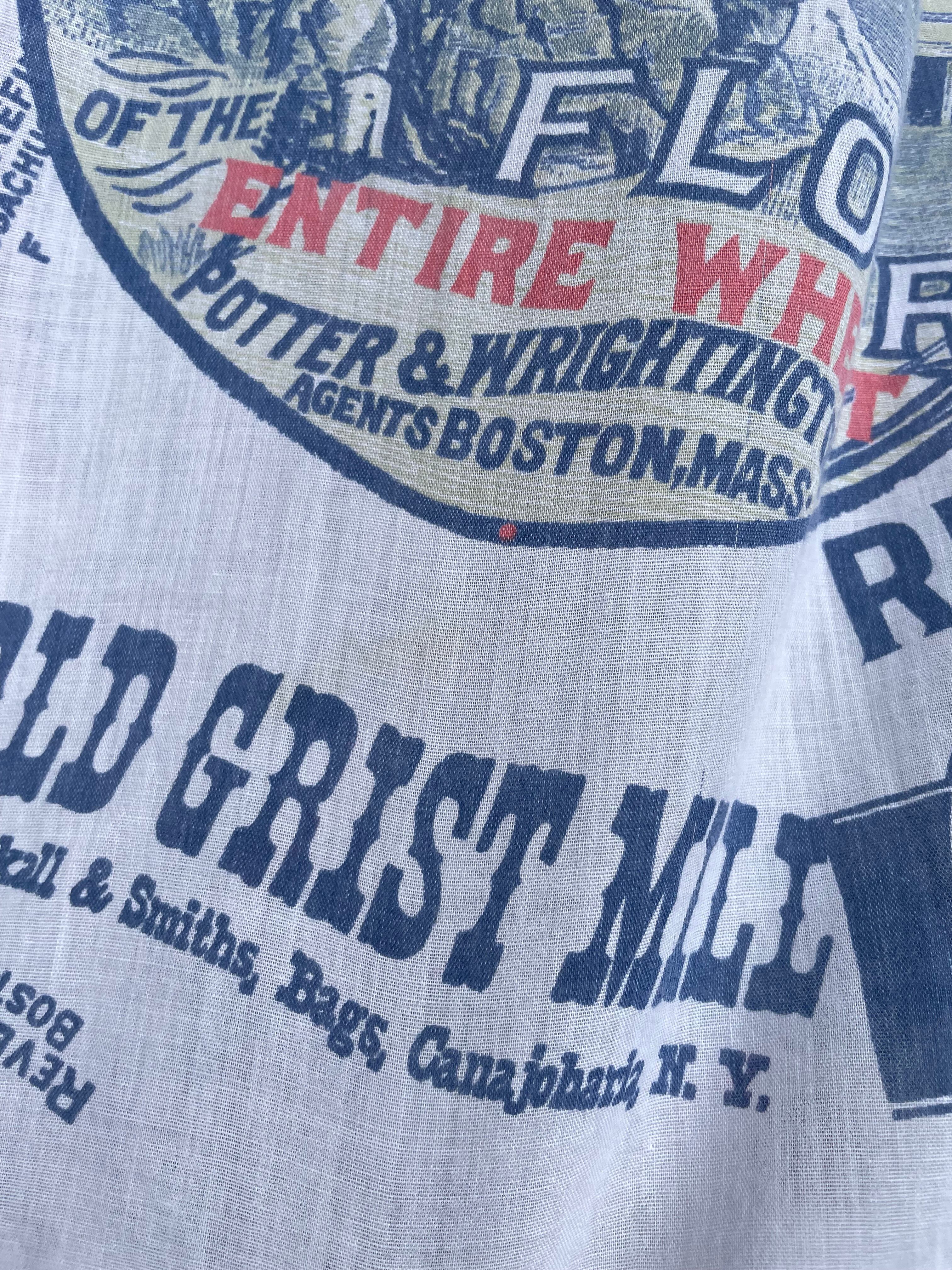 フィードサックの模様をプリントされた生地がかっこいい70年代頃のワンピースです。