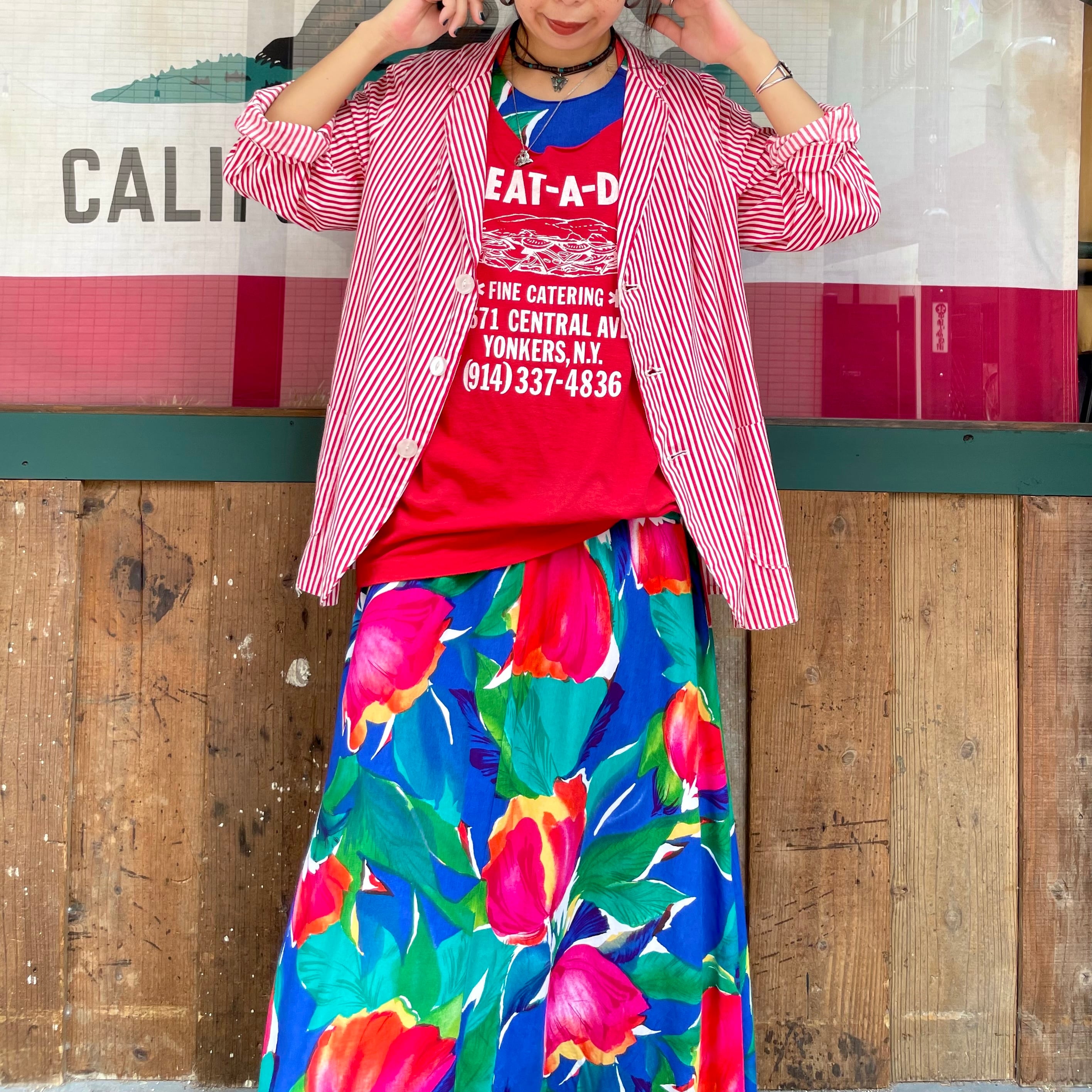 ボーダーやストライプのトップスやワンピースと合わせてアーティスティックに着てもかわいいですし、プリントティーシャツにデニムパンツや、オーバーオールと合わせてもかわいいと思います。