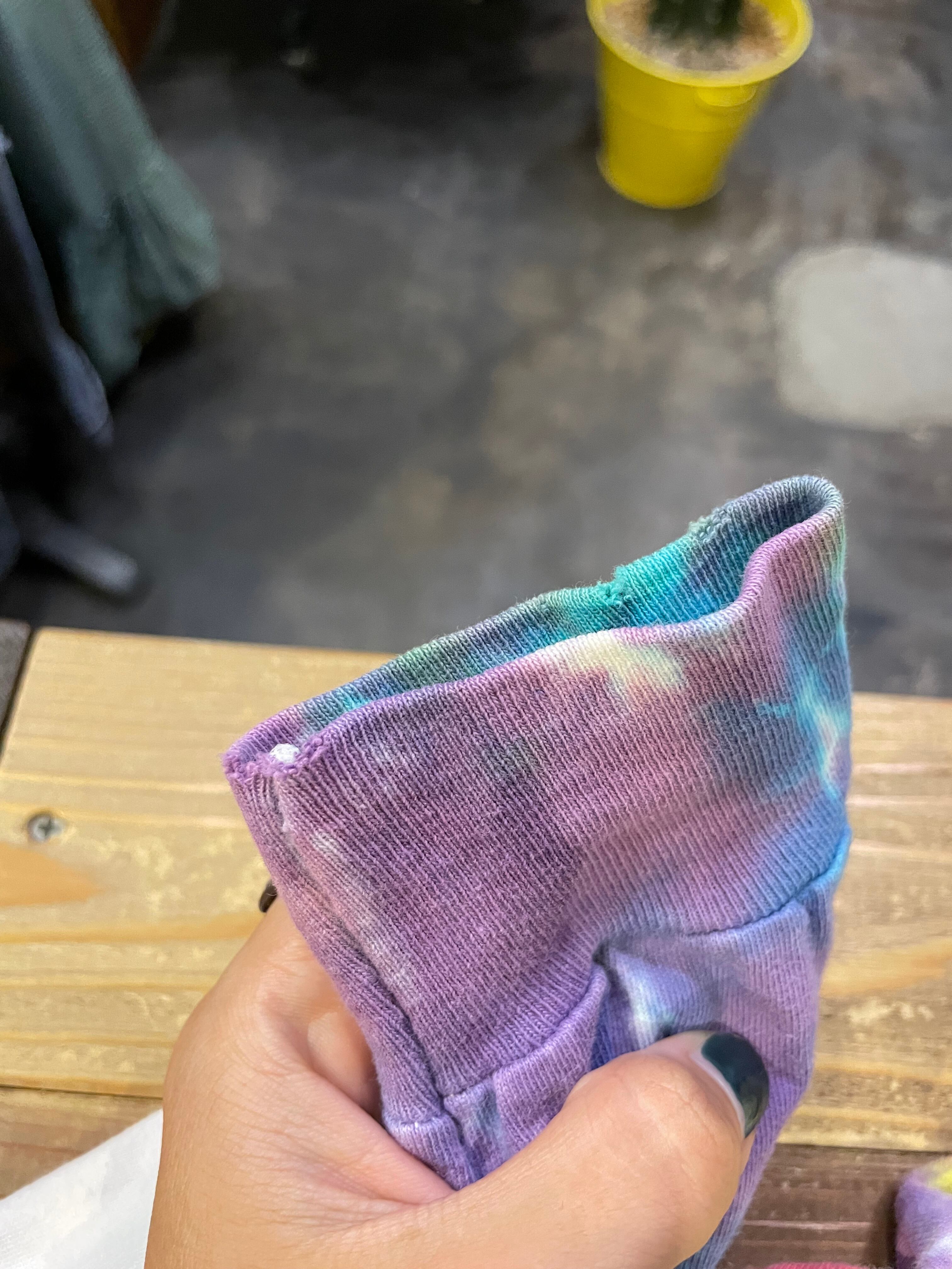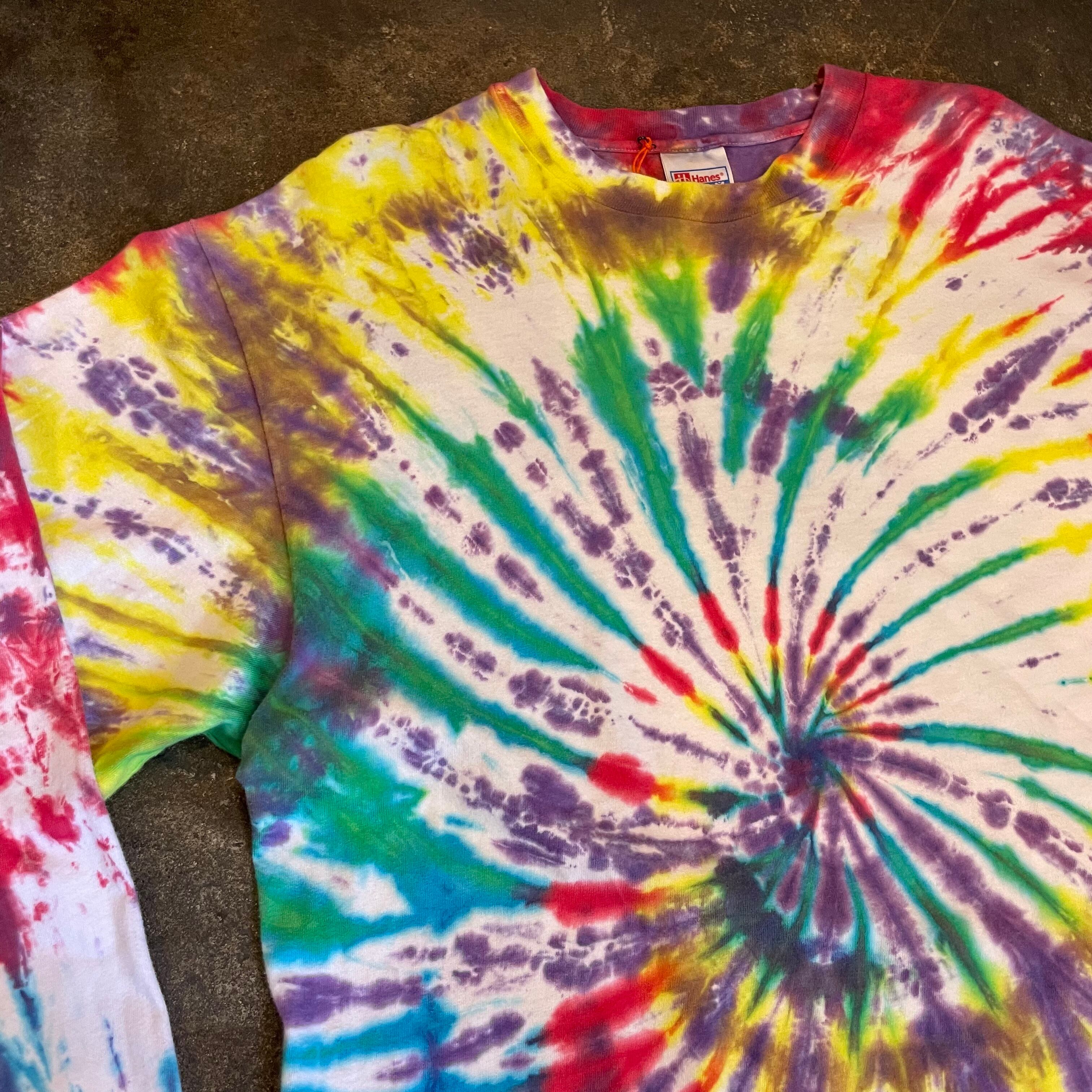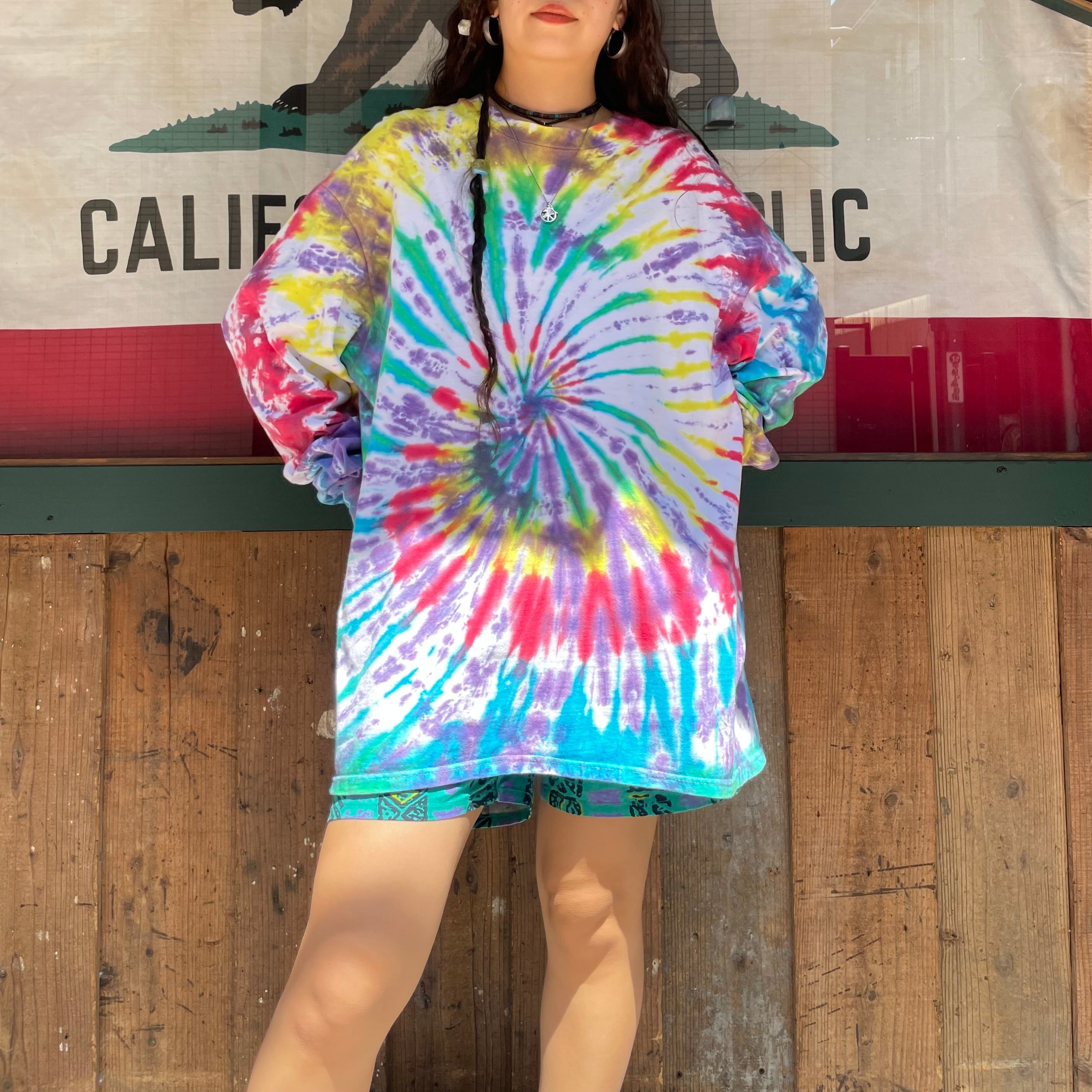 予期せぬ色味のタイダイがとてもかわいいロンTです。かなり独特な色のバランスのような感じがして惹かれます。