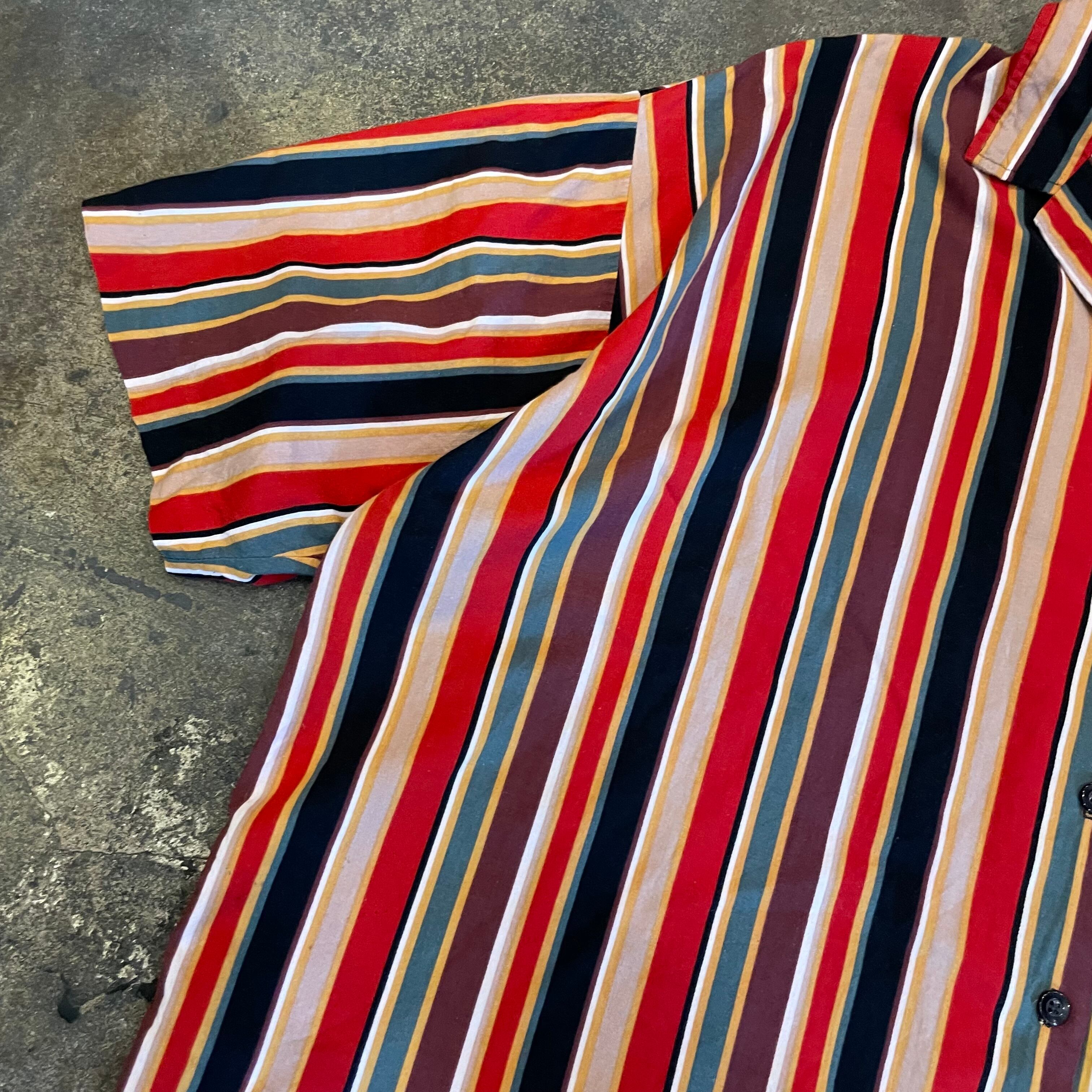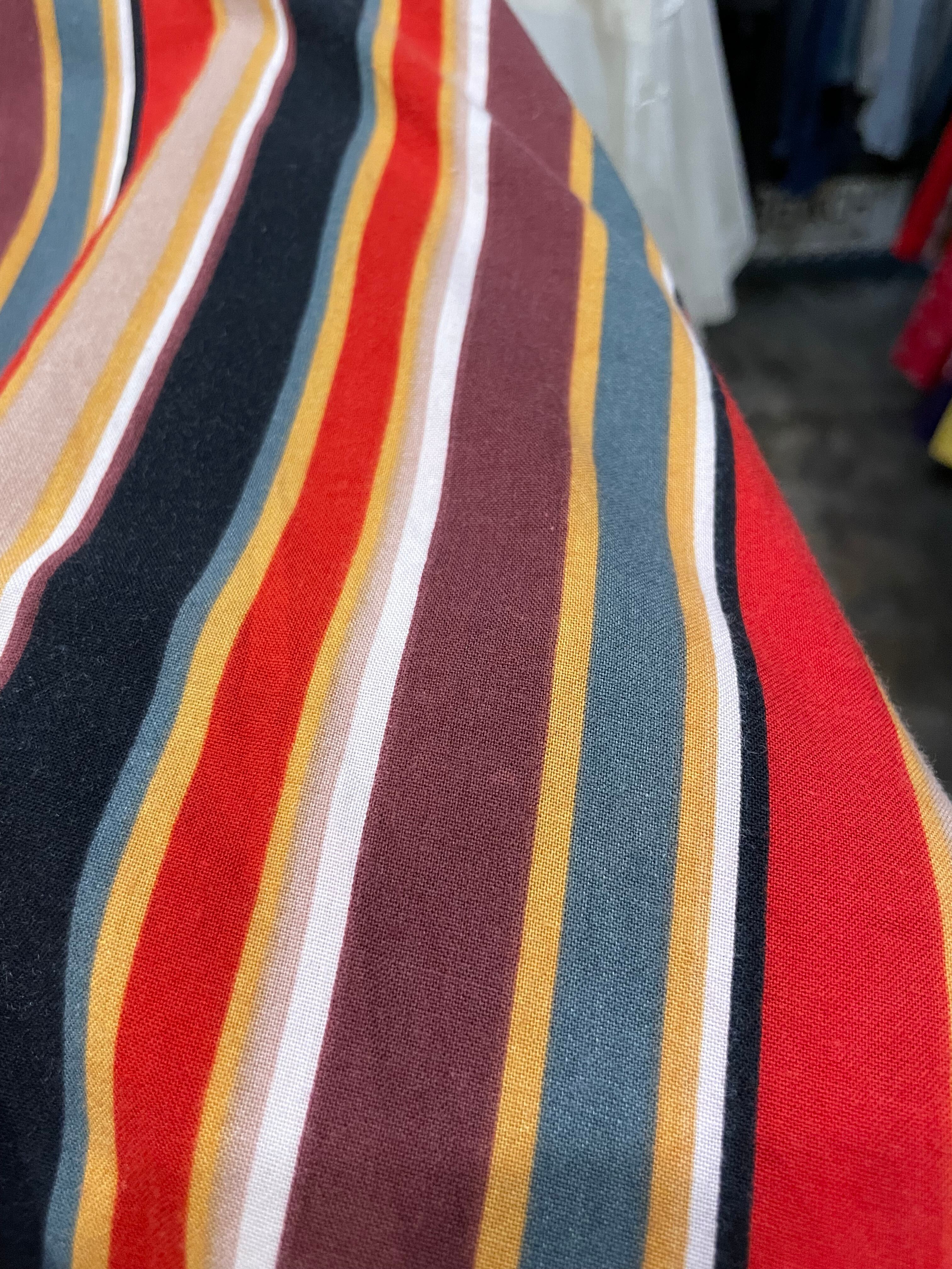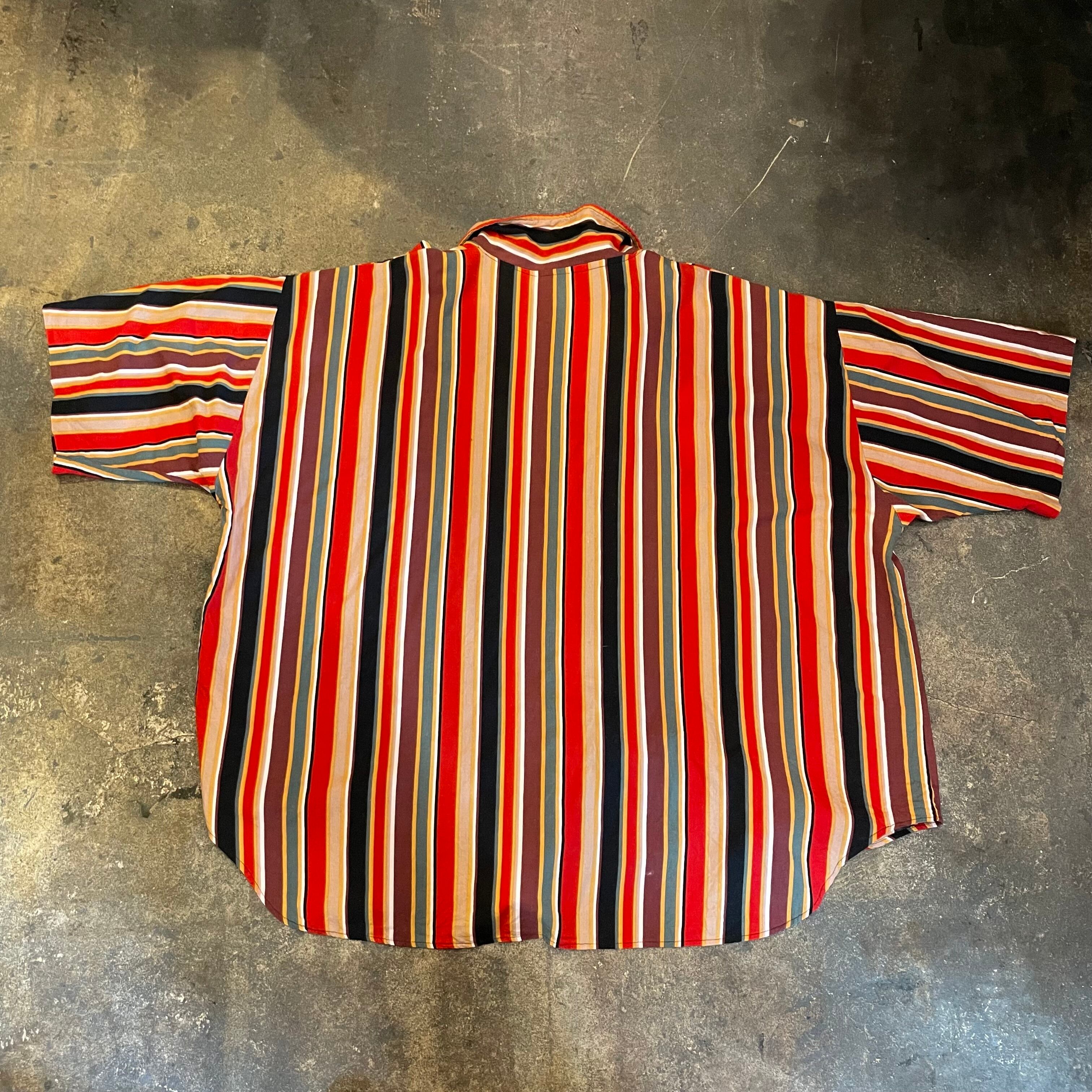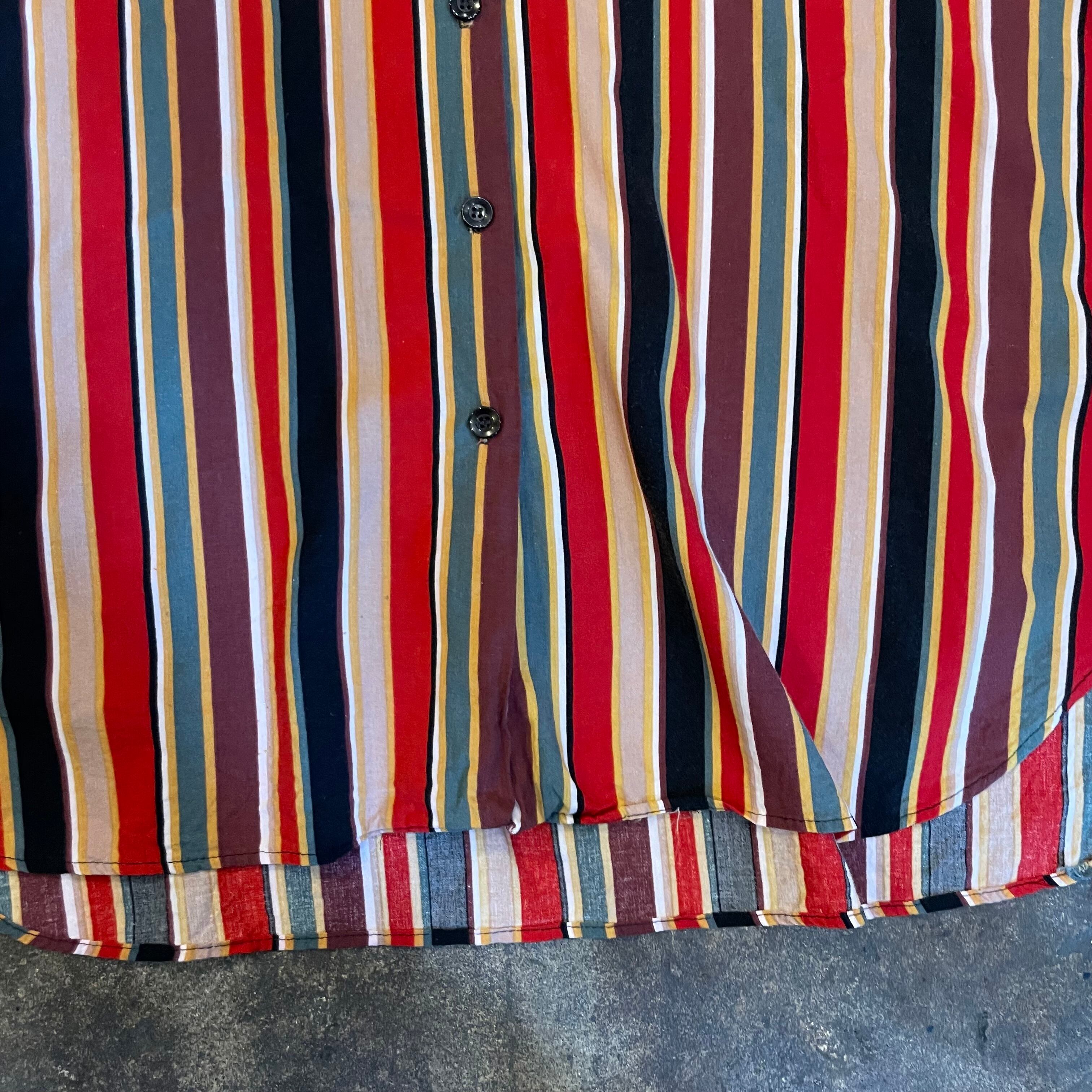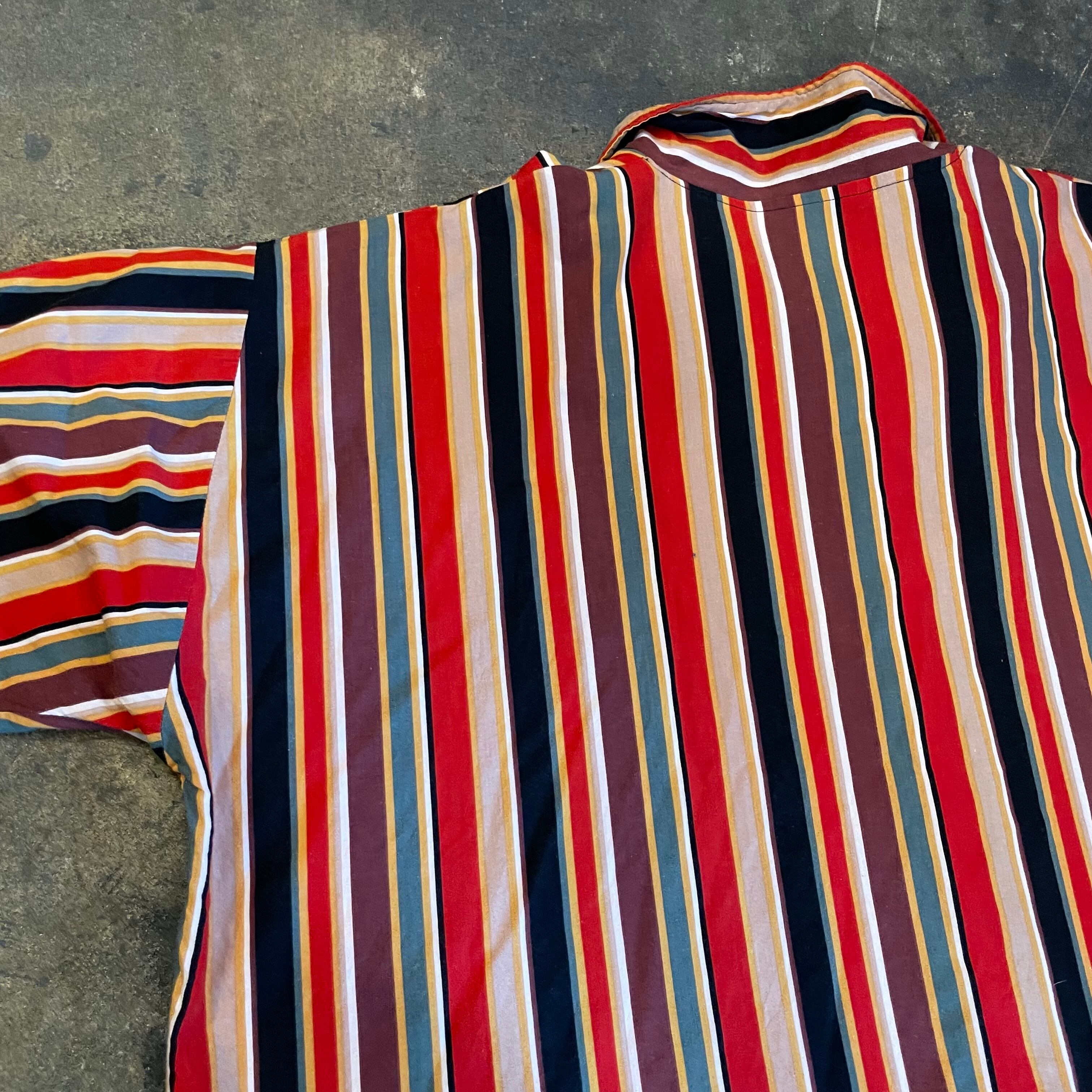 色味のバランスがアフリカンっぽくもあり、イタリアンっぽくもあるような素敵なストライプでかわいい、とてもオーバーサイズなシャツです。