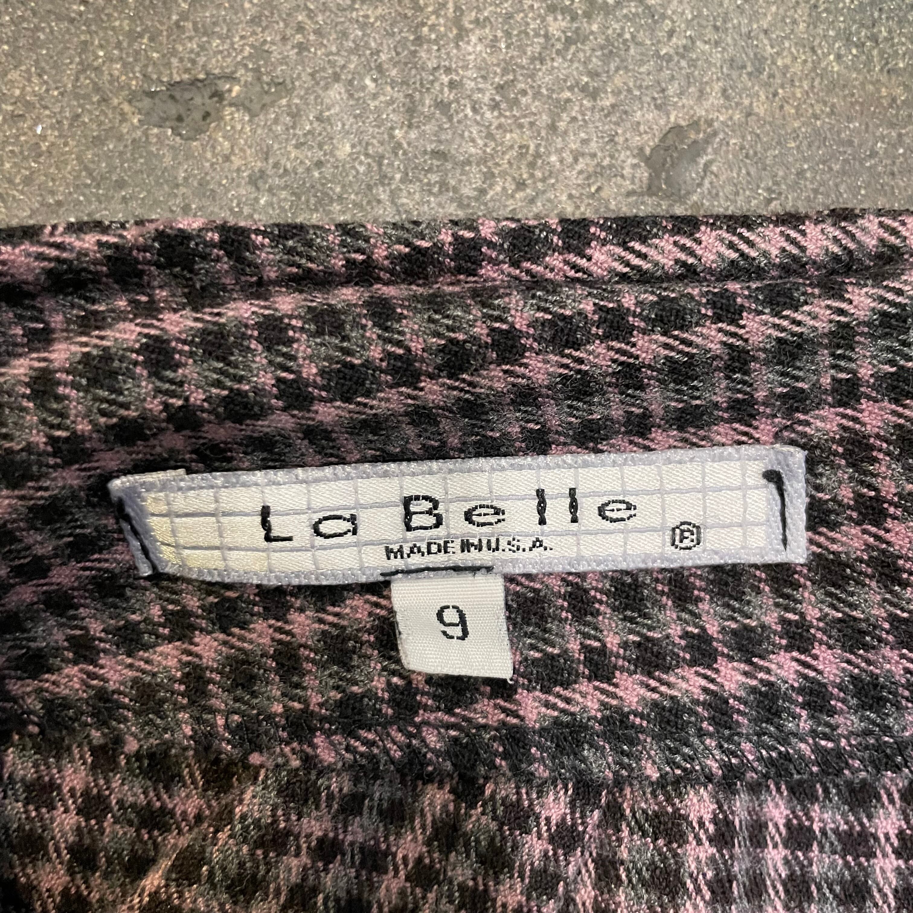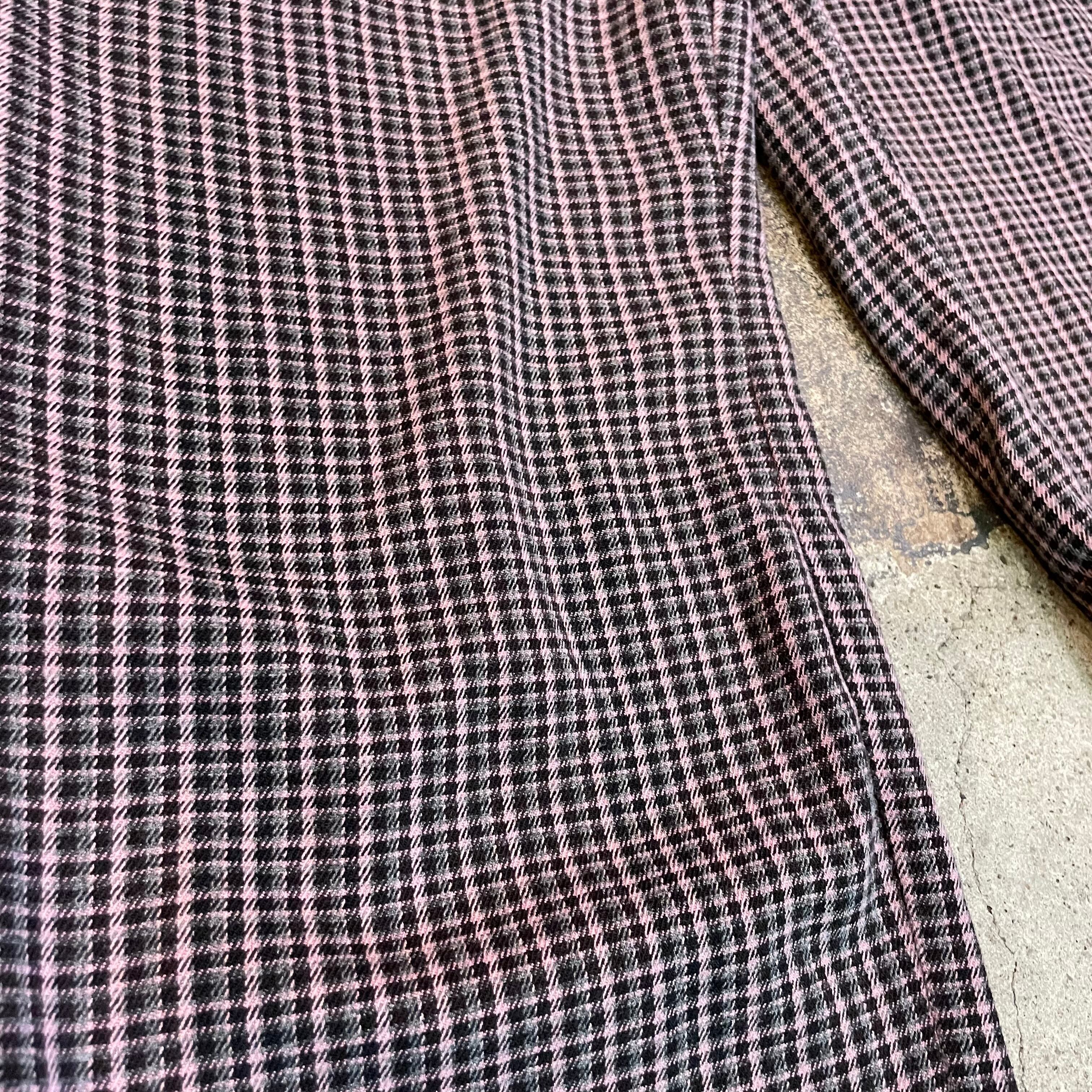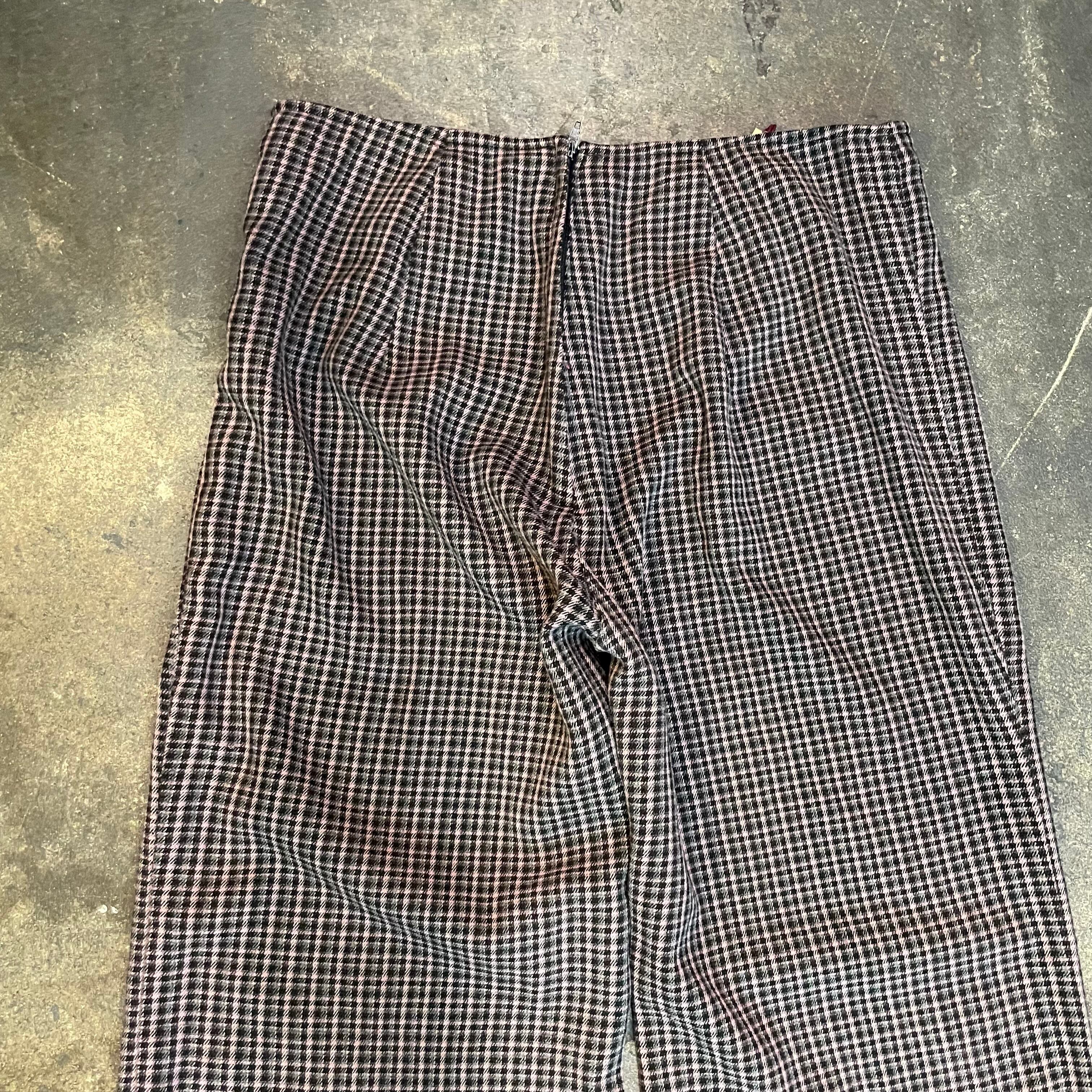 細かくて柔らかい色味のチェック柄がかわいいパンツです。スッキリしたストレートなシルエットでポケットやベルトループもないあっさりしたデザインなところと、若干伸縮性があるのも楽ちんで良い雰囲気です。