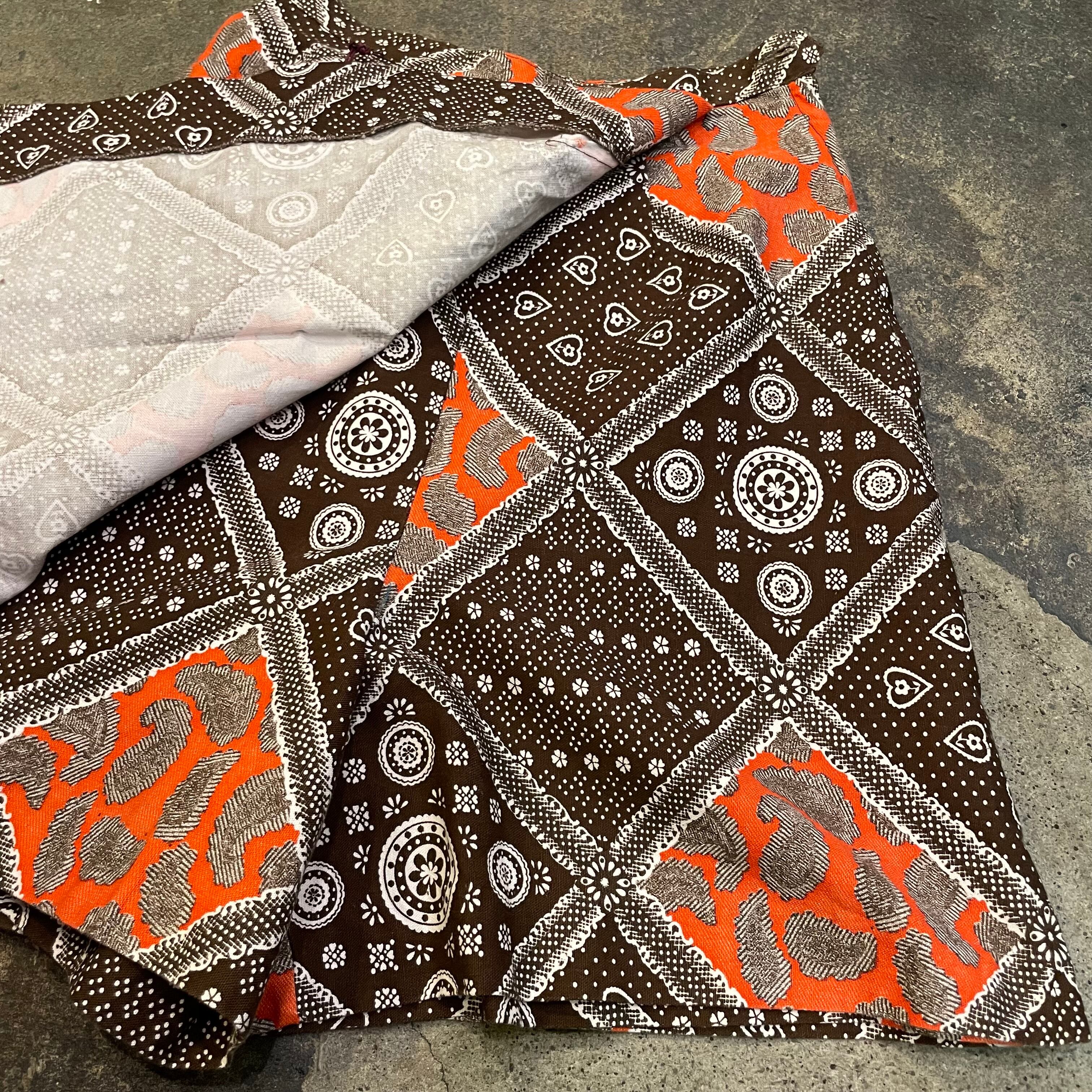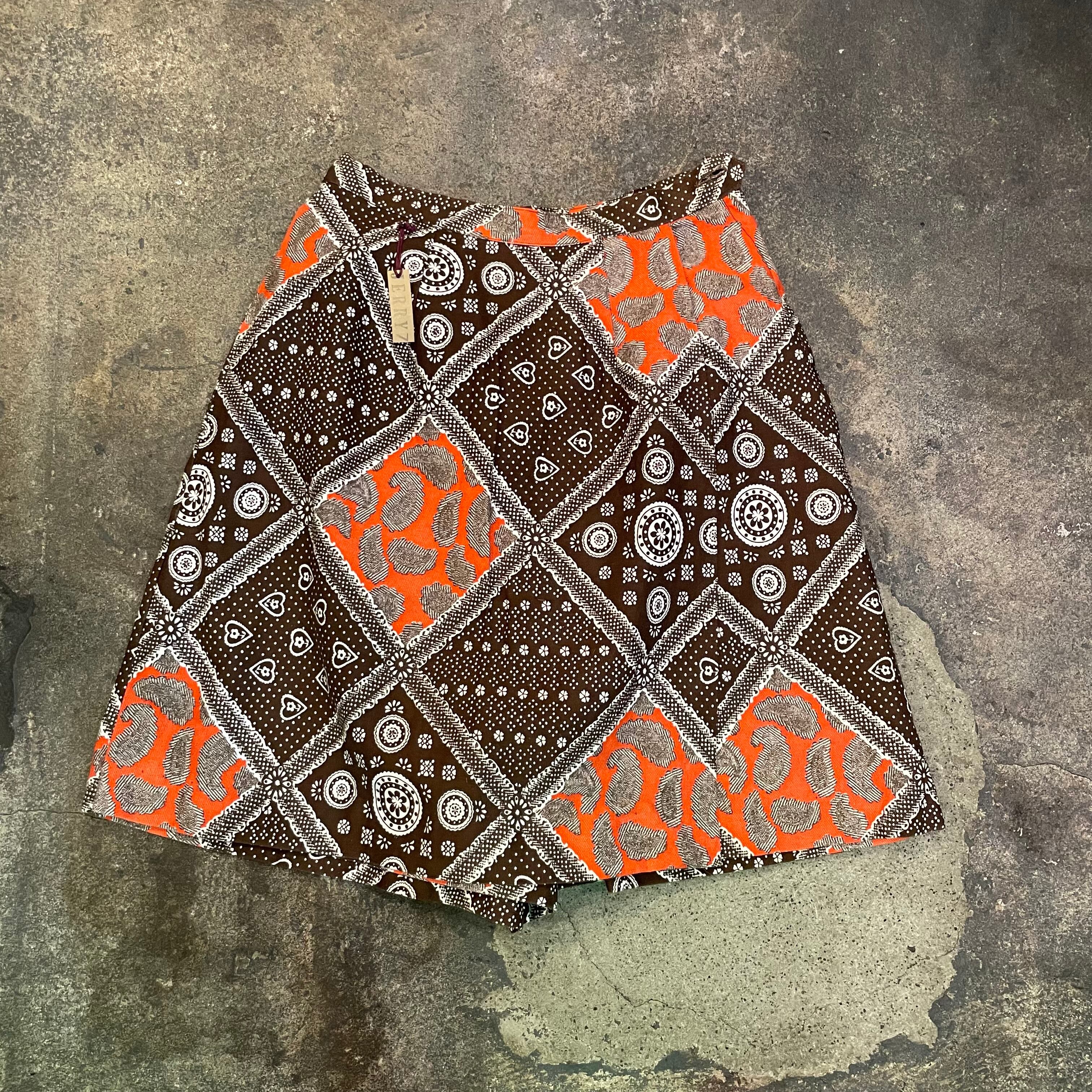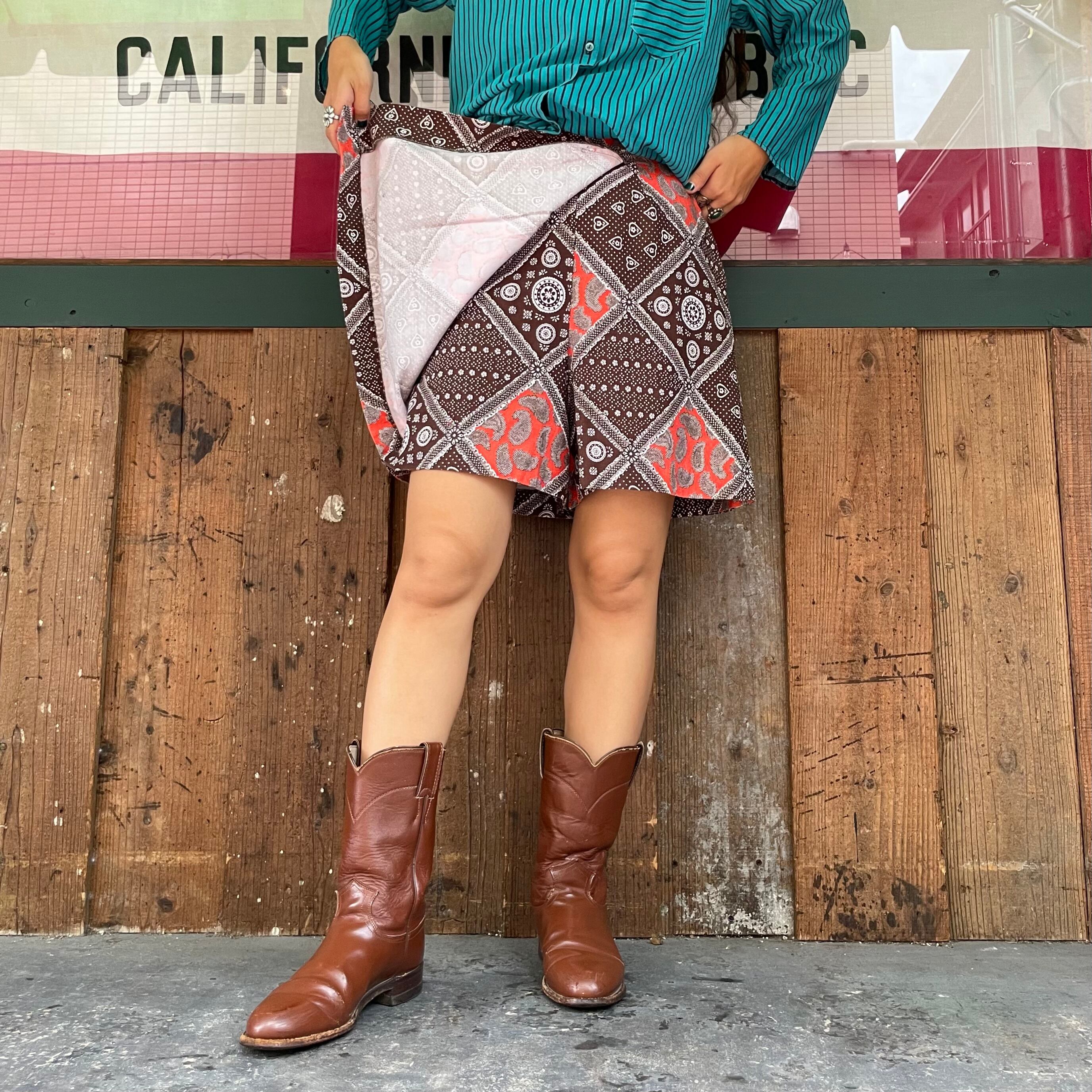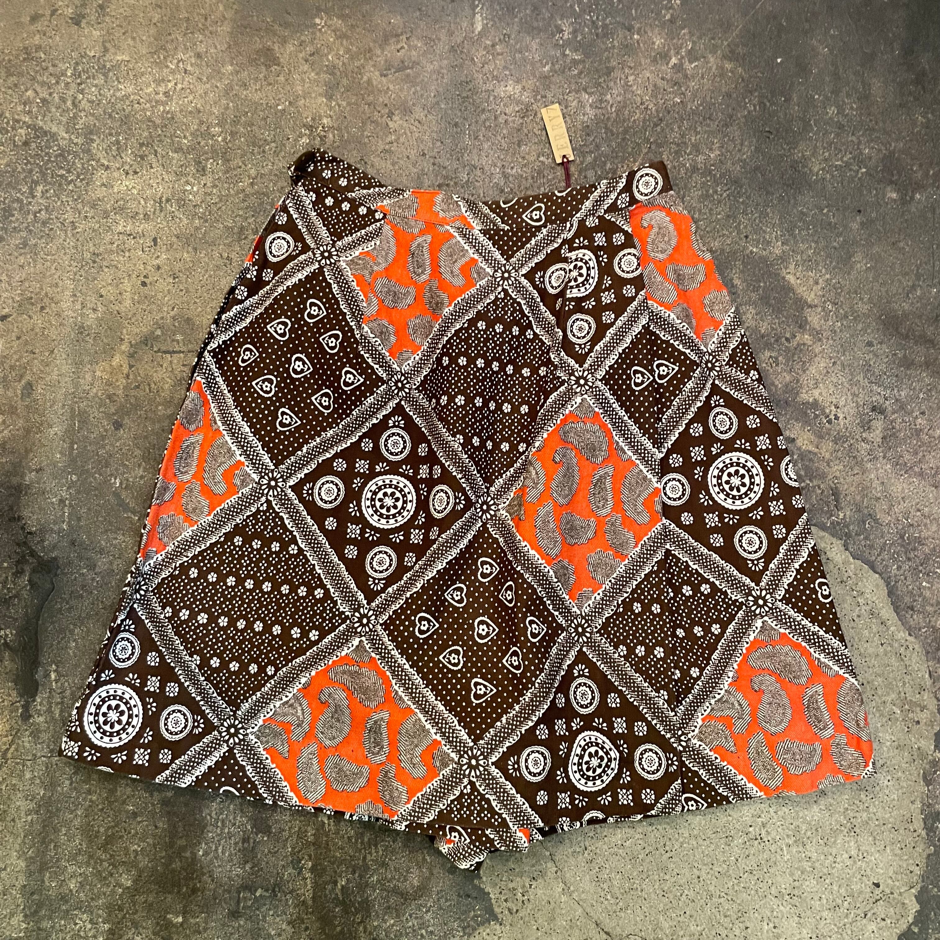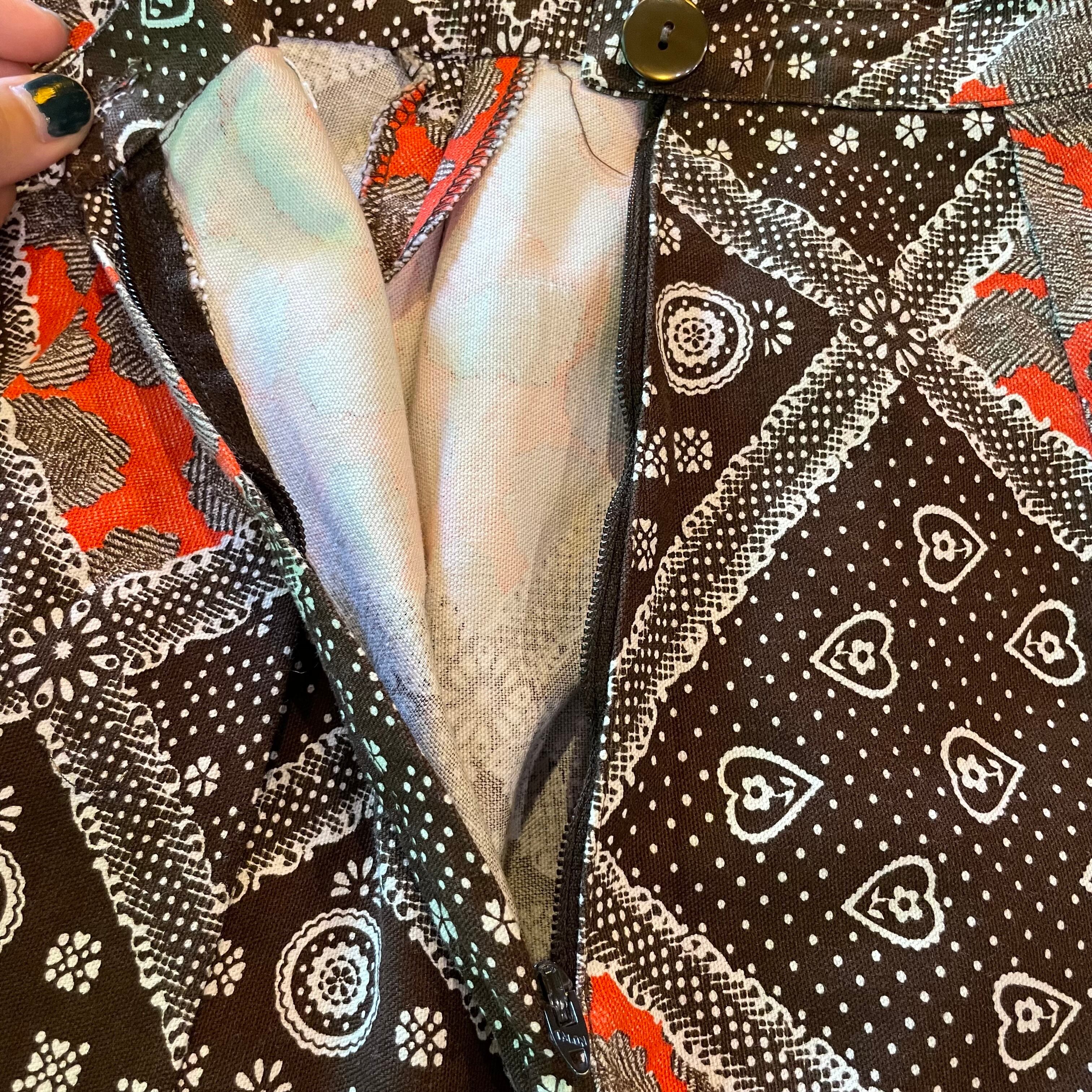 ペイズリーやお花、ハートなどのパッチワーク柄っぽい雰囲気がかわいいキュロットパンツです。