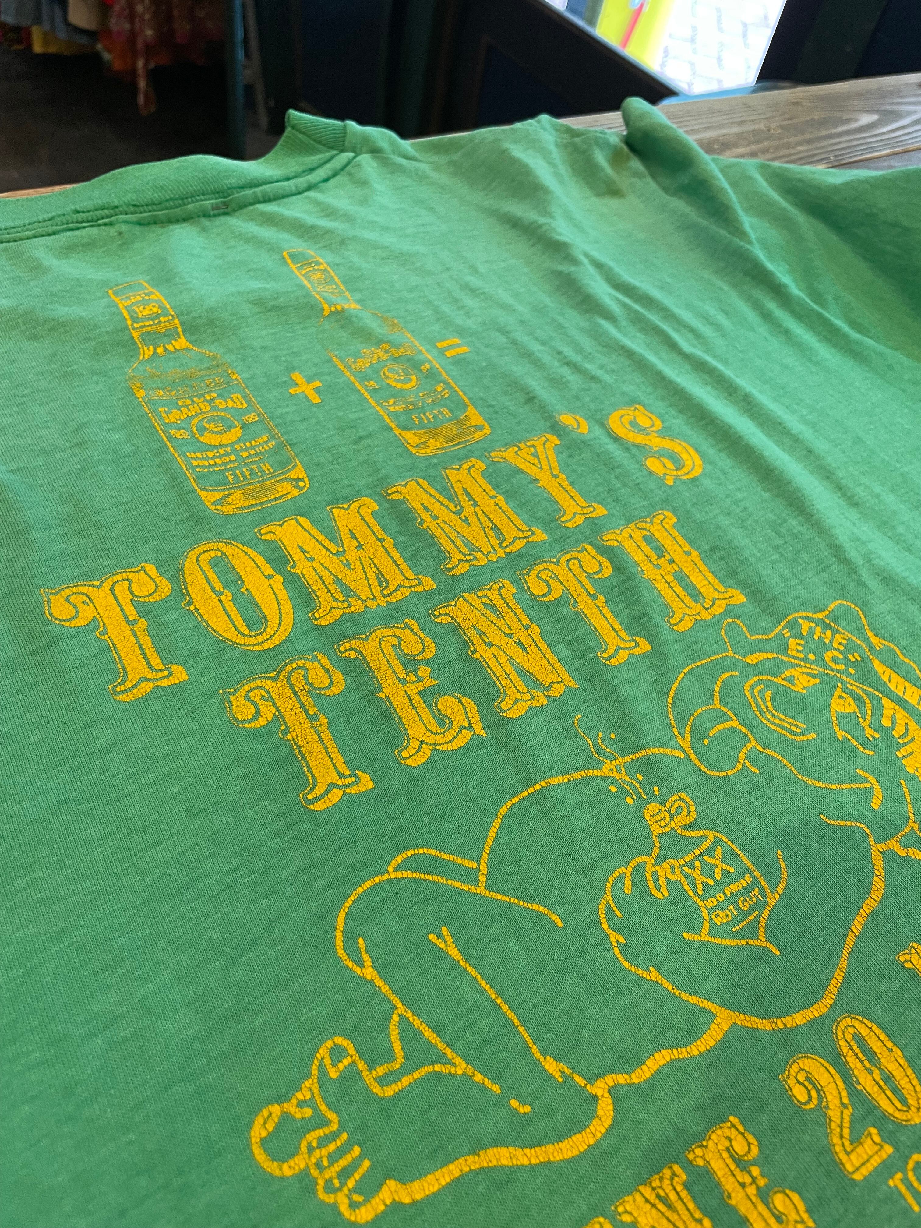 バーの10周年か何かで作られた感じなのでしょうか。前の店名の書き方やフォントがかっこいのはもちろんですが、何といっても背中のイラストと文字の量が良いですね。