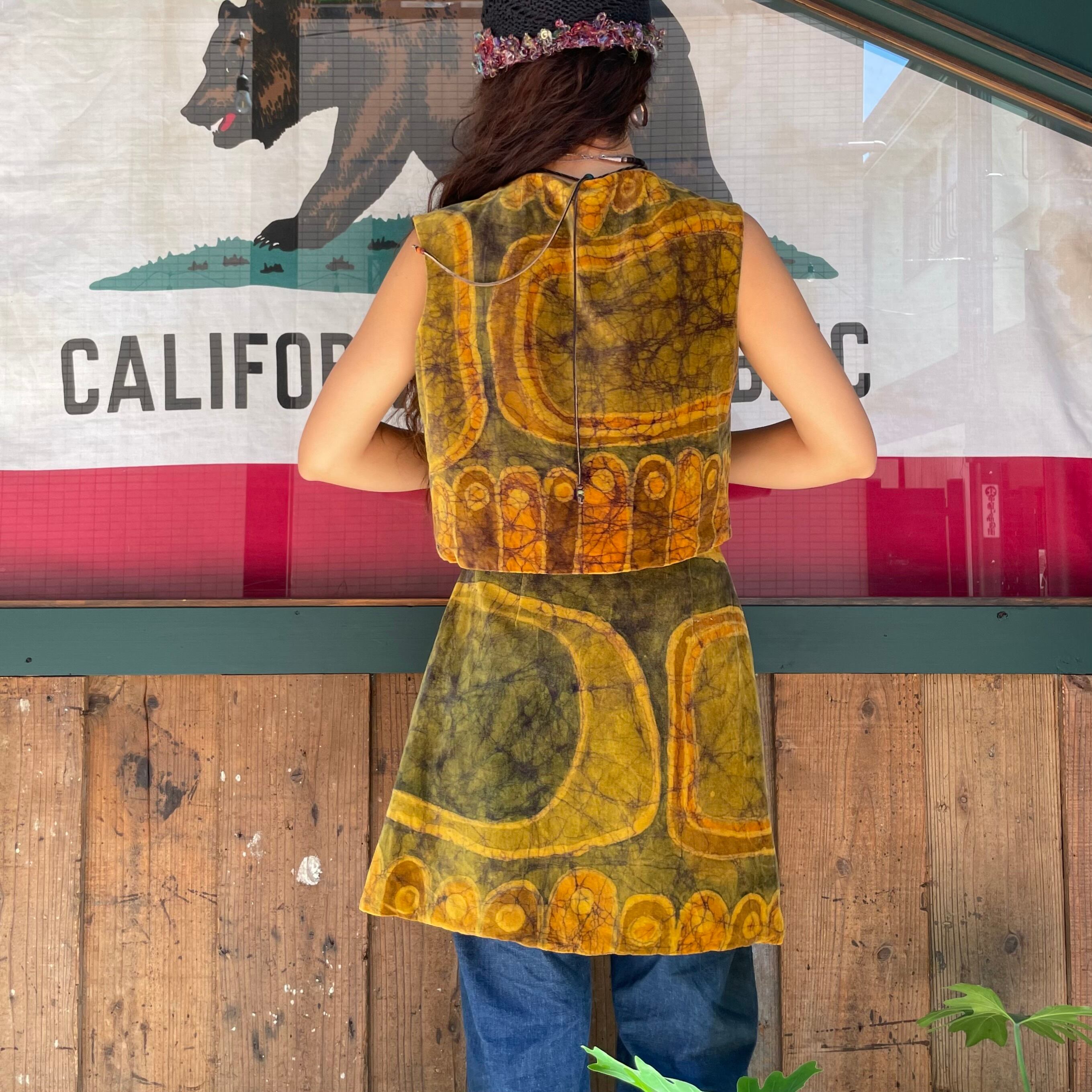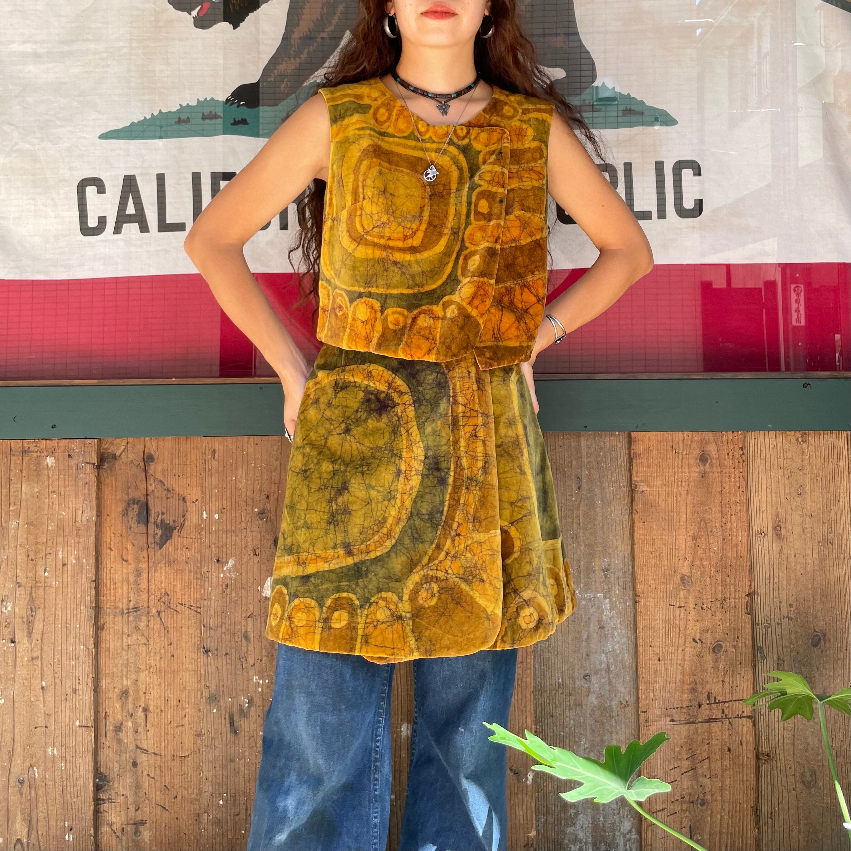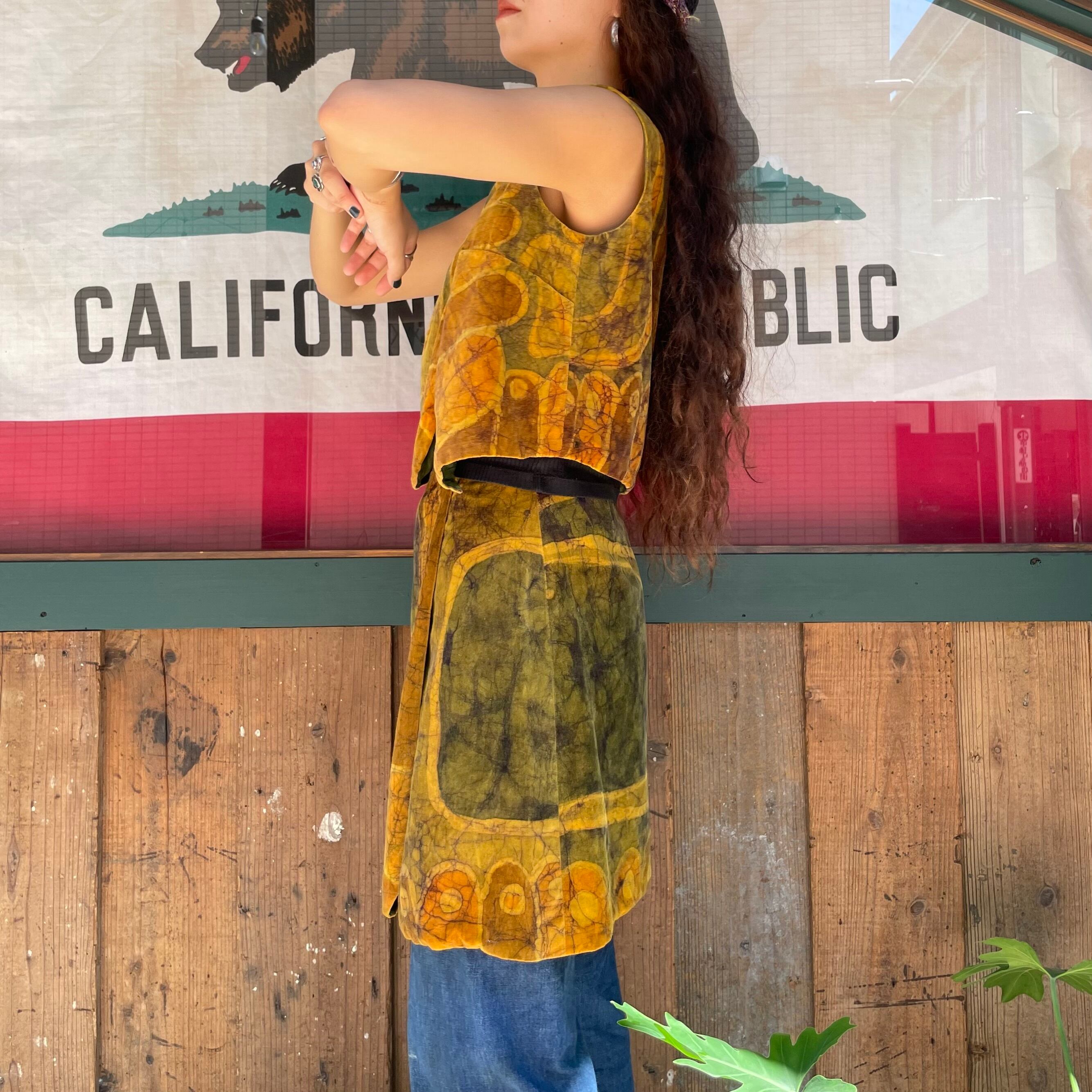 アフリカンバティックのような雰囲気の染めが素敵なベロア素材のセットアップです。