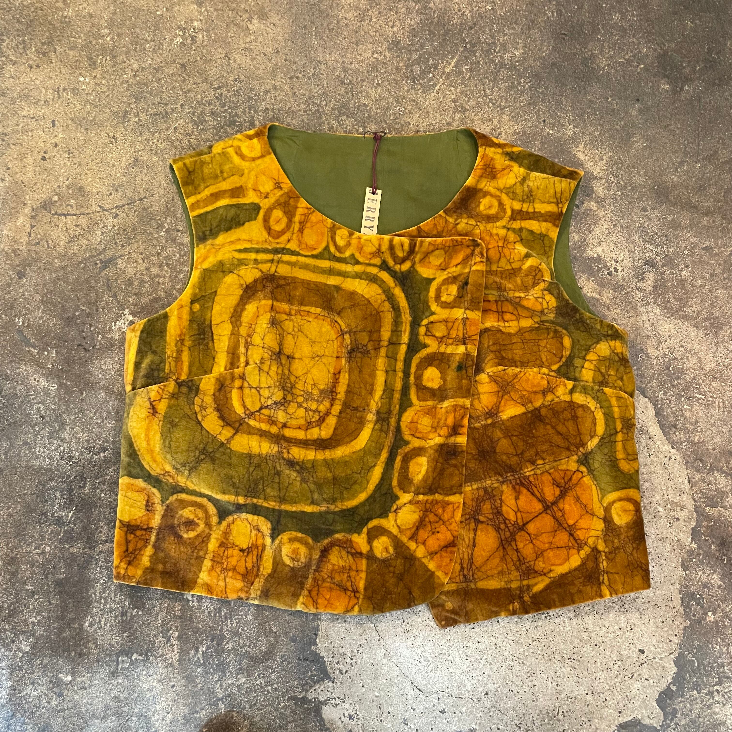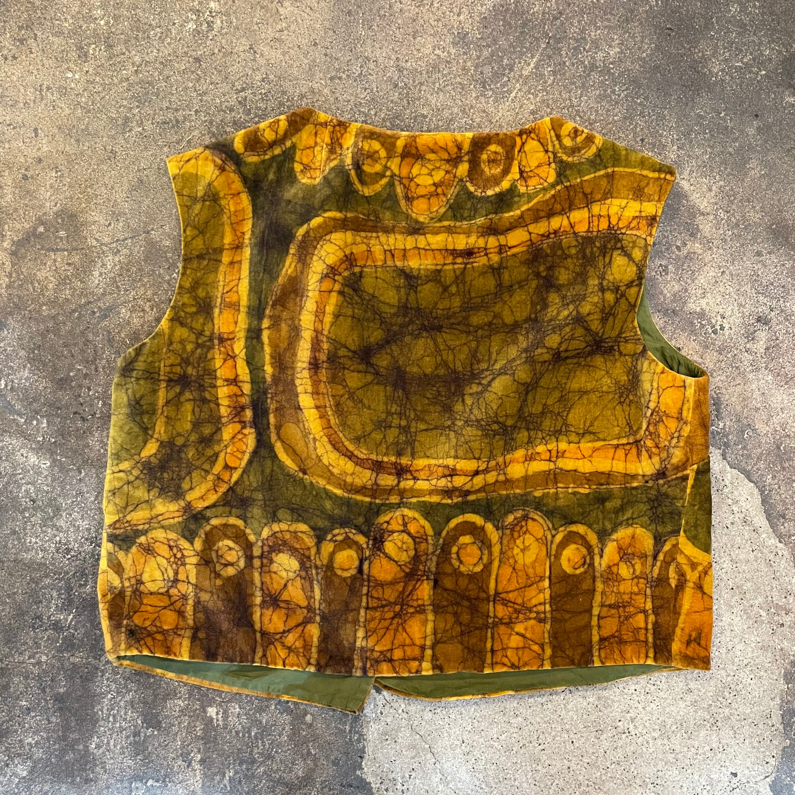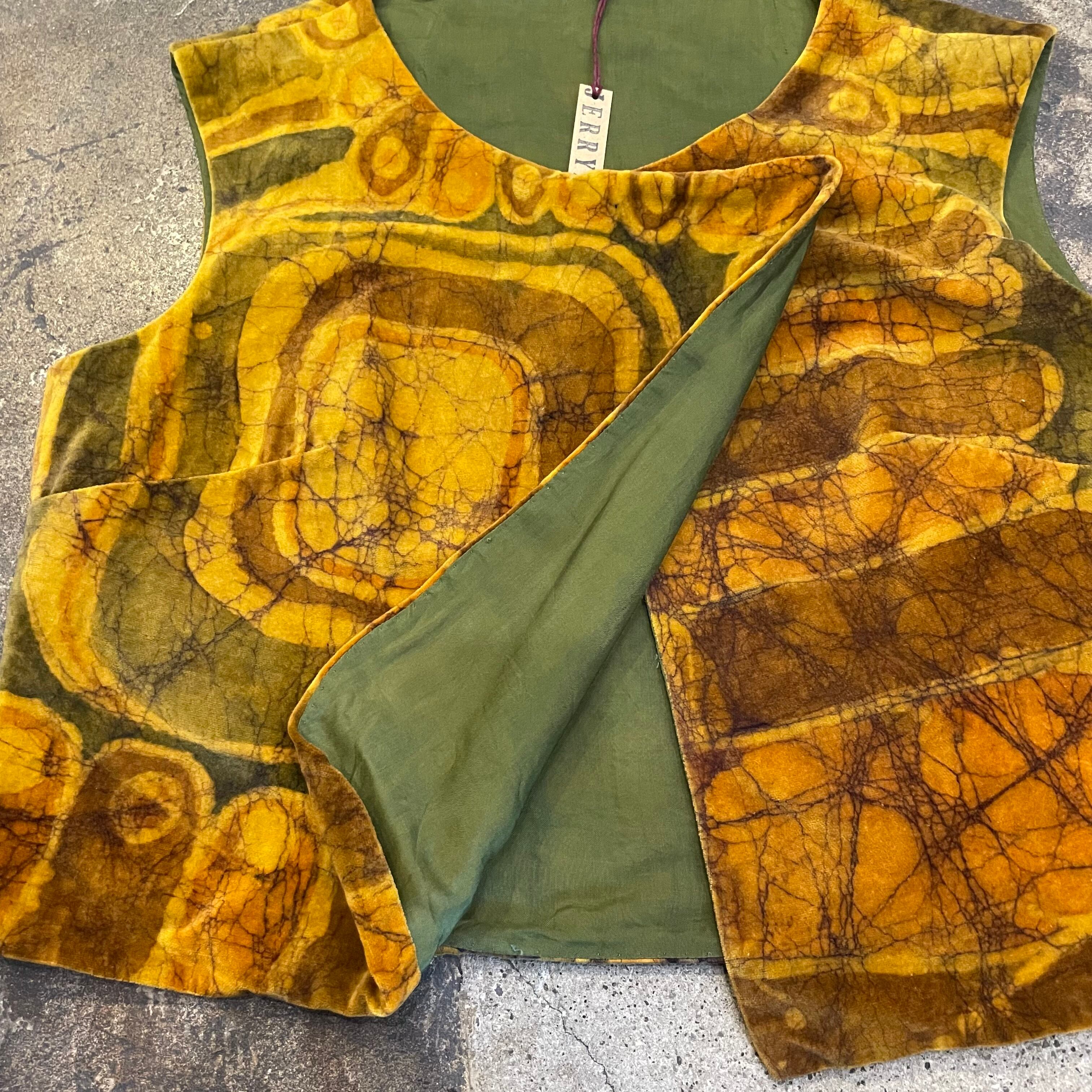 アフリカンバティックのような雰囲気の染めが素敵なベロア素材のセットアップです。