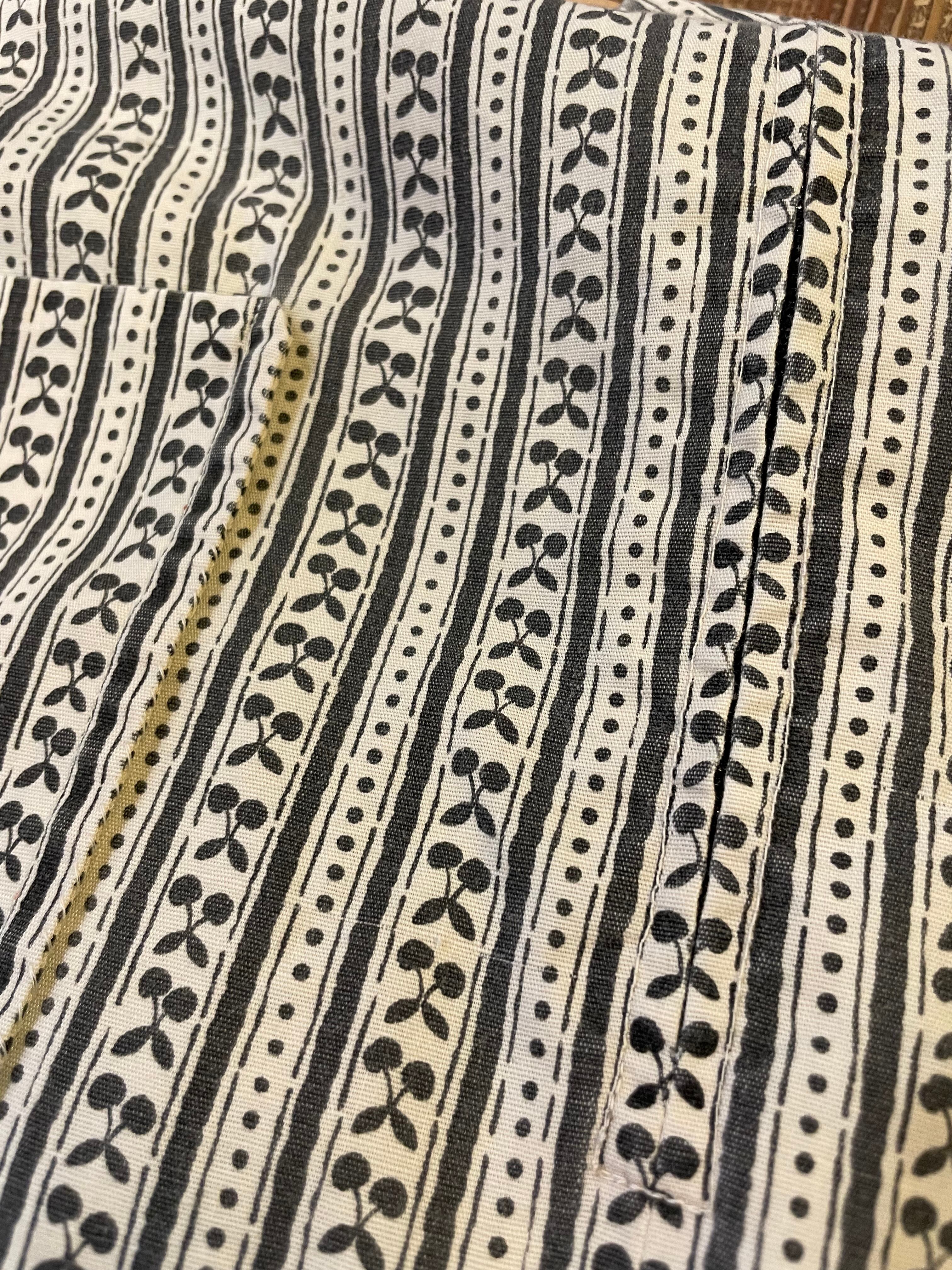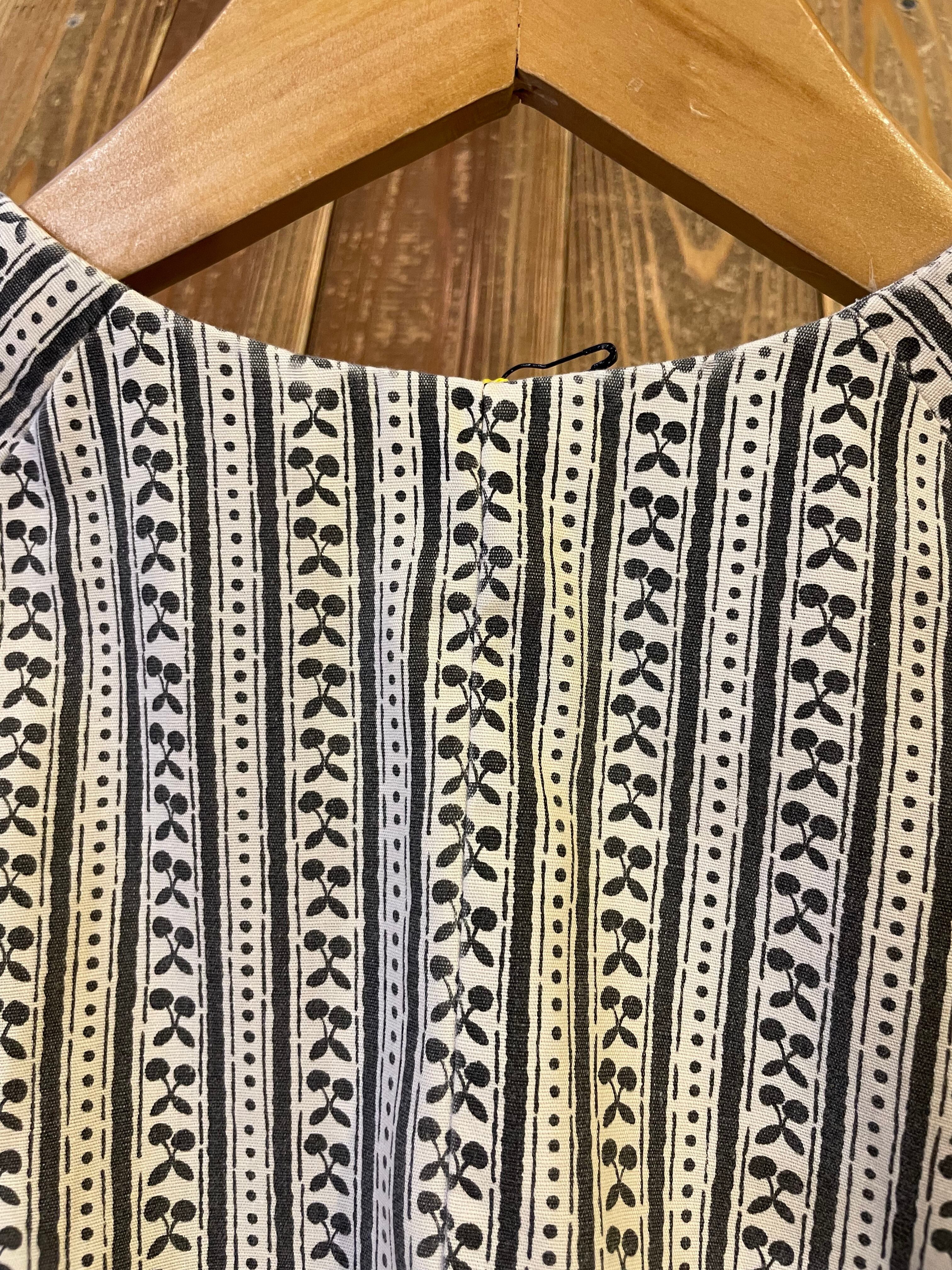 この年代には珍しく黒白のモノトーンカラーでぱっと見落ち着いて見えるけど、実はチェリーがひっくり返っているお茶目な柄なところがかわいいですね。