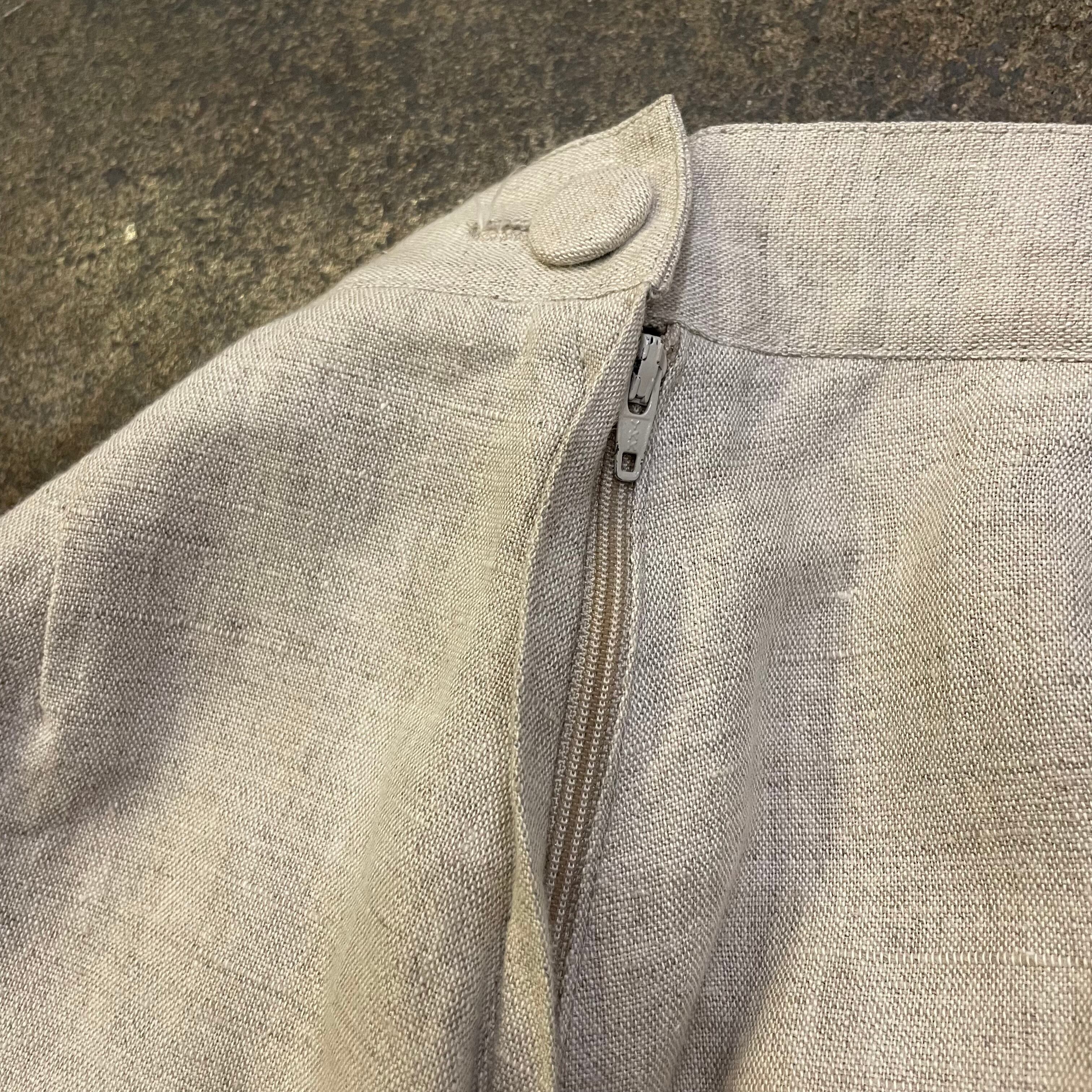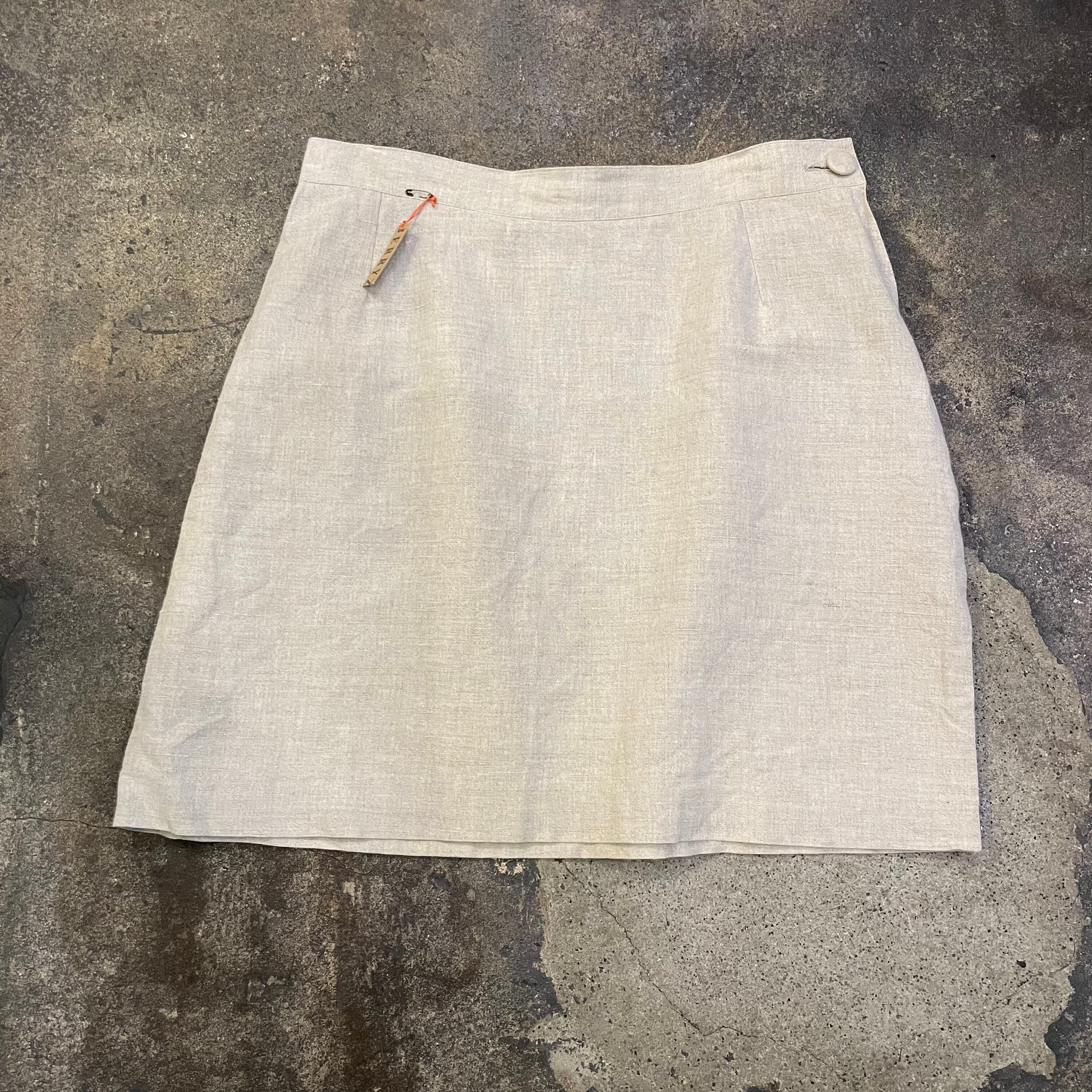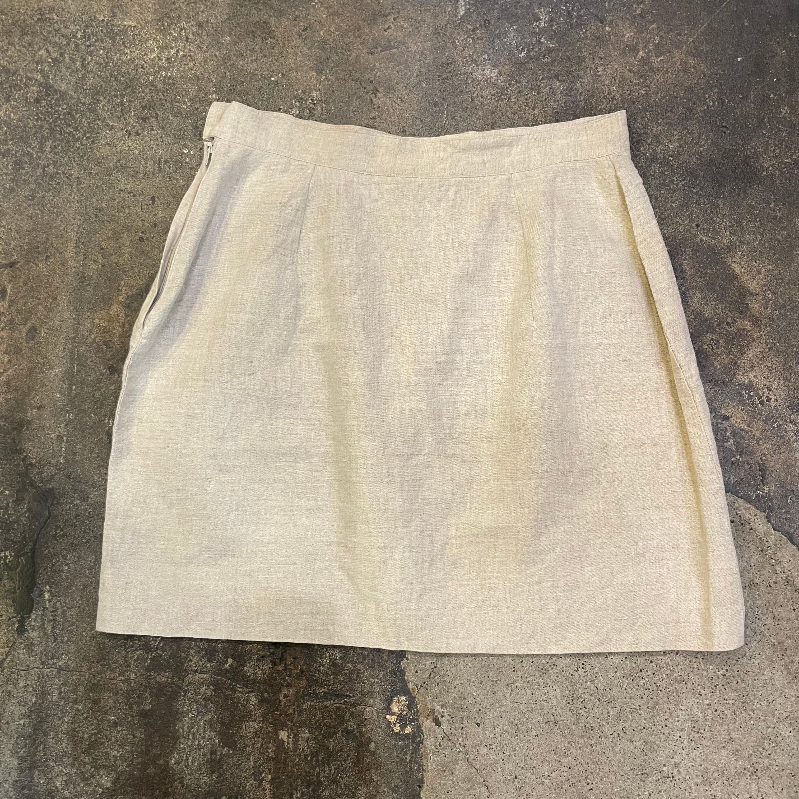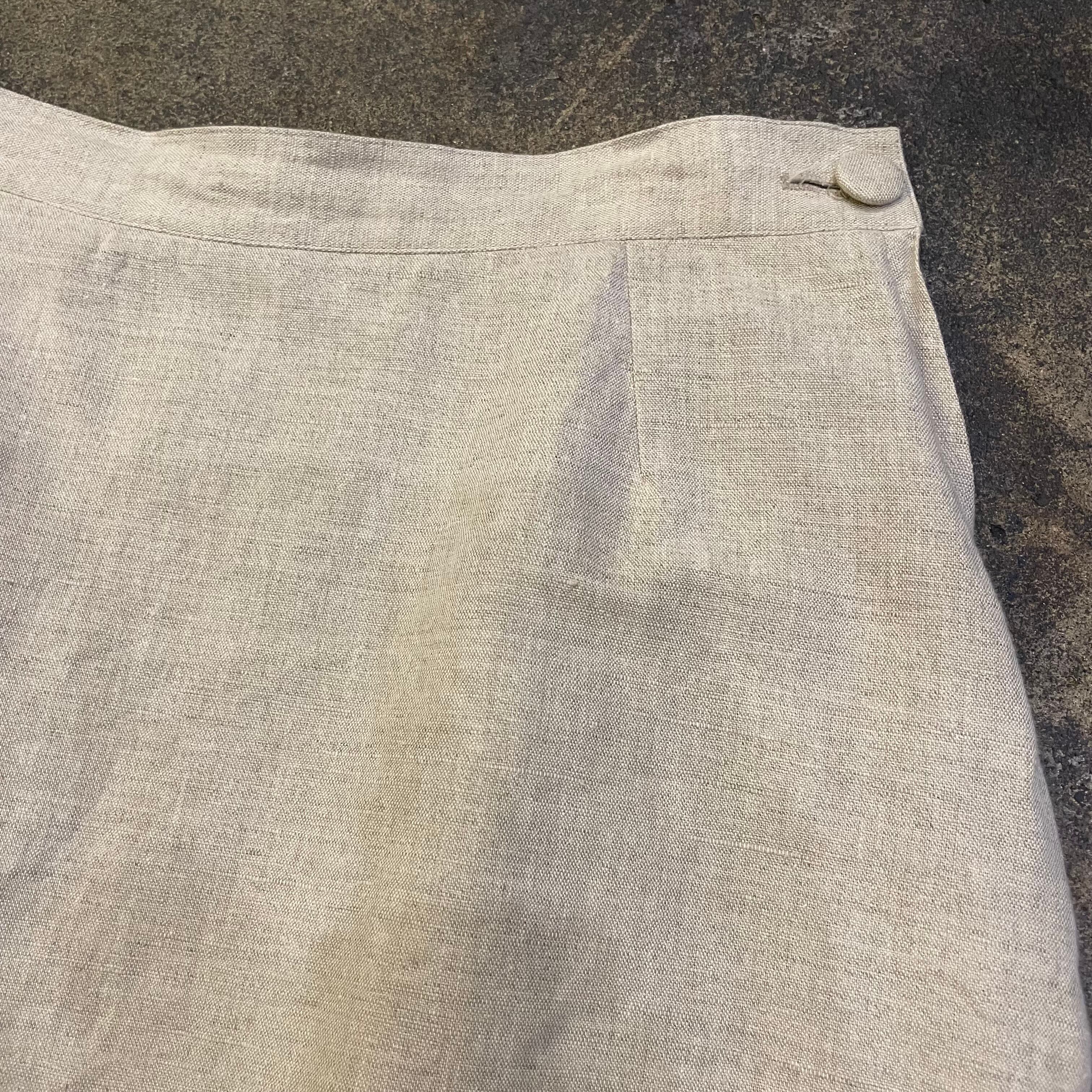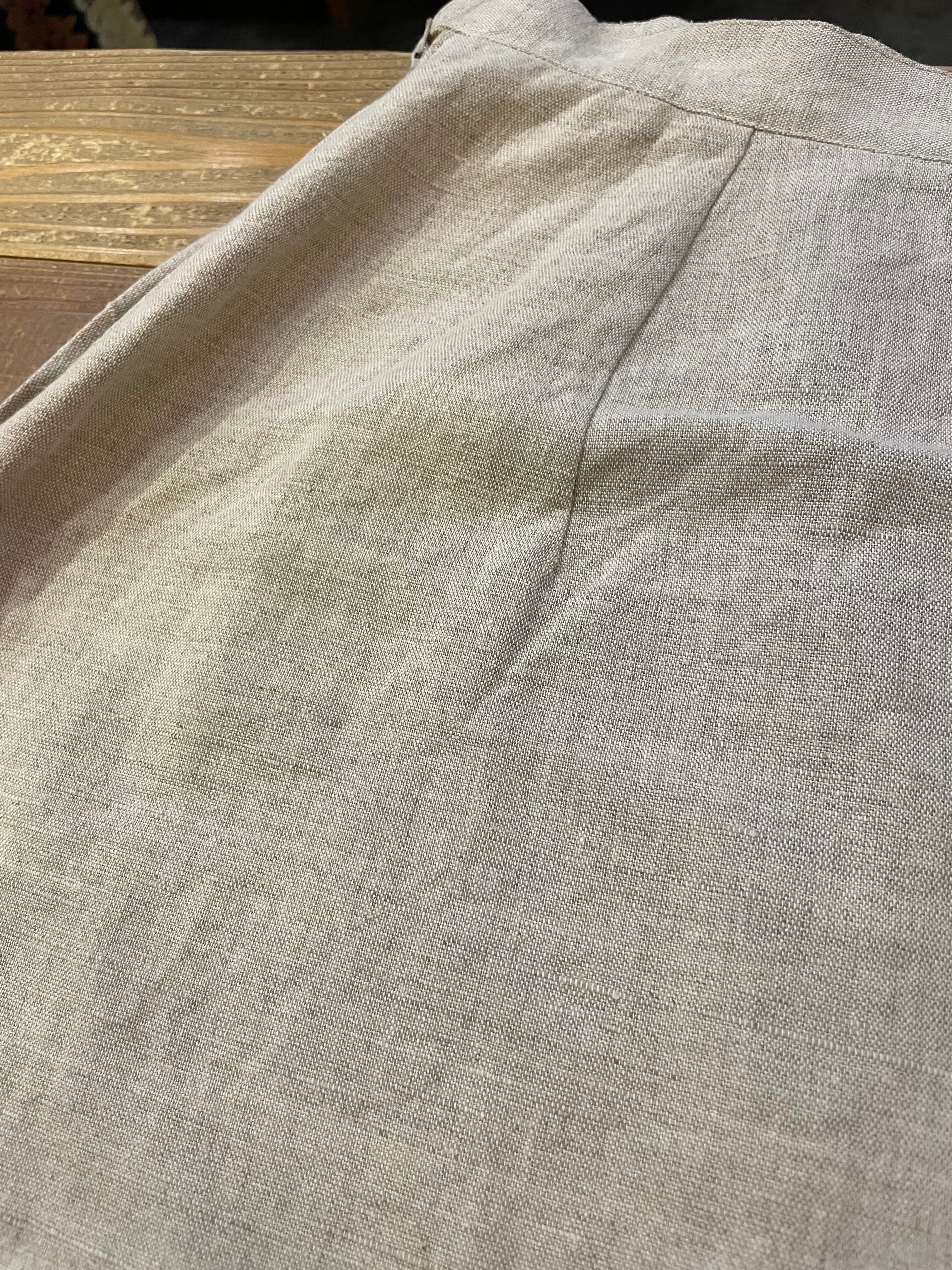 コットン×リネンのナチュラルな生地感と、生成り?ベージュ?の柔らかい色味で、短めの丈感とは裏腹に上品な雰囲気漂うスカートです。