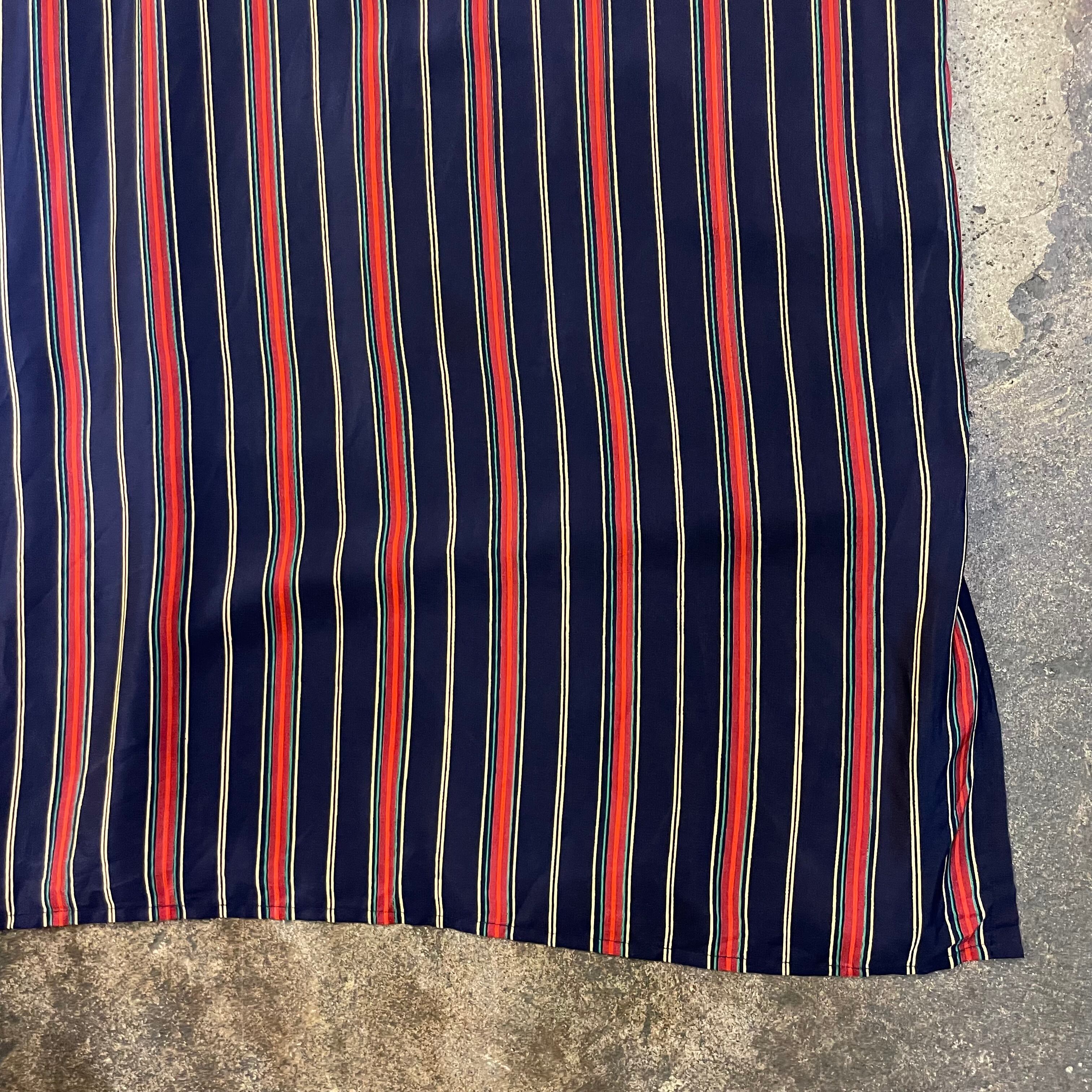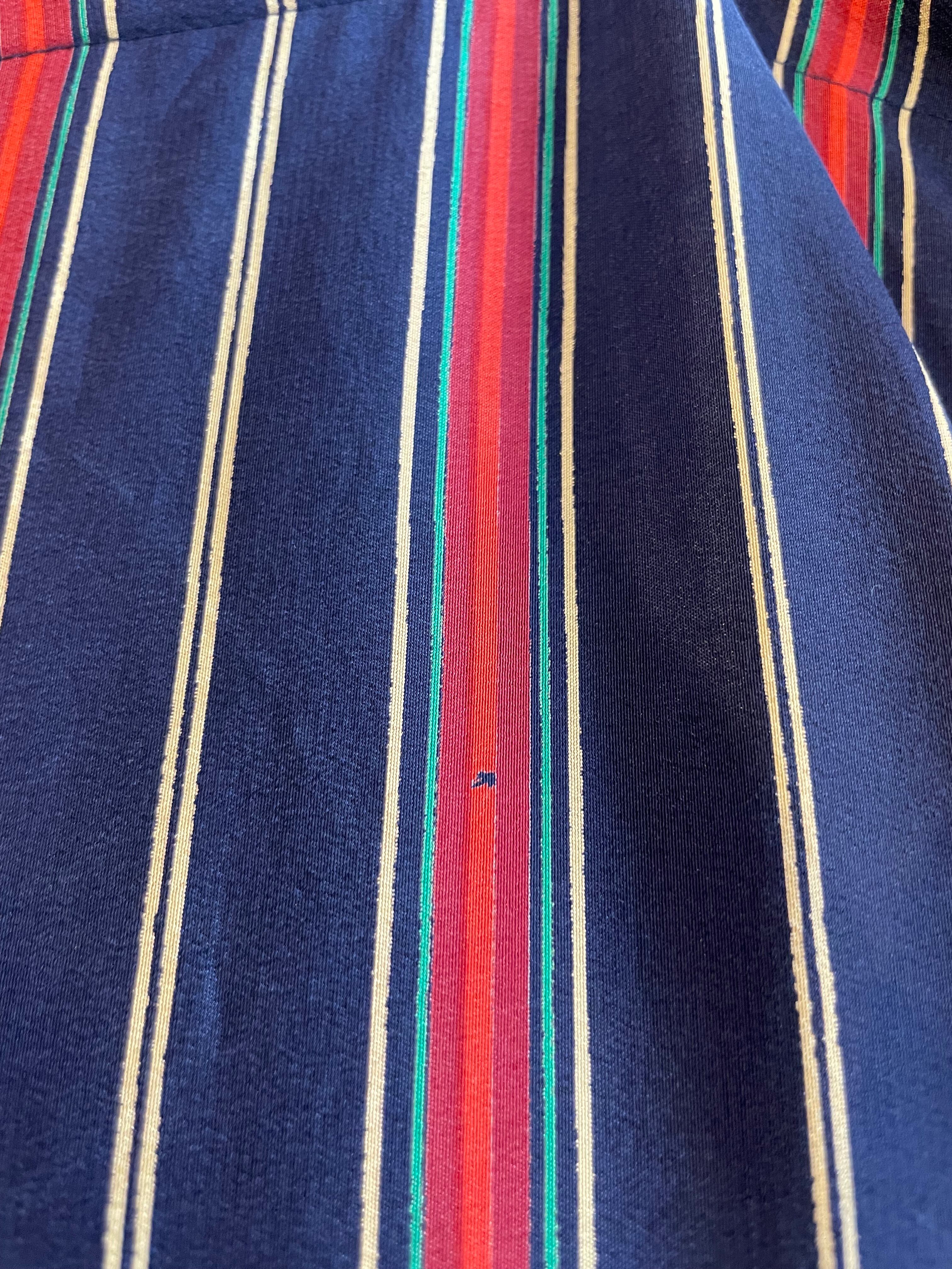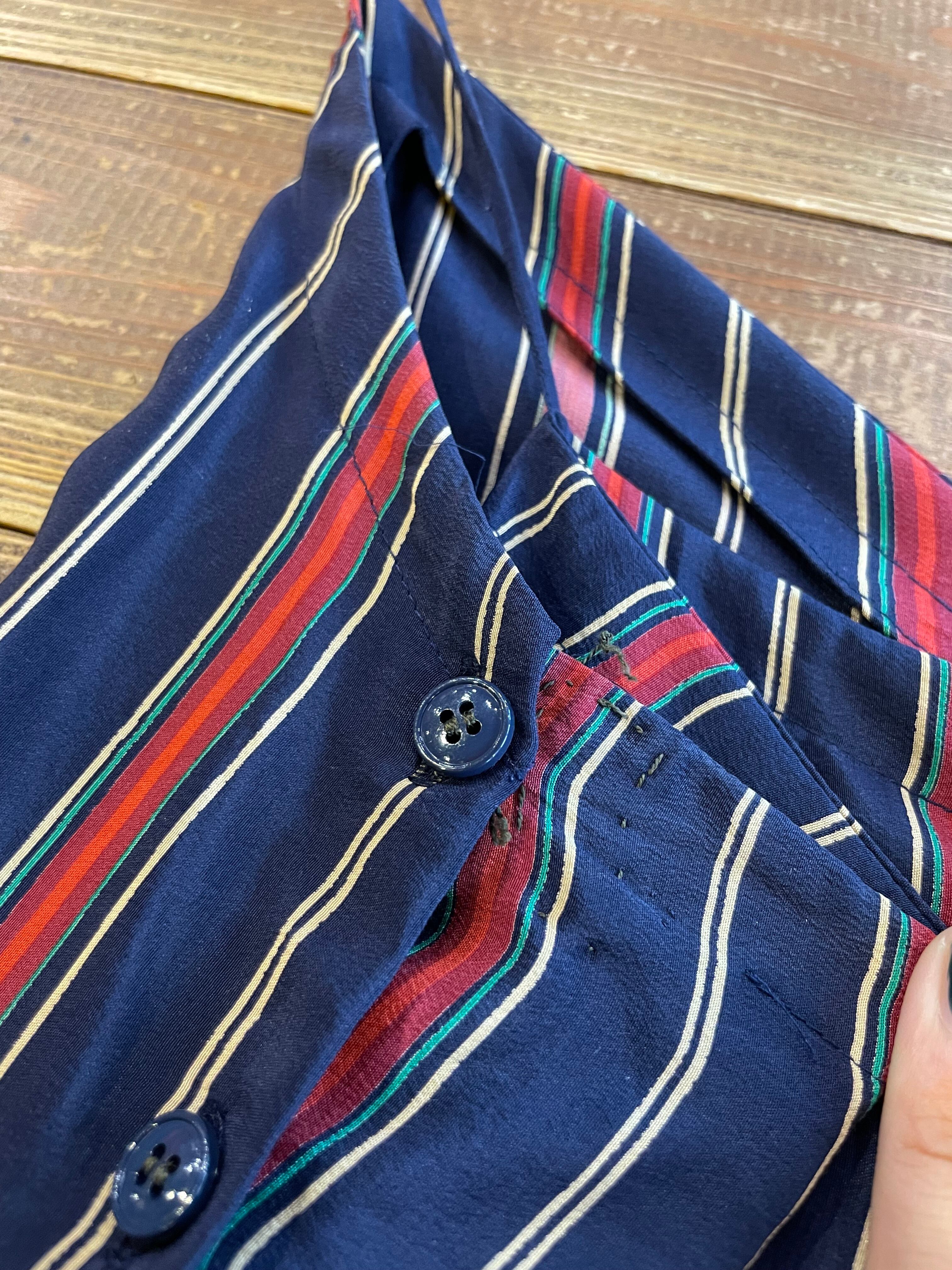 スーツやネクタイなどに使われそうな上品なストライプで素材はシルク100%と背筋の伸びるような一枚です。