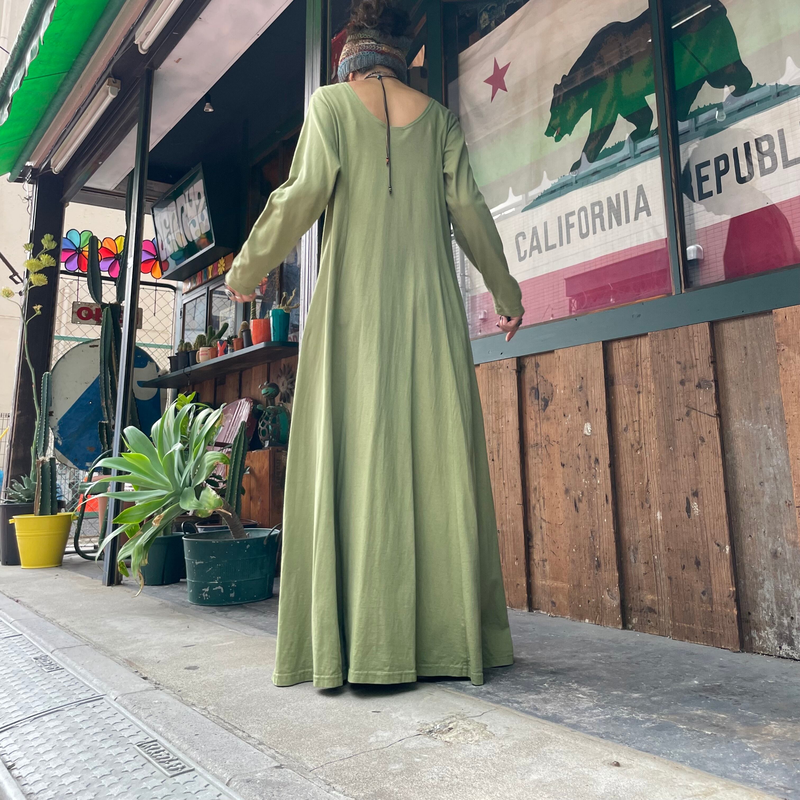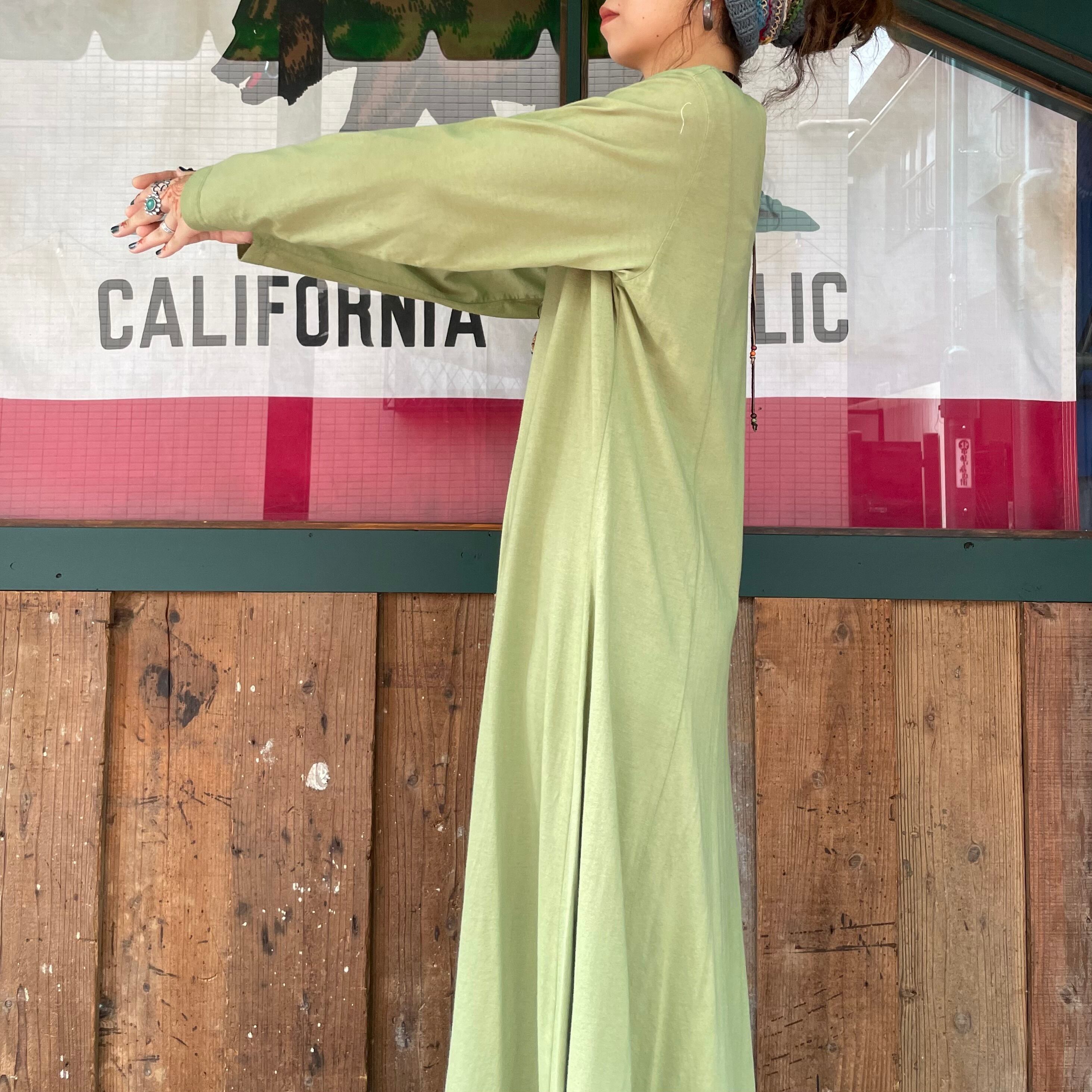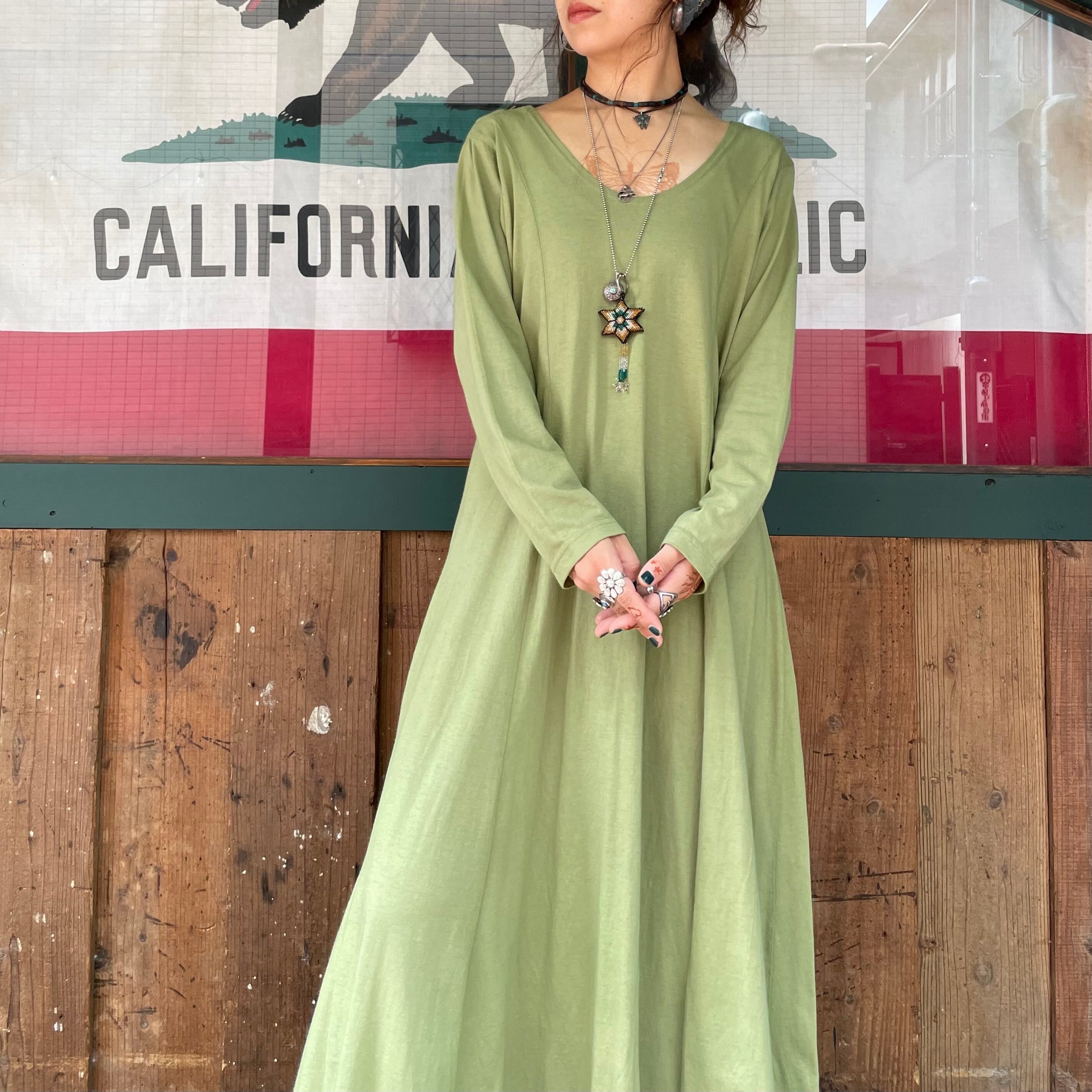 抹茶ラテのようなクリーミーなグリーンが素敵な長袖ワンピースです。
