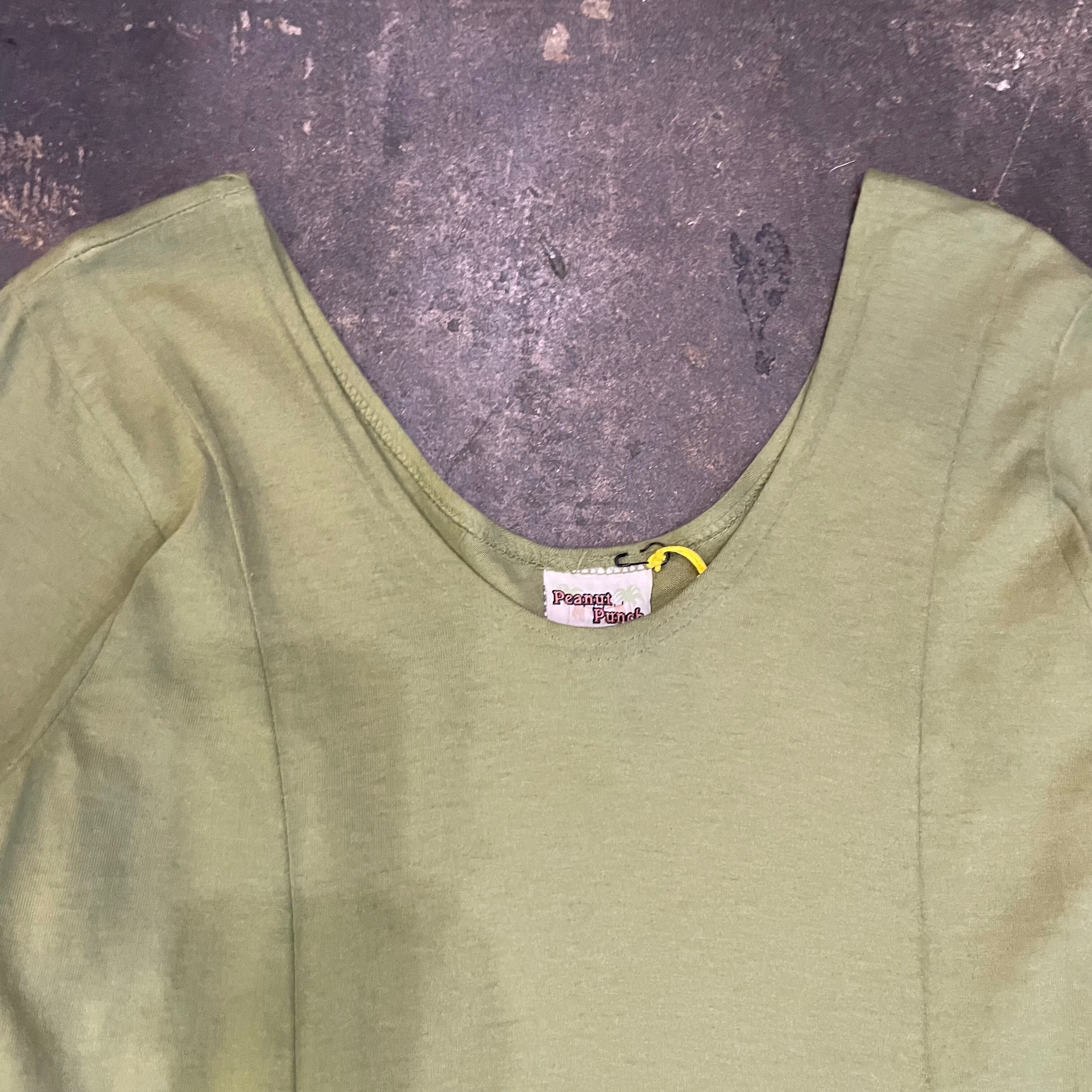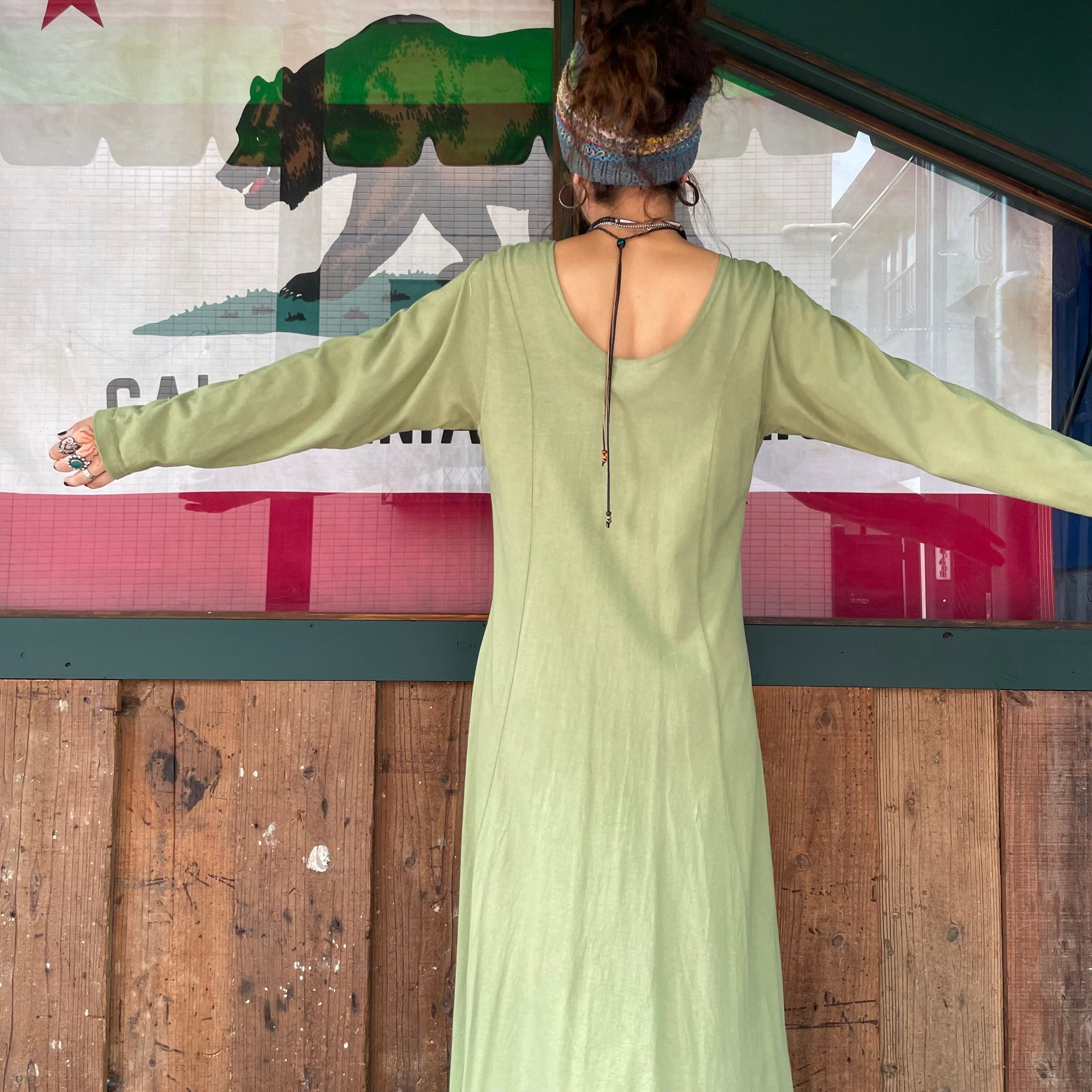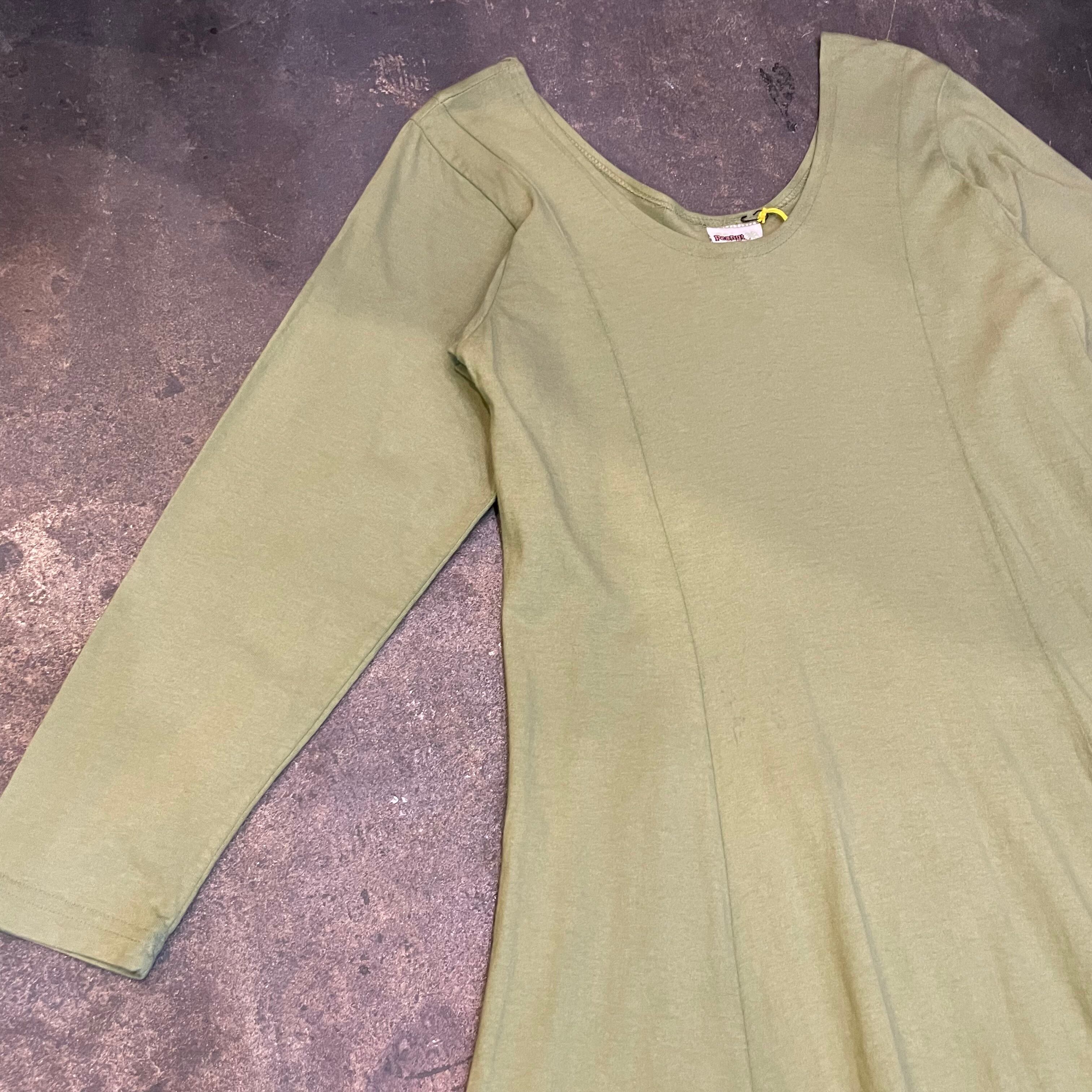 抹茶ラテのようなクリーミーなグリーンが素敵な長袖ワンピースです。