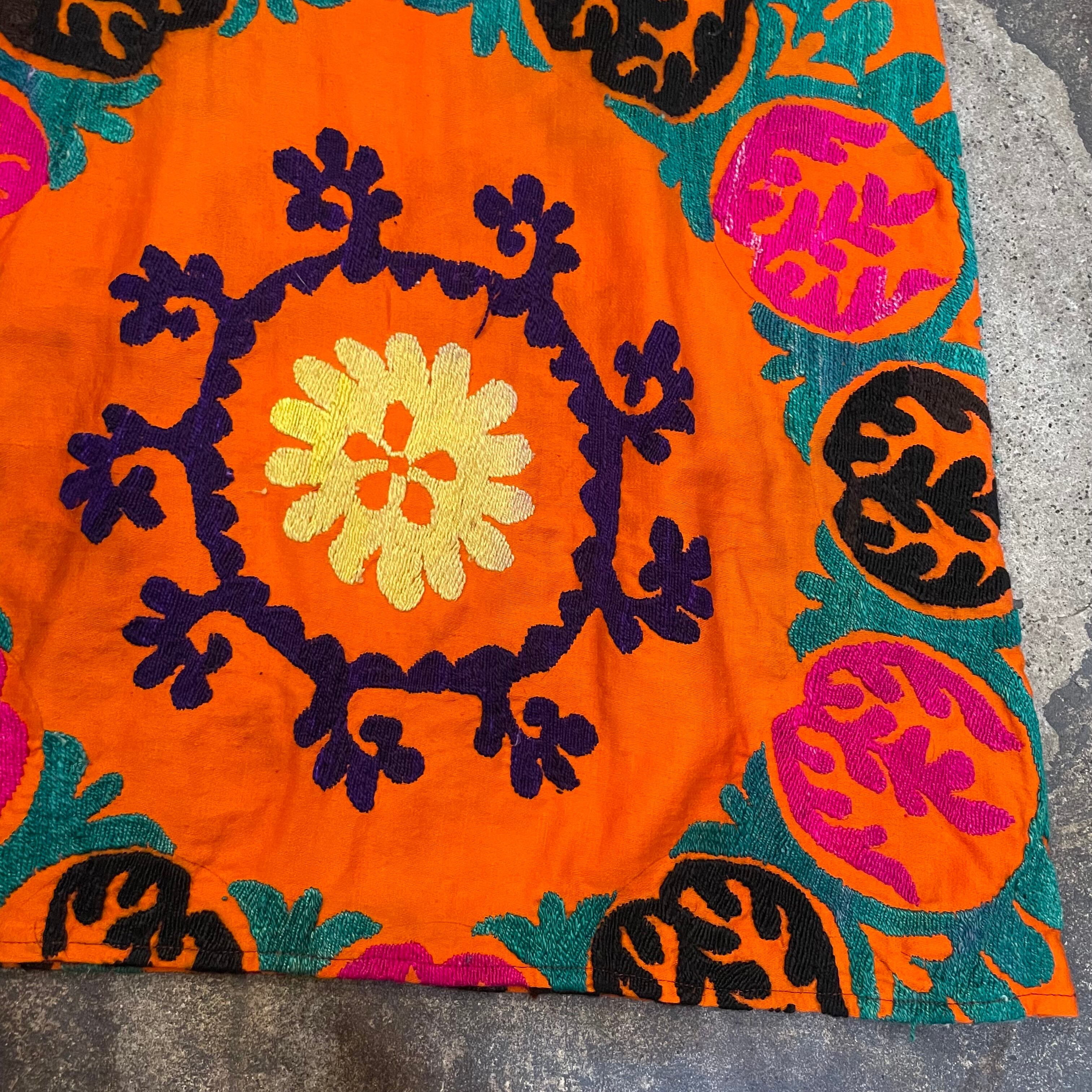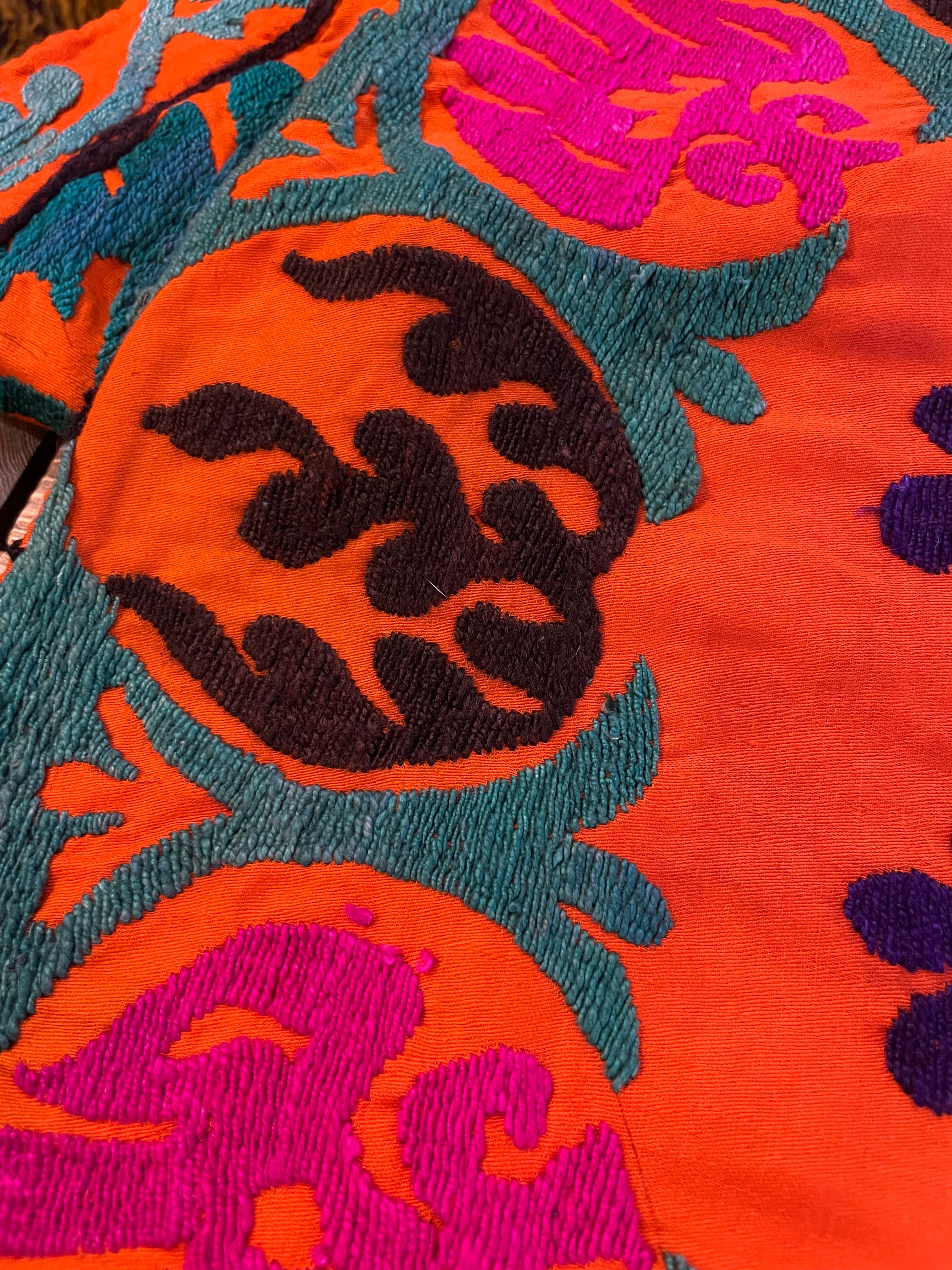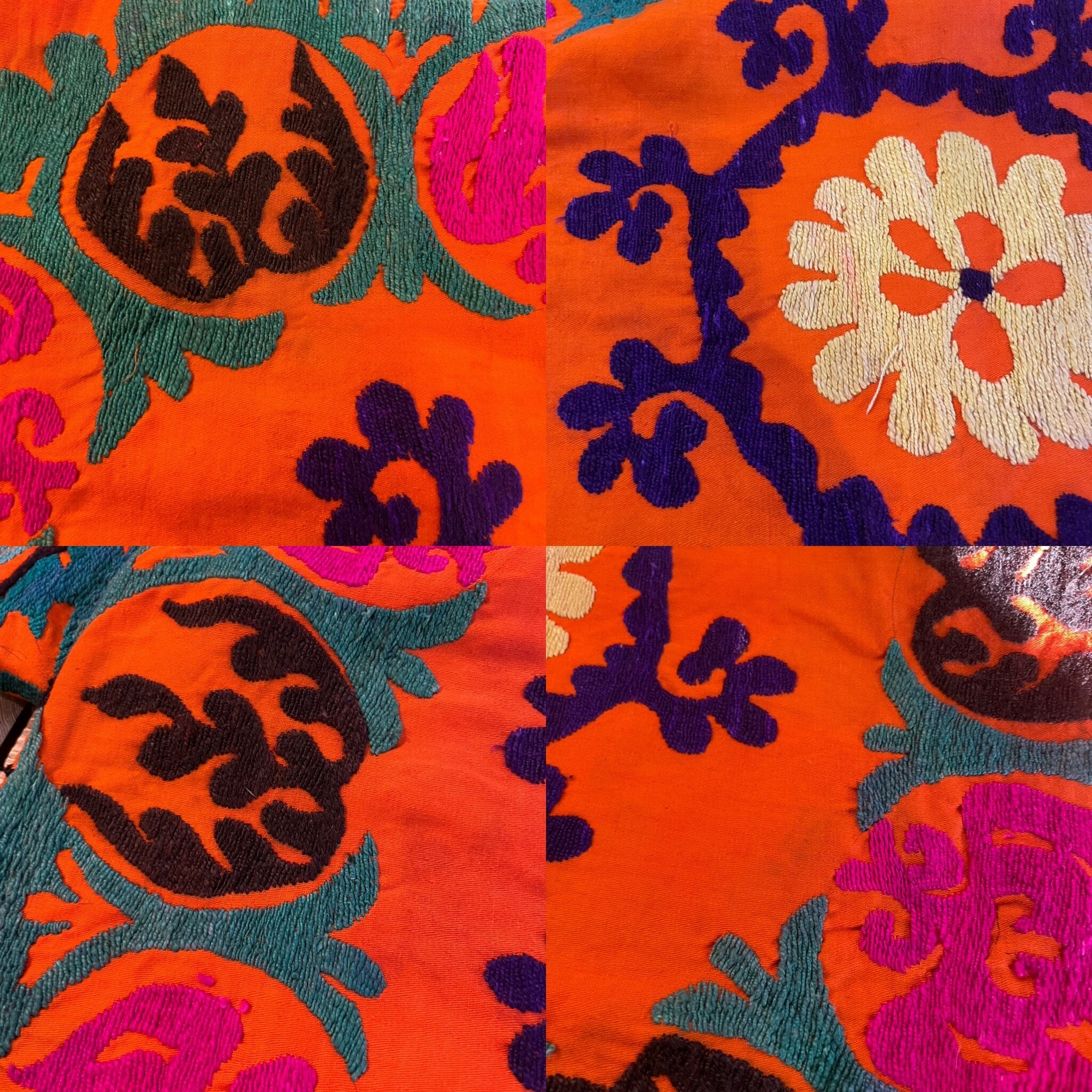 タグなどは無いため詳細は不明ですが、おそらくウズベキスタンの伝統的な刺繍スザニかと思われます。