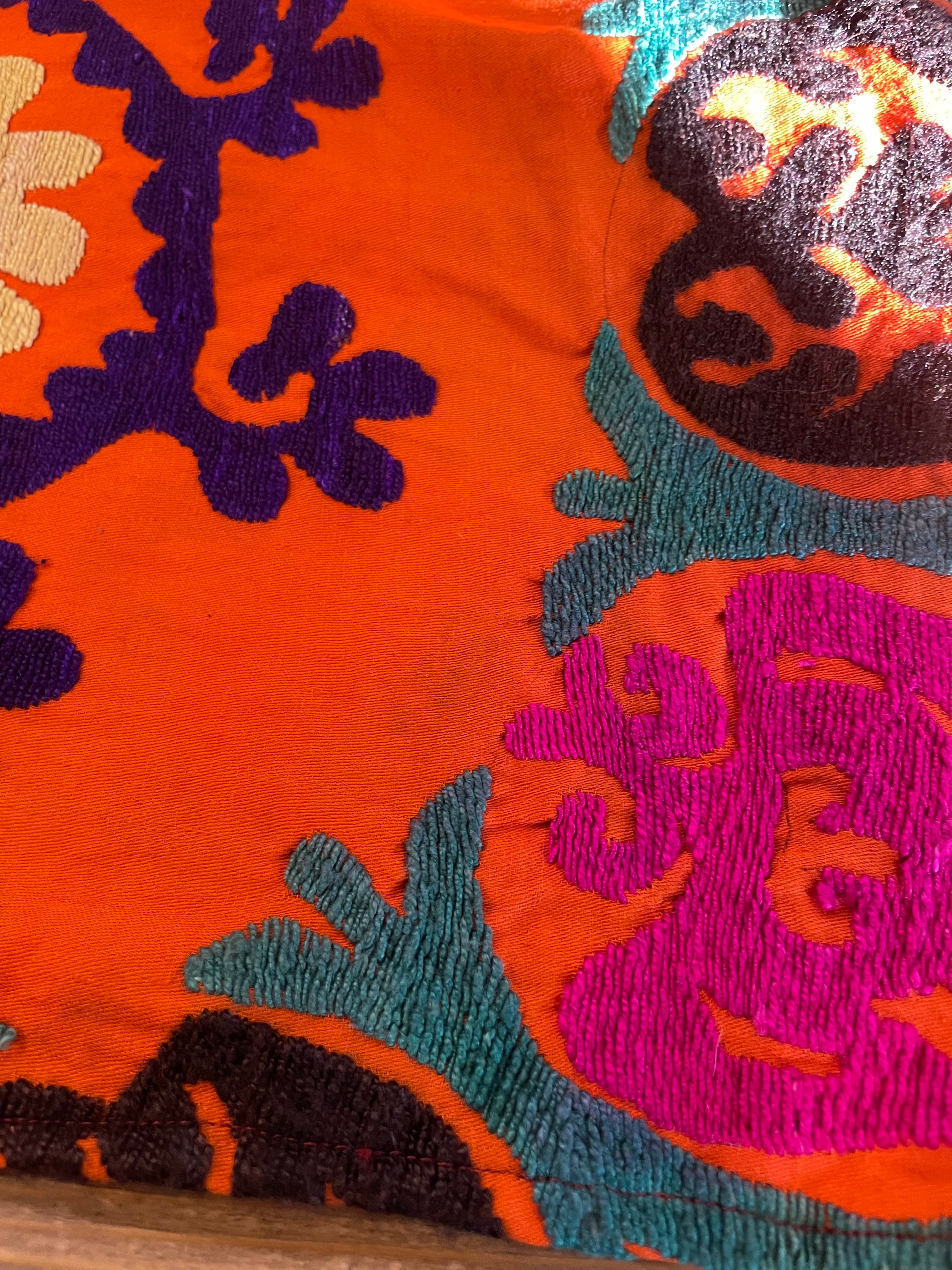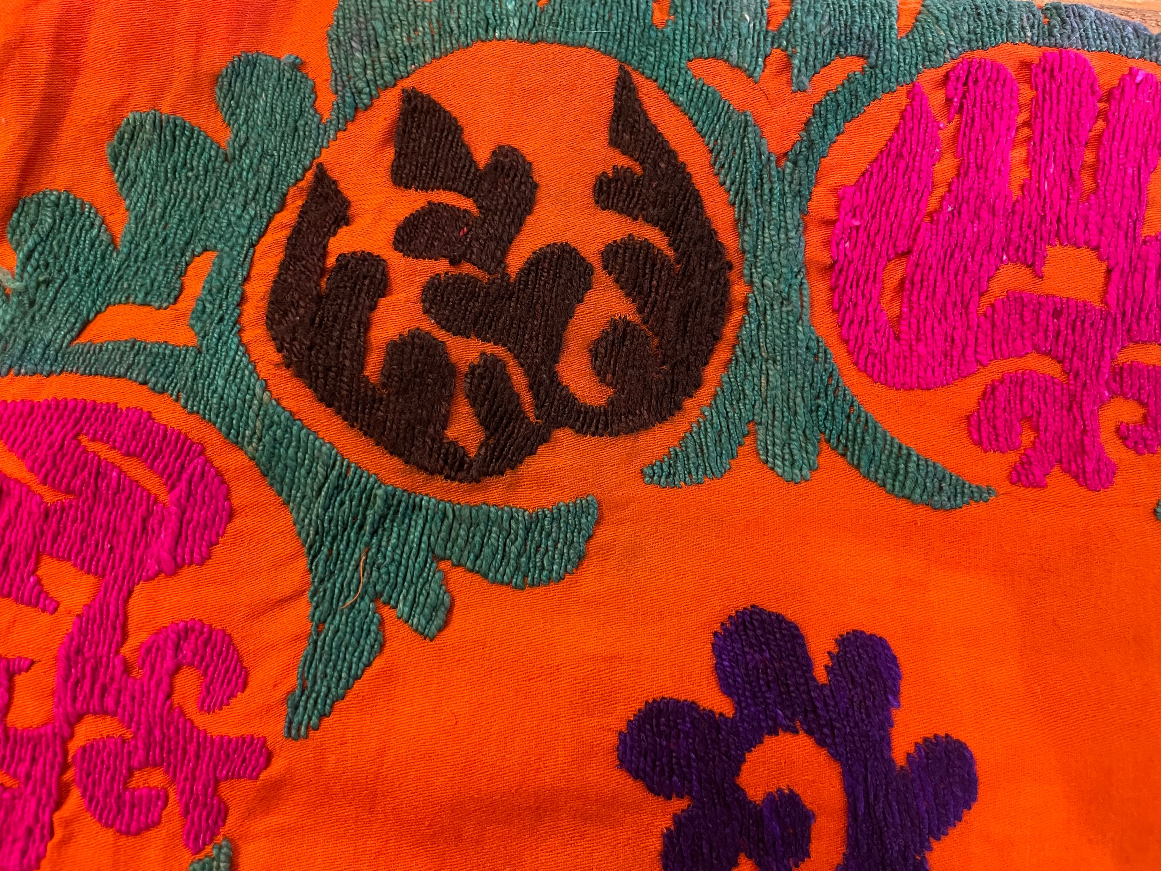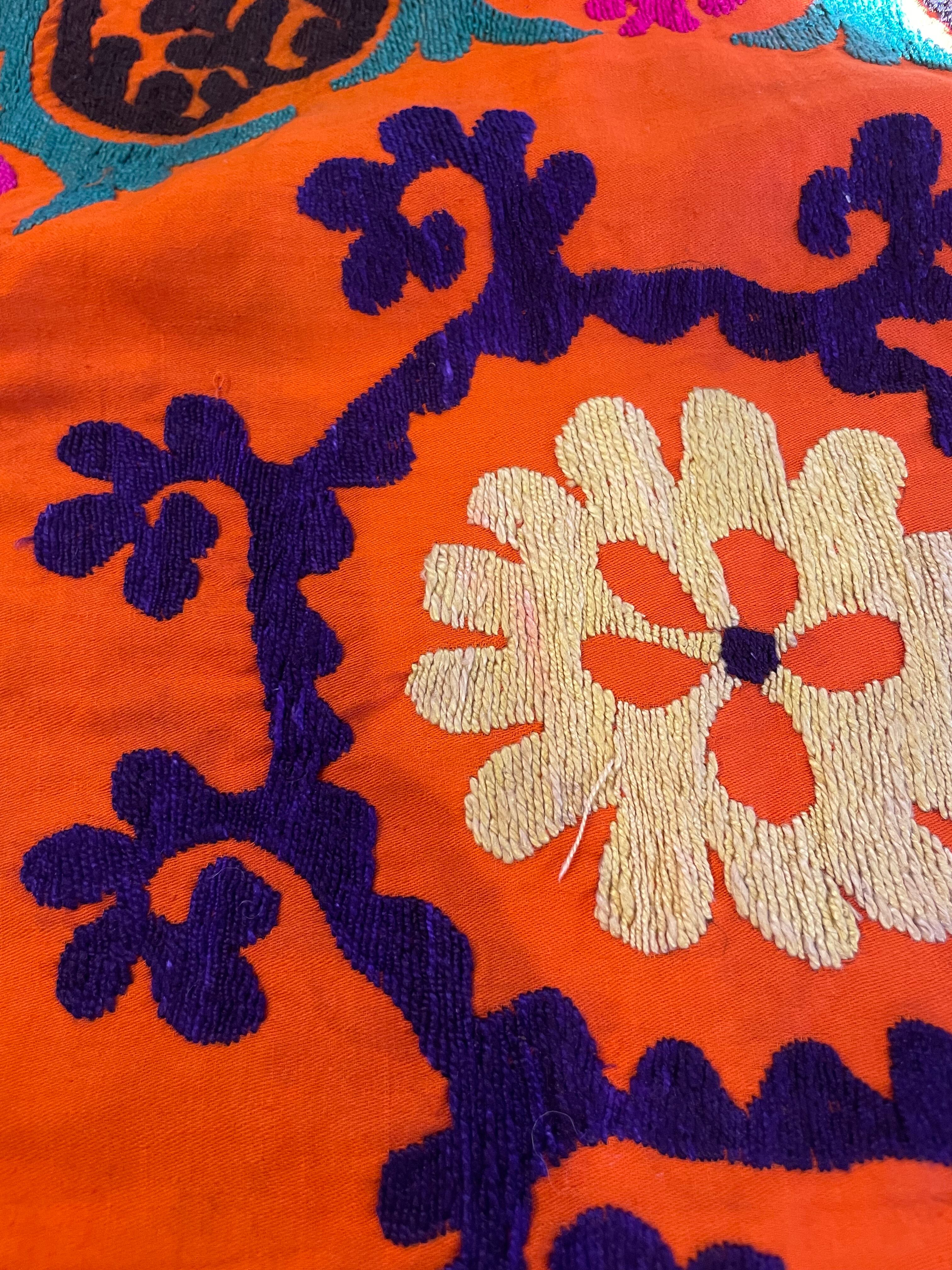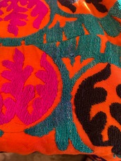 タグなどは無いため詳細は不明ですが、おそらくウズベキスタンの伝統的な刺繍スザニかと思われます。