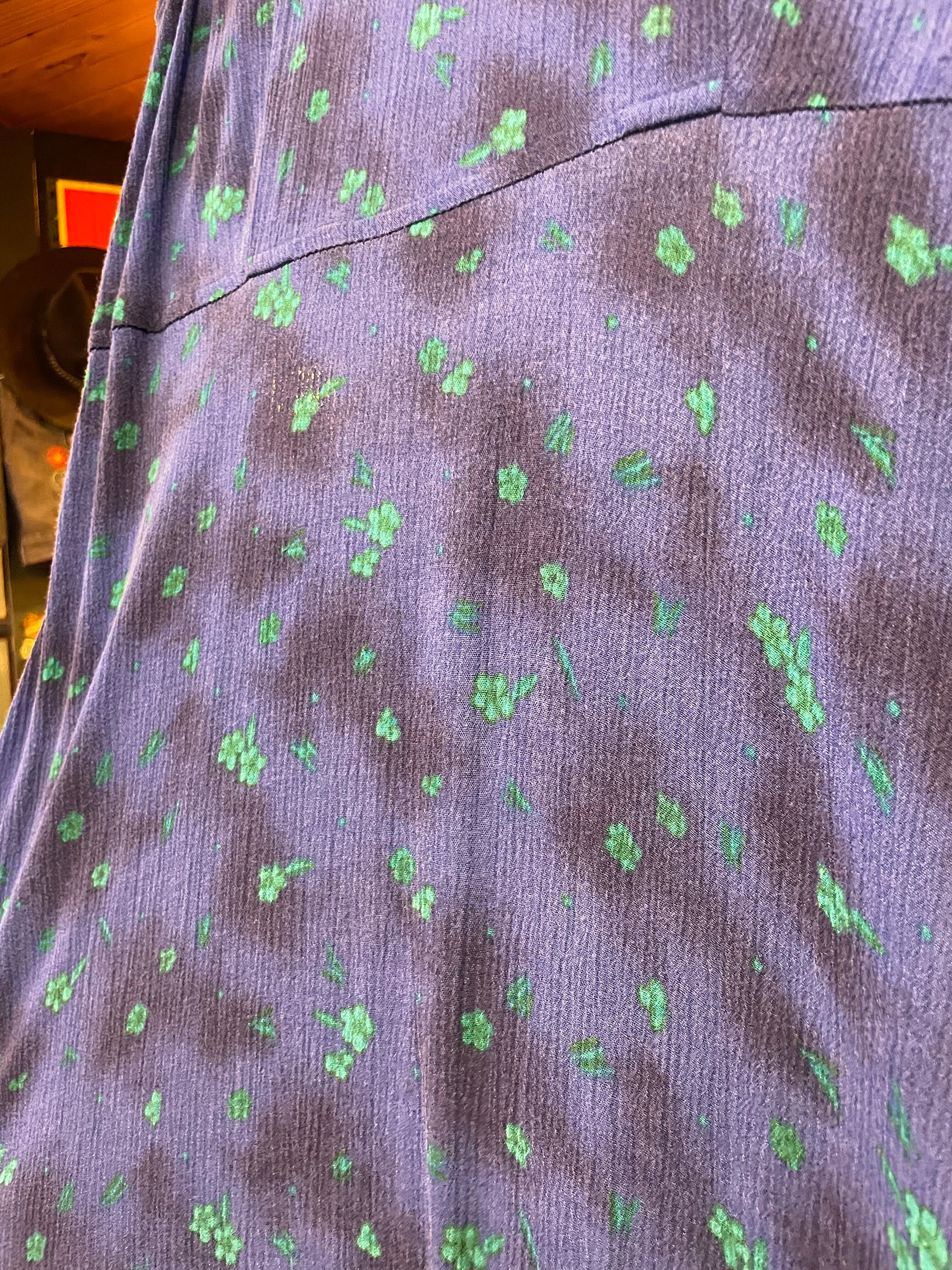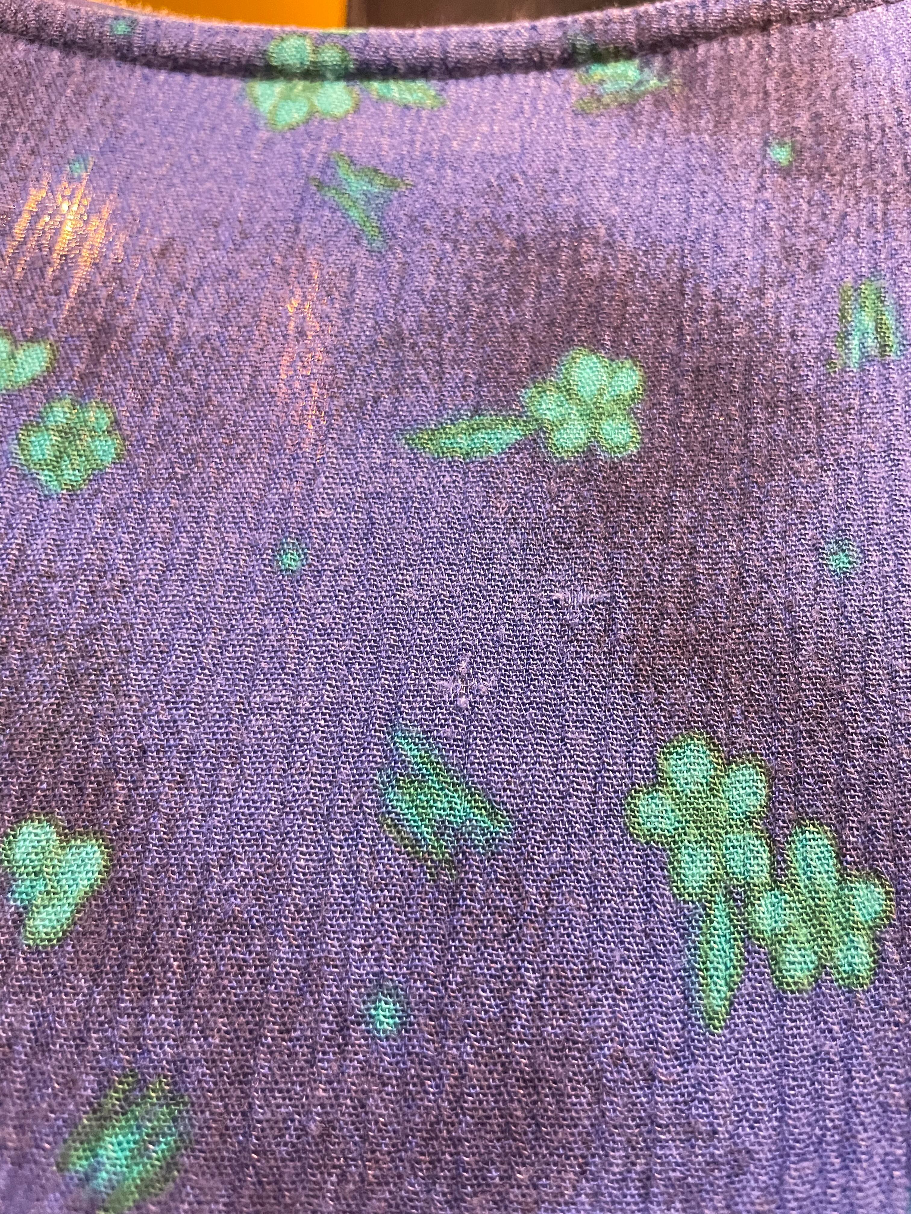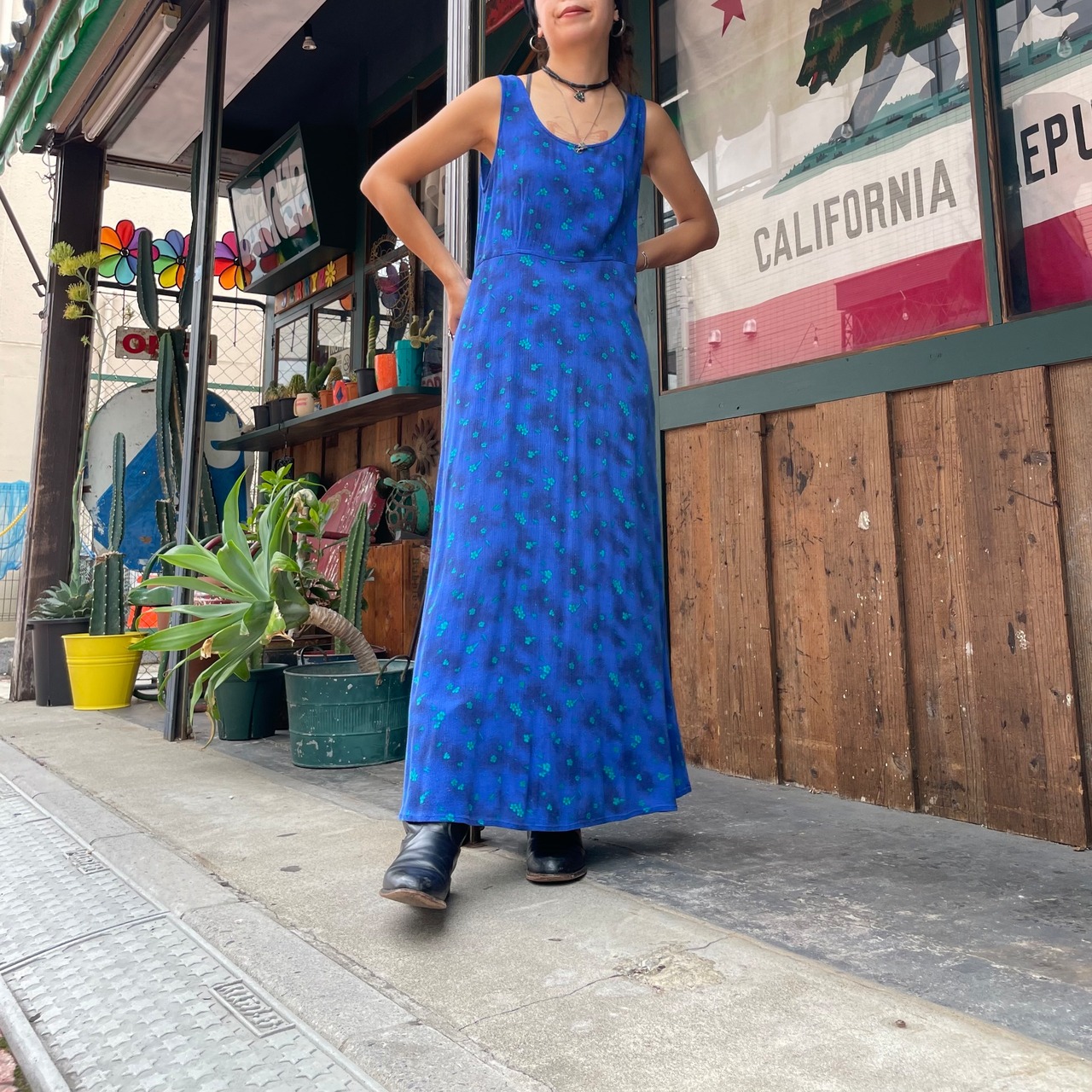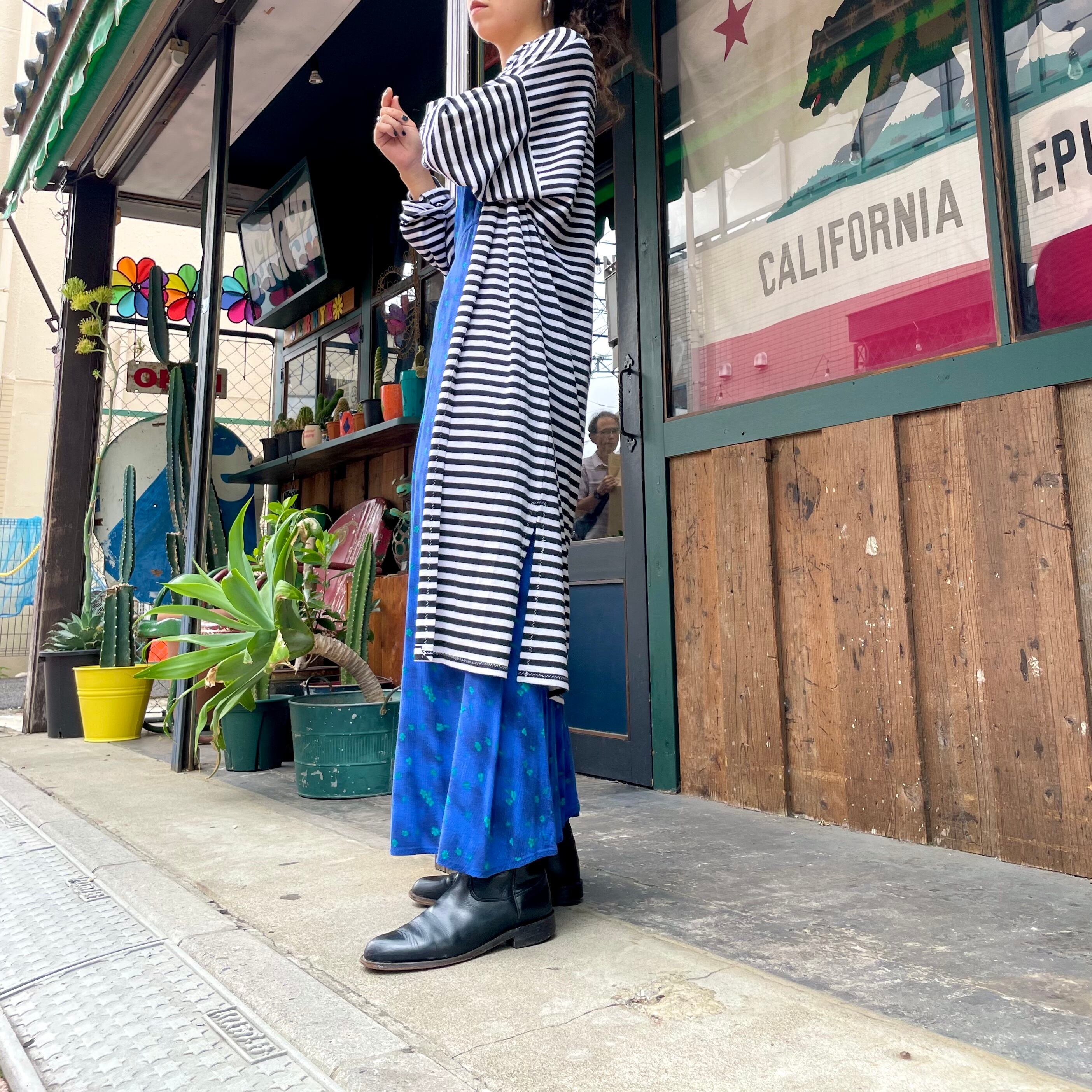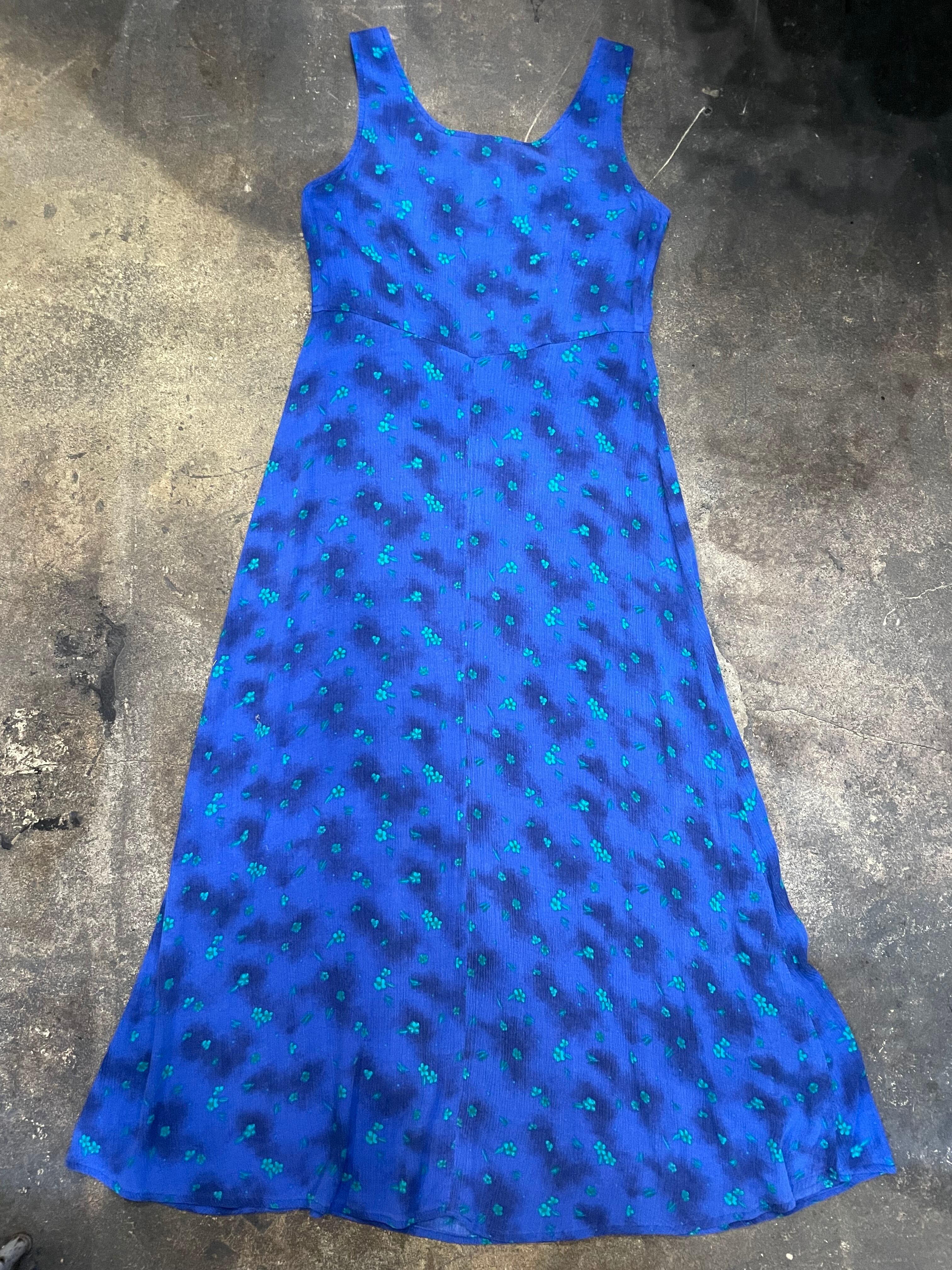 青ベースに緑の花がかわいいノースリーブのレーヨンワンピースです。
