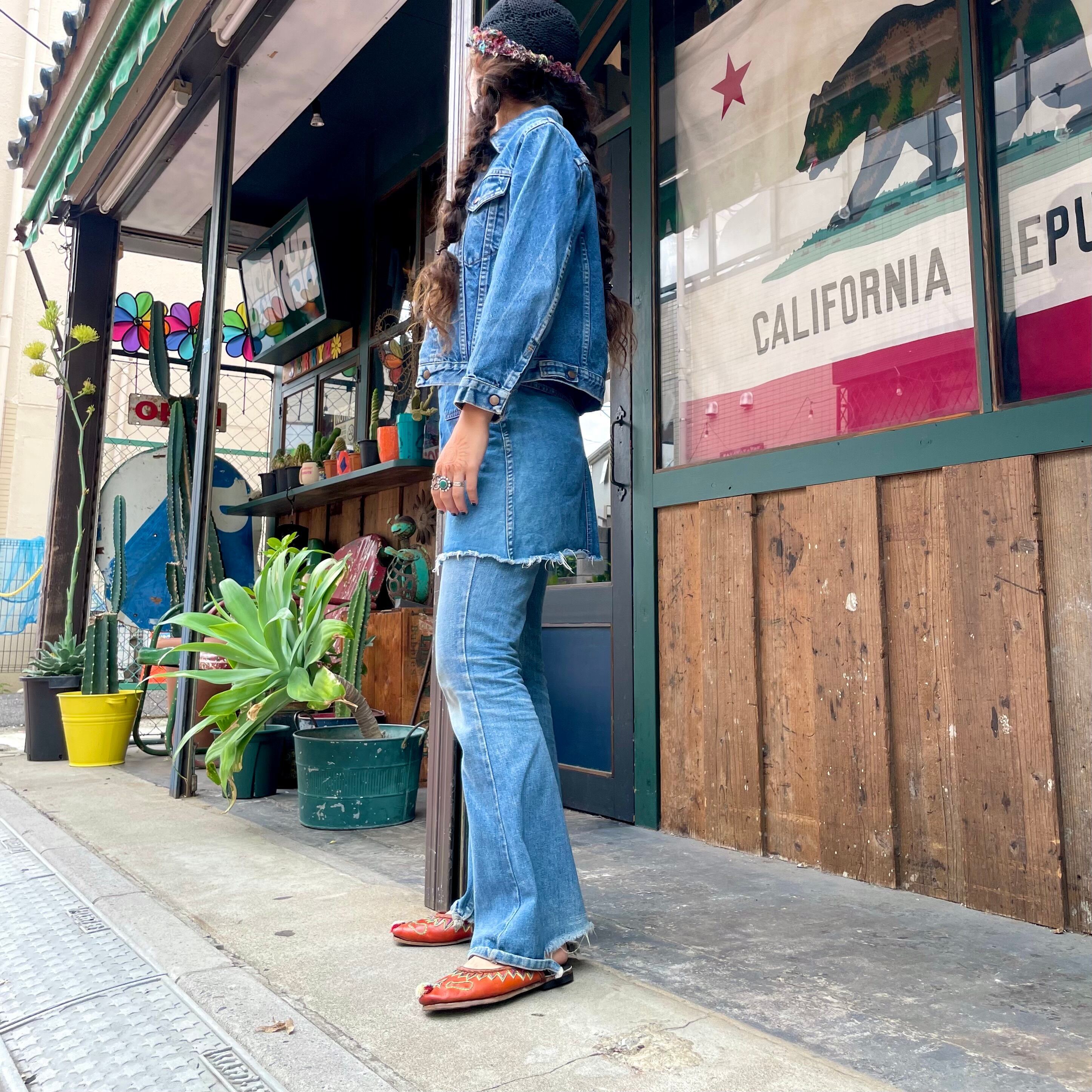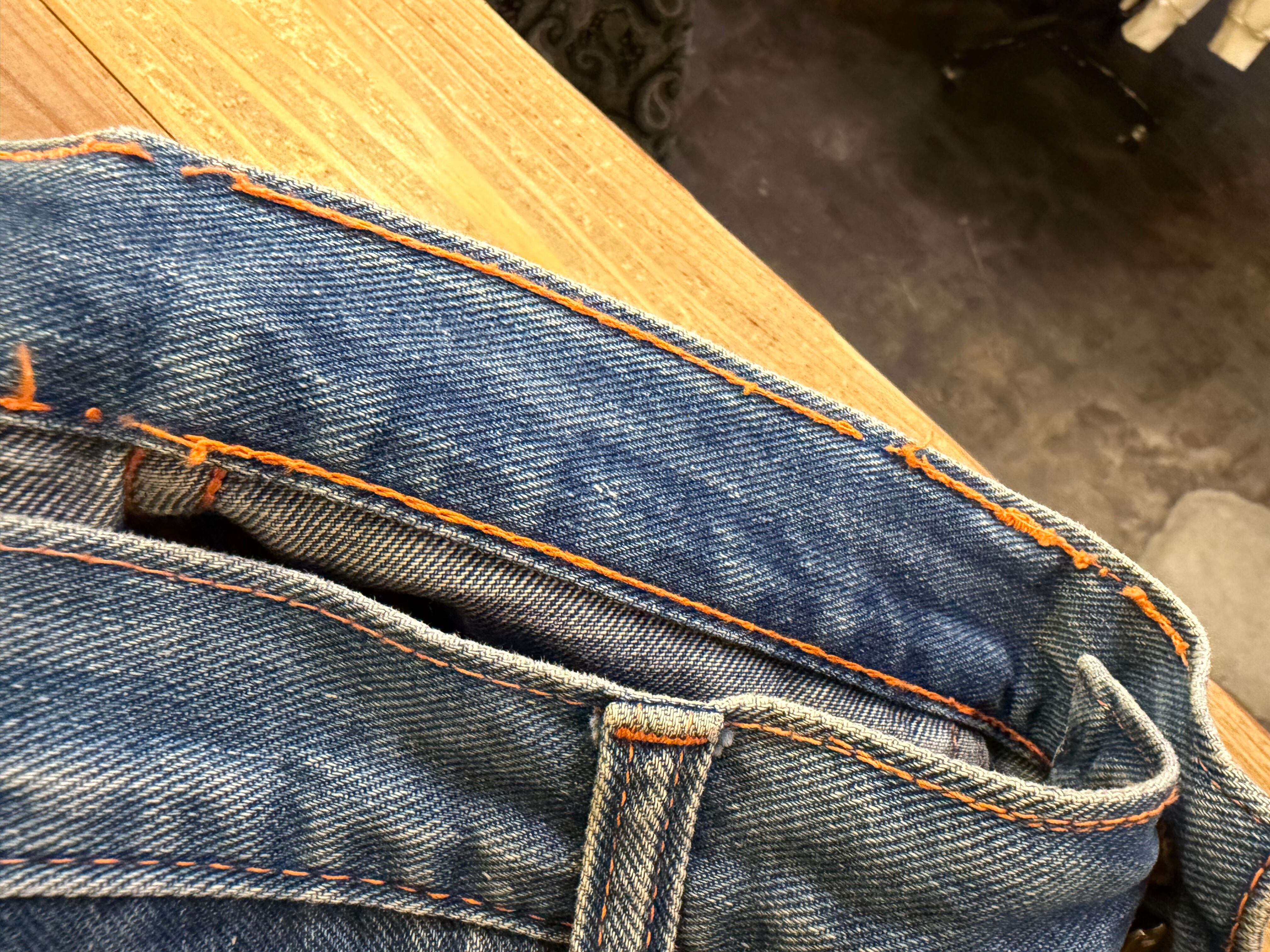 裾はカットオフされ切りっぱなしです。傷や擦れ、色褪せ、ステッチのほつれ等使用感のある商品です。古着にご理解のある方のご購入をお願い致します。