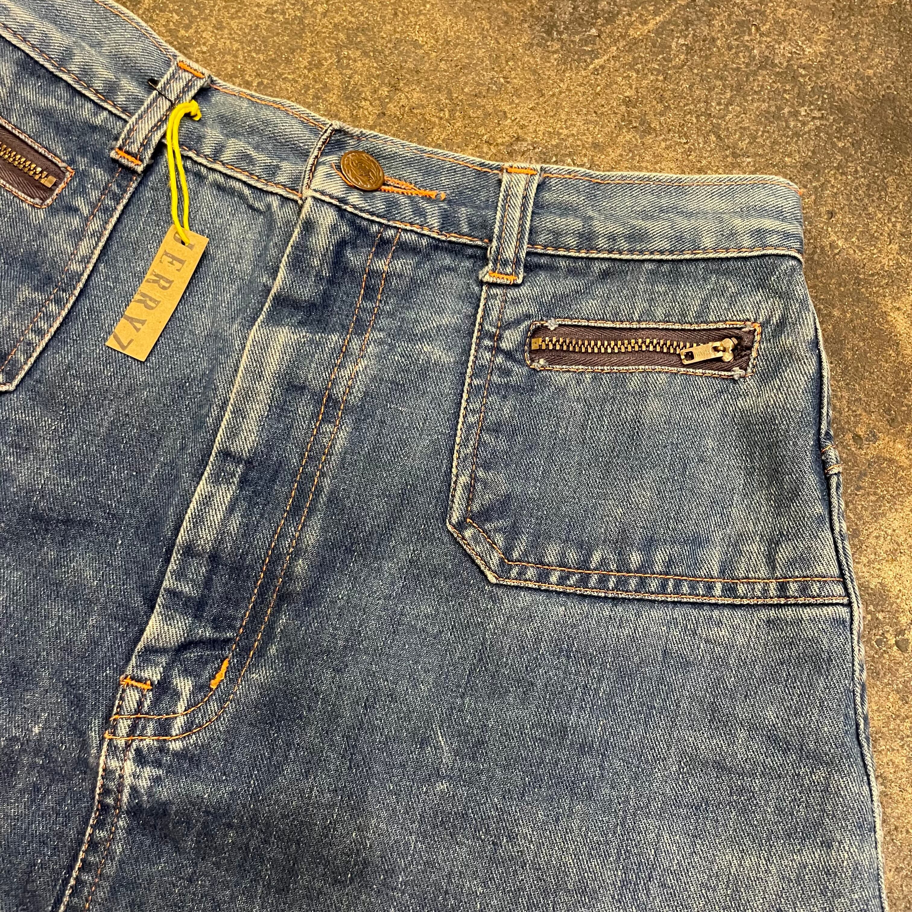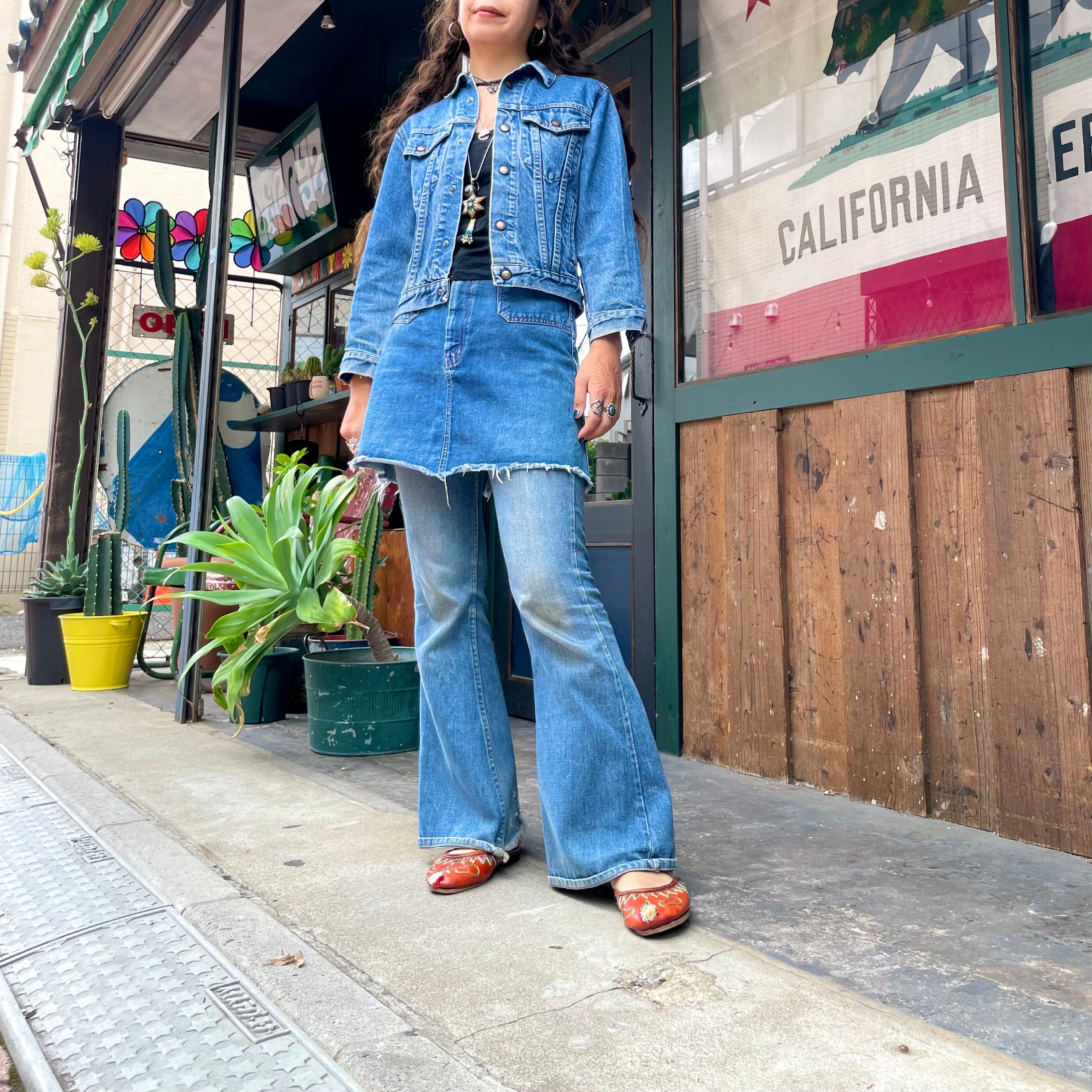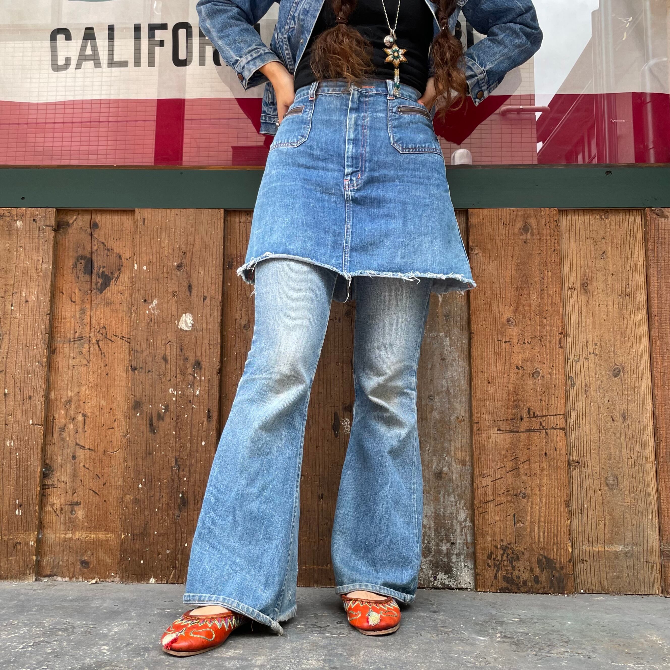 小さいポケットがかわいい70年代頃のカットオフデニムスカートです。色落ち具合も生地の柔らかさも良い感じで雰囲気のある一枚だと思います。